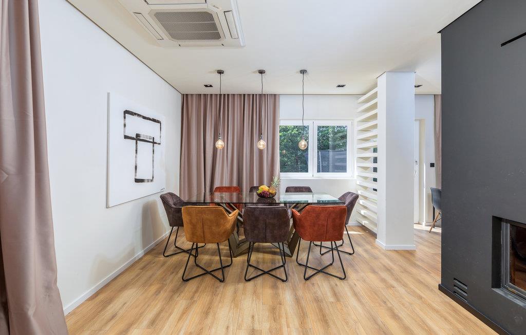 Velkommen til dette pragtfulde feriehus, der lover jer maksimal ferieglæde. Træd ind i de lyse rum, fordelt på to etager og indrettet med møbler af høj kvalitet. I vil med det samme lægge mærke til det stilrene design og den moderne æstetik. Her er skabt en behagelig atmosfære, som giver ro. Med brændeovn, whirlpool og swimmingpool finder I gode områder til at slappe af både ude og inde. Hvad kunne være bedre end at svømme i poolen under stjernerne? Dagene afsluttes med grillmad på terrassen og sjov og ballade på trampolinen, som fuldender jeres ferie.