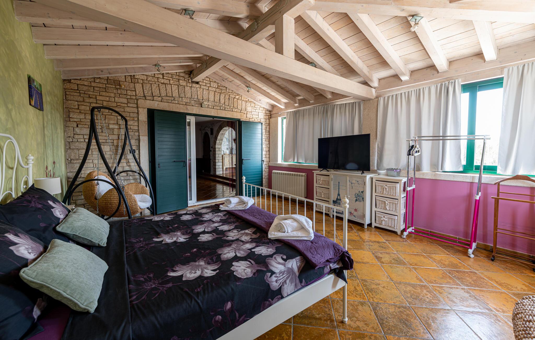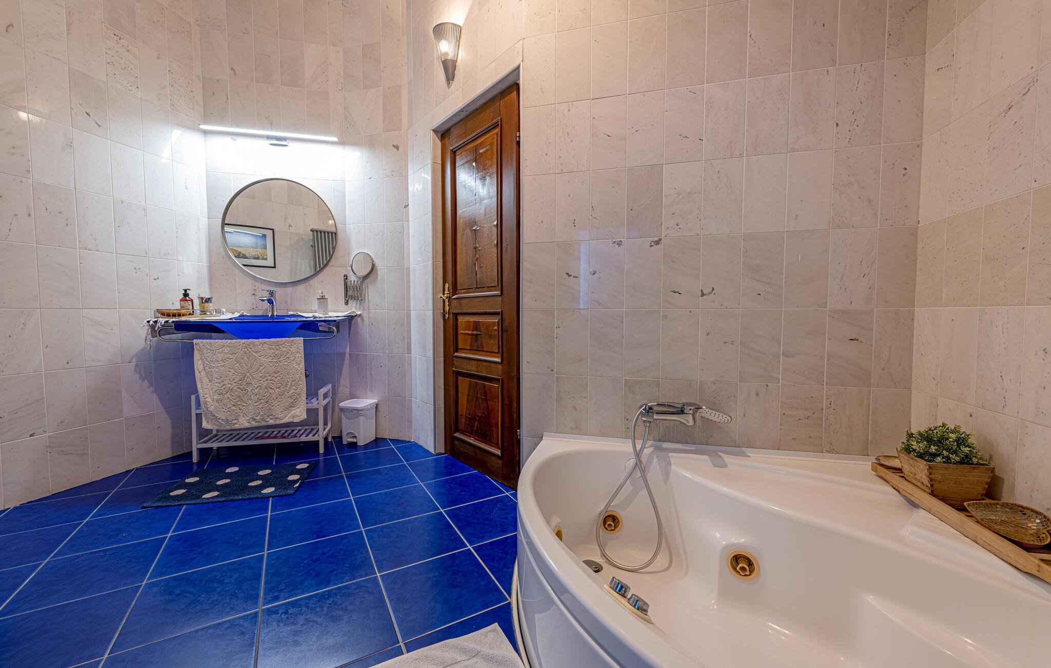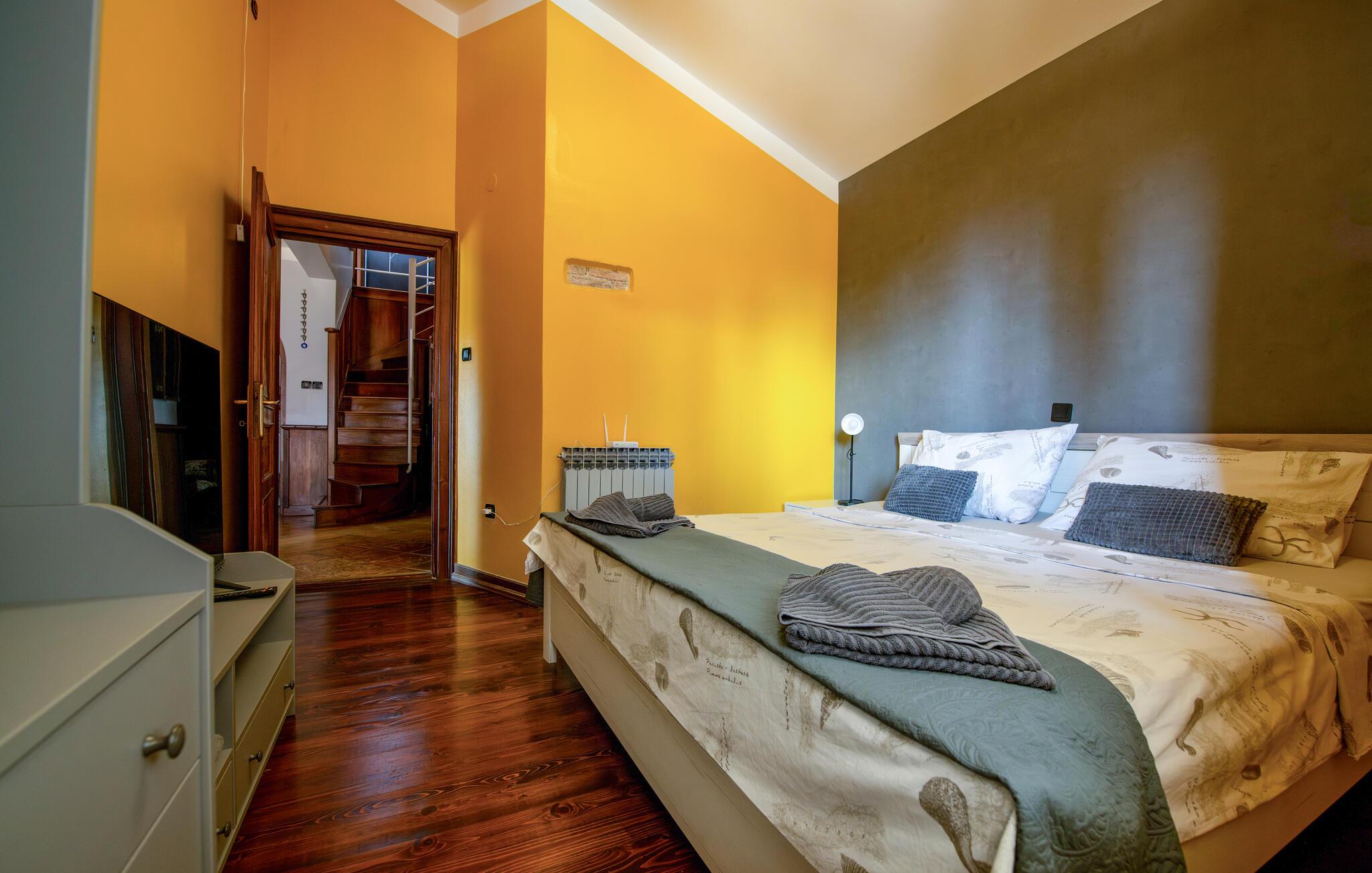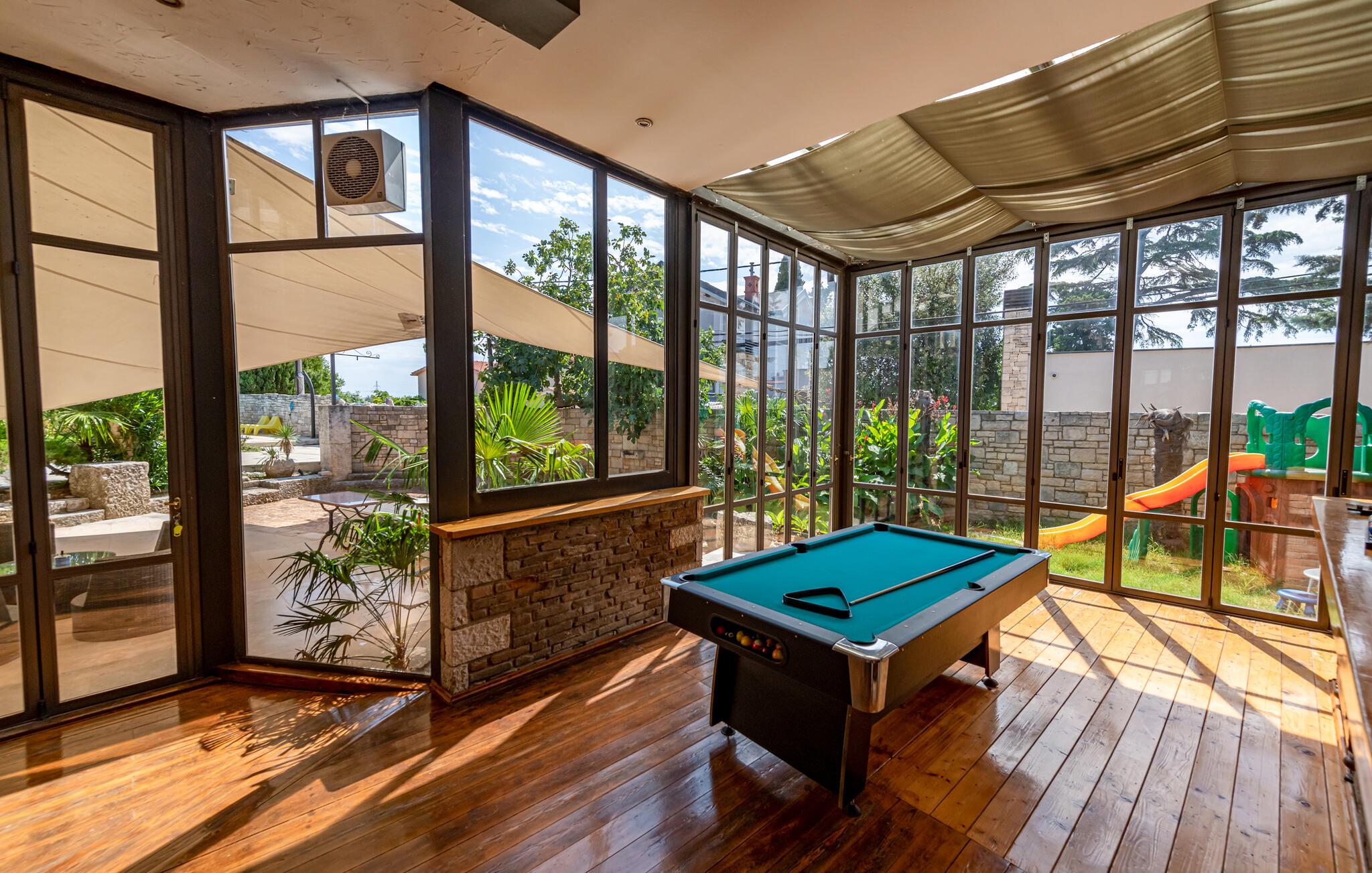 Skønt, stort feriehus, der kombinerer indendørs og udendørs ophold. Glæd jer til dette fremragende feriehus i Pula, som udover mange faciliteter i og udenfor huset tilbyder jer et professionelt fitnesscenter. Rejs med jeres udvidede familie eller flere fitness-elskende venner i dette fantastiske hus. Indenfor finder I charmerende og individuelt indrettede værelser, hvor I kan føle jer godt tilpas. Glæd jer til design, komfort og en indbydende atmosfære. I kan også opleve dem på terrasserne og i haven. Husets højdepunkt er fitnessområdet samt pool og sauna. Sport og afslapning går hånd i hånd her. Uden for jeres oase ligger de nærmeste strande kun få minutters kørsel væk. Hop ud i det forfriskende vand eller slentre gennem centrum af byen, som har adskillige indkøbsmuligheder og en rig gastronomi at byde på. Besøg også seværdighederne som det store amfiteater, Augustus-templet eller Sergiernes bue. Hvis I foretrækker at opleve mere natur, så tag til Fazana, som byder på smukke sandstrande og bugter, eller udforsk det indre af Istrien. Naturelskere vil få noget for pengene her med mange vandremuligheder. God fornøjelse i og omkring Pula!
