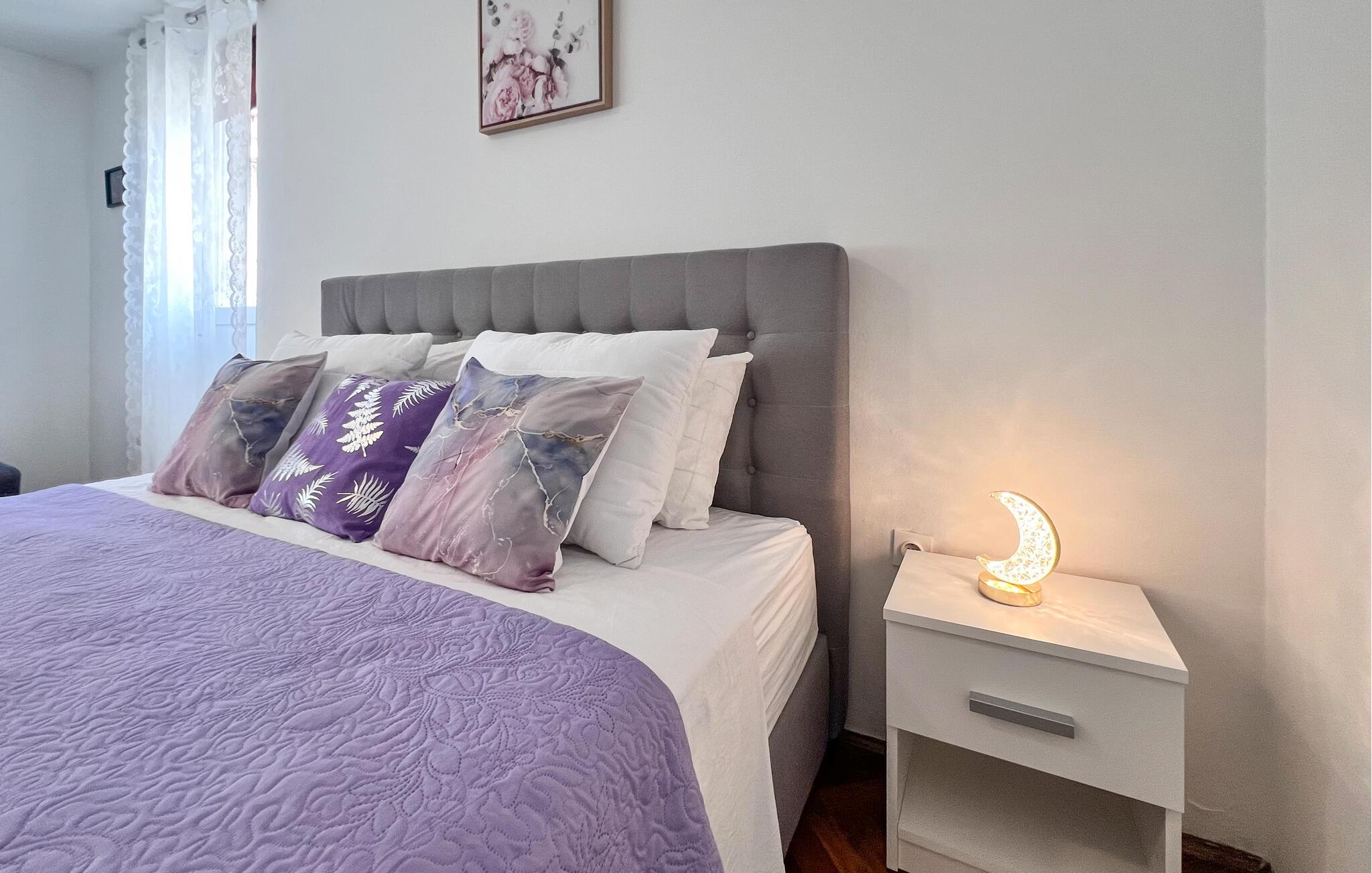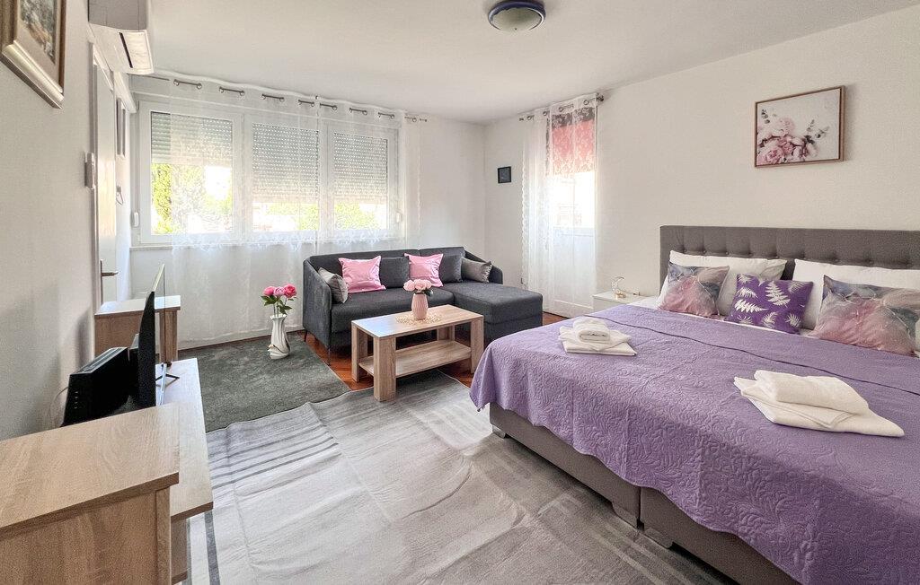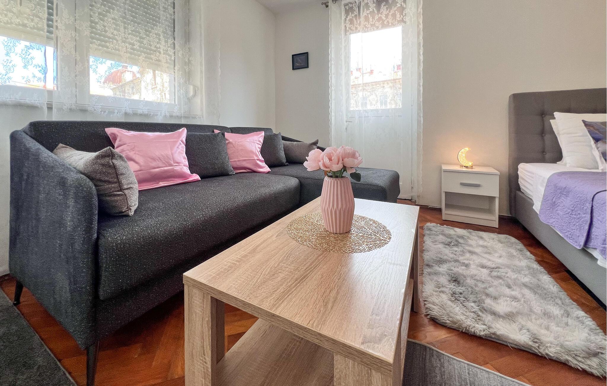 Oplev ferien i denne moderne og charmerende lejlighed i hjertet af Pula. De smukke møbler og fine detaljer skaber en hyggelig atmosfære, der byder jer velkommen med det samme. Nyd jeres morgenkaffe på balkonen, som er overraskende stille på trods af sin centrale beliggenhed. Lejligheden ligger i gågaden og er derfor omgivet af butikker, restauranter og barer - perfekt til at udforske byen lige uden for døren. Denne bolig giver jer det optimale tilflugtssted efter en dag fyldt med oplevelser.