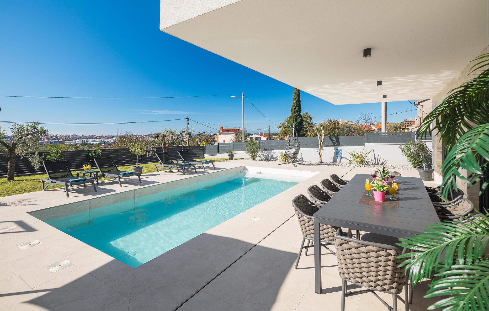 Slap af i denne komfortable og moderne villa med panoramaudsigt over Pula.