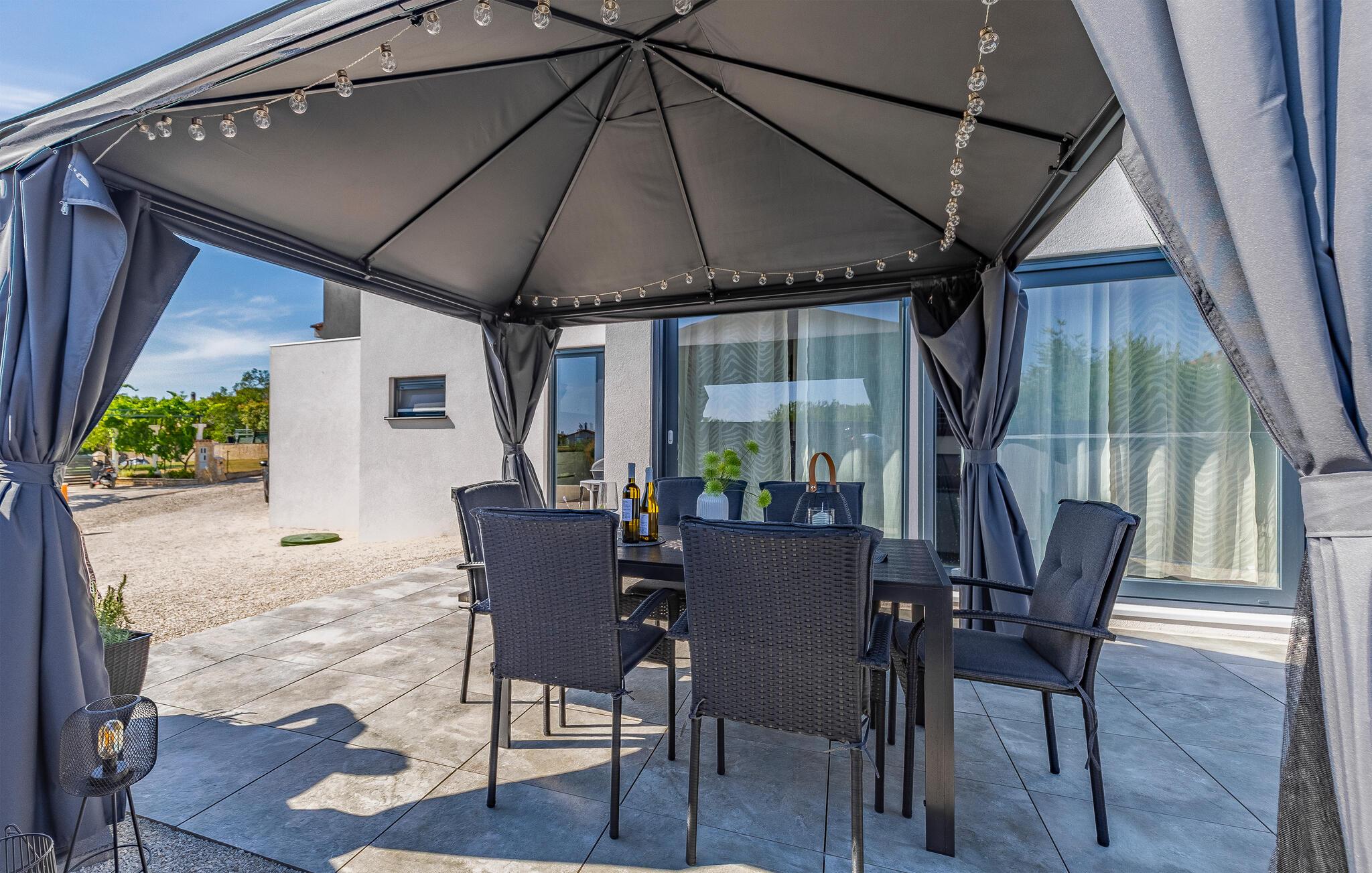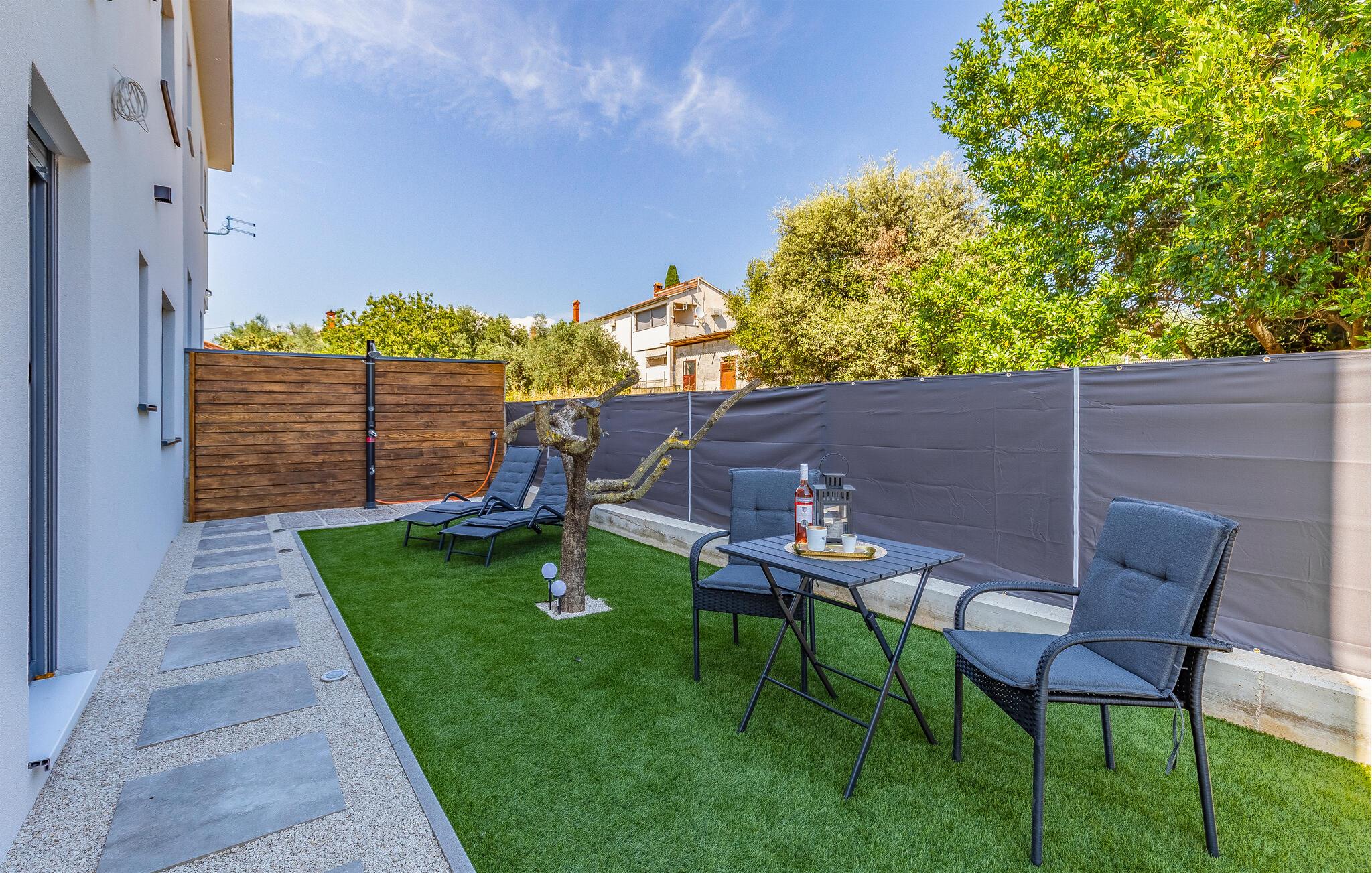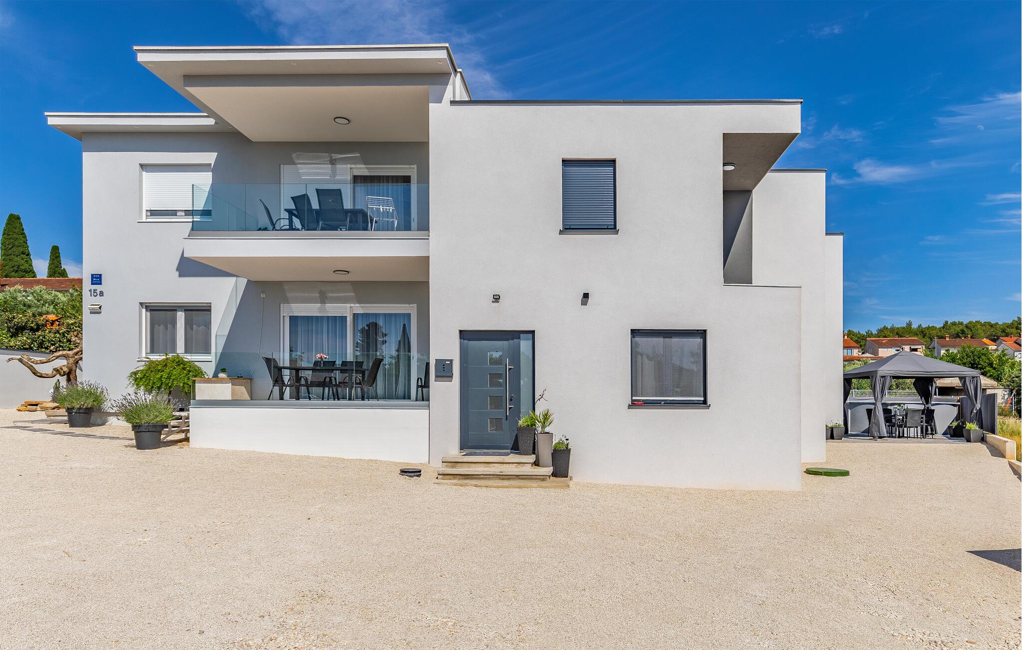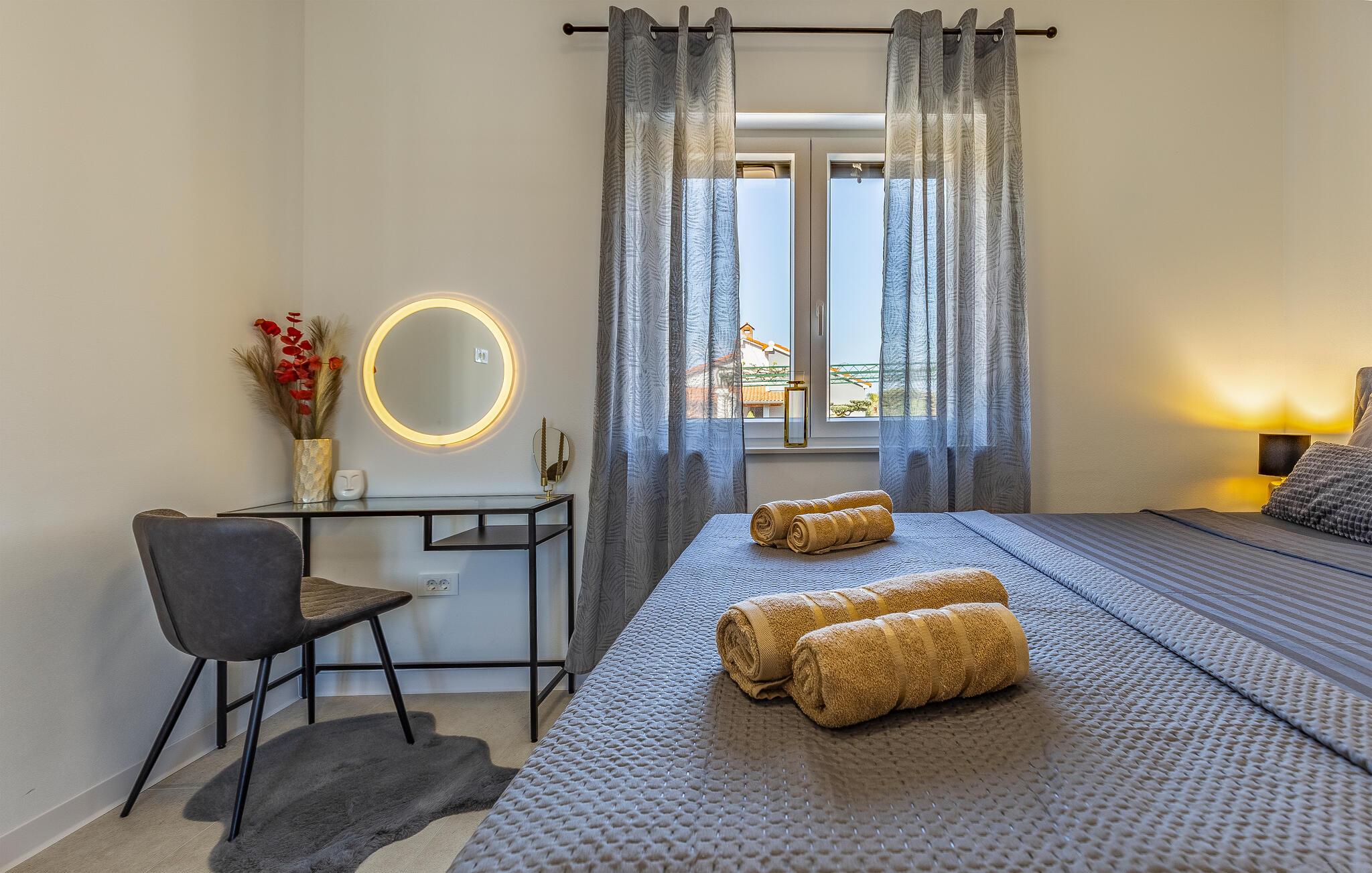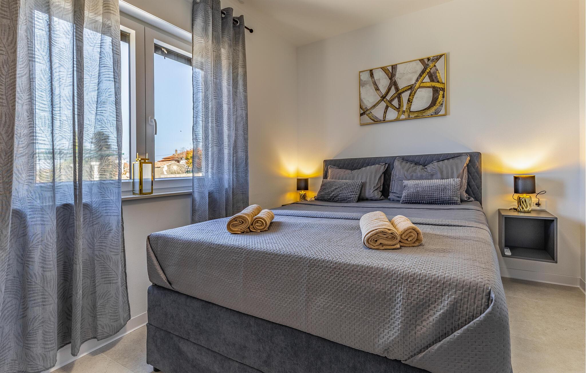 En kort gåtur fører jer forbi hvide stenhuse til stranden, hvor I kan tilbringe afslappende timer ved havet. Oplev smukke kyststier, afsidesliggende bugter og naturreservater som Kap Kamenjak. Hvis I er interesseret i kultur og historie, finder I imponerende spor af antikken i Pula, især det velbevarede romerske amfiteater.
