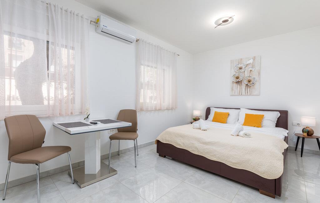 Dette charmerende etværelseslejlighed tilbyder jer et komfortabelt hjem væk fra hjemmet i hjertet af Pula, mens I opdager nye seværdigheder i denne pulserende kystby hver dag. Planlæg jeres aktiviteter for den kommende dag ved spisebordet, tilbered små måltider i det åbne køkken, og efter en lang dag kan I streame en film eller fordybe jer i en god bog.