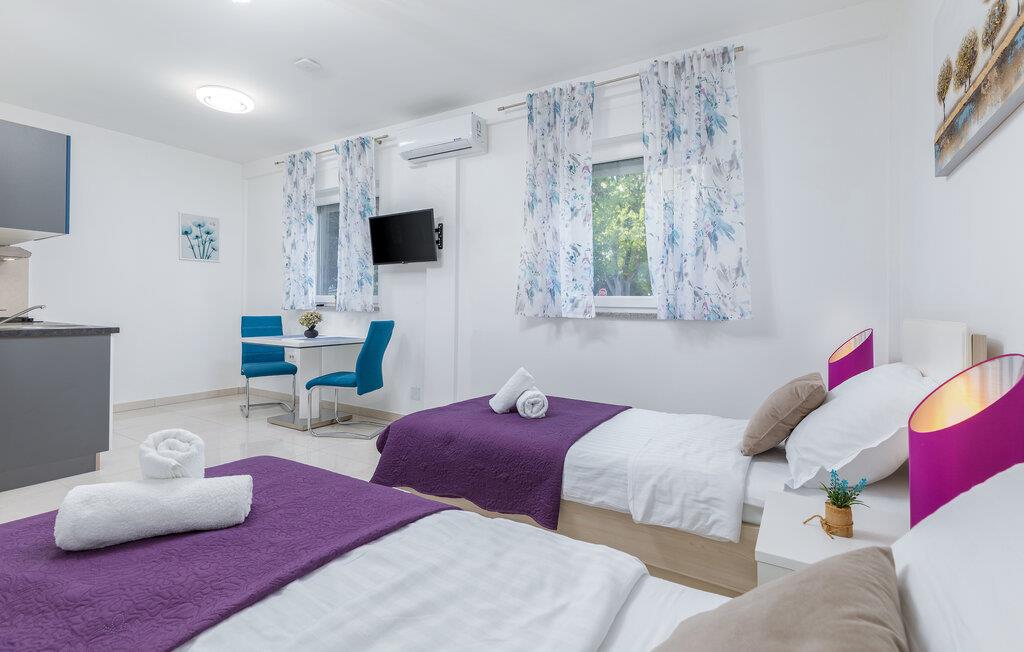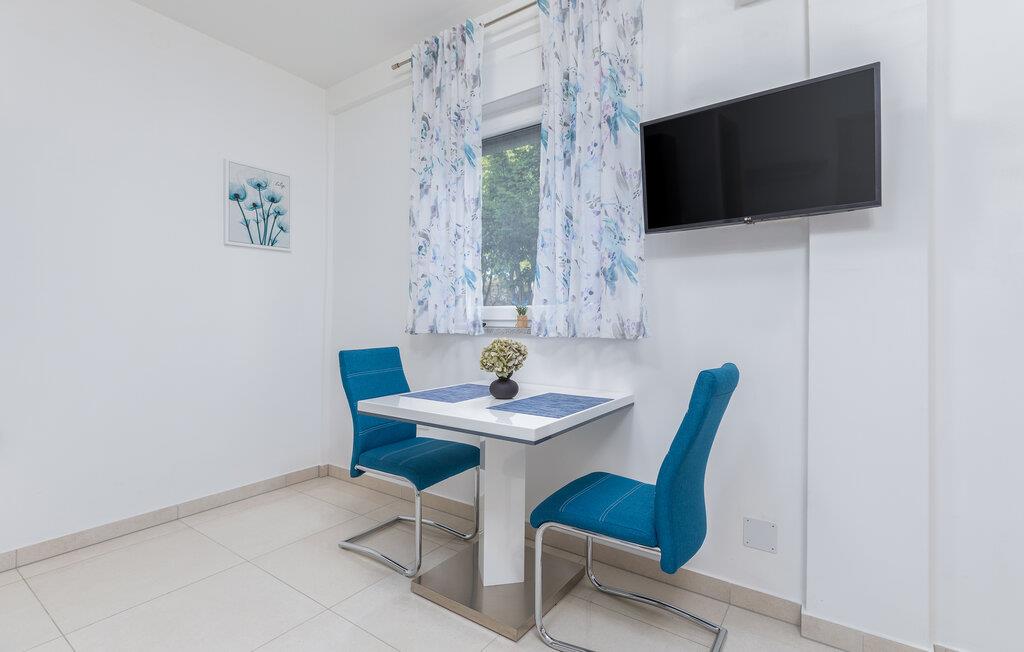 Dette indbydende etværelseslejlighed tilbyder jer et komfortabelt, lille midlertidigt hjem i hjertet af Pula, mens I opdager nye seværdigheder i denne pulserende kystby hver dag. Planlæg jeres aktiviteter for den kommende dag ved spisebordet, tilbered små måltider i det åbne køkken, og efter en lang dag kan I streame en film eller fordybe jer i en god bog.
