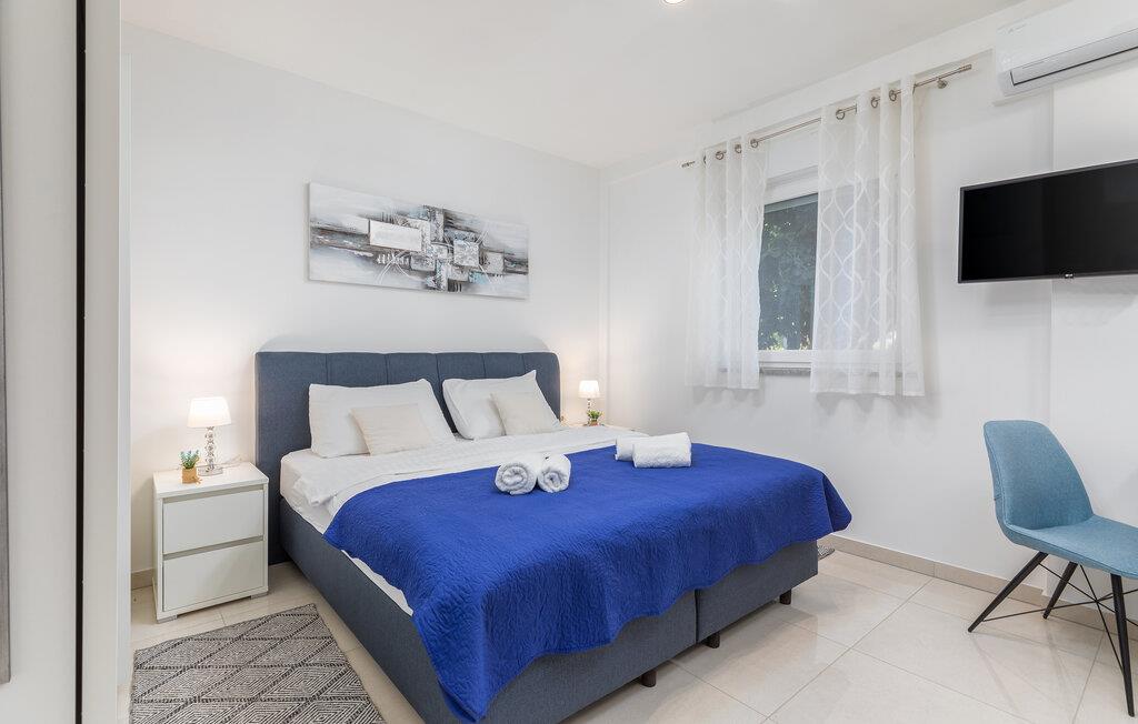 Dette komfortable etværelseslejlighed i stueetagen tilbyder jer et hyggeligt hjem væk fra hjemmet i hjertet af Pula, mens I opdager nye seværdigheder i denne pulserende kystby hver dag. Planlæg jeres aktiviteter for den kommende dag ved spisebordet, tilbered små måltider i det åbne køkken, og efter en lang dag kan I streame en film eller fordybe jer i en god bog.