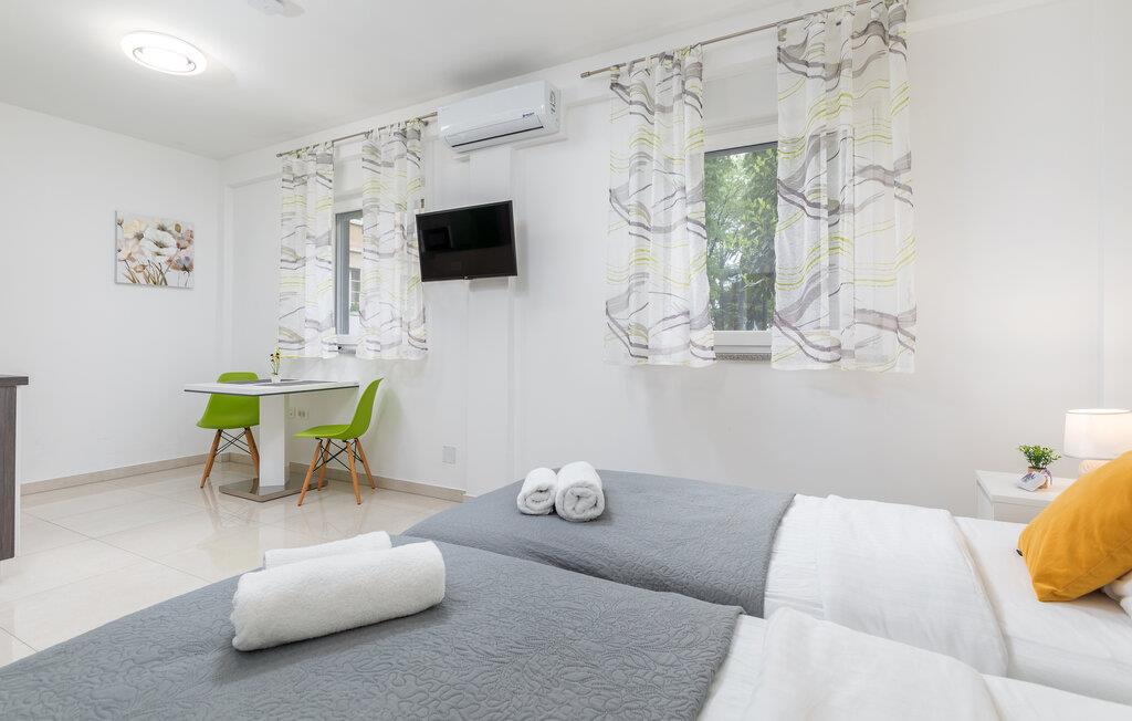 Dette komfortable etværelseslejlighed i stueetagen tilbyder jer et hyggeligt, midlertidigt hjem i hjertet af Pula, mens I opdager nye seværdigheder i denne pulserende kystby hver dag. Planlæg jeres aktiviteter for den kommende dag ved spisebordet, tilbered små måltider i det åbne køkken, og efter en lang dag kan I streame en film eller fordybe jer i en god bog.