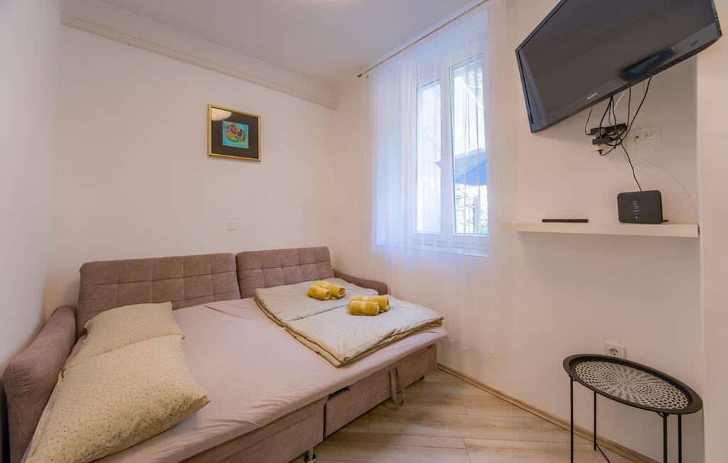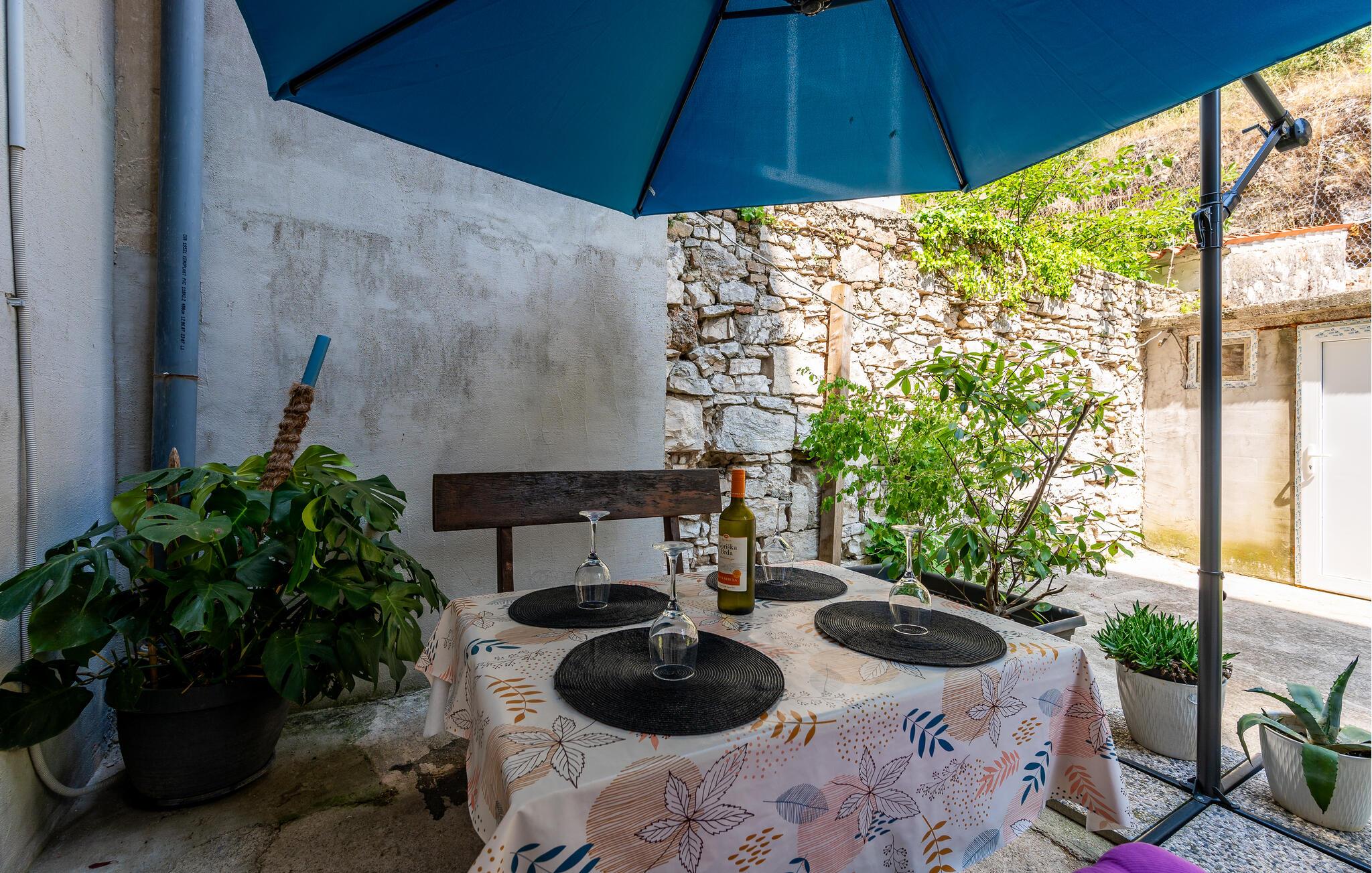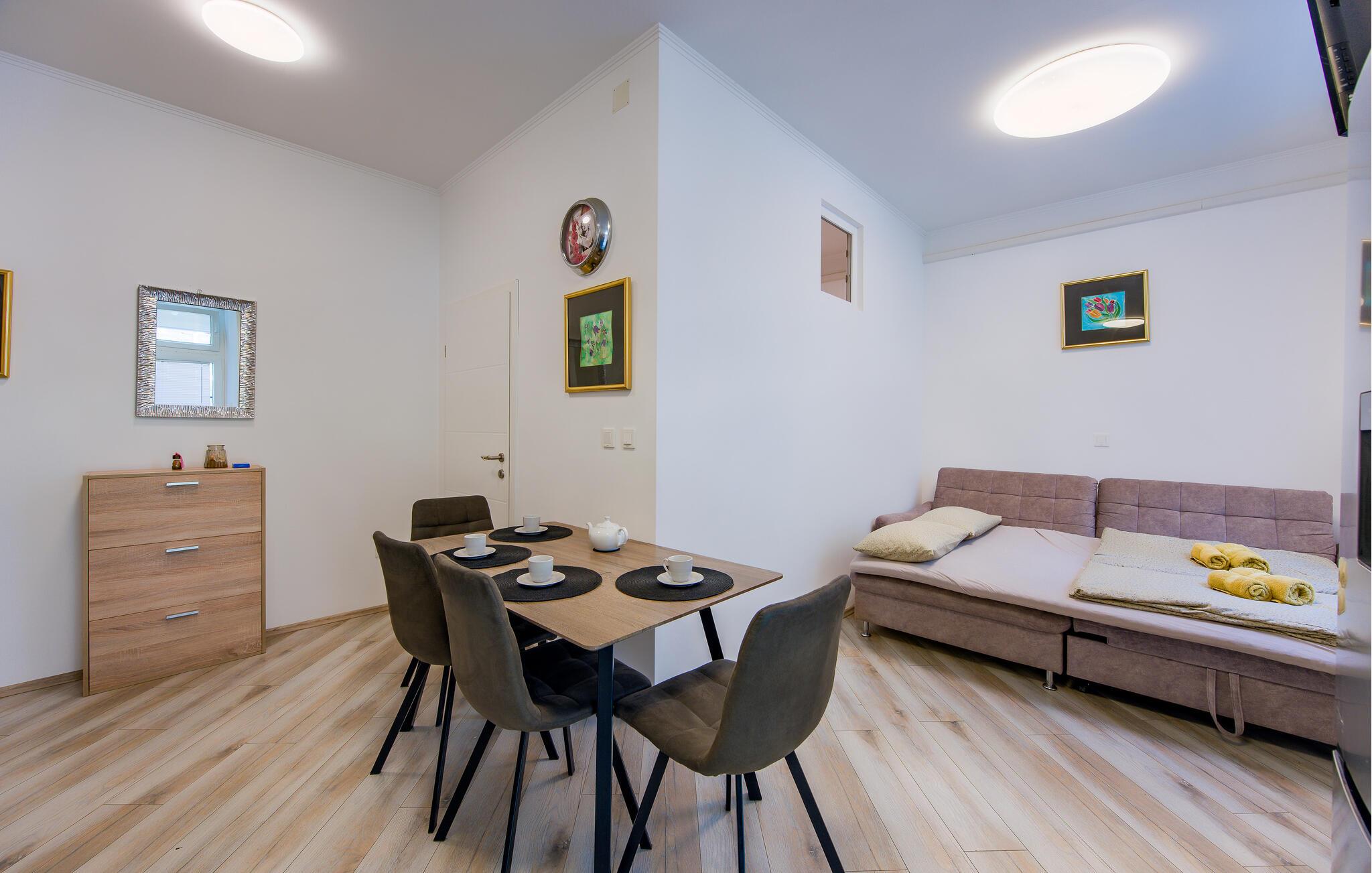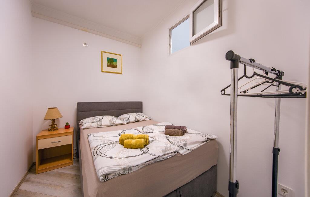 Nyd et problemfrit ophold i denne ferielejlighed nær havet. Denne hyggelige lejlighed har alt, hvad I behøver for en afslappende ferie: en lys stue med et varmt trælook og et spisebord, en behagelig sofa og et moderne køkken. Læs en god bog, lyt til jeres yndlingsmusik, eller slap af, mens I tilbereder måltider sammen. Gå ud på den lille terrasse om morgenen, som er komfortabelt placeret i gården og omgivet af middelhavsplanter. Drik jeres kaffe og spis en let morgenmad her. Nyd den autentiske atmosfære, og planlæg de næste aktiviteter til jeres næste feriedag. Tag en kort tur til stranden og nyd solen, havet og Adriaterhavets krystalklare vand. Jeres lejlighed ligger i hjertet af Pula – kun fem minutters gang fra den livlige havnepromenade, hvor restauranter, caféer og butikker inviterer jer til at blive hængende. Oplev det imponerende romerske amfiteater i nærheden, og fordyb jer i byens fascinerende historie. Uanset om det er kultur, gastronomi eller havet – her vil I opleve en varieret ferie lige uden for døren.