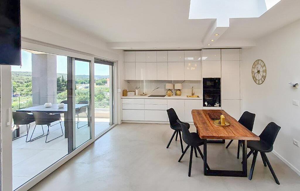 Velkommen til dette fantastisk beliggende hus, kun en behagelig gåtur fra havet, der tilbyder de perfekte rammer for en afslappende ferie med hele familien. Nyd at tilbringe tid sammen i de stilfuldt og moderne møblerede værelser. Spis sammen i køkkenet foran store panoramavinduer og slap senere af på sofaen.
