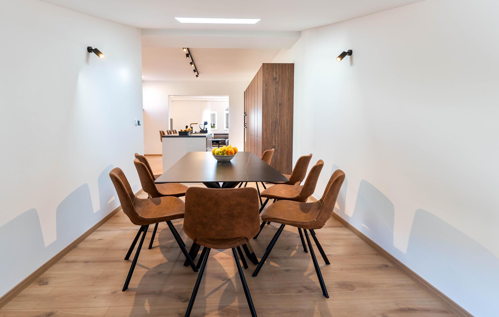 Dette hus forener harmonisk moderne komfort og hygge. Smukke trædetaljer, komfortable sofaer og et veludstyret køkken med morgenmadsbar skaber en atmosfære, hvor I hurtigt vil føle jer hjemme. Uanset om I lytter til jeres yndlingsmusik eller nyder en sjov spilleaften, sætter I selv tempoet for dagen her.