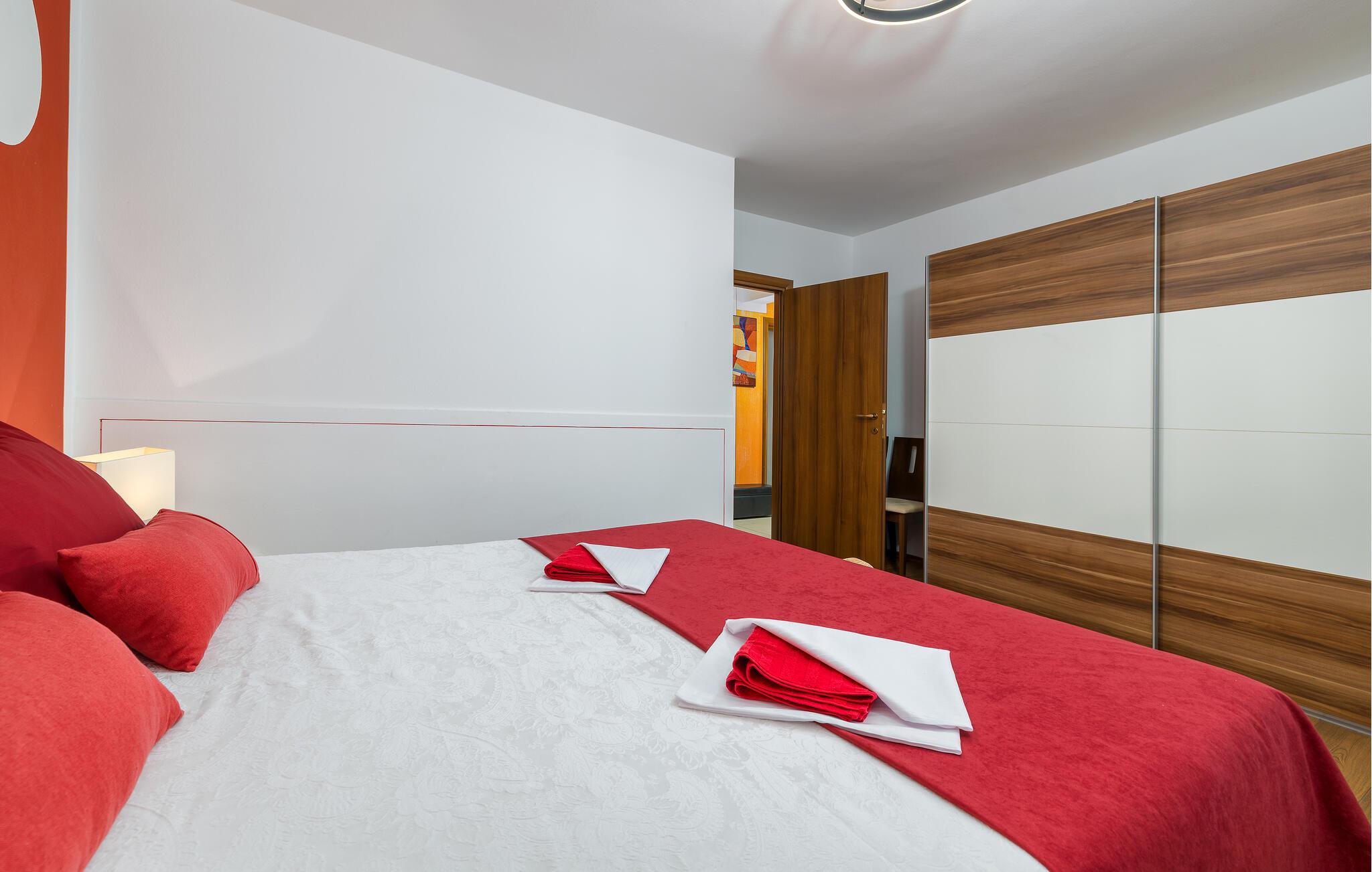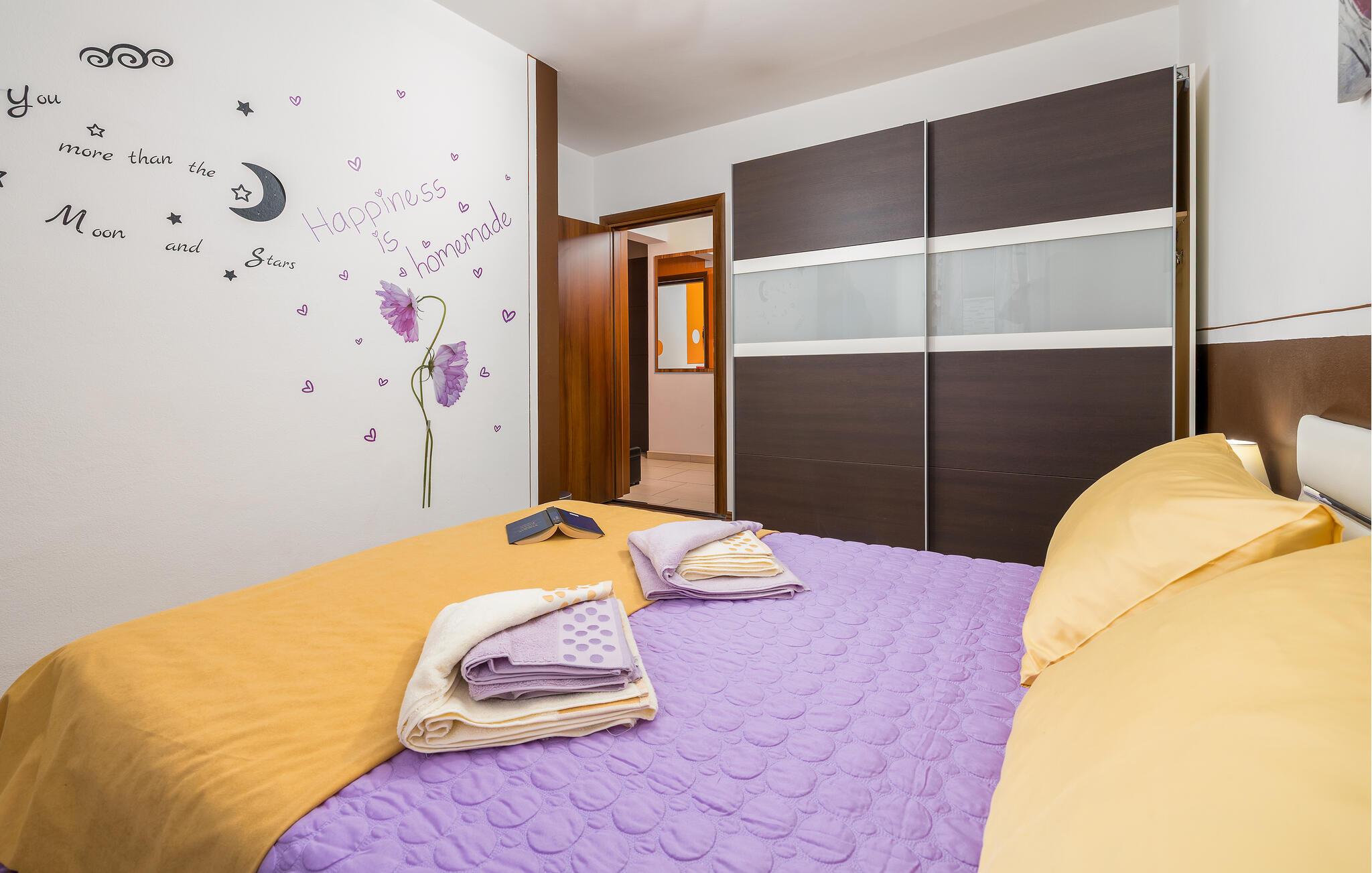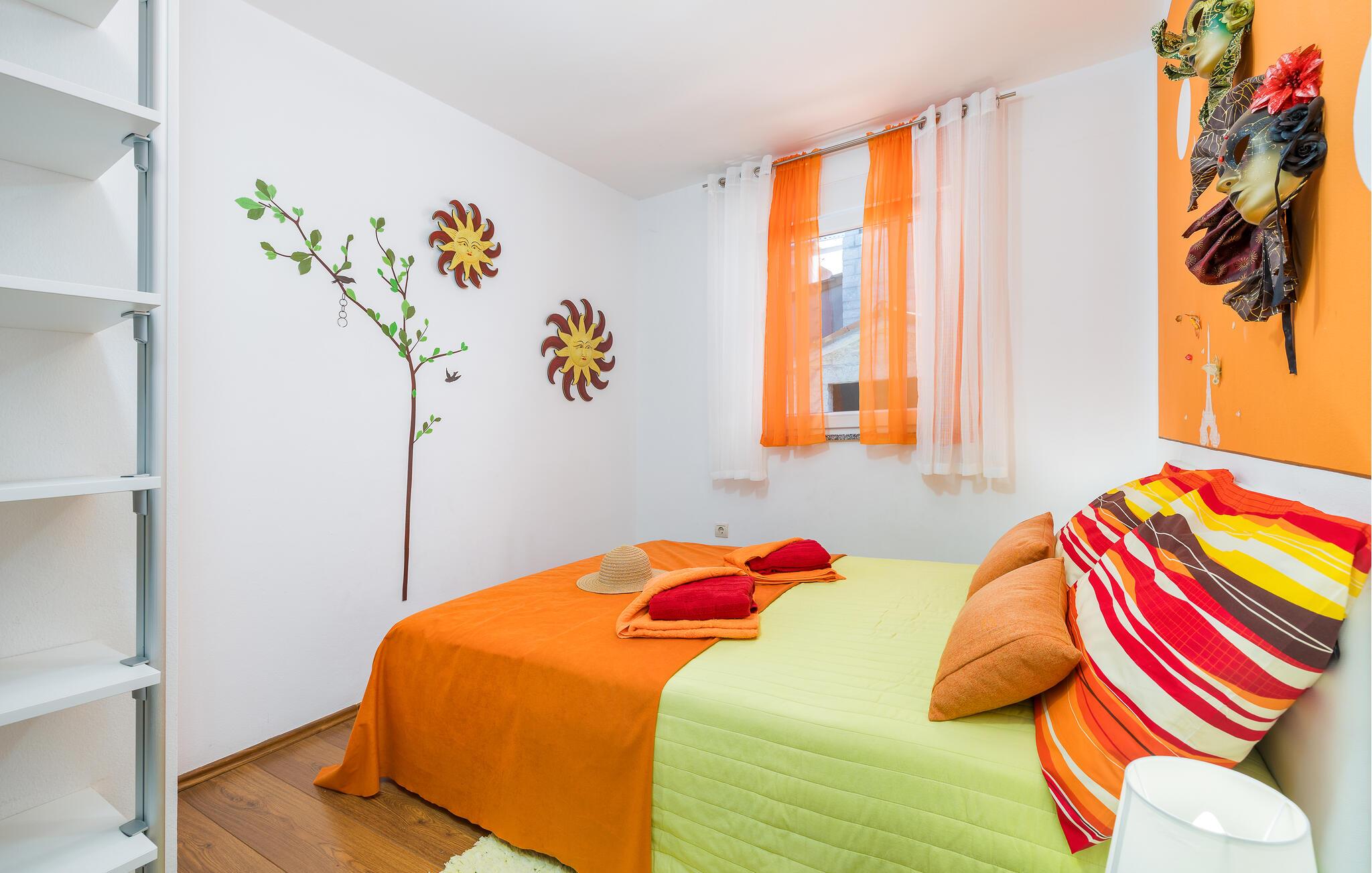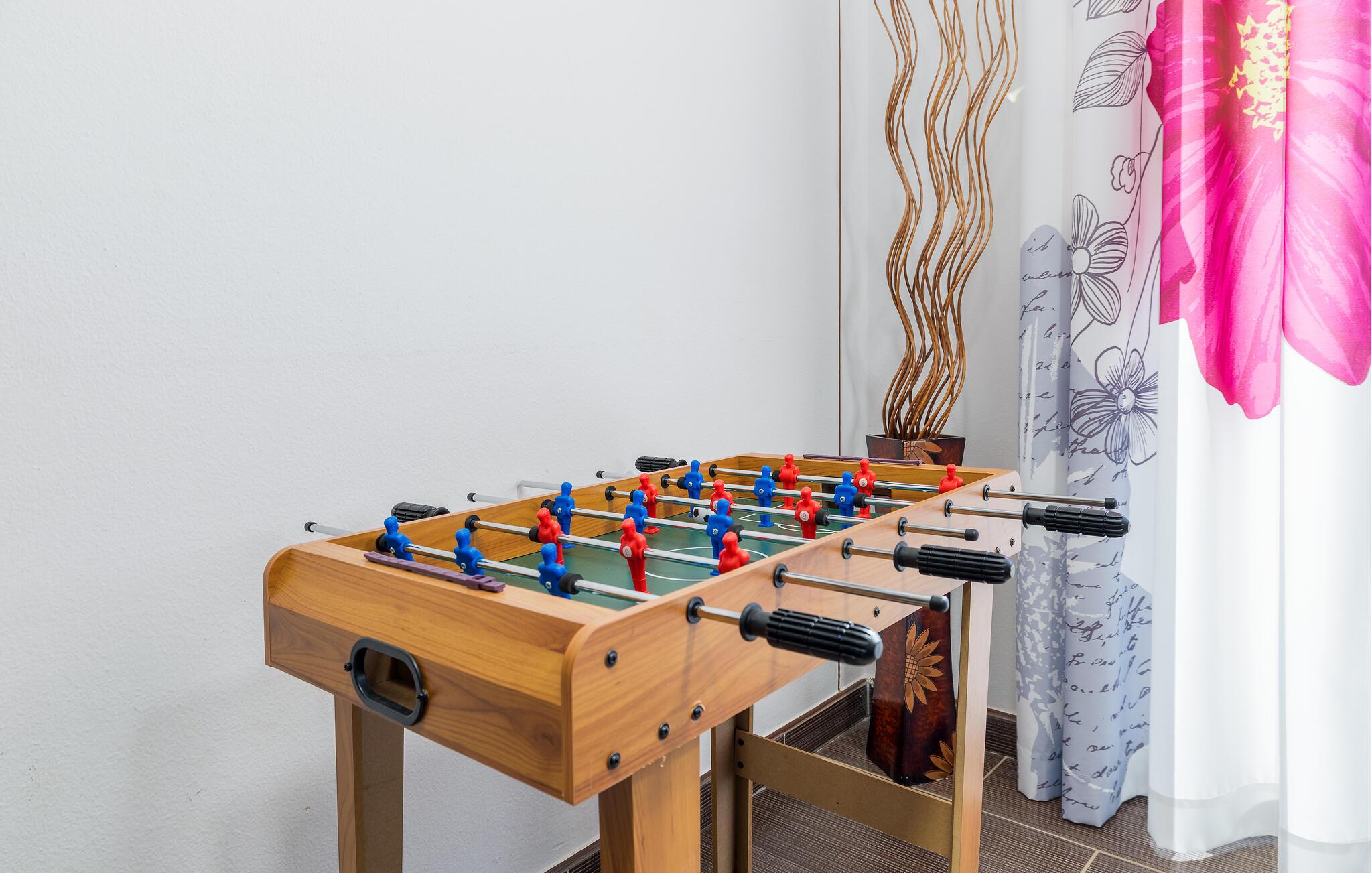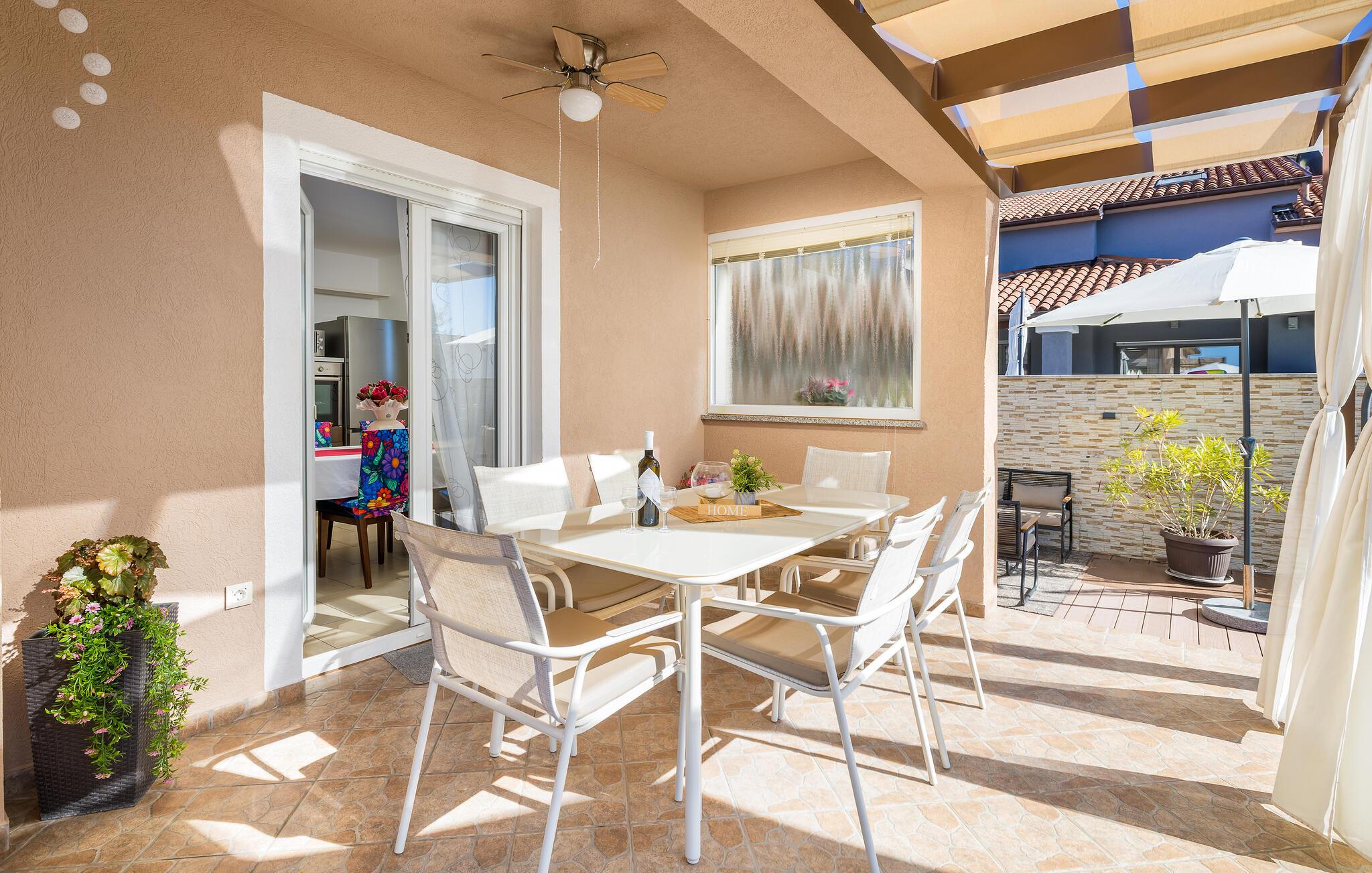 Den charmerende Villa Magnolia ligger i udkanten af Pula og er det helt rigtige feriemål for familier, der leder efter ro og afslapning og alligevel ikke ønsker at være for langt væk fra handlingen. Villaens højdepunkt er den forfriskende pool med modstrøm og vandmassagedyser. Hele familien vil have det sjovt her og sandsynligvis have den bedste tid på deres ferie. Slap af på en af liggestolene og nyd den kroatiske sol. Samles ved spisebordet på den overdækkede terrasse for at nyde frisklavede måltider på kulgrillen på milde sommeraftener. Et fodboldbord, et bordtennisbord og en trampolin til børn er også tilgængelige på udendørsområdet. Kommer du ind i det indre fra terrassen, finder du en åben stue. Alt er kærligt møbleret og dekoreret. Et komfortabelt opholdsområde og et fuldt udstyret køkken med spisebord er ideelle til, at din familie kan føle sig hjemme. 3 farverige soveværelser med komfortable dobbeltsenge kan rumme op til 6 personer. Den fuldt klimatiserede villa har også et smukt badeværelse med badekar. Pula og Brijuni National Park og mange smukke strande er inden for rækkevidde. Villa Magnolia ligger i den sydvestlige del af Istrien, kun 6 km fra regionens turistcenter Pula. Vi anbefaler det til familier med børn og til gæster, der foretrækker ro frem for travlhed i storbyer. Udover at bade og solbade, kan du også bruge din tid på at cykle, fordi mange istriske cykelstier passerer gennem eller i nærheden af Sisan. Kun en kort køretur fra villaen finder du Pula. Pula er den største by på halvøen Istrien og byder på en mangfoldighed af attraktioner til kulturelskere. Den rige rejseplan for dens tre tusinde år gamle historie, hvor hvert skridt du tager gennem den gamle bydel er et vartegn, begynder og slutter med det romerske amfiteater. En af de tæt ved skal se steder er absolut Rt Kamenjak. Her finder du krystalklart hav og strande, der passer til alles behov: glatte og jævne stenoverflader eller småsten til alle generationer, især familier med børn eller "afsondret" strande skjult af uberørt grønne områder for dem, der ønsker en smule privatliv. Book Villa Magnolia og tilbring en uforglemmelig ferie på den sydlige spids af Istrien. Temperaturen i den opvarmede swimmingpool er afhængig af eksterne faktorer, herunder vejrforhold, og som sådan kan temperaturen på vandet ikke garanteres.