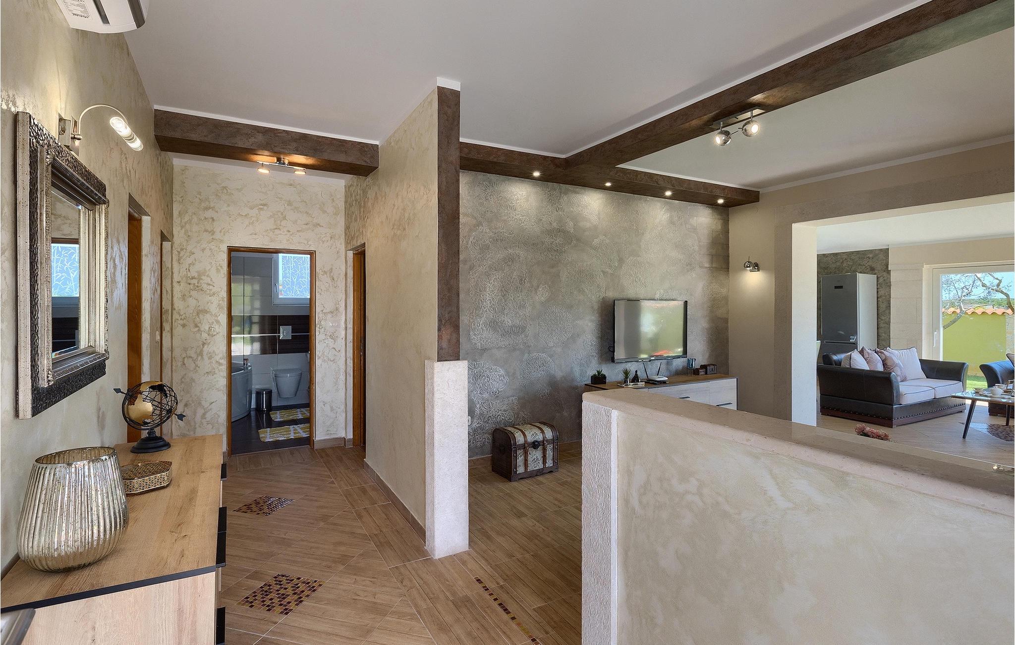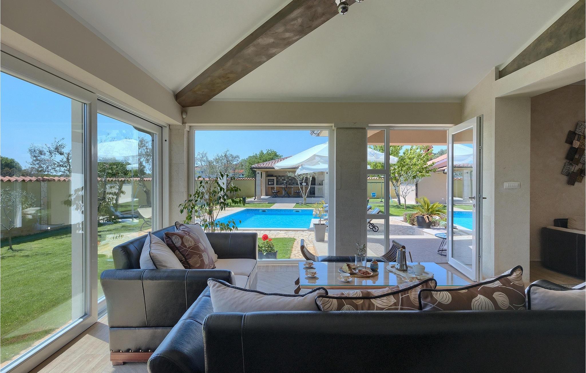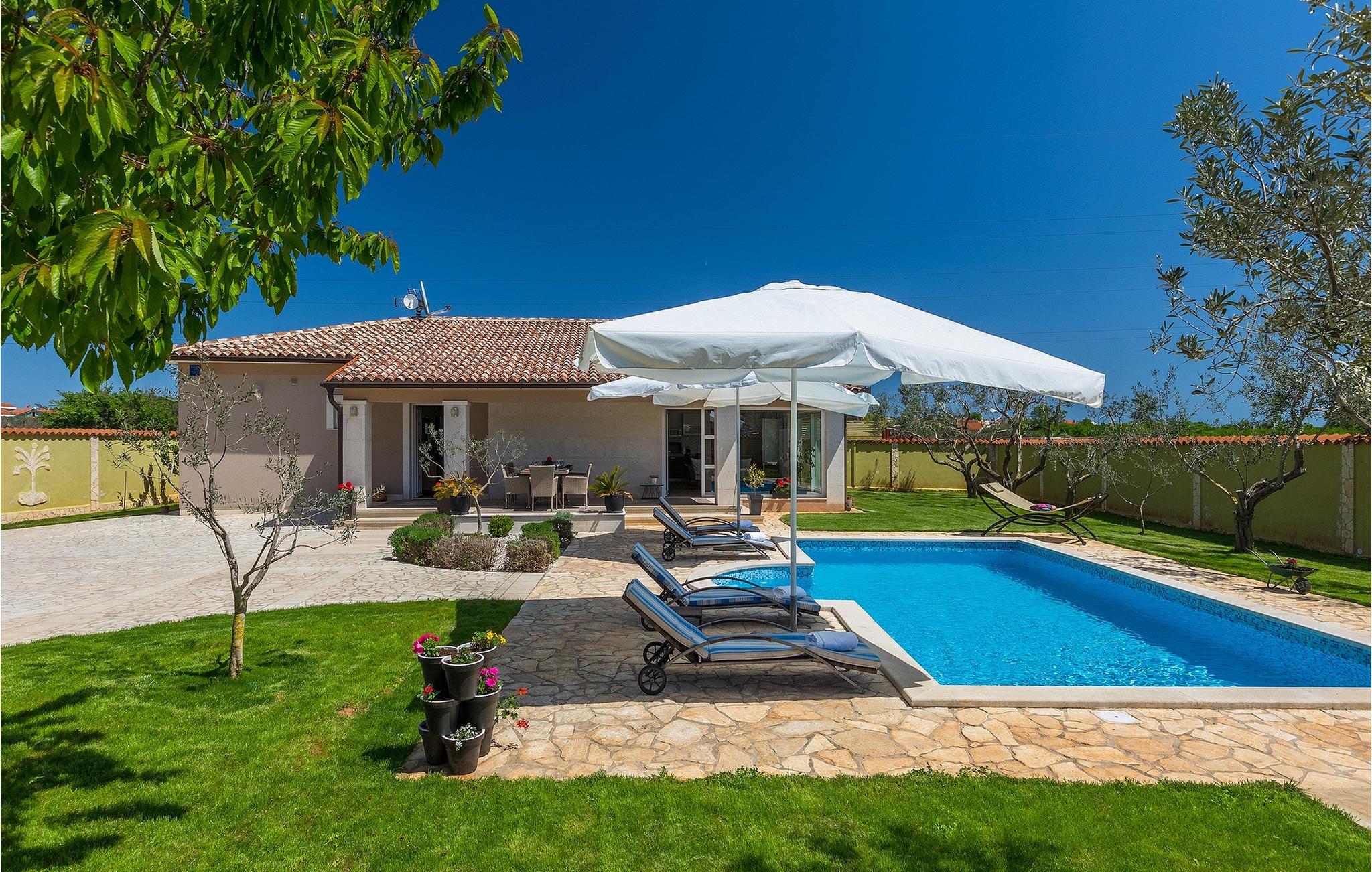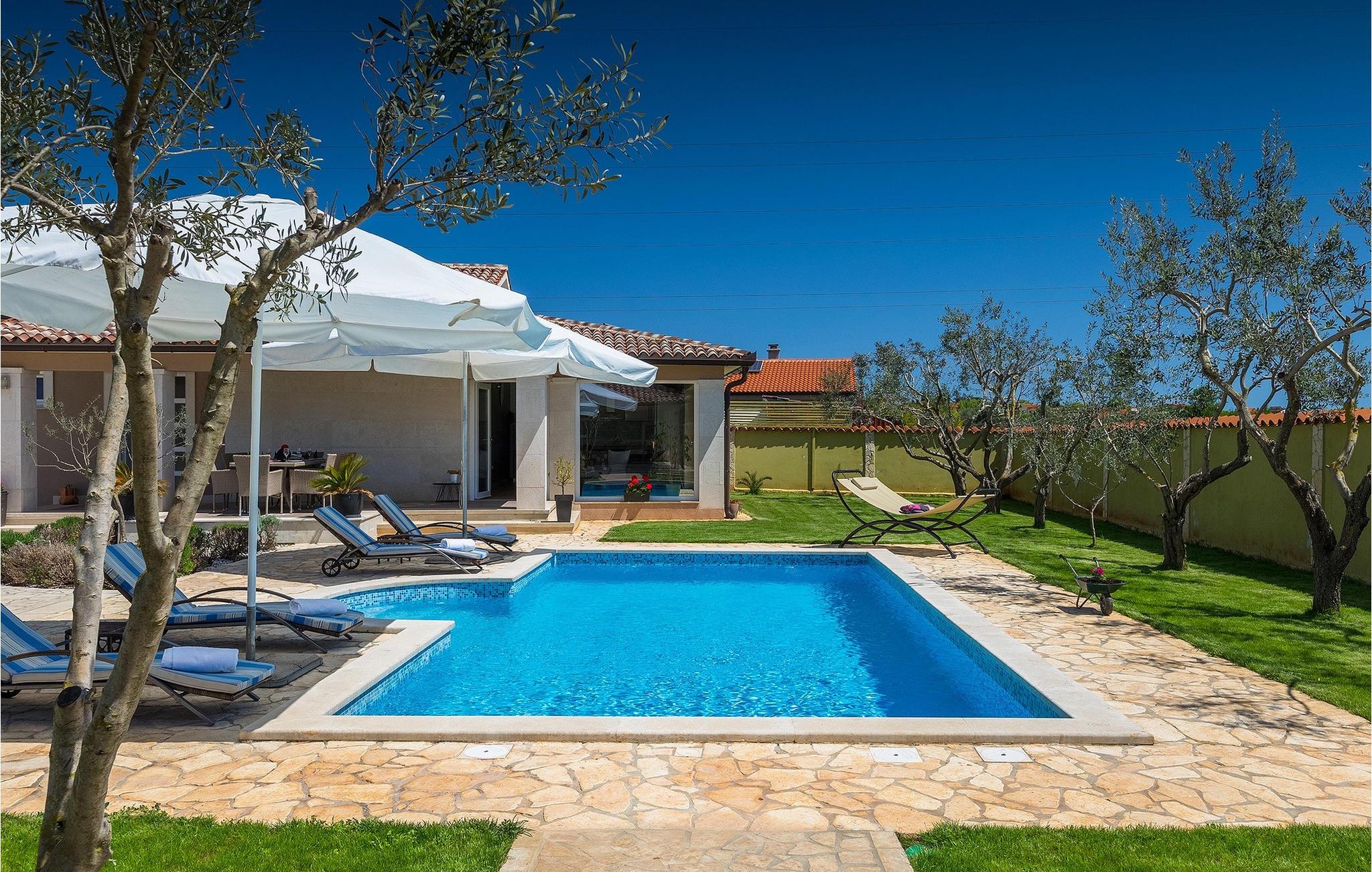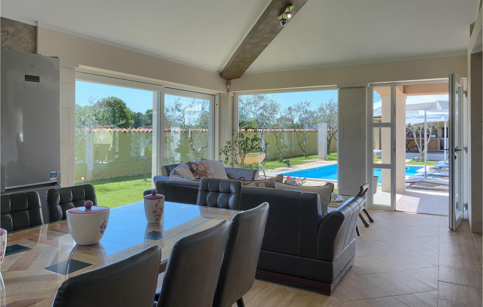 Denne smukke villa er beliggende i udkanten af Pula by, kun 5 minutter fra byens centrum samt de hvide stenstrande. Ejendommen er i en ensom position, hvilket giver mulighed for perfekt ro og privatliv. Udenfor finder du en dejlig indhegnet have med en god størrelse pool. En legeplads samt et al fresco spiseområde med et ekstra køkken inklusive en stenbygget grill står til din rådighed. På verandaen er der nogle loungemøbler til en morgenkop kaffe. Interiøret er smukt dekoreret og er oversvømmet med lys med glasvægge med udsigt til haven/poolområdet. Der er også et separat tv/medieområde. Alt er på en etage, så det er ideelt til små børn, eller hvis du har gæster, der har problemer med at bevæge sig op og ned af trapperne. Der er 4 soveværelser. Tre dobbeltværelser og en med 3 enkeltsenge. For ekstra kapacitet kan du bruge en sovesofa i stuen. Pula er turistcentrum i Istrien, hvad angår kultur, tradition og smuk natur. Det havde sine storhedstid i romertiden. Romerne efterlod sig mange spor, især det fine amfiteater. I den venetianske periode udviklede Pula sig til at være Adriaterhavets kontrolcenter, og i løbet af århundrederne udviklede byens havn sig til den vigtigste havn i regionen. Pula tilbyder alle former for fritidsaktiviteter, herunder sportsfaciliteter, natklubber, kasinoer, pubber og restauranter og organiserede udflugter. Byen har to passagerhavne, begge meget vigtige for krydstogtsturismen. I dag repræsenterer Pula et sted, hvor en afslappende ferie ved den smukke kyst og tæt på krystalvandet kan kombineres med legender og minder om en rig historie. Uspoleret skov, smukke strande og middelhavsklimaet gør dette sted til en meget attraktiv destination for kystelskere. Overalt kan du nyde naturen, for eksempel ved Plitvice-søerne og de berømte vandfald, eller på Brioni-øerne med sin enestående flora og fauna, som gør den til Middelhavets nordligste eksotiske oase.