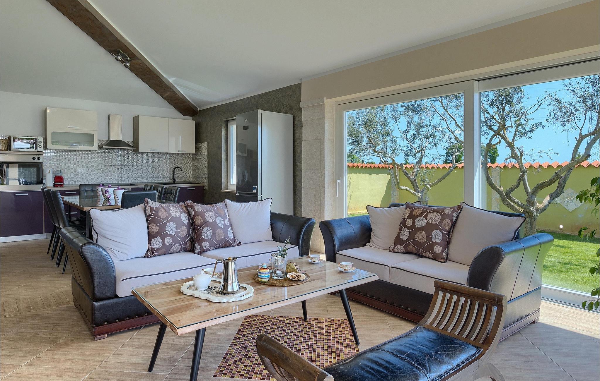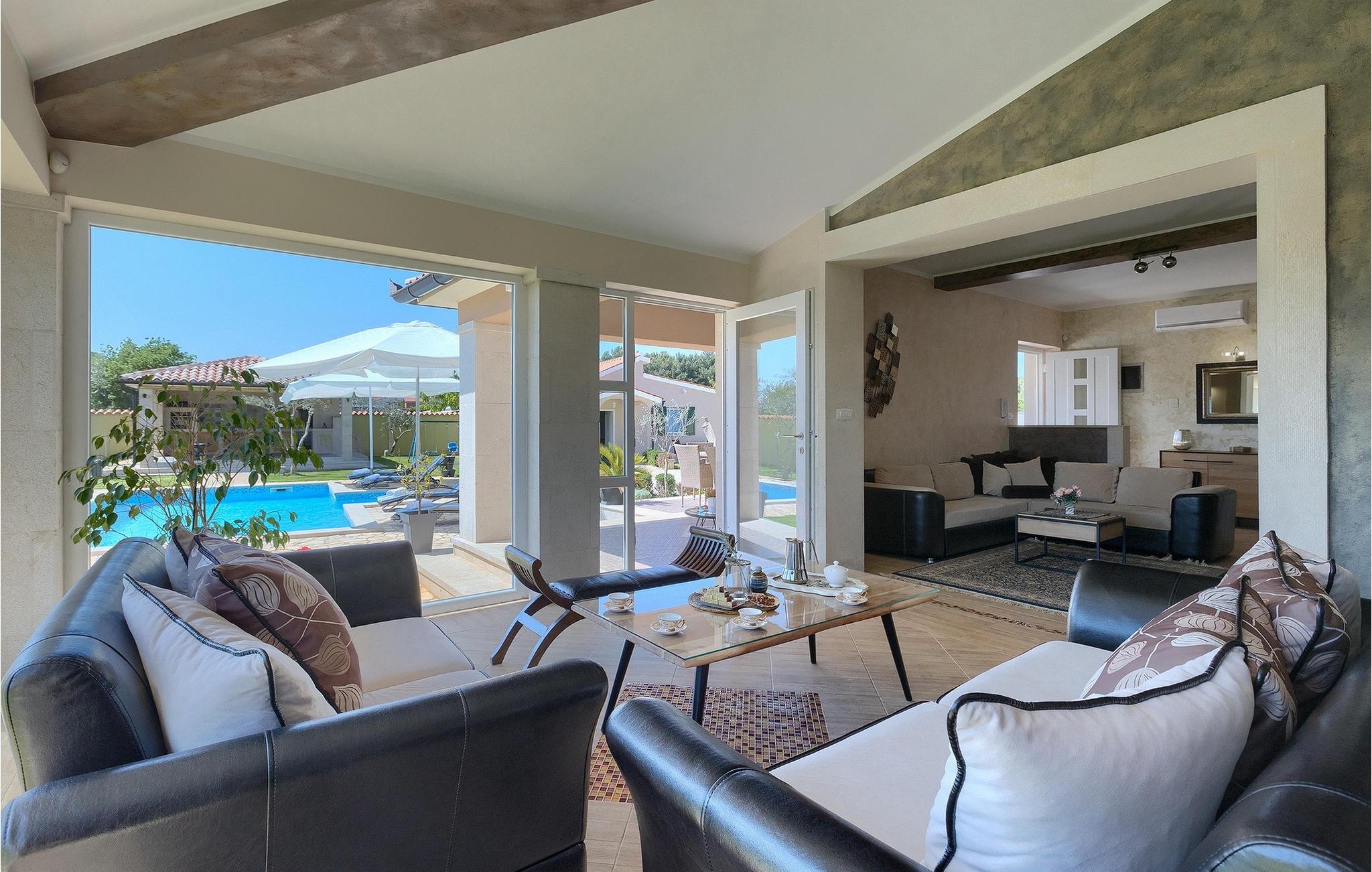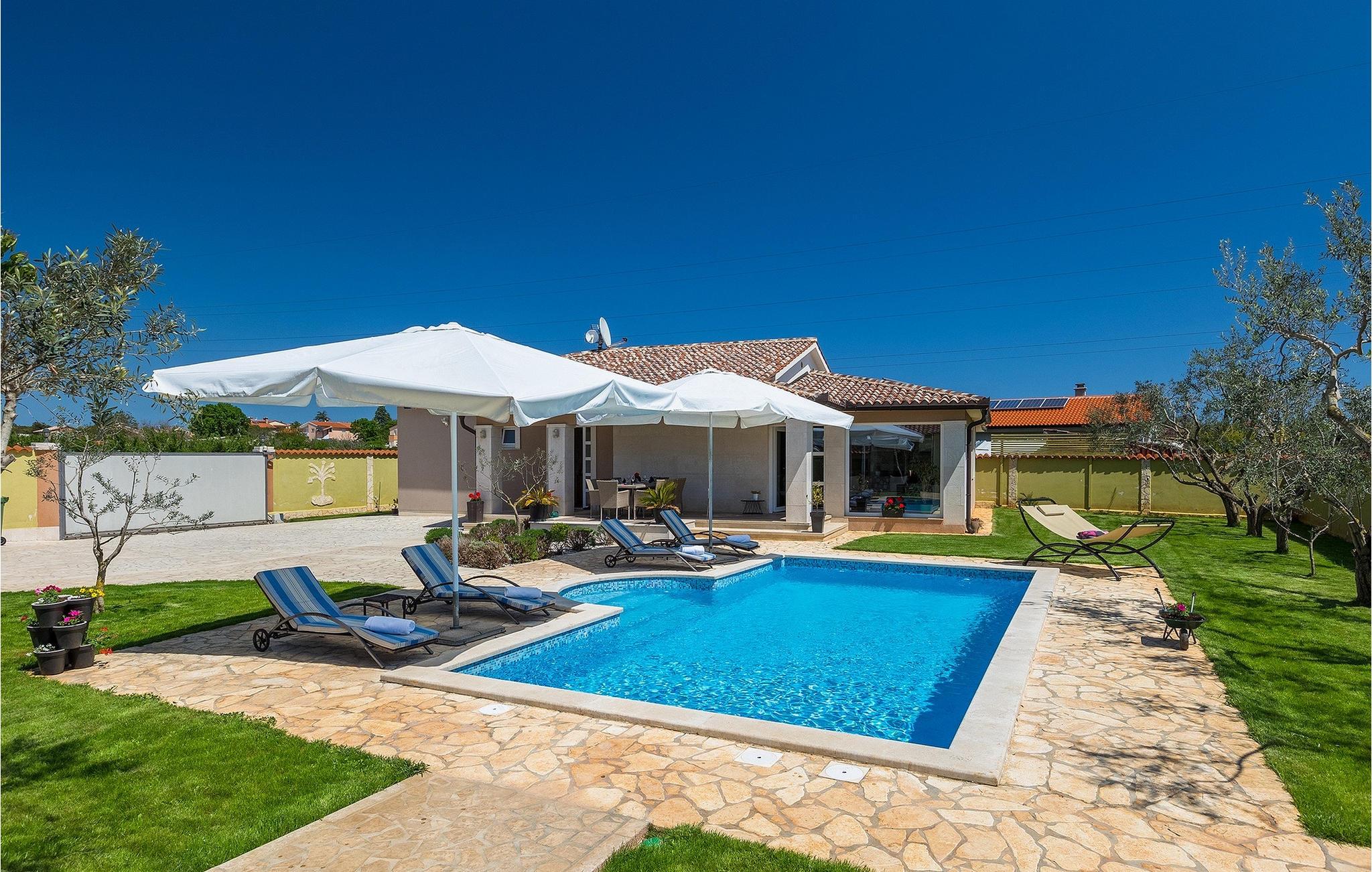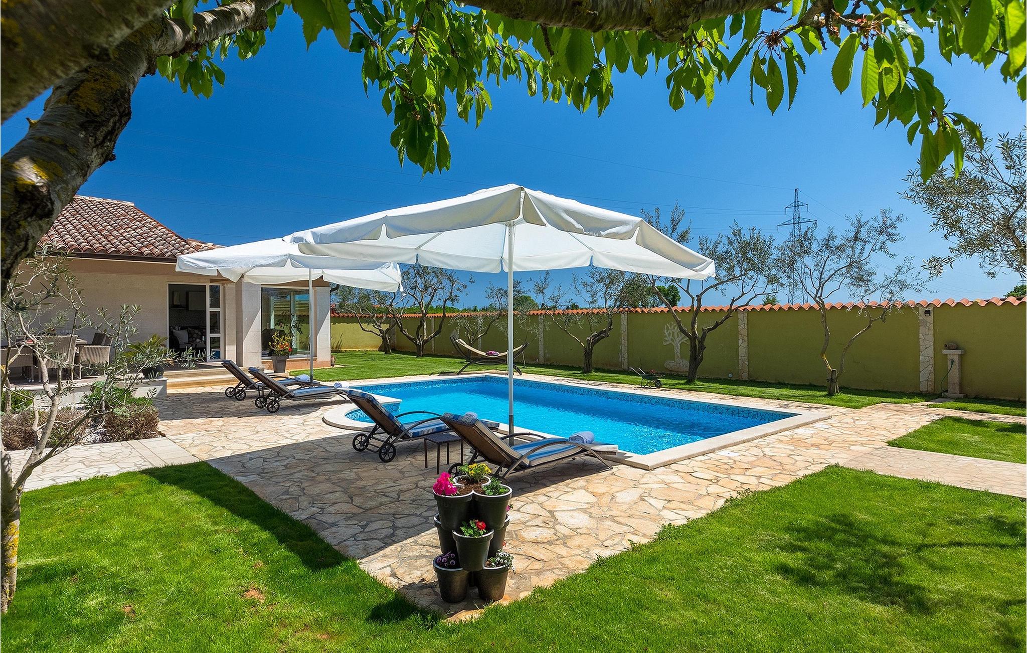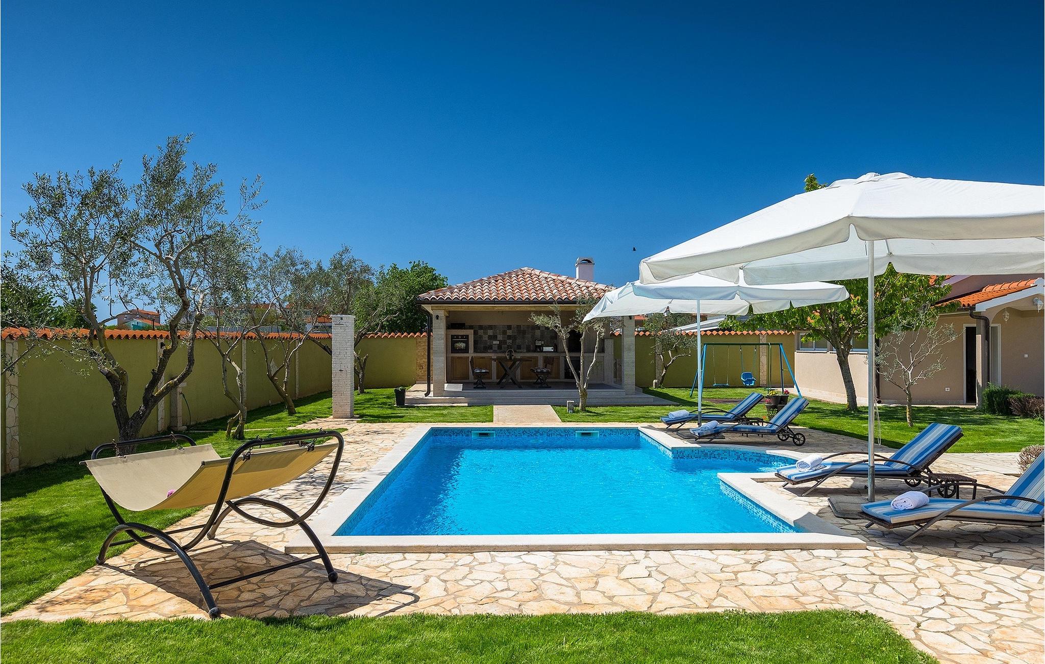 Denne smukke villa er beliggende i udkanten af Pula by, kun 5 minutter fra byens centrum samt de hvide stenstrande. Ejendommen er i en ensom position, hvilket giver mulighed for perfekt ro og privatliv. Udenfor finder du en dejlig indhegnet have med en god størrelse pool. En legeplads samt et al fresco spiseområde med et ekstra køkken inklusive en stenbygget grill står til din rådighed. På verandaen er der nogle loungemøbler til en morgenkop kaffe. Interiøret er smukt dekoreret og er oversvømmet med lys med glasvægge med udsigt til haven/poolområdet. Der er også et separat tv/medieområde. Alt er på en etage, så det er ideelt til små børn, eller hvis du har gæster, der har problemer med at bevæge sig op og ned af trapperne. Der er 4 soveværelser. Tre dobbeltværelser og en med 3 enkeltsenge. For ekstra kapacitet kan du bruge en sovesofa i stuen. Pula er turistcentrum i Istrien, hvad angår kultur, tradition og smuk natur. Det havde sine storhedstid i romertiden. Romerne efterlod sig mange spor, især det fine amfiteater. I den venetianske periode udviklede Pula sig til at være Adriaterhavets kontrolcenter, og i løbet af århundrederne udviklede byens havn sig til den vigtigste havn i regionen. Pula tilbyder alle former for fritidsaktiviteter, herunder sportsfaciliteter, natklubber, kasinoer, pubber og restauranter og organiserede udflugter. Byen har to passagerhavne, begge meget vigtige for krydstogtsturismen. I dag repræsenterer Pula et sted, hvor en afslappende ferie ved den smukke kyst og tæt på krystalvandet kan kombineres med legender og minder om en rig historie. Uspoleret skov, smukke strande og middelhavsklimaet gør dette sted til en meget attraktiv destination for kystelskere. Overalt kan du nyde naturen, for eksempel ved Plitvice-søerne og de berømte vandfald, eller på Brioni-øerne med sin enestående flora og fauna, som gør den til Middelhavets nordligste eksotiske oase.