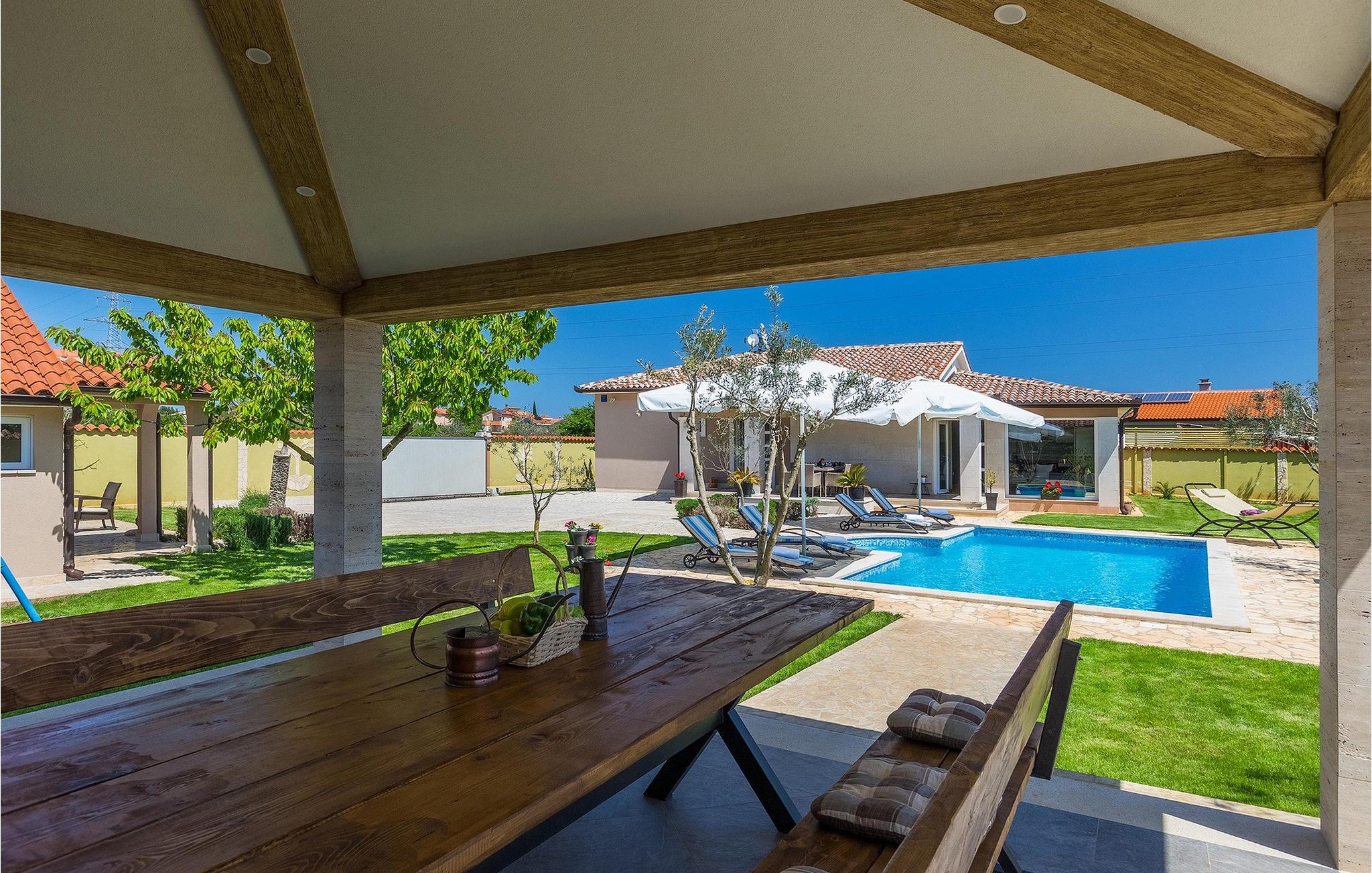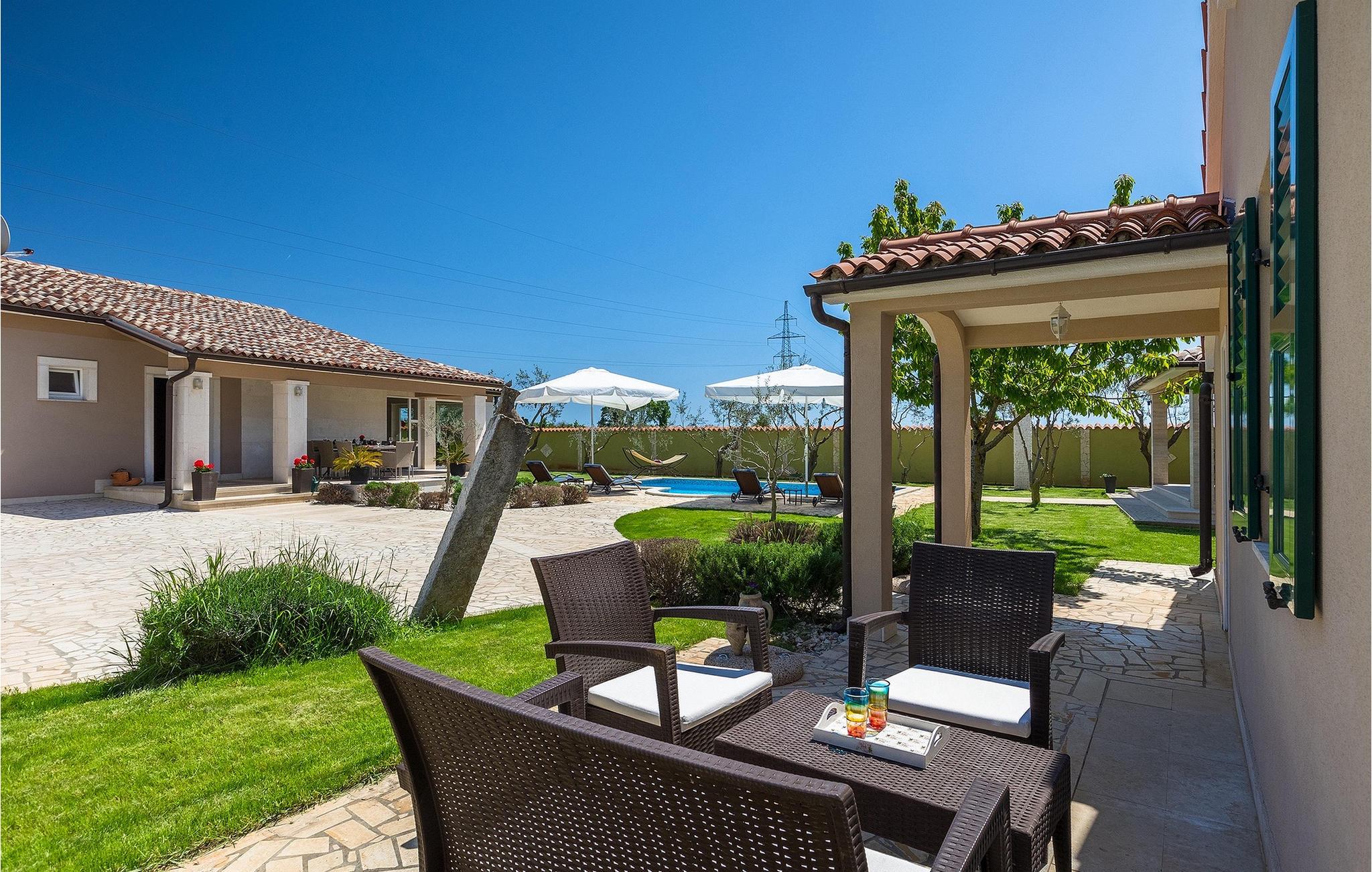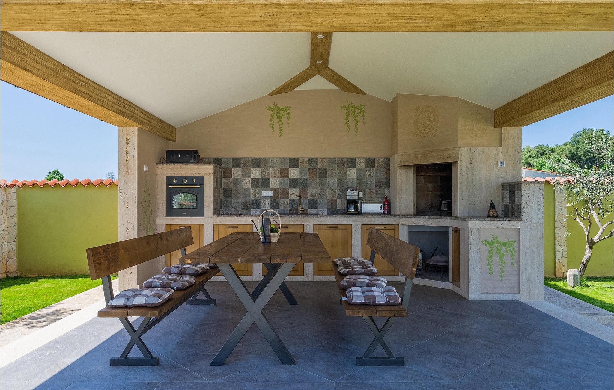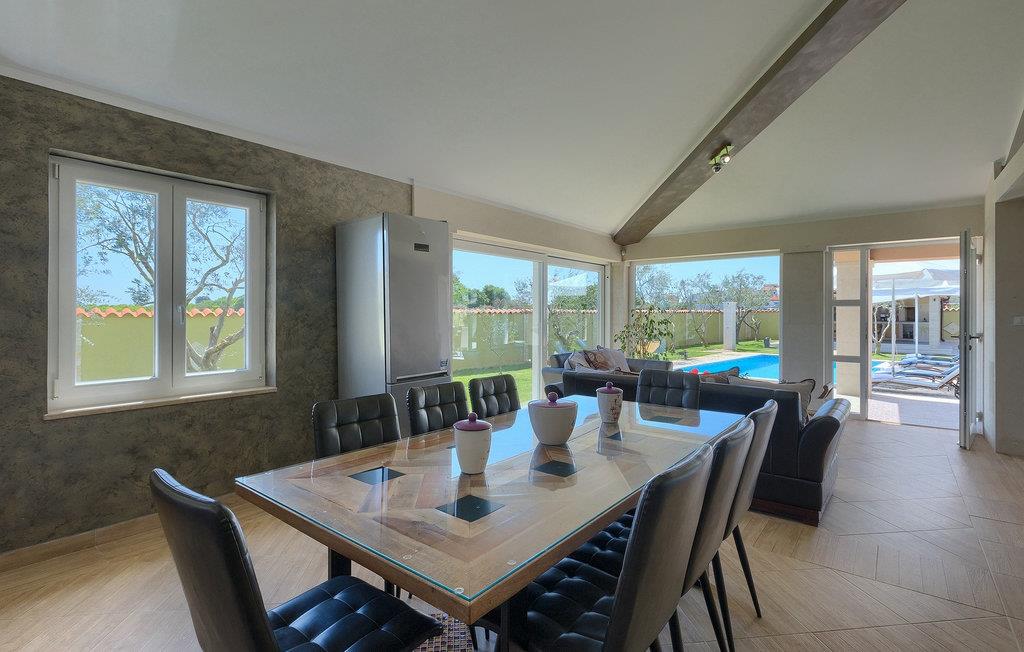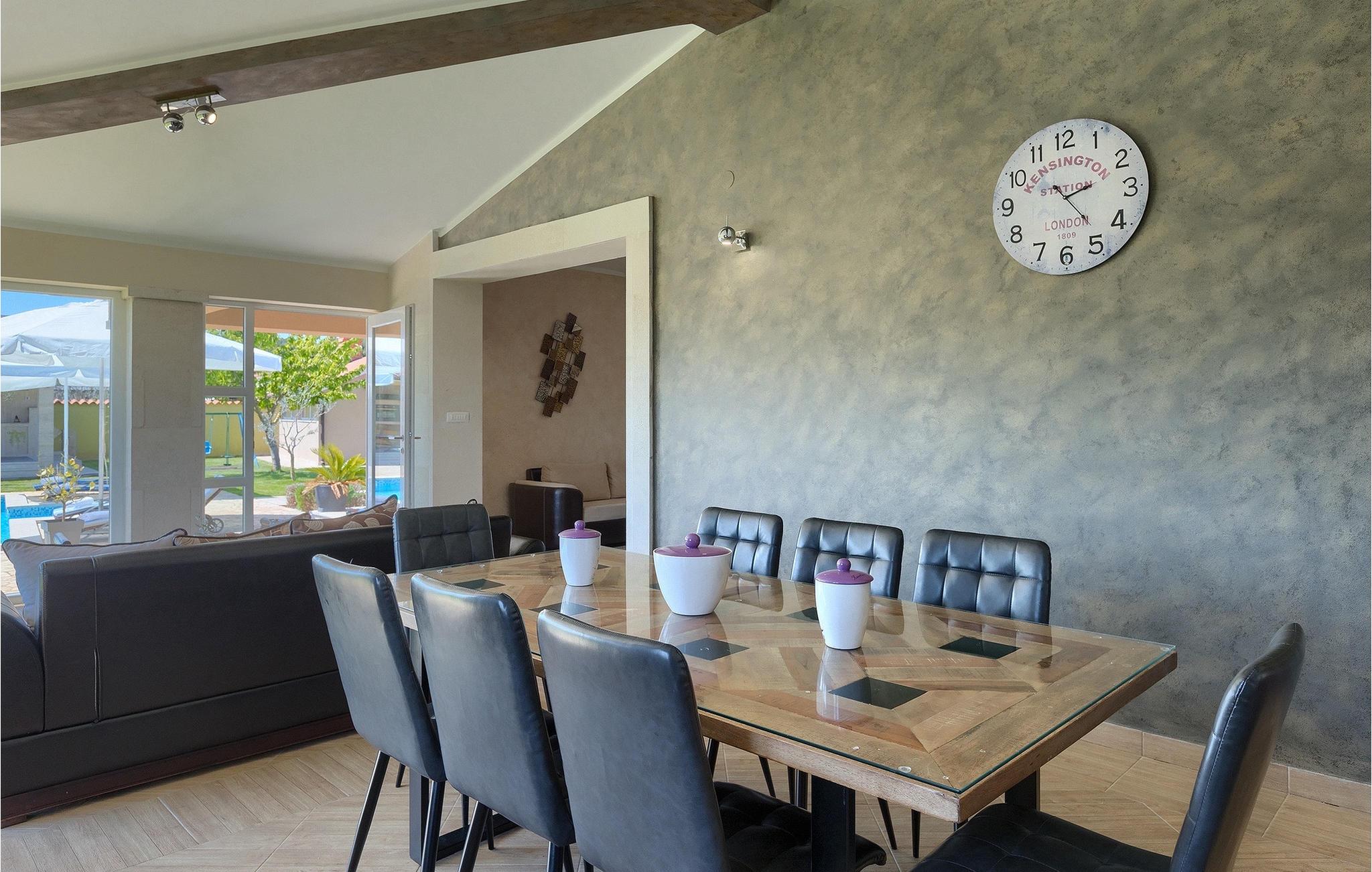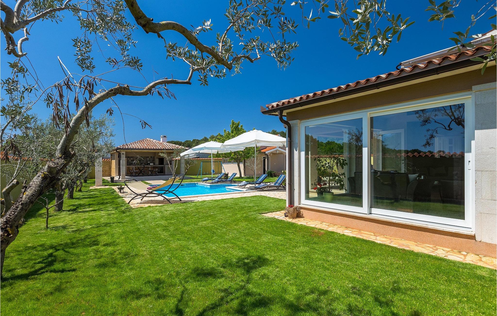 Denne smukke villa er beliggende i udkanten af Pula by, kun 5 minutter fra byens centrum samt de hvide stenstrande. Ejendommen er i en ensom position, hvilket giver mulighed for perfekt ro og privatliv. Udenfor finder du en dejlig indhegnet have med en god størrelse pool. En legeplads samt et al fresco spiseområde med et ekstra køkken inklusive en stenbygget grill står til din rådighed. På verandaen er der nogle loungemøbler til en morgenkop kaffe. Interiøret er smukt dekoreret og er oversvømmet med lys med glasvægge med udsigt til haven/poolområdet. Der er også et separat tv/medieområde. Alt er på en etage, så det er ideelt til små børn, eller hvis du har gæster, der har problemer med at bevæge sig op og ned af trapperne. Der er 4 soveværelser. Tre dobbeltværelser og en med 3 enkeltsenge. For ekstra kapacitet kan du bruge en sovesofa i stuen. Pula er turistcentrum i Istrien, hvad angår kultur, tradition og smuk natur. Det havde sine storhedstid i romertiden. Romerne efterlod sig mange spor, især det fine amfiteater. I den venetianske periode udviklede Pula sig til at være Adriaterhavets kontrolcenter, og i løbet af århundrederne udviklede byens havn sig til den vigtigste havn i regionen. Pula tilbyder alle former for fritidsaktiviteter, herunder sportsfaciliteter, natklubber, kasinoer, pubber og restauranter og organiserede udflugter. Byen har to passagerhavne, begge meget vigtige for krydstogtsturismen. I dag repræsenterer Pula et sted, hvor en afslappende ferie ved den smukke kyst og tæt på krystalvandet kan kombineres med legender og minder om en rig historie. Uspoleret skov, smukke strande og middelhavsklimaet gør dette sted til en meget attraktiv destination for kystelskere. Overalt kan du nyde naturen, for eksempel ved Plitvice-søerne og de berømte vandfald, eller på Brioni-øerne med sin enestående flora og fauna, som gør den til Middelhavets nordligste eksotiske oase.