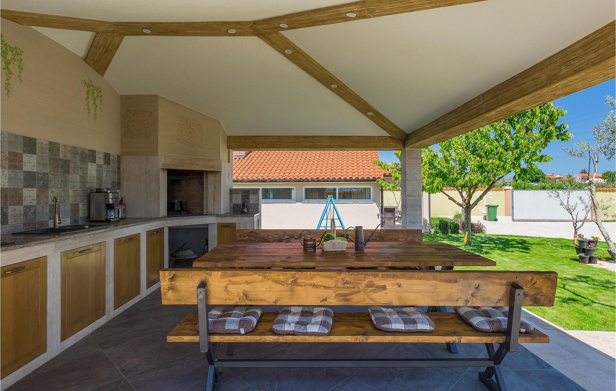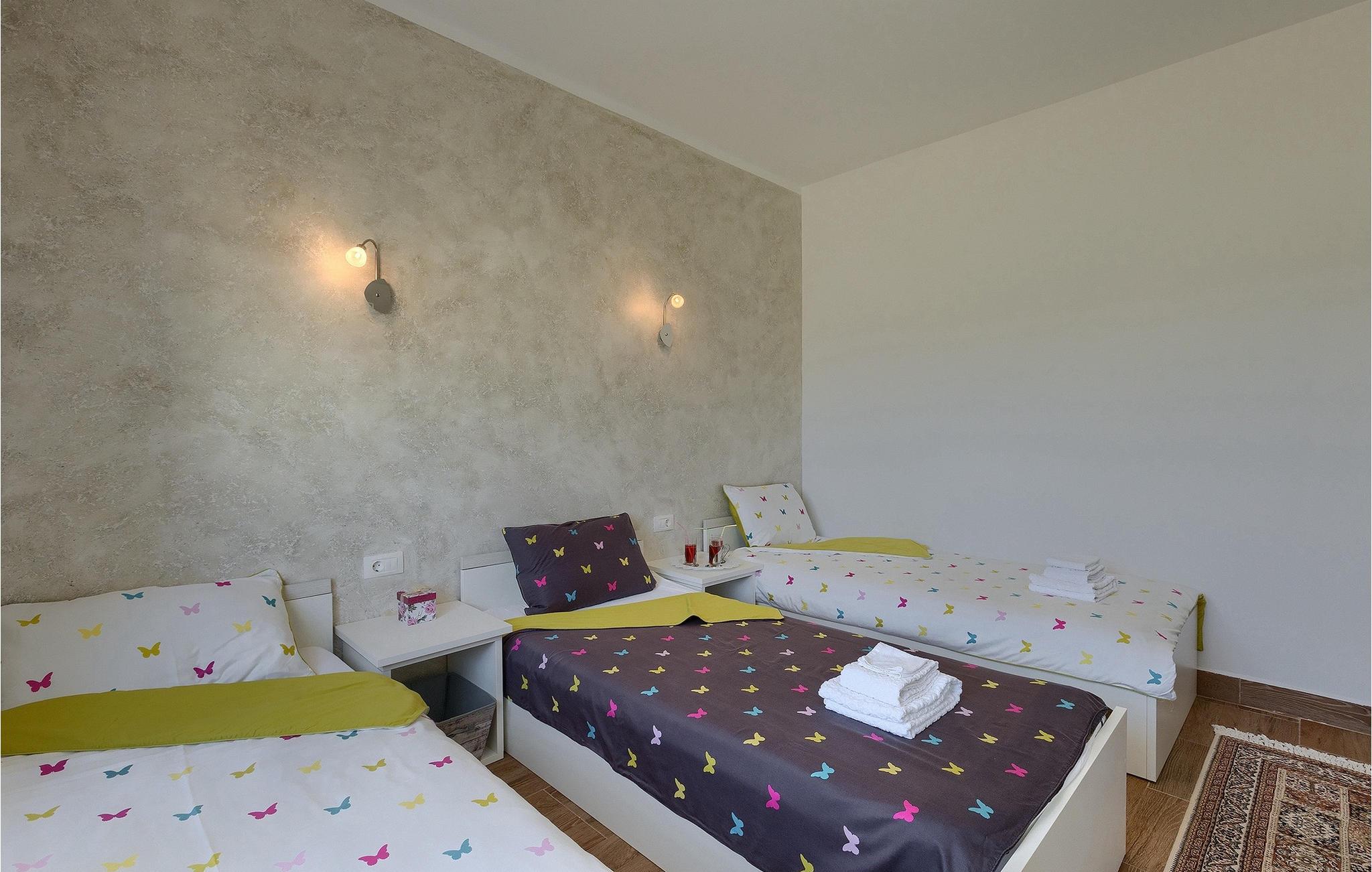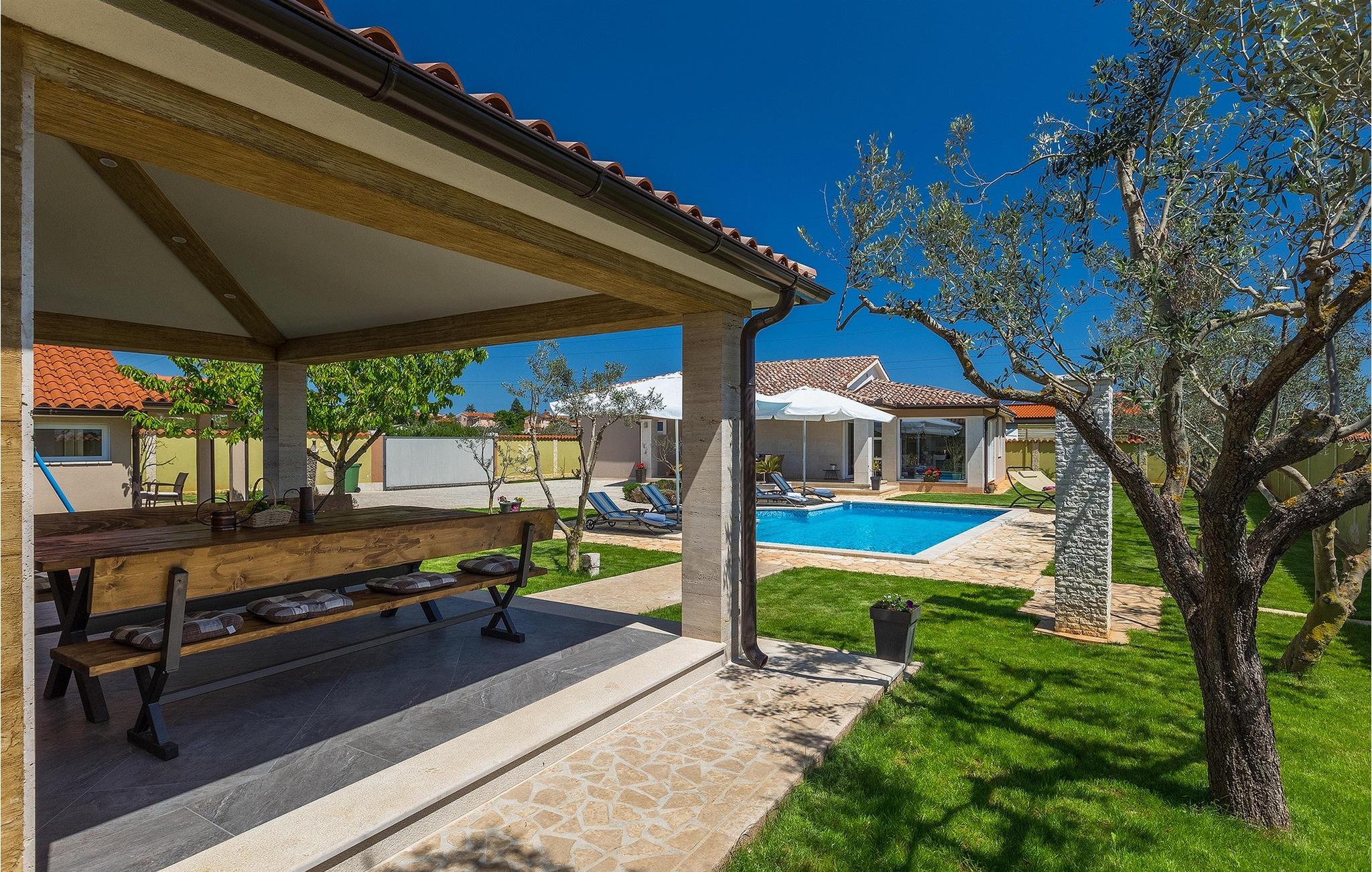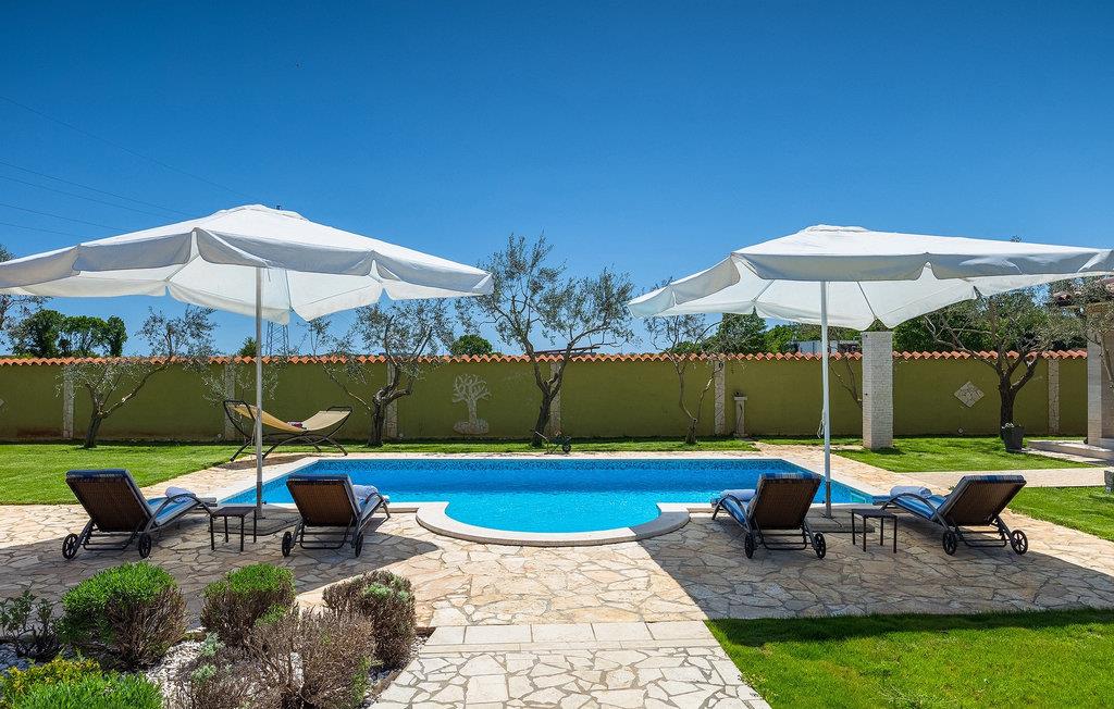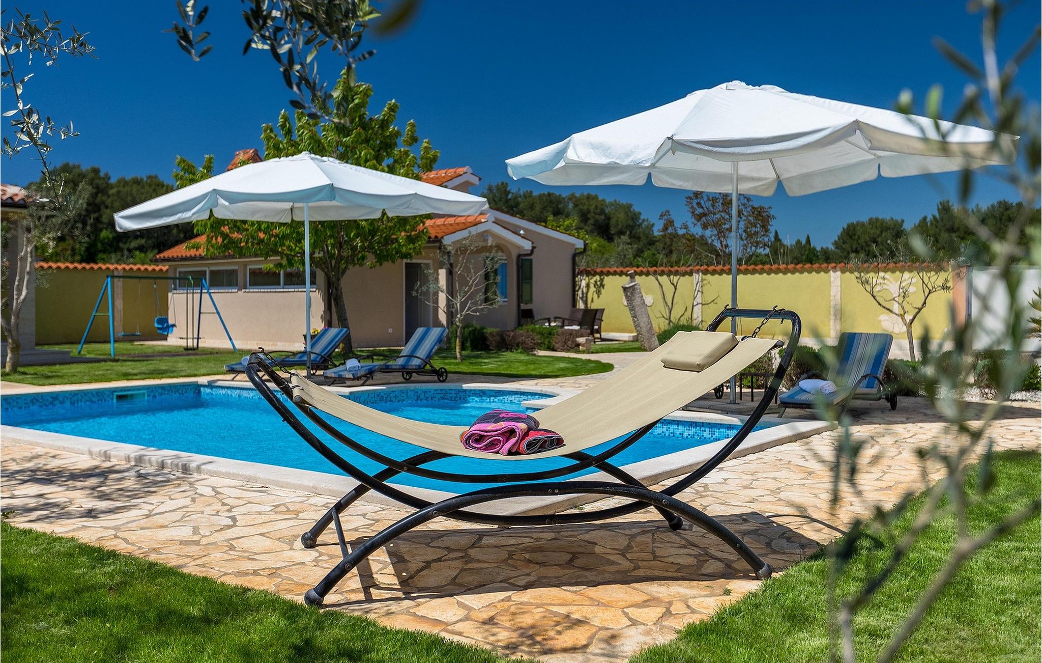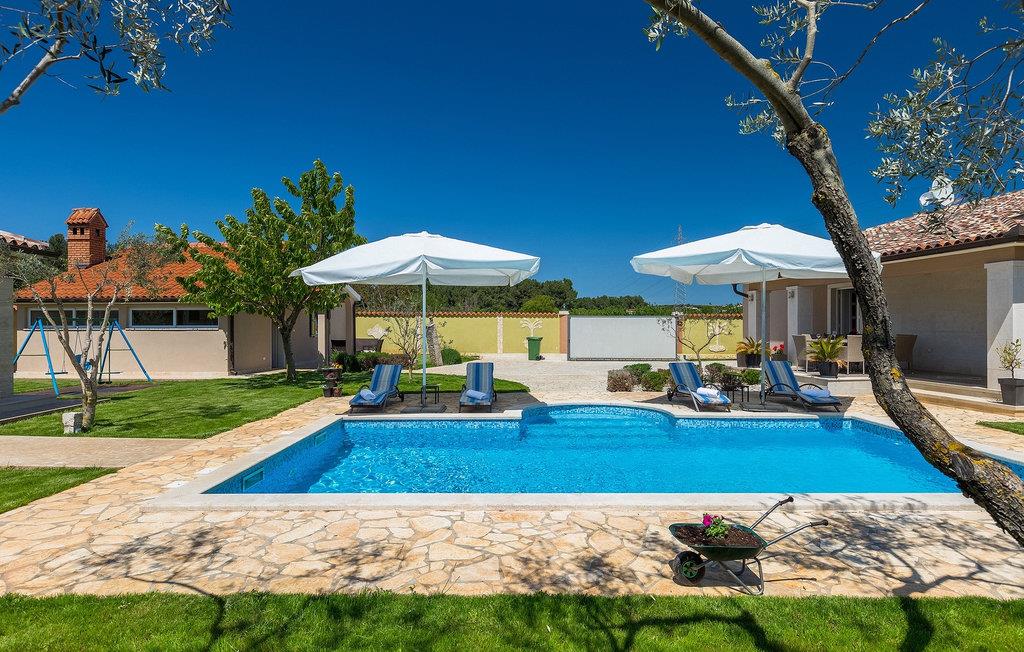 Denne smukke villa er beliggende i udkanten af Pula by, kun 5 minutter fra byens centrum samt de hvide stenstrande. Ejendommen er i en ensom position, hvilket giver mulighed for perfekt ro og privatliv. Udenfor finder du en dejlig indhegnet have med en god størrelse pool. En legeplads samt et al fresco spiseområde med et ekstra køkken inklusive en stenbygget grill står til din rådighed. På verandaen er der nogle loungemøbler til en morgenkop kaffe. Interiøret er smukt dekoreret og er oversvømmet med lys med glasvægge med udsigt til haven/poolområdet. Der er også et separat tv/medieområde. Alt er på en etage, så det er ideelt til små børn, eller hvis du har gæster, der har problemer med at bevæge sig op og ned af trapperne. Der er 4 soveværelser. Tre dobbeltværelser og en med 3 enkeltsenge. For ekstra kapacitet kan du bruge en sovesofa i stuen. Pula er turistcentrum i Istrien, hvad angår kultur, tradition og smuk natur. Det havde sine storhedstid i romertiden. Romerne efterlod sig mange spor, især det fine amfiteater. I den venetianske periode udviklede Pula sig til at være Adriaterhavets kontrolcenter, og i løbet af århundrederne udviklede byens havn sig til den vigtigste havn i regionen. Pula tilbyder alle former for fritidsaktiviteter, herunder sportsfaciliteter, natklubber, kasinoer, pubber og restauranter og organiserede udflugter. Byen har to passagerhavne, begge meget vigtige for krydstogtsturismen. I dag repræsenterer Pula et sted, hvor en afslappende ferie ved den smukke kyst og tæt på krystalvandet kan kombineres med legender og minder om en rig historie. Uspoleret skov, smukke strande og middelhavsklimaet gør dette sted til en meget attraktiv destination for kystelskere. Overalt kan du nyde naturen, for eksempel ved Plitvice-søerne og de berømte vandfald, eller på Brioni-øerne med sin enestående flora og fauna, som gør den til Middelhavets nordligste eksotiske oase.