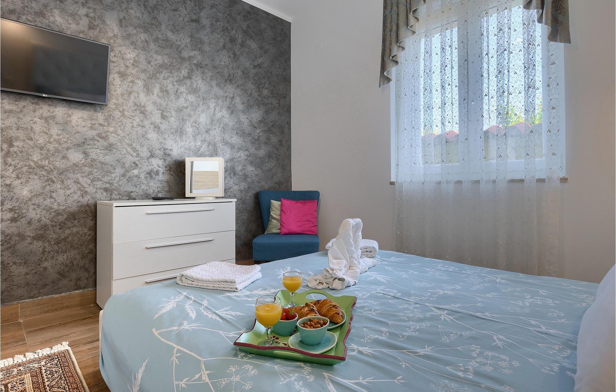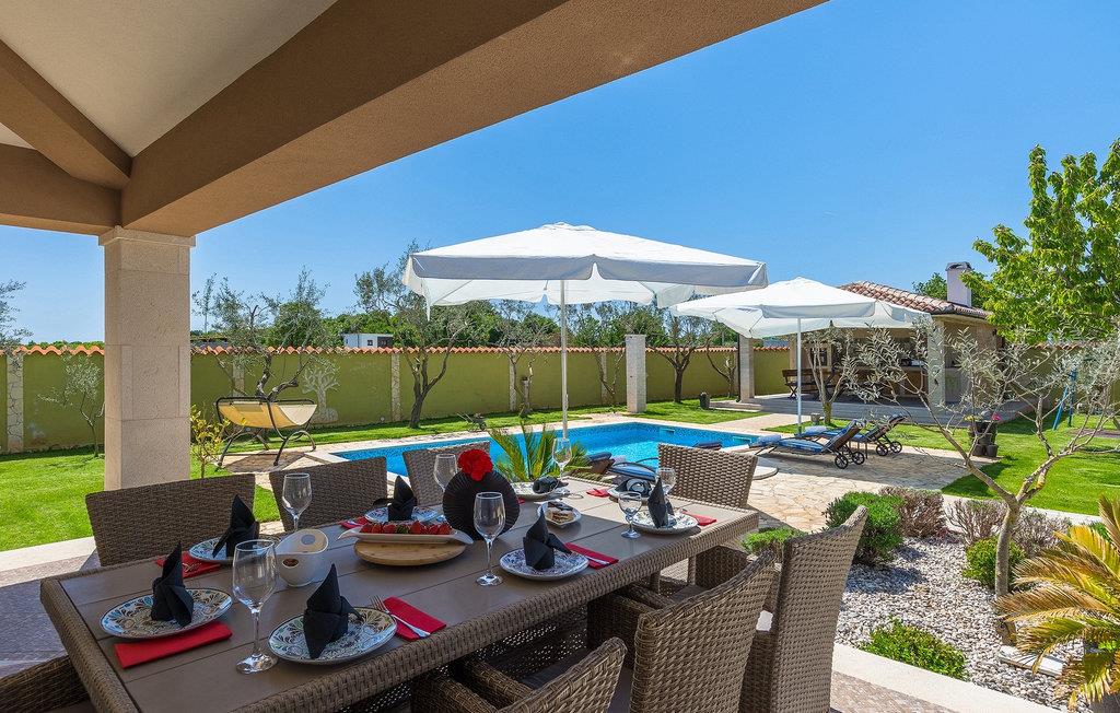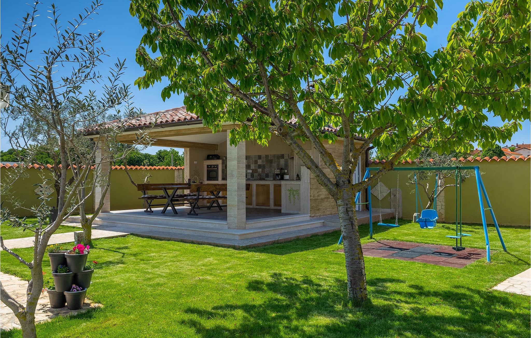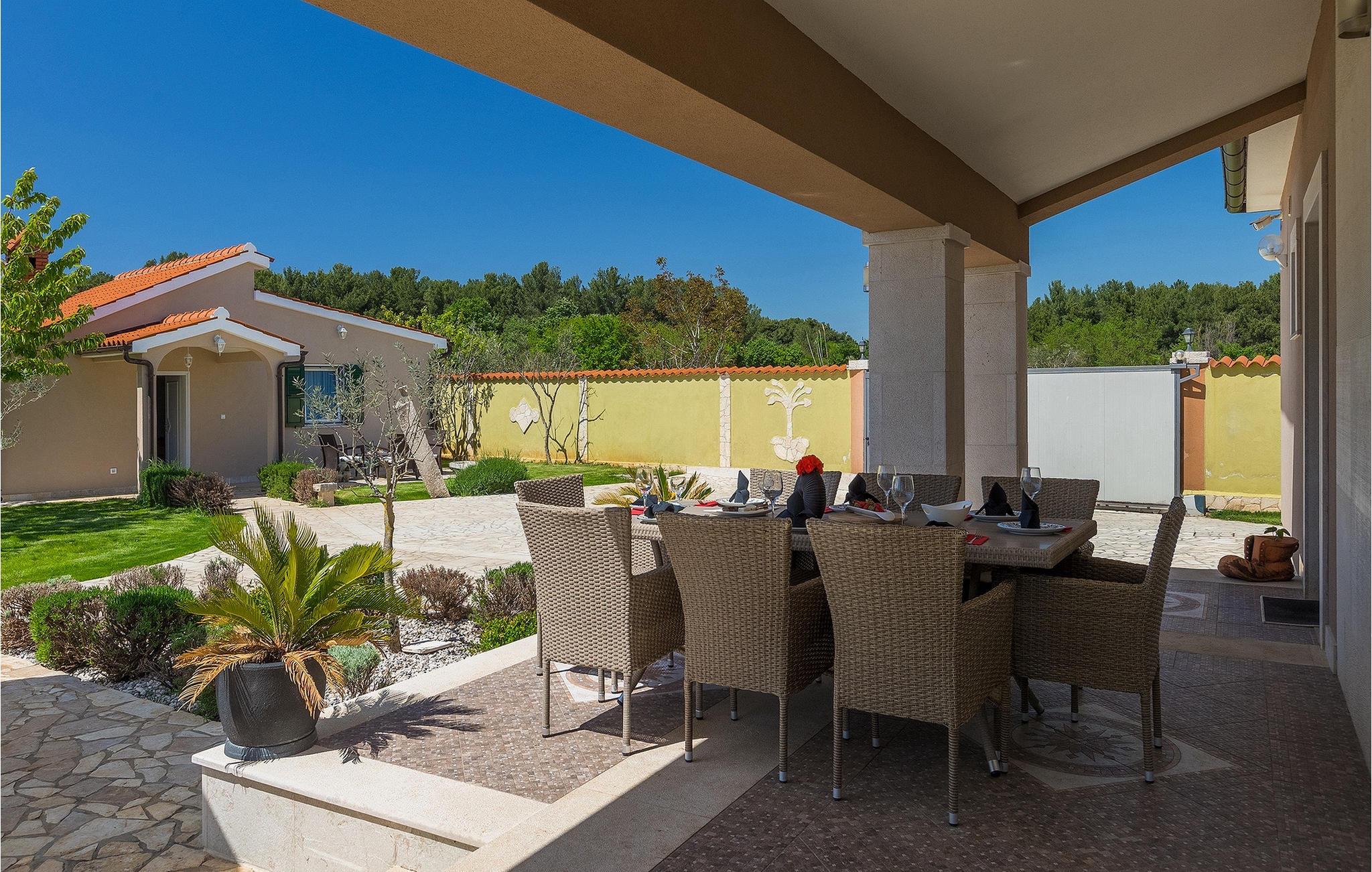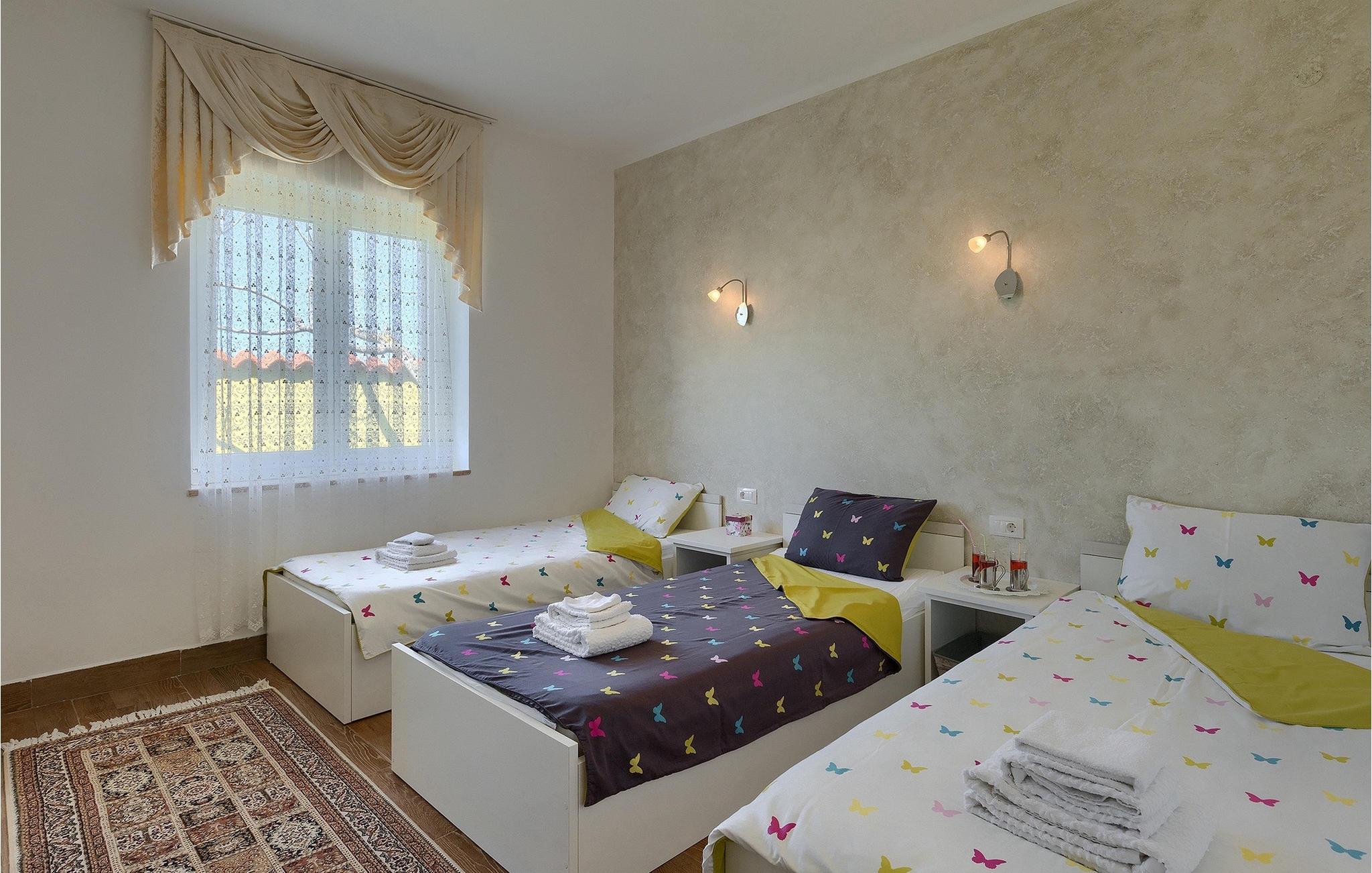 Denne smukke villa er beliggende i udkanten af Pula by, kun 5 minutter fra byens centrum samt de hvide stenstrande. Ejendommen er i en ensom position, hvilket giver mulighed for perfekt ro og privatliv. Udenfor finder du en dejlig indhegnet have med en god størrelse pool. En legeplads samt et al fresco spiseområde med et ekstra køkken inklusive en stenbygget grill står til din rådighed. På verandaen er der nogle loungemøbler til en morgenkop kaffe. Interiøret er smukt dekoreret og er oversvømmet med lys med glasvægge med udsigt til haven/poolområdet. Der er også et separat tv/medieområde. Alt er på en etage, så det er ideelt til små børn, eller hvis du har gæster, der har problemer med at bevæge sig op og ned af trapperne. Der er 4 soveværelser. Tre dobbeltværelser og en med 3 enkeltsenge. For ekstra kapacitet kan du bruge en sovesofa i stuen. Pula er turistcentrum i Istrien, hvad angår kultur, tradition og smuk natur. Det havde sine storhedstid i romertiden. Romerne efterlod sig mange spor, især det fine amfiteater. I den venetianske periode udviklede Pula sig til at være Adriaterhavets kontrolcenter, og i løbet af århundrederne udviklede byens havn sig til den vigtigste havn i regionen. Pula tilbyder alle former for fritidsaktiviteter, herunder sportsfaciliteter, natklubber, kasinoer, pubber og restauranter og organiserede udflugter. Byen har to passagerhavne, begge meget vigtige for krydstogtsturismen. I dag repræsenterer Pula et sted, hvor en afslappende ferie ved den smukke kyst og tæt på krystalvandet kan kombineres med legender og minder om en rig historie. Uspoleret skov, smukke strande og middelhavsklimaet gør dette sted til en meget attraktiv destination for kystelskere. Overalt kan du nyde naturen, for eksempel ved Plitvice-søerne og de berømte vandfald, eller på Brioni-øerne med sin enestående flora og fauna, som gør den til Middelhavets nordligste eksotiske oase.