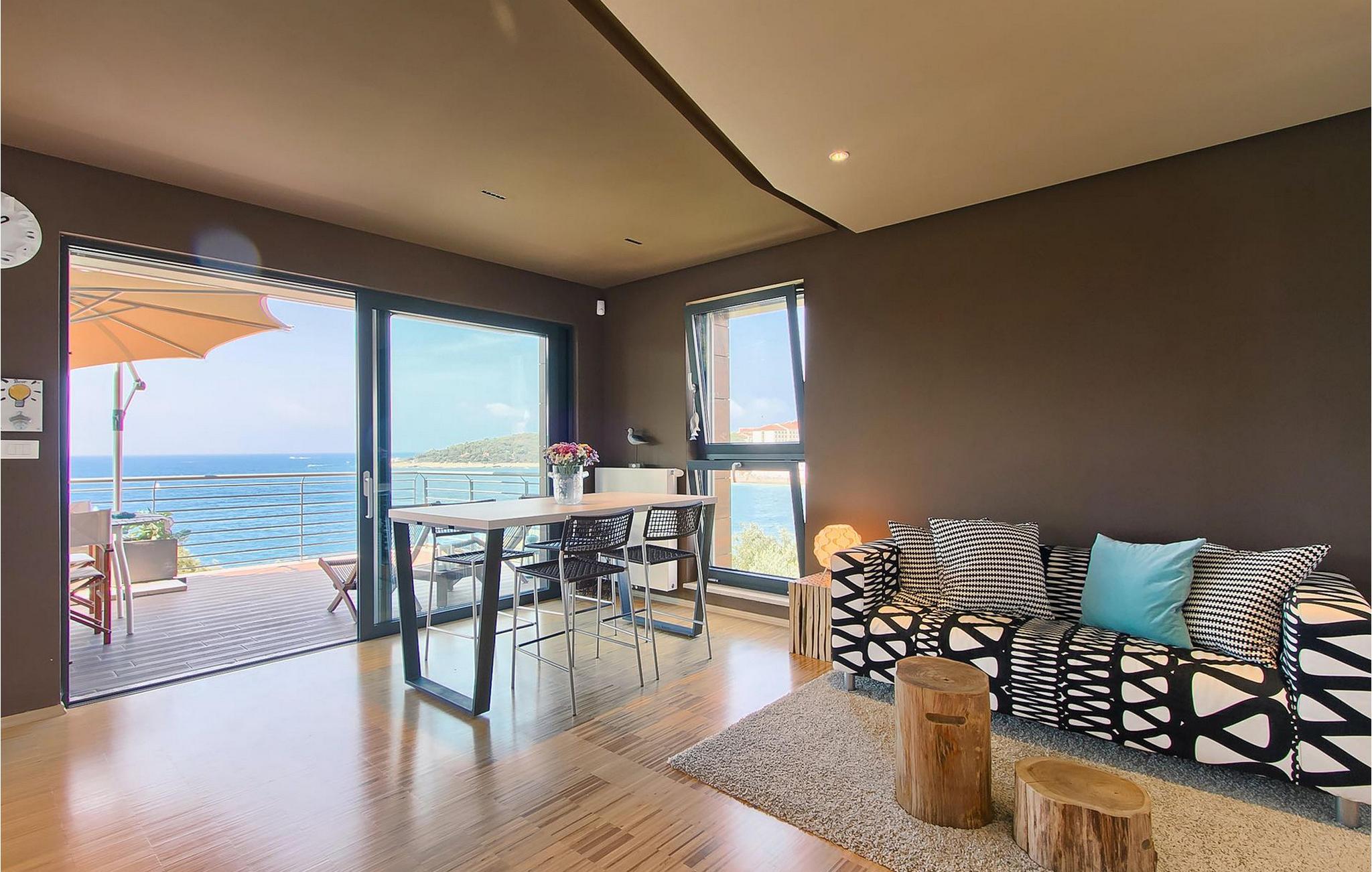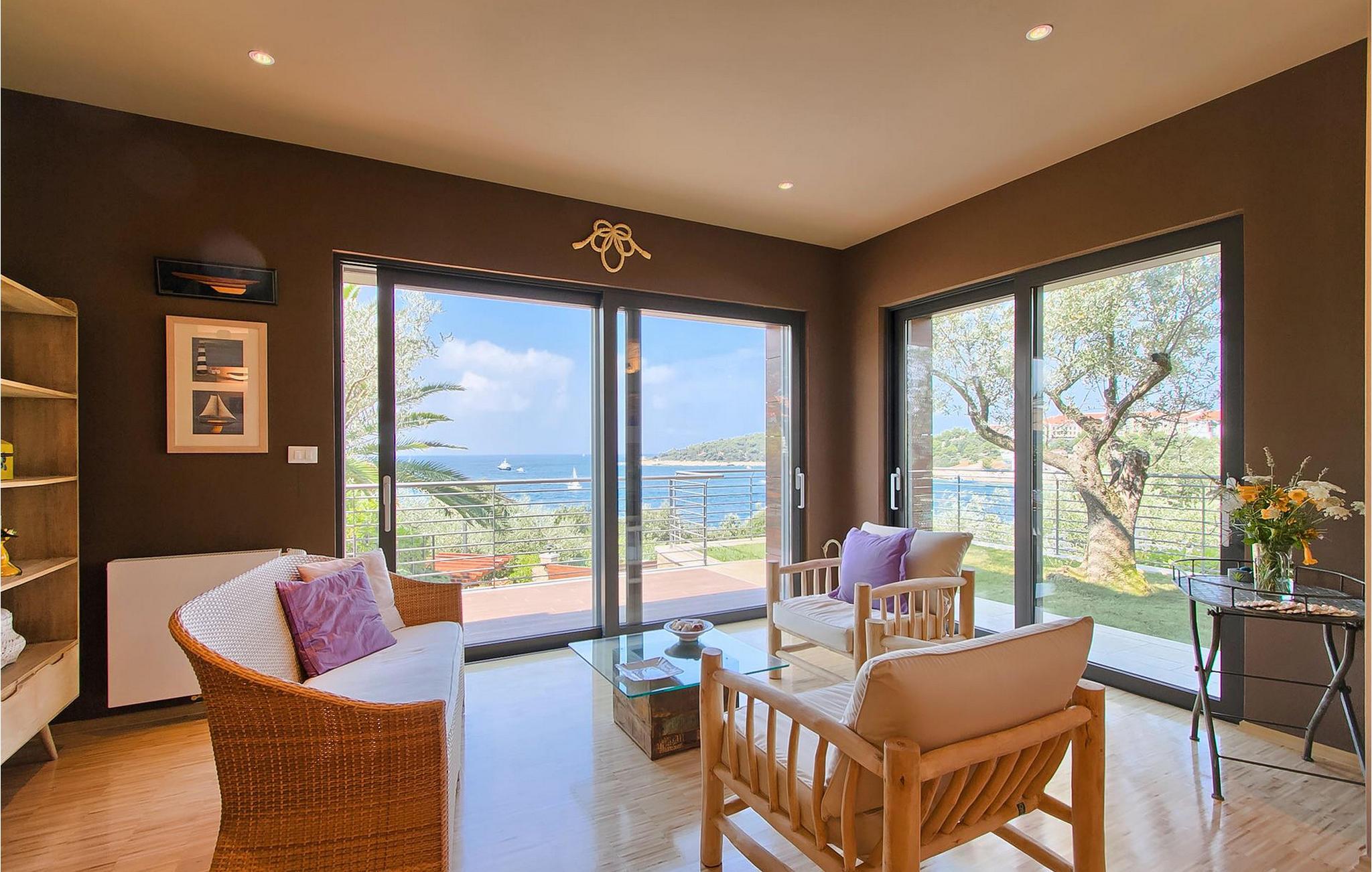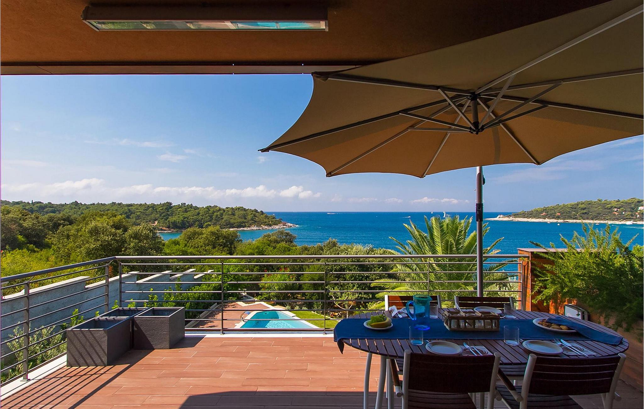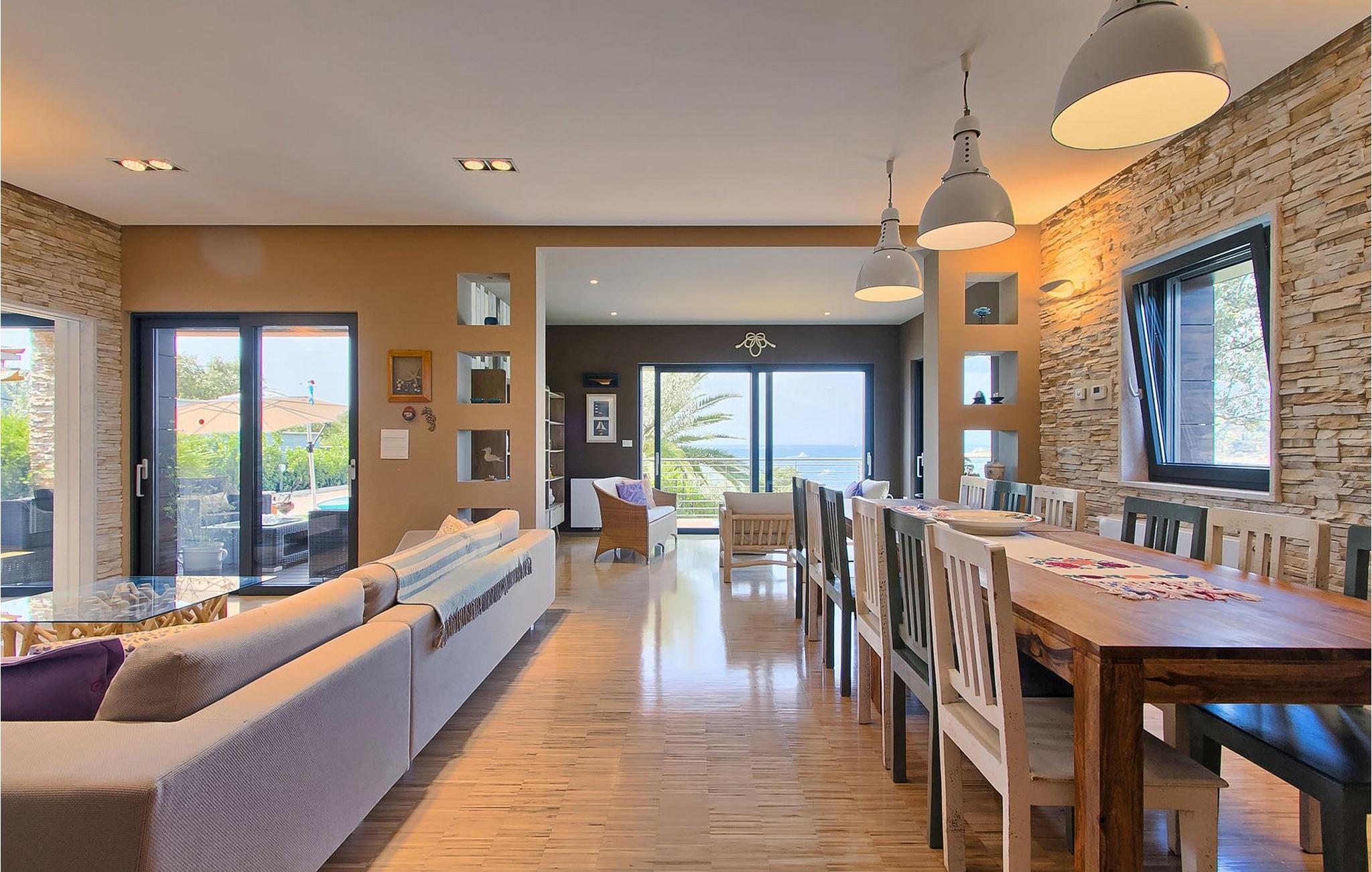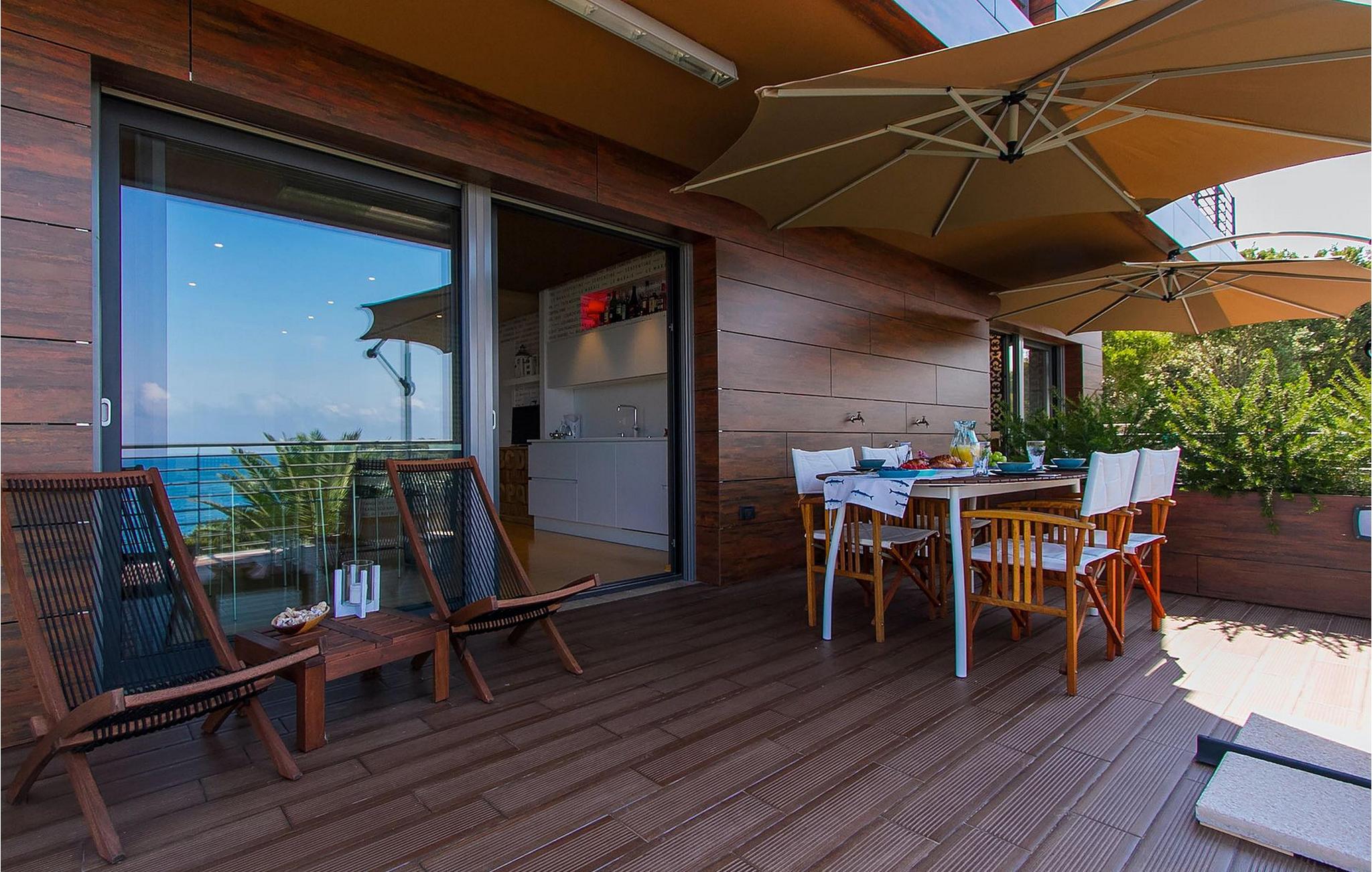 Hvis du leder efter en ferie på en moderne ejendom med privat pool ud til havet, er den luksuriøse villa ved havet Casa G med pool med hydromassage et perfekt valg. Det består af 3 lejligheder i et hus. Lejlighederne udlejes kun samlet som en enhed. Hver lejlighed har 2 soveværelser, 2 badeværelser, et køkken, stue og spisestue. Fra soveværelset til køkkenet var alt møbleret og dekoreret med kærlighed, omhu og stor sans for detaljer. Der er panoramaudsigt over havet fra hver af lejlighederne. De store terrasser og poolen er lavet i højkvalitets moderne design og er blandet med naturlige typiske stenvægge og oliventræer. Udendørsområdet omfatter grønne områder med rolige skyggefulde rum under naturlig middelhavsvegetation og en grillplads med et stort bord til op til 12 personer. Villa Casa G har aircondition, har Wi-Fi, privat parkering til 5 biler og giver alt til en fornøjelig ferie med poolen kun få meter fra stranden.