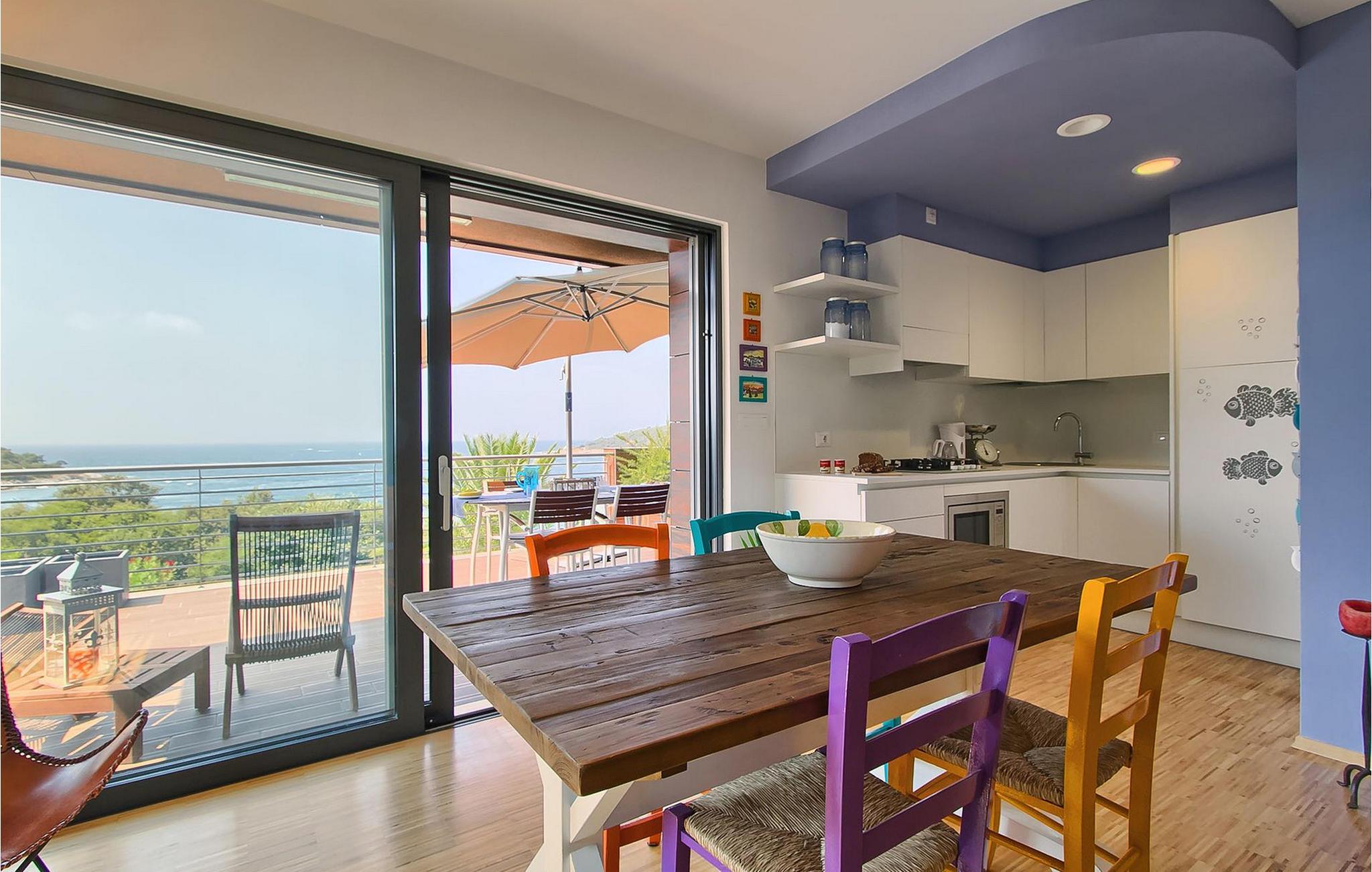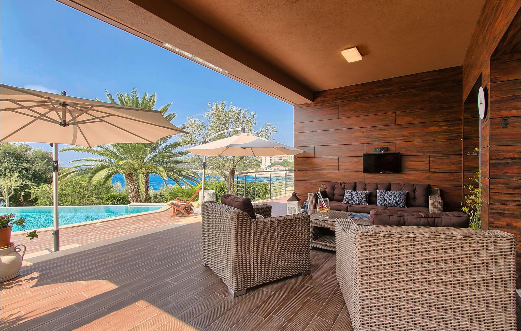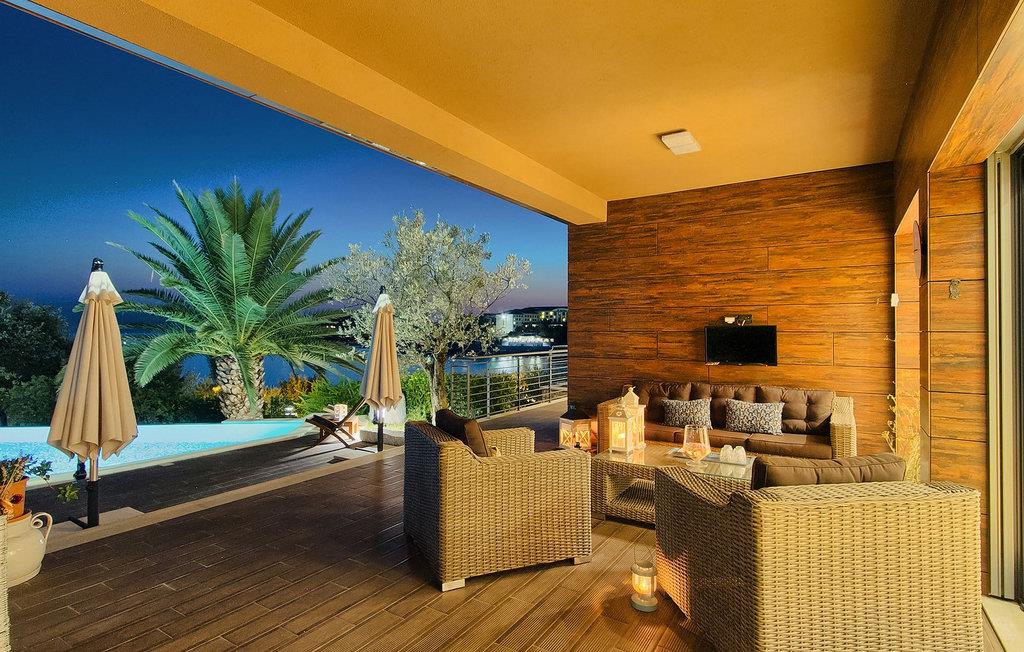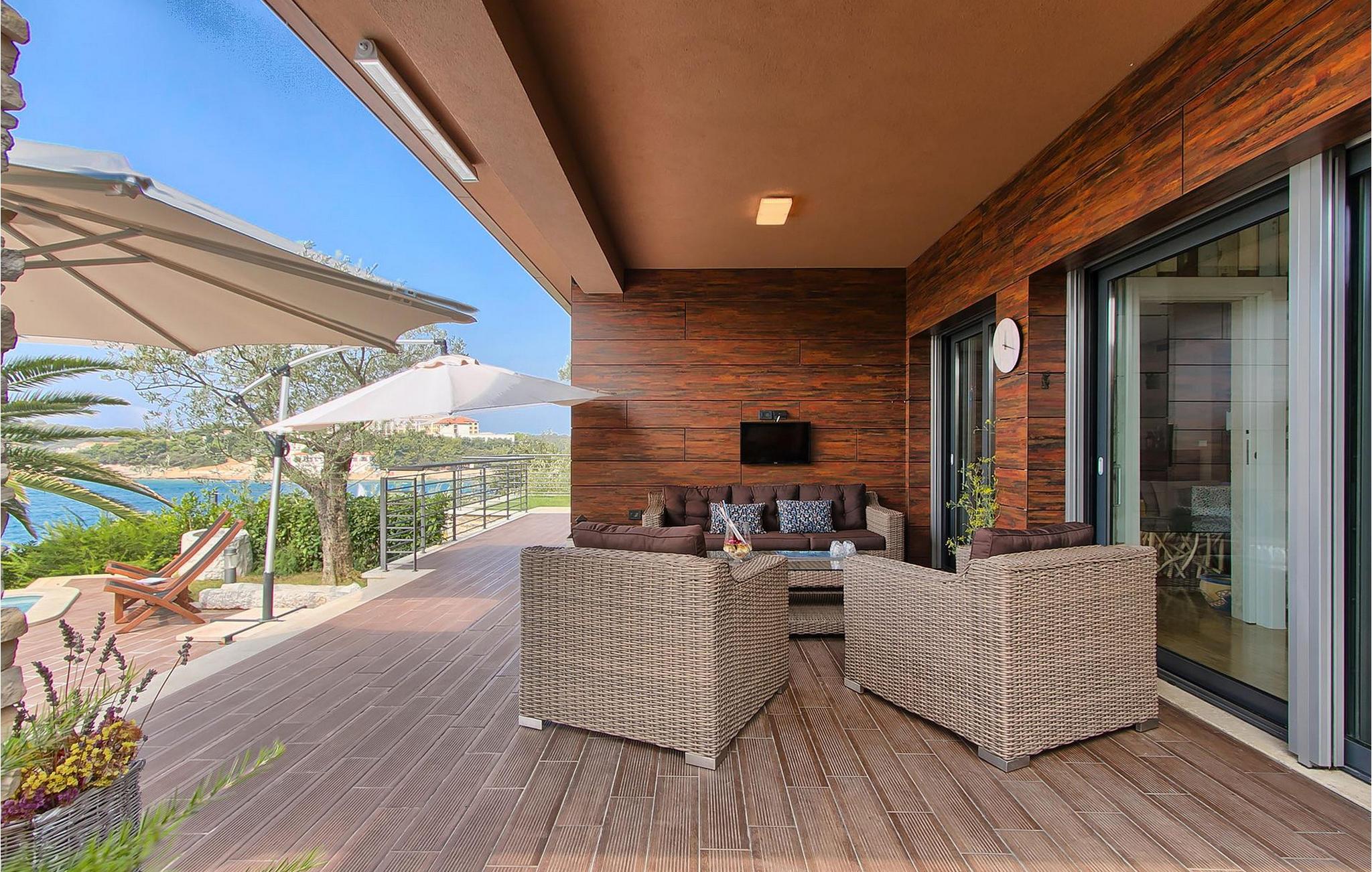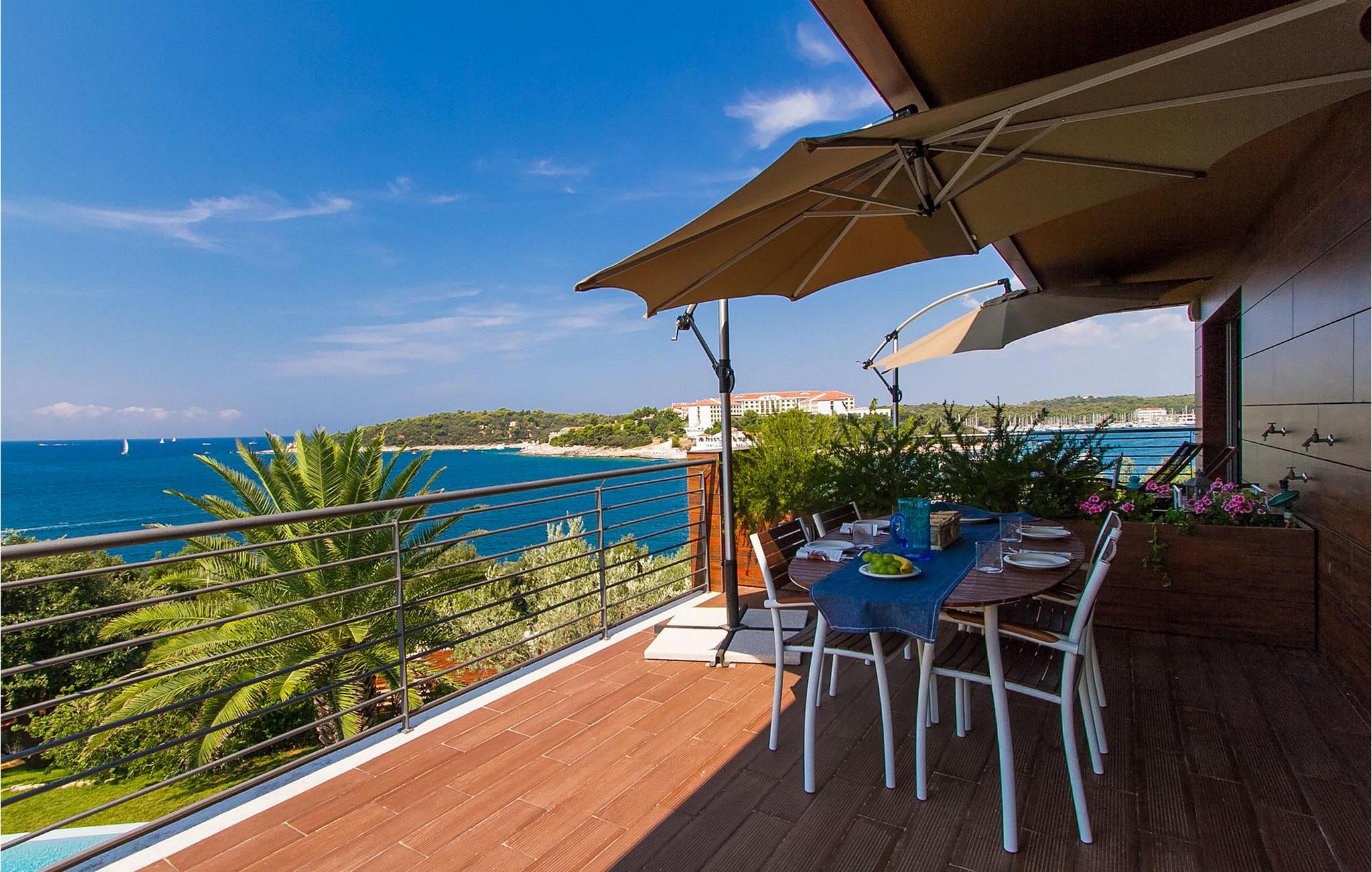 Hvis du leder efter en ferie på en moderne ejendom med privat pool ud til havet, er den luksuriøse villa ved havet Casa G med pool med hydromassage et perfekt valg. Det består af 3 lejligheder i et hus. Lejlighederne udlejes kun samlet som en enhed. Hver lejlighed har 2 soveværelser, 2 badeværelser, et køkken, stue og spisestue. Fra soveværelset til køkkenet var alt møbleret og dekoreret med kærlighed, omhu og stor sans for detaljer. Der er panoramaudsigt over havet fra hver af lejlighederne. De store terrasser og poolen er lavet i højkvalitets moderne design og er blandet med naturlige typiske stenvægge og oliventræer. Udendørsområdet omfatter grønne områder med rolige skyggefulde rum under naturlig middelhavsvegetation og en grillplads med et stort bord til op til 12 personer. Villa Casa G har aircondition, har Wi-Fi, privat parkering til 5 biler og giver alt til en fornøjelig ferie med poolen kun få meter fra stranden.