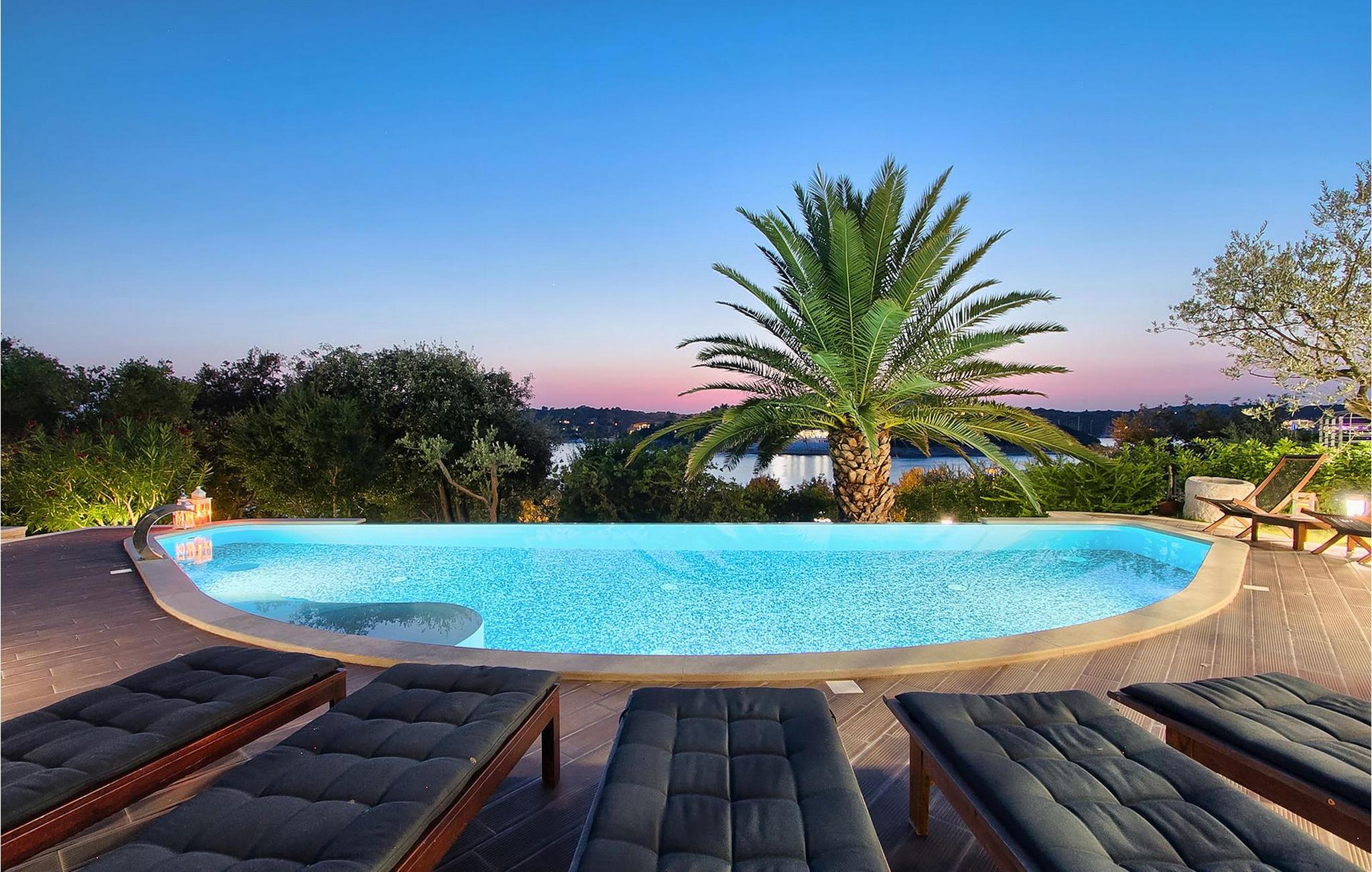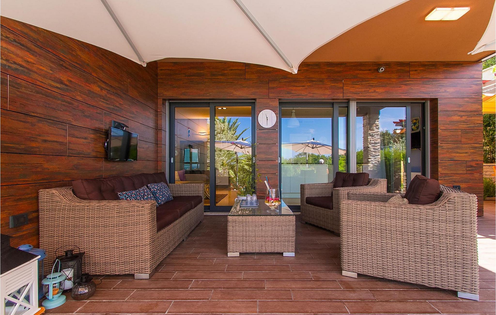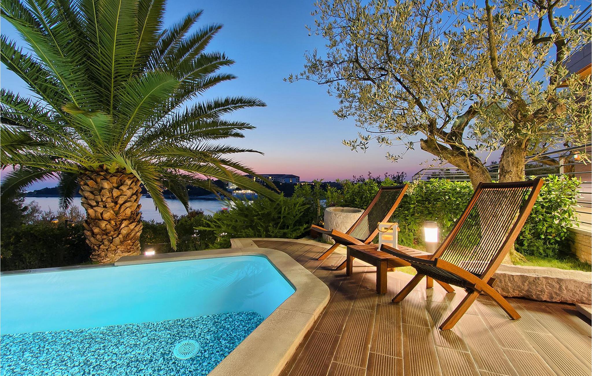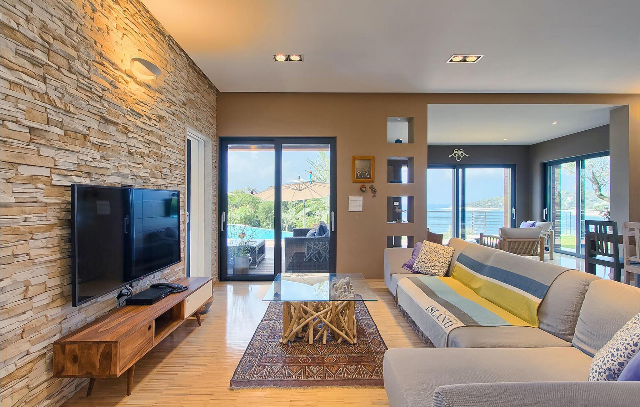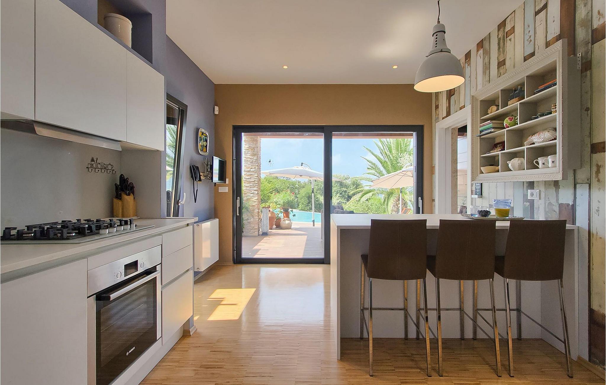 Hvis du leder efter en ferie på en moderne ejendom med privat pool ud til havet, er den luksuriøse villa ved havet Casa G med pool med hydromassage et perfekt valg. Det består af 3 lejligheder i et hus. Lejlighederne udlejes kun samlet som en enhed. Hver lejlighed har 2 soveværelser, 2 badeværelser, et køkken, stue og spisestue. Fra soveværelset til køkkenet var alt møbleret og dekoreret med kærlighed, omhu og stor sans for detaljer. Der er panoramaudsigt over havet fra hver af lejlighederne. De store terrasser og poolen er lavet i højkvalitets moderne design og er blandet med naturlige typiske stenvægge og oliventræer. Udendørsområdet omfatter grønne områder med rolige skyggefulde rum under naturlig middelhavsvegetation og en grillplads med et stort bord til op til 12 personer. Villa Casa G har aircondition, har Wi-Fi, privat parkering til 5 biler og giver alt til en fornøjelig ferie med poolen kun få meter fra stranden.