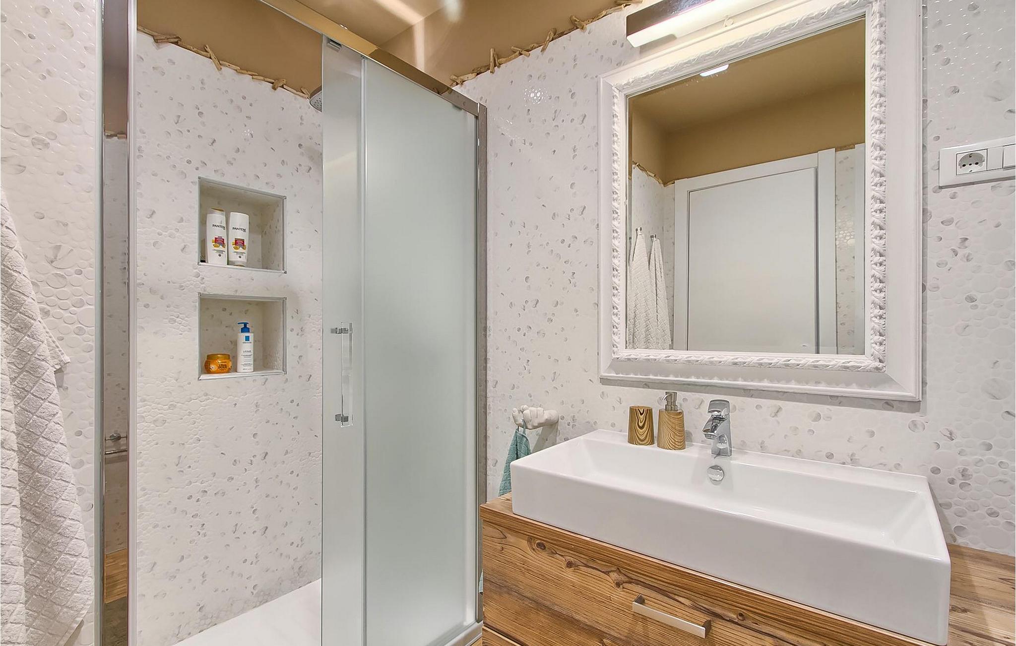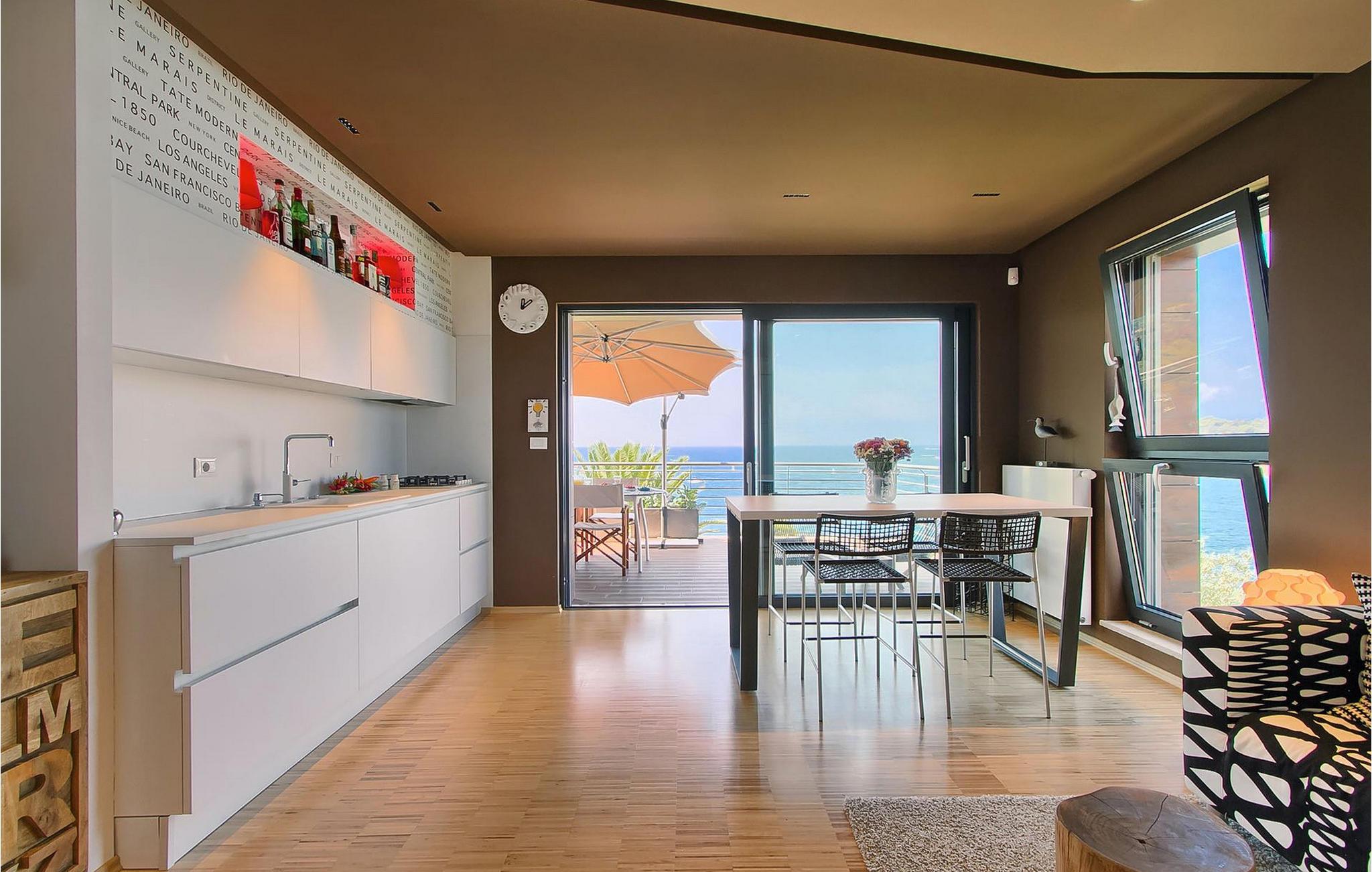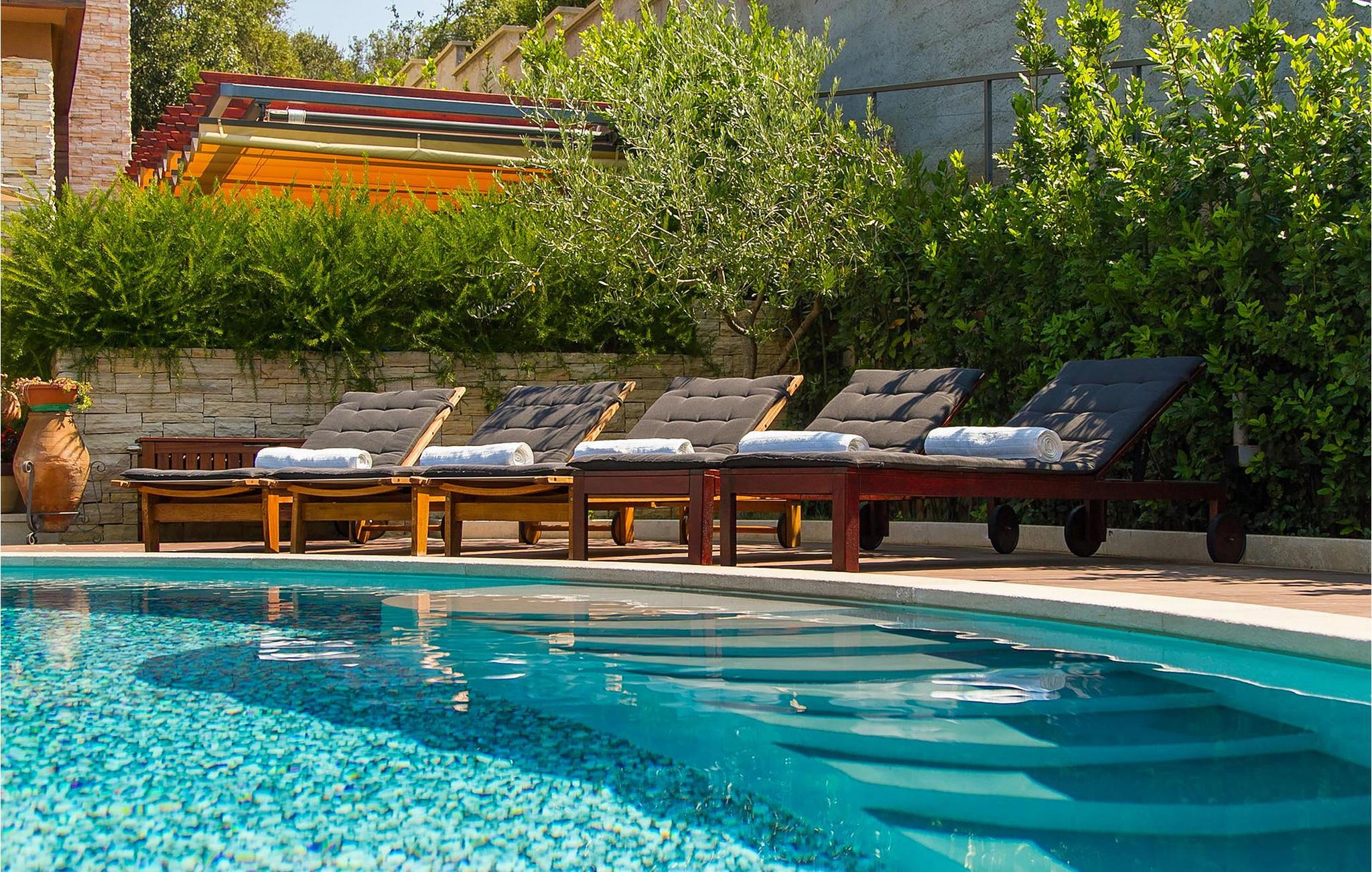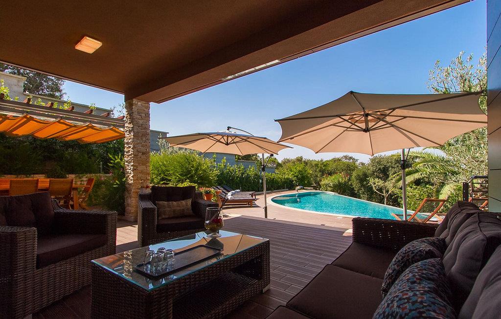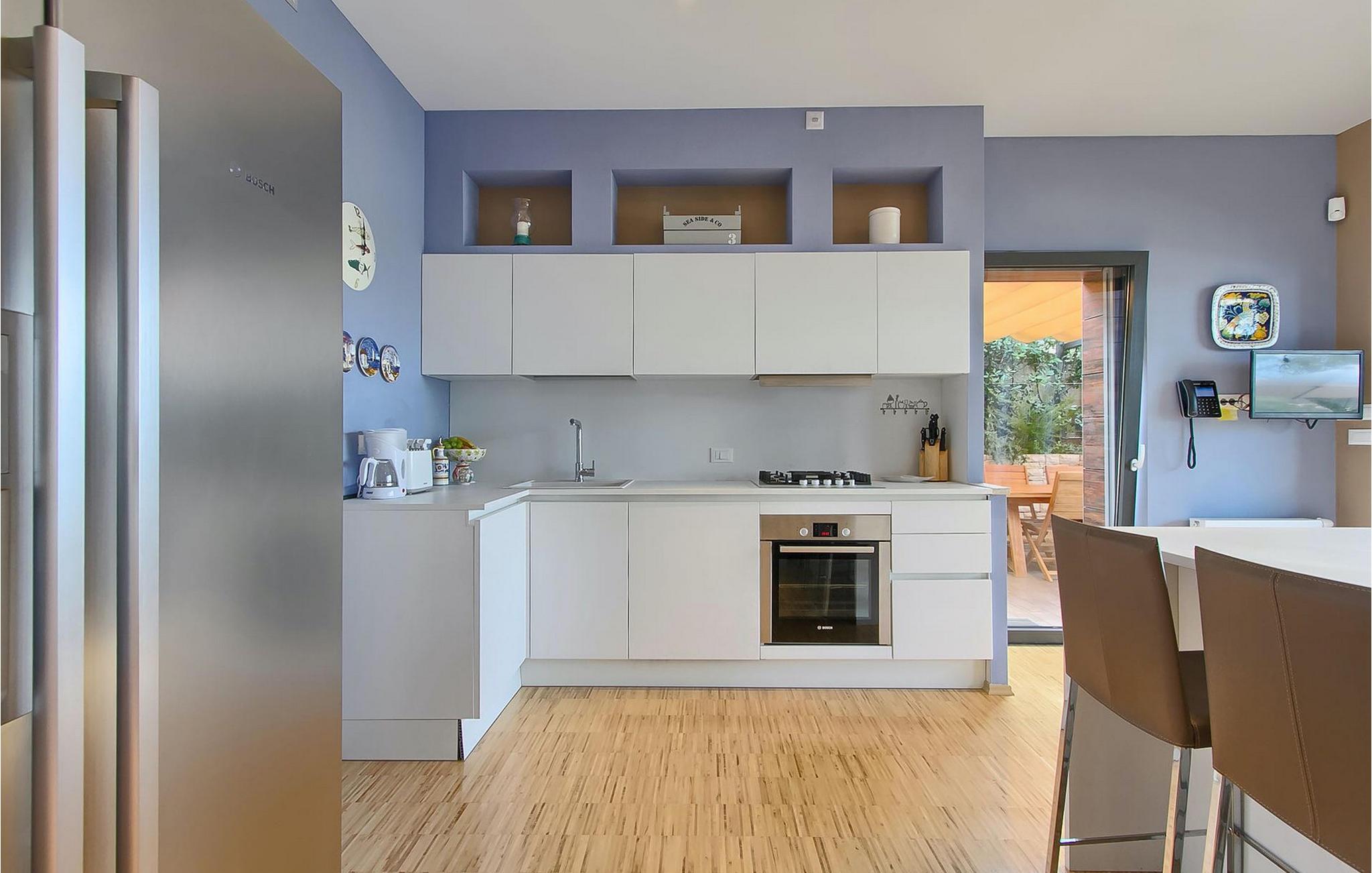 Hvis du leder efter en ferie på en moderne ejendom med privat pool ud til havet, er den luksuriøse villa ved havet Casa G med pool med hydromassage et perfekt valg. Det består af 3 lejligheder i et hus. Lejlighederne udlejes kun samlet som en enhed. Hver lejlighed har 2 soveværelser, 2 badeværelser, et køkken, stue og spisestue. Fra soveværelset til køkkenet var alt møbleret og dekoreret med kærlighed, omhu og stor sans for detaljer. Der er panoramaudsigt over havet fra hver af lejlighederne. De store terrasser og poolen er lavet i højkvalitets moderne design og er blandet med naturlige typiske stenvægge og oliventræer. Udendørsområdet omfatter grønne områder med rolige skyggefulde rum under naturlig middelhavsvegetation og en grillplads med et stort bord til op til 12 personer. Villa Casa G har aircondition, har Wi-Fi, privat parkering til 5 biler og giver alt til en fornøjelig ferie med poolen kun få meter fra stranden.