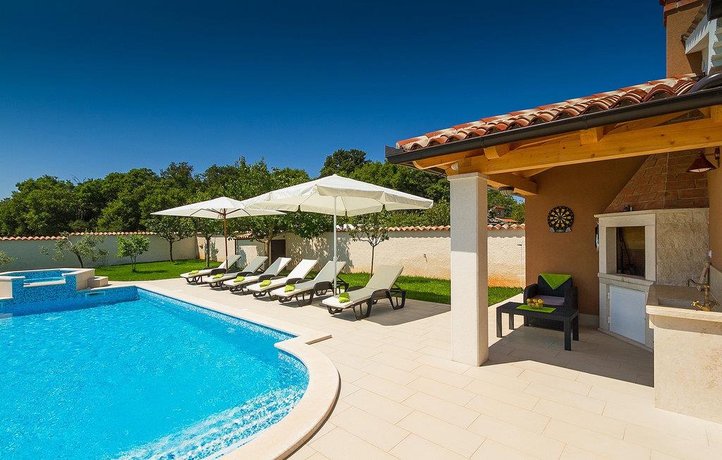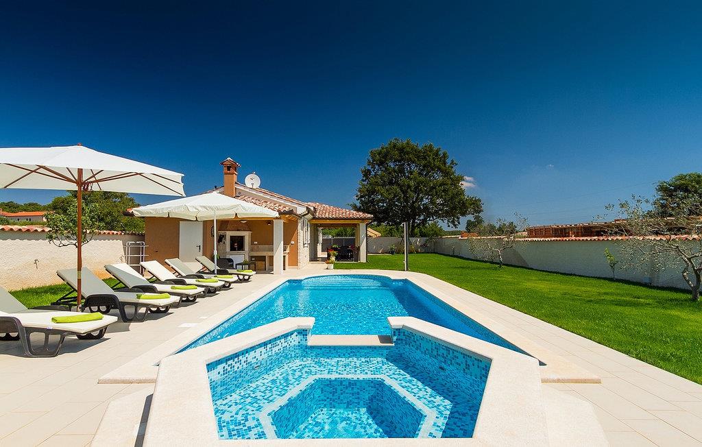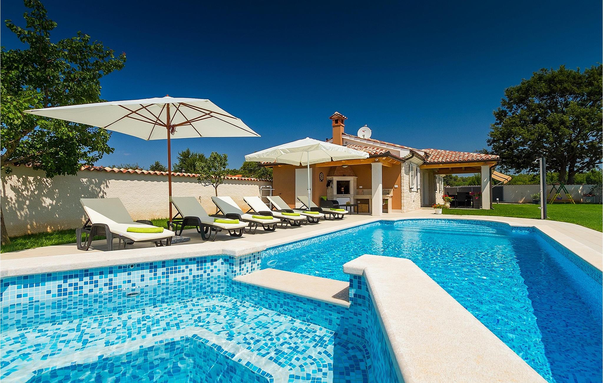 Tag en pause fra byens stress og jag, og tilbring en vidunderlig ferie på Villa Nera, som ligger lige uden for Pula. Denne luksusvilla kan rumme op til 6 gæster. Til din rådighed står et moderne og farverigt køkken i forbindelse med en hyggelig stue. Tre elegante soveværelser er indrettet i deres egen stil, men alle har en varm følelse, så gæsterne ikke føler sig andet end velkomne. Villaen er omgivet af en dejlig og omhyggeligt plejet have, hvor du også finder en legeplads for vores yngste gæster. Udendørsområdet er præget af en indbydende pool med hydromassage, ved siden af hvilken er en overdækket terrasse, et ideelt sted at slappe af, mens du nyder en kold drink. Pula er turistcentret i Istrien med hensyn til kultur, tradition og smuk natur. Det havde sine storhedstid i romertiden. Romerne efterlod sig mange spor, især det fine amfiteater. I den venetianske periode udviklede Pula sig til at være Adriaterhavets kontrolcenter, og i løbet af århundrederne udviklede byens havn sig til den vigtigste havn i regionen. Pula tilbyder alle former for fritidsaktiviteter, herunder sportsfaciliteter, natklubber, kasinoer, pubber og restauranter og organiserede udflugter. Byen har to passagerhavne, begge meget vigtige for krydstogtsturismen. Nu om dage repræsenterer Pula et sted, hvor en afslappende ferie ved Pulas smukke kyst og tæt på krystalvandet kan kombineres med legender og minder om en rig historie. Uspoleret skov, smukke strande og middelhavsklimaet gør dette sted til en meget attraktiv destination for kystelskere. Overalt kan du nyde naturen, for eksempel på Brioni-øerne med dens enestående flora og fauna, som gør den til Middelhavets nordligste eksotiske oase.