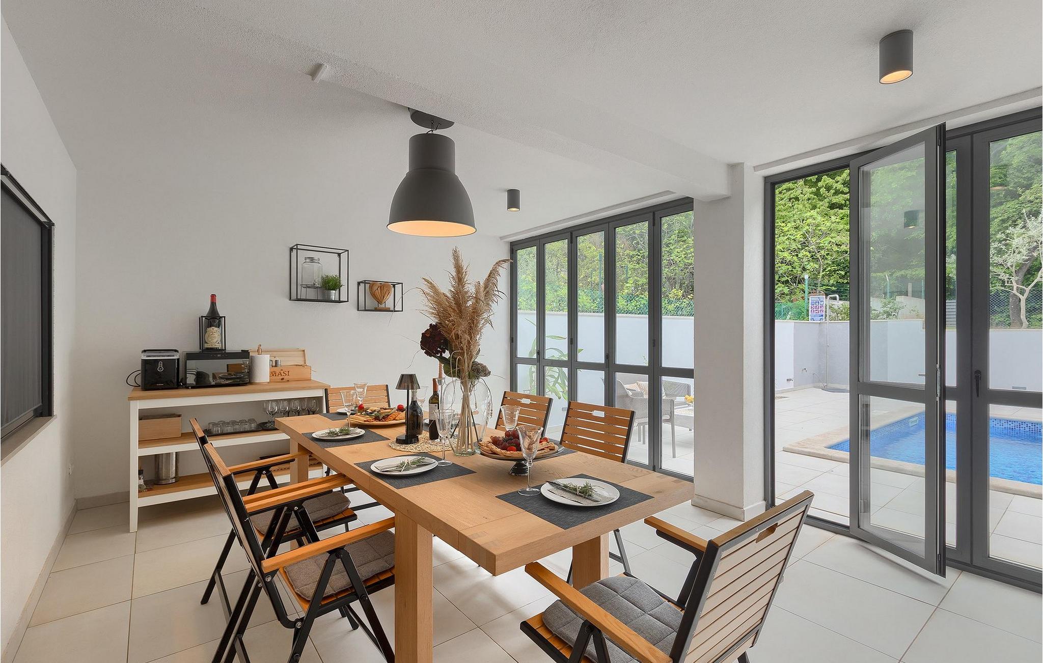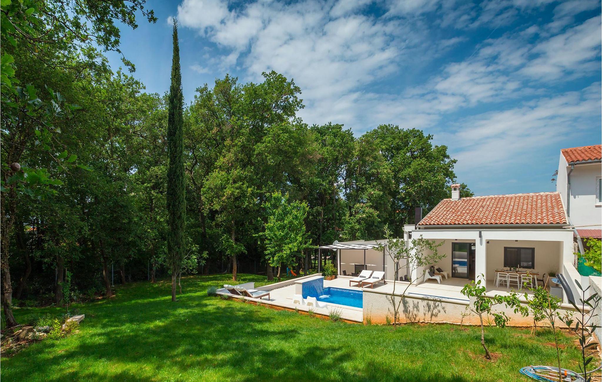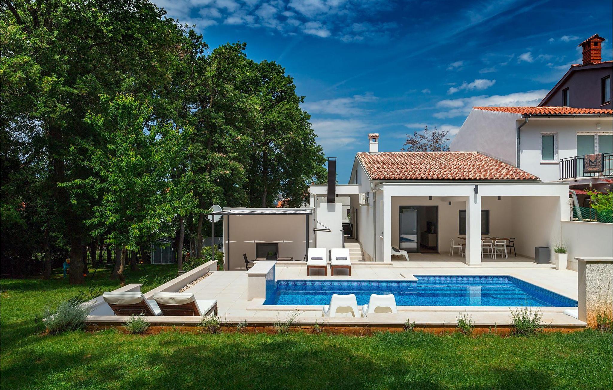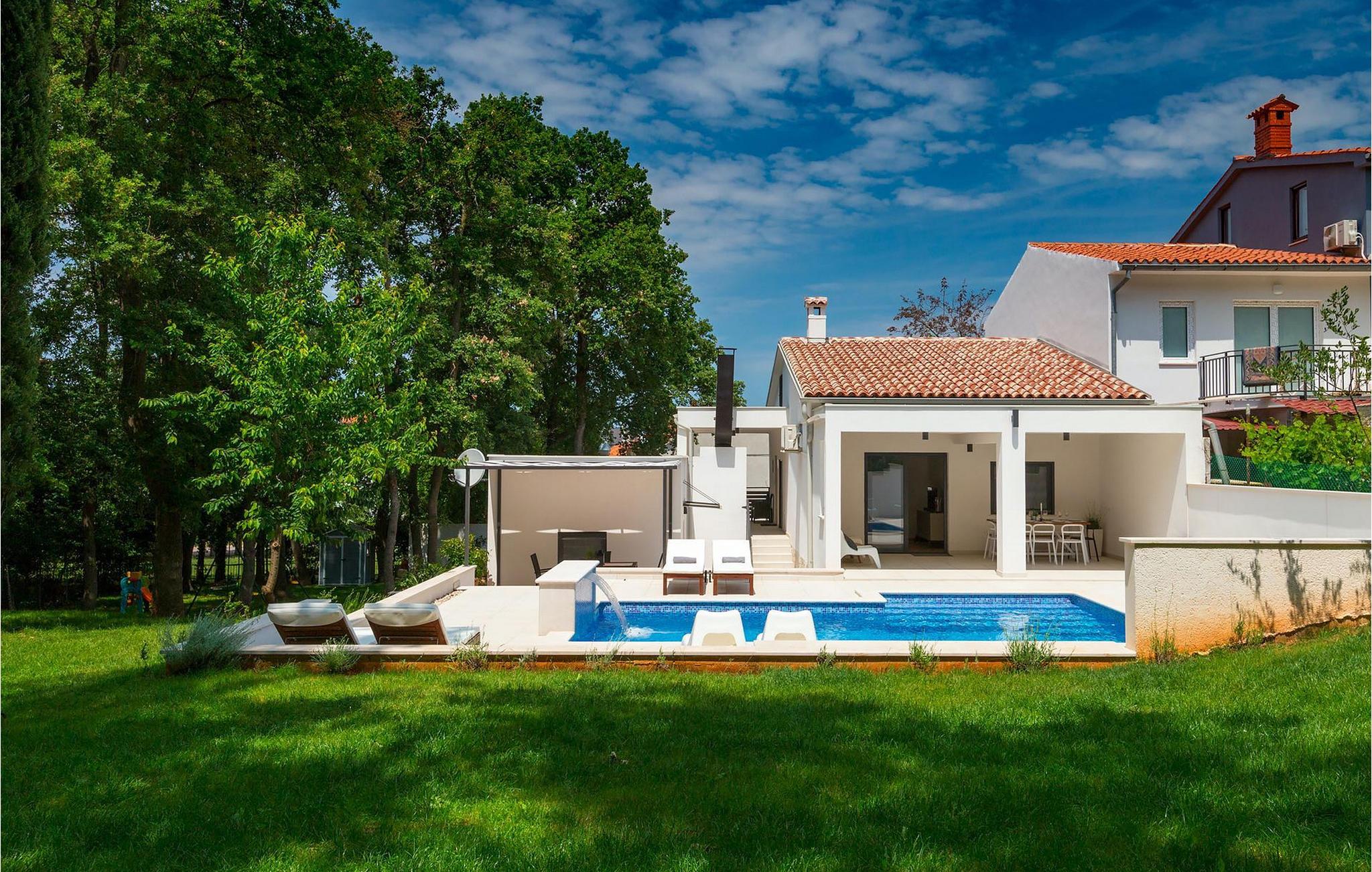 In einer ruhigen Wohngegend gelegen, umgeben von einem wohltuendem Eichenwald und doch in unmittelbarer Nähe des bezaubernden historischen Zentrums von Pula, bietet die Villa Del Sole einen erholsamen Ausgangspunkt, um alle Sehenswürdigkeiten zu erkunden, die diese wunderschöne Region zu bieten hat. Alle notwendigen Annehmlichkeiten sind nur wenige Gehminuten entfernt und einige der schönsten Strände in Istrien sind nur wenige Kilometer entfernt. Im Inneren ist die Unterkunft in zwei getrennte einstöckige Einheiten unterteilt. Das Haupthaus verfügt über eine Open-Space Küche mit Esszimmer. Diese führt zur schönen Terrasse mit einem weiteren Ess-und Lounge-Bereich, wo Sie faule Nachmittage im Schatten genießen könnrn. Es gibt auch ein gemütliches Wohnzimmer mit direktem Zugang zum Pool und Garten, sowie zwei Schlafzimmer, ein Doppelzimmer und ein Zweibettzimmer und ein Badezimmer. Das unabhängige Studio-Apartment befindet sich direkt neben dem Pool und verfügt über ein Schlafzimmer mit Doppelbett und ein zusätzliches Schlafsofa, eine kleine Küche mit Essbereich sowie ein eigenes Bad.