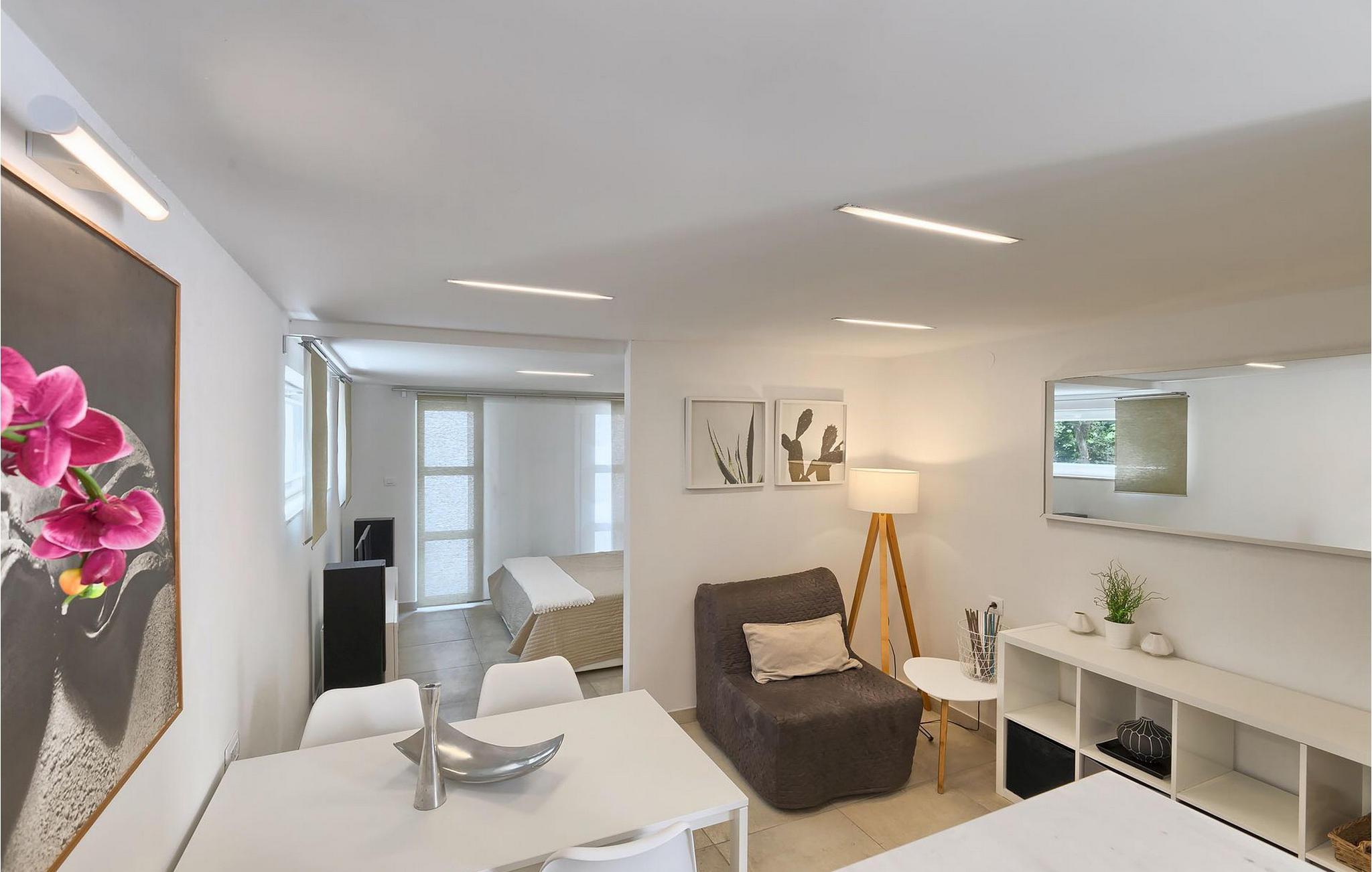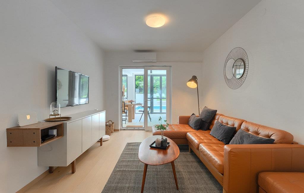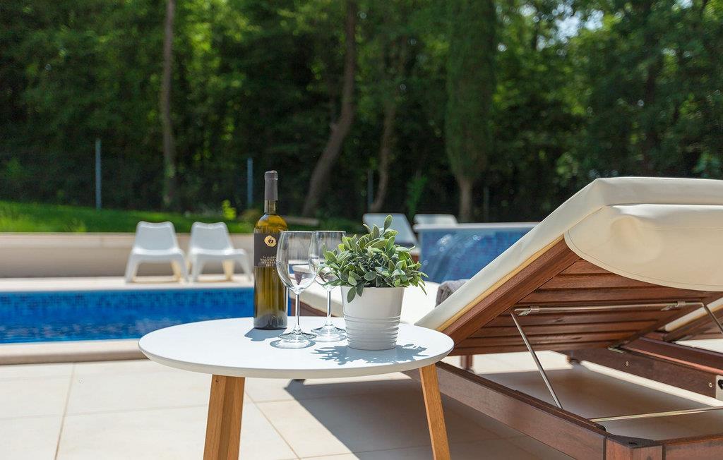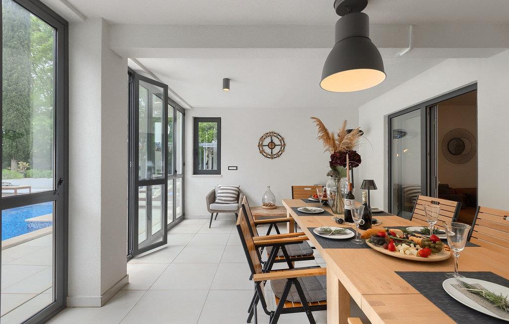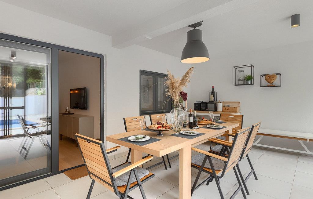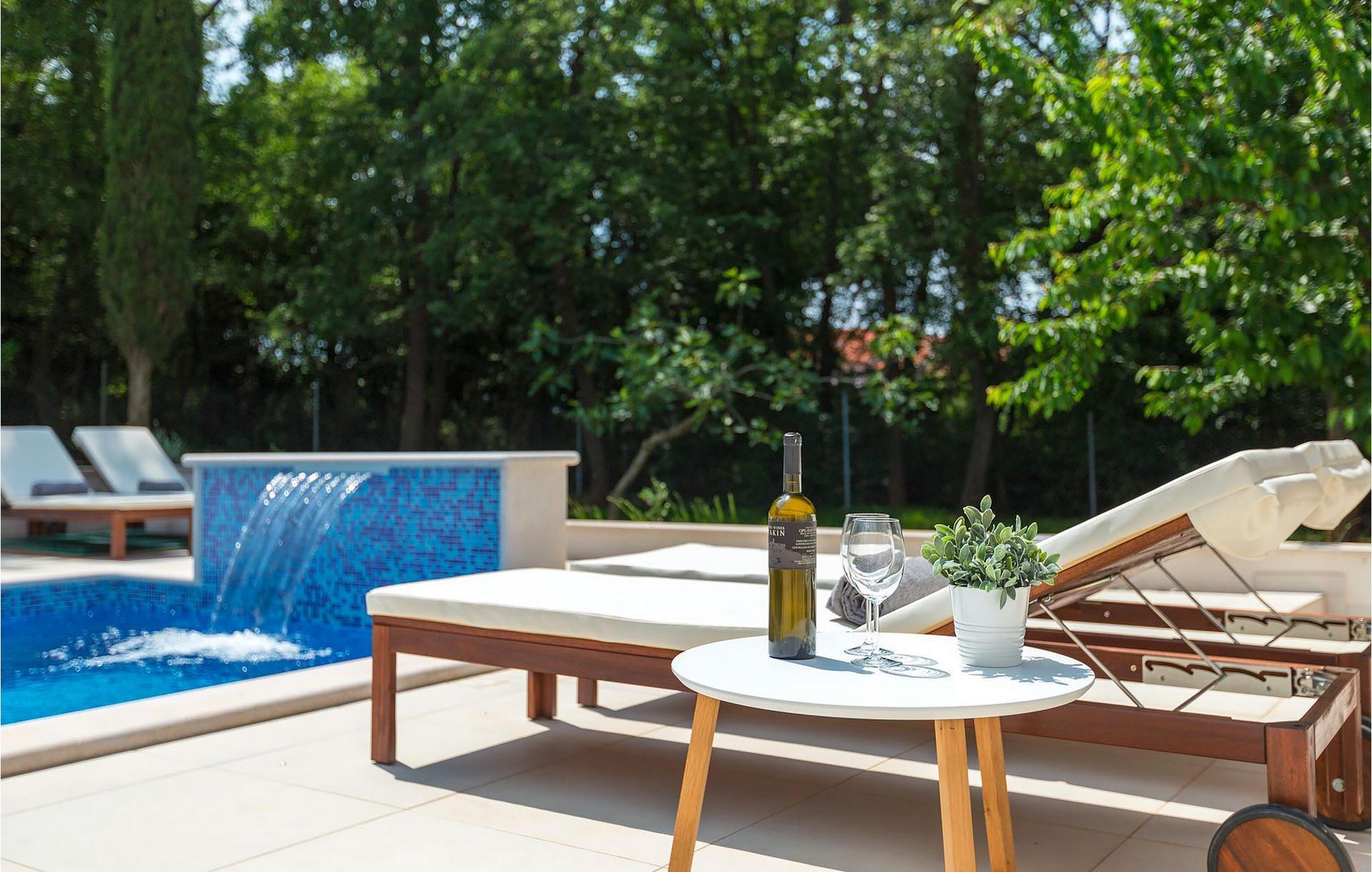 In einer ruhigen Wohngegend gelegen, umgeben von einem wohltuendem Eichenwald und doch in unmittelbarer Nähe des bezaubernden historischen Zentrums von Pula, bietet die Villa Del Sole einen erholsamen Ausgangspunkt, um alle Sehenswürdigkeiten zu erkunden, die diese wunderschöne Region zu bieten hat. Alle notwendigen Annehmlichkeiten sind nur wenige Gehminuten entfernt und einige der schönsten Strände in Istrien sind nur wenige Kilometer entfernt. Im Inneren ist die Unterkunft in zwei getrennte einstöckige Einheiten unterteilt. Das Haupthaus verfügt über eine Open-Space Küche mit Esszimmer. Diese führt zur schönen Terrasse mit einem weiteren Ess-und Lounge-Bereich, wo Sie faule Nachmittage im Schatten genießen könnrn. Es gibt auch ein gemütliches Wohnzimmer mit direktem Zugang zum Pool und Garten, sowie zwei Schlafzimmer, ein Doppelzimmer und ein Zweibettzimmer und ein Badezimmer. Das unabhängige Studio-Apartment befindet sich direkt neben dem Pool und verfügt über ein Schlafzimmer mit Doppelbett und ein zusätzliches Schlafsofa, eine kleine Küche mit Essbereich sowie ein eigenes Bad.