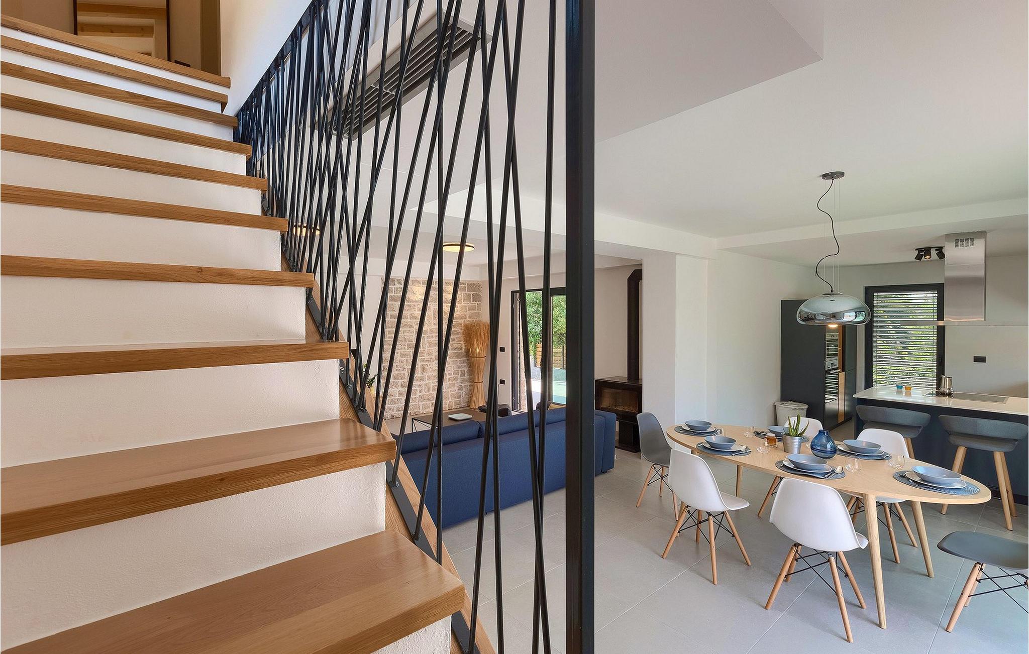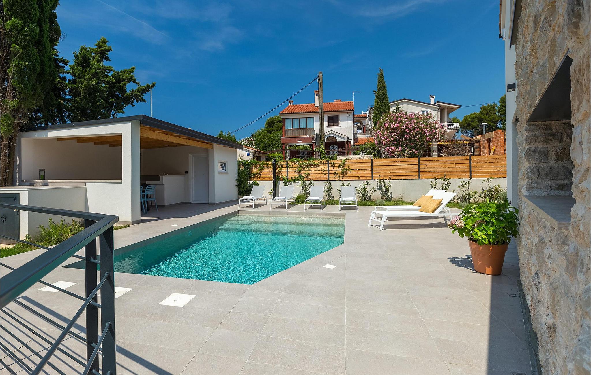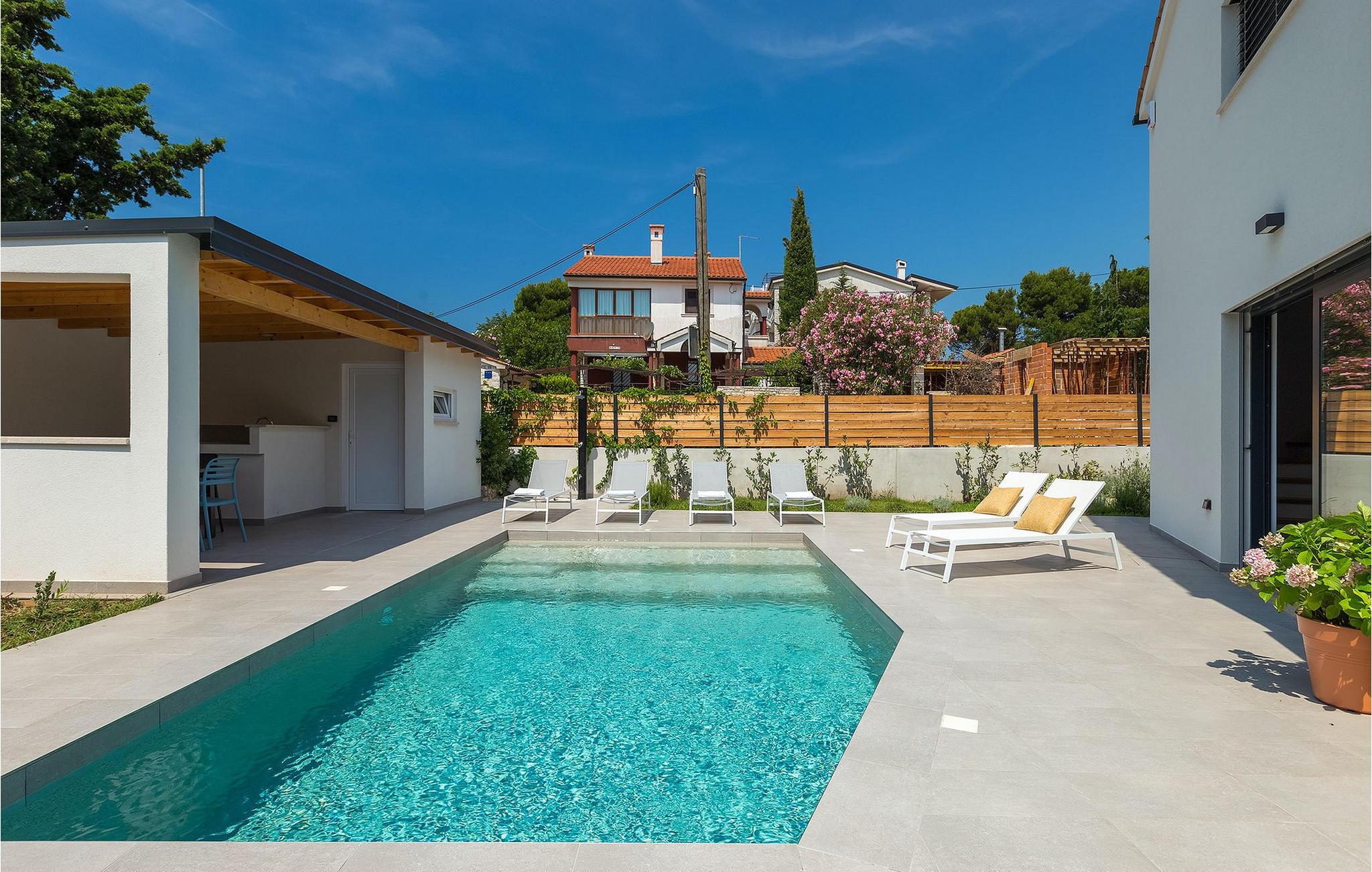 Denne skønne ejendom ligger kun en kort gåtur på ca. 250 m væk fra den nærmeste strand og ligger i nærheden af det beskyttede landskab ved Kamenjak Cape. Det har en privat pool og en dejlig have med en overdækket spiseplads med gasgrill, ideel til al fresco spisning og hyggelige sommeraftener. Villaen består af 3 komfortable soveværelser, som hver har eget badeværelse og aircondition. Det ene soveværelse er placeret i stueetagen og har to separate senge, mens de andre 2 soveværelser er fordelt på tværs af øverste etage og nyder også godt af en dejlig balkon, hvor du kan nyde den fantastiske havudsigt. Det åbne koncept hovedrum i stueetagen er indrettet på en enkel og moderne måde, dog med sans for detaljer, og er opdelt i det fuldt udstyrede køkken, opholdsstuen med pejs og SAT TV, samt spisepladsen med direkte adgang til haven og poolen. Denne villa tilbyder moderne indkvartering kombineret med den indbydende private pool og en fantastisk beliggenhed - alt for en uforglemmelig ferie i Istrien! Premantura er omgivet af natur, ikke mange steder kan prale af. Syd for byen ligger Cape Kamenjak – et beskyttet landskab 9,5 km langt, 1,5 km bredt, med i alt 30 km fordybet kystlinje. Der er masser af stenede strande samt småstensbugter. På et relativt lille område er der 530 plantearter og blandt dem er 20 orkidéarter, hvoraf nogle er endemiske. Af denne grund er der ingen campingpladser på denne kappe, hoteller eller nogen anden type strukturer. Når du besøger Kap Kamenjak, må du ikke gå glip af dens sydligste spids, hvor en stor attraktion hopper i havet fra høje klipper med fakler. På grund af den gunstige vind er den ideel til vandsport om sommeren, men også indtil det sene efterår. I slutningen af oktober finder det attraktive møde for windsurfere - Hallowind sted. For dem, der ønsker at dykke ned i den fascinerende undervandsverden, er der mange dykkercentre i byen. Dette er en af de få destinationer med en strand for synshandicappede. Det er vigtigt at understrege, at Premantura tilbyder en privat dialyseklinik, så den er velegnet til gæster, der har behov for en sådan behandling. Premantura er en unik oplevelse, ikke blot et af stederne at hvile.