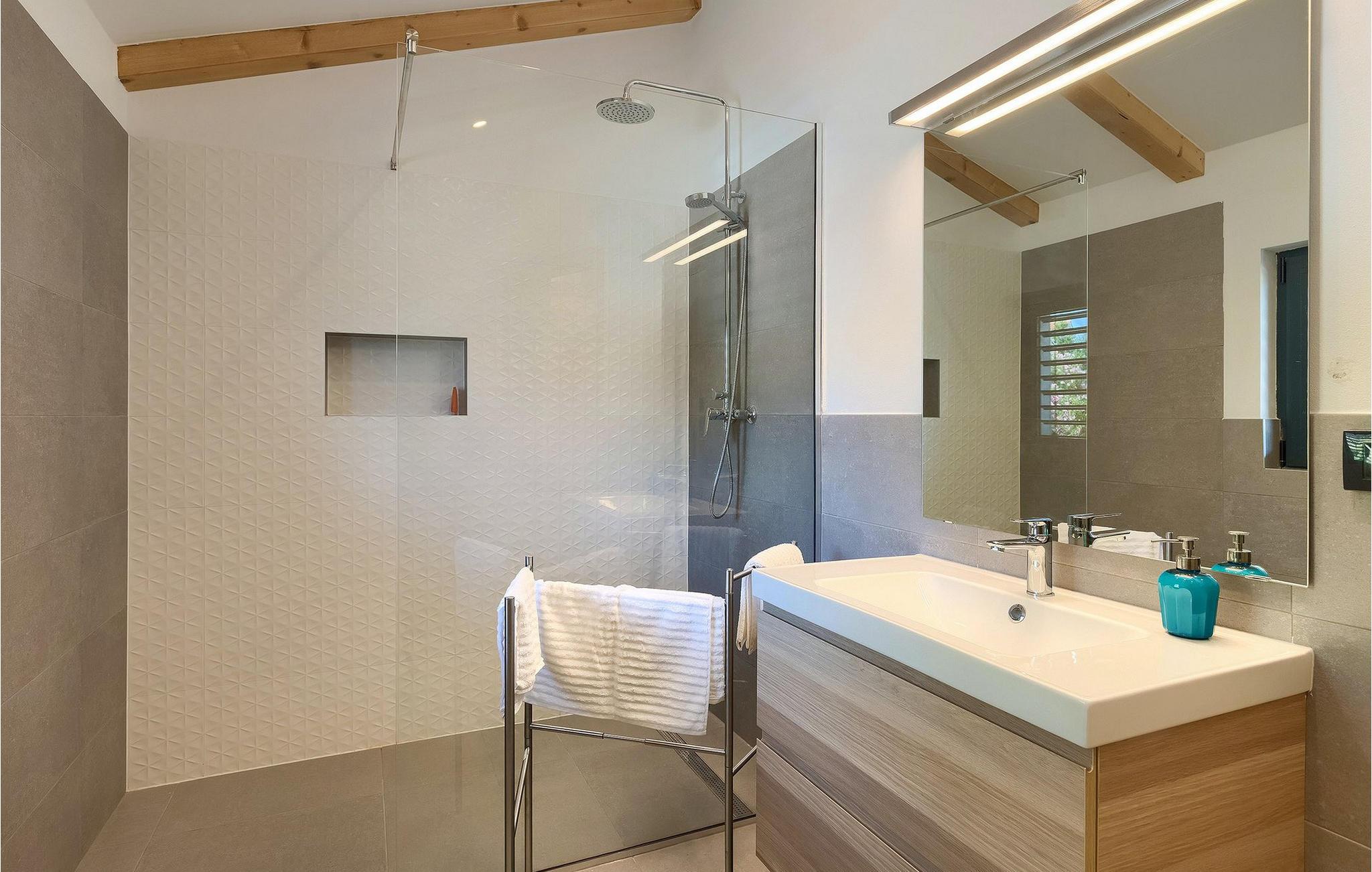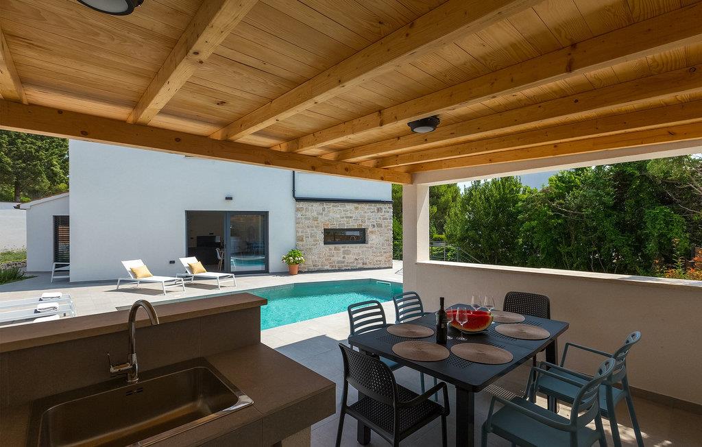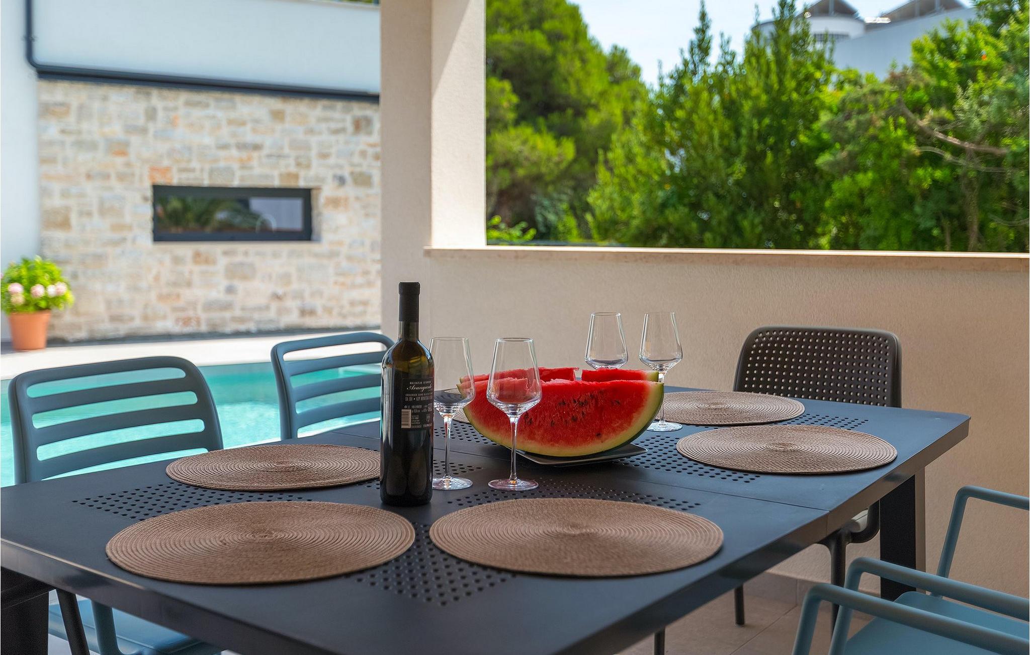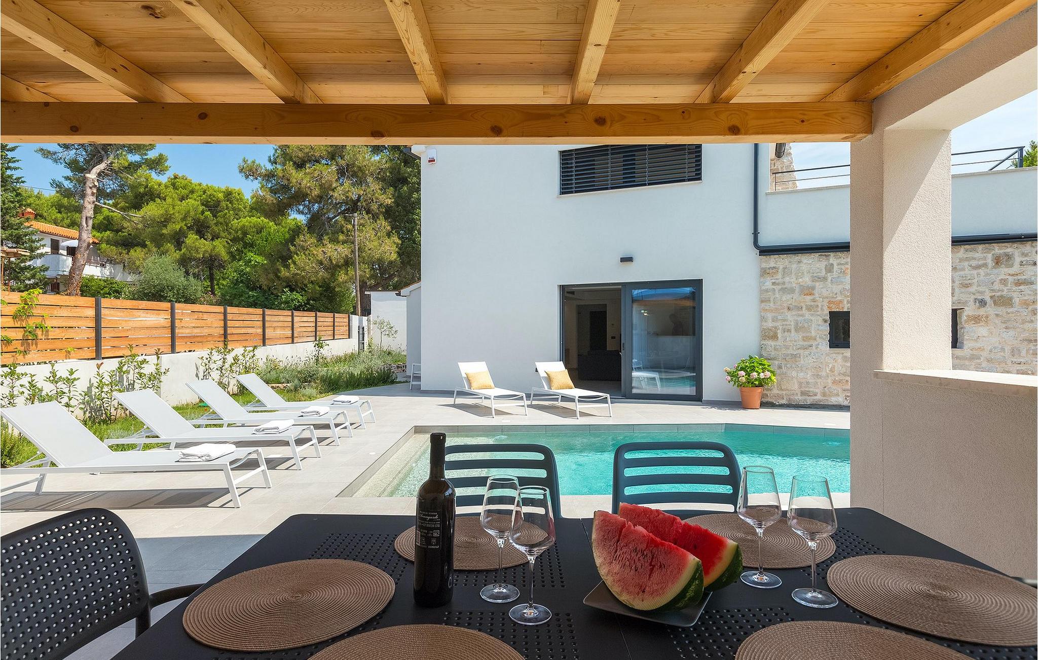 Denne skønne ejendom ligger kun en kort gåtur på ca. 250 m væk fra den nærmeste strand og ligger i nærheden af det beskyttede landskab ved Kamenjak Cape. Det har en privat pool og en dejlig have med en overdækket spiseplads med gasgrill, ideel til al fresco spisning og hyggelige sommeraftener. Villaen består af 3 komfortable soveværelser, som hver har eget badeværelse og aircondition. Det ene soveværelse er placeret i stueetagen og har to separate senge, mens de andre 2 soveværelser er fordelt på tværs af øverste etage og nyder også godt af en dejlig balkon, hvor du kan nyde den fantastiske havudsigt. Det åbne koncept hovedrum i stueetagen er indrettet på en enkel og moderne måde, dog med sans for detaljer, og er opdelt i det fuldt udstyrede køkken, opholdsstuen med pejs og SAT TV, samt spisepladsen med direkte adgang til haven og poolen. Denne villa tilbyder moderne indkvartering kombineret med den indbydende private pool og en fantastisk beliggenhed - alt for en uforglemmelig ferie i Istrien! Premantura er omgivet af natur, ikke mange steder kan prale af. Syd for byen ligger Cape Kamenjak – et beskyttet landskab 9,5 km langt, 1,5 km bredt, med i alt 30 km fordybet kystlinje. Der er masser af stenede strande samt småstensbugter. På et relativt lille område er der 530 plantearter og blandt dem er 20 orkidéarter, hvoraf nogle er endemiske. Af denne grund er der ingen campingpladser på denne kappe, hoteller eller nogen anden type strukturer. Når du besøger Kap Kamenjak, må du ikke gå glip af dens sydligste spids, hvor en stor attraktion hopper i havet fra høje klipper med fakler. På grund af den gunstige vind er den ideel til vandsport om sommeren, men også indtil det sene efterår. I slutningen af oktober finder det attraktive møde for windsurfere - Hallowind sted. For dem, der ønsker at dykke ned i den fascinerende undervandsverden, er der mange dykkercentre i byen. Dette er en af de få destinationer med en strand for synshandicappede. Det er vigtigt at understrege, at Premantura tilbyder en privat dialyseklinik, så den er velegnet til gæster, der har behov for en sådan behandling. Premantura er en unik oplevelse, ikke blot et af stederne at hvile.