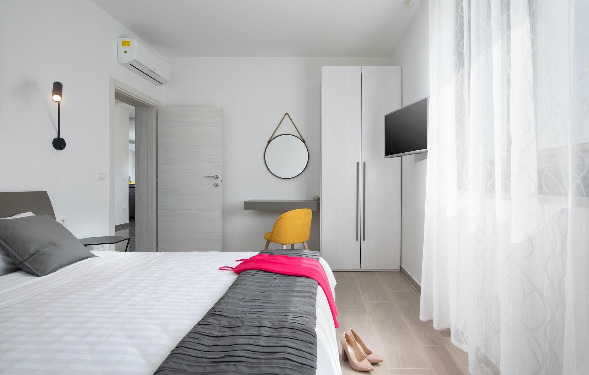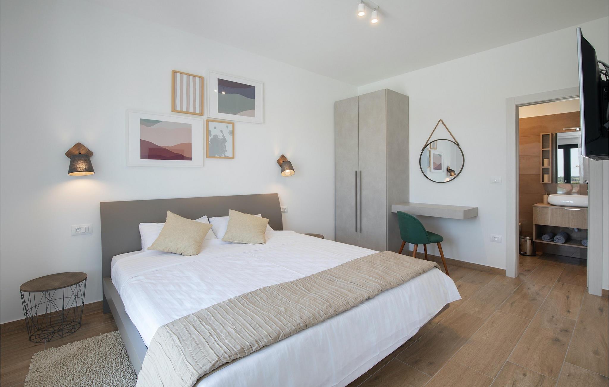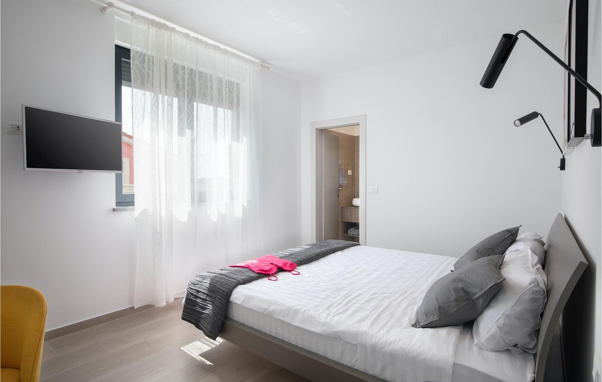 Nyd din ferie i en fantastisk, moderne villa beliggende tæt på centrum af det smukke og største turistcenter i Istrien. Villa Perle i Pula venter på dig med alt klar til din perfekte ferie. Villaen kan rumme op til 10 gæster i 4 luftige soveværelser (alle med dobbeltsenge) indrettet med omhu og talrige trendy detaljer, som vil imponere med deres lyse, naturlige farver og minimalistiske udsmykning. To af soveværelserne er placeret i stueetagen (hver med sit private badeværelse). Første sal råder over de andre 2 soveværelser med ensuite badeværelser. Begge disse værelser har udgang til en bred terrasse med havemøbler til at slappe af og nyde de første solstråler. Samtlige soveværelser har desuden tv og aircondition, mens der er ekstra mulighed for at sove på sovesofaen i stuen. Stueetagen byder også på et rummeligt område til sammenkomster - et moderne, fuldt udstyret køkken forbundet med stue og spiseplads i et åbent koncept. Du kan også nyde i det udendørs område omkring den indbydende pool eller ved siden af grillen, hvor du kan smage dine yndlingsmåltider på den store terrasse.Villa Perle ligger i den smukke by Pula, den største by i Istrien, og en af de mest berømte turistmål. Pula blev kåret som en af The Telegraphs 20 mest eftertragtede destinationer i 2017. Denne antikke romerske by blev bygget i 46 f.Kr. Sørg for at besøge det største monument, det berømte amfiteater fra det 1. århundrede. Mange begivenheder finder sted her, lige fra koncerter og filmvisninger til sportsbegivenheder. I den gamle bydel er forummet med Augusttemplet. Her kan du også besøge det historiske museum i Istrien og det arkæologiske museum i Istrien. I området kan du besøge smukke små istriske byer, udforske naturlige strande, vandre, cykle eller dykke. Pula byder på adskillige fritidsaktiviteter såsom sport, barer, restauranter, natklubber samt organiserede ture, f.eks. et besøg i nationalparken Brijuni.