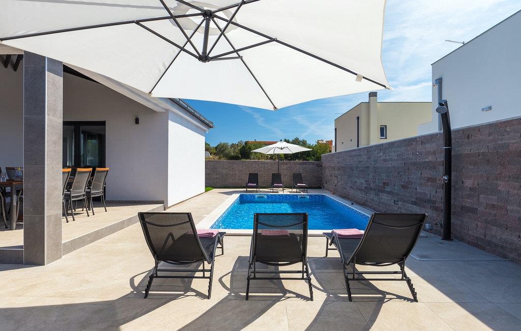 Leder du efter ferie i en villa nær byens centrum og kun 5 km fra smukke naturlige strande? Villa Elena Pula, beliggende i Pula, er det rigtige sted at være, og det kan rumme op til 8 gæster i 3 komfortable og moderne soveværelser. Til ekstra overnatning er der 2 sovesofaer med madrasser, hver egnet til 2 gæster. Det ene værelse har en dobbeltseng mens to værelser er udstyret med enkeltsenge, som kan kobles sammen til en dobbeltseng, hvis det er nødvendigt. Dette enetagers hus er perfekt til din familieferie. Med dets udendørs tekøkken med grill og al fresco spiseplads, vil du tilbringe meget tid i haven eller ved siden af den indbydende pool, mens børnene kan lege på trampolinen og rutsjebanen i haven. Alle værelser er indrettet på en moderne måde, så de passer til dine behov. Du kan nyde madlavning i det fuldt udstyrede køkken (i forbindelse med stuen og spisepladsen), mens du kigger over til poolområdet omgivet af liggestole og store parasoller. Nyd din ferie i Pula, mens du har alle fornødenheder inden for gåafstand og udforsker den fantastiske halvø Istrien!Velkommen til storslåede Pula, den største by på halvøen Istrien! Pula er berømt for sin arkitektur, smukke strande og rige natteliv. I den gamle bymidte kan du finde Forum med August-templet, Sergii's triumfbue, Hercules-porten og selvfølgelig det mest berømte monument - Arenaen (gammelt romersk amfiteater, der går tilbage til det 1. århundrede e.Kr.). Her kan du også besøge det historiske museum i Istrien og det arkæologiske museum i Istrien. Hvis du vil have en aktiv cykeltur, besøg Cape Kamenjak (syd for Pula) eller den nærliggende nationalpark på Brijuni-øen. I det omkringliggende område kan du også udforske smukke små istriske byer, naturlige strande og tage på vandreture eller dykke. Mens du er her, kan du prøve nogle lækre istriske specialiteter (trøfler, prosciutto ...) i en af de berømte restauranter.