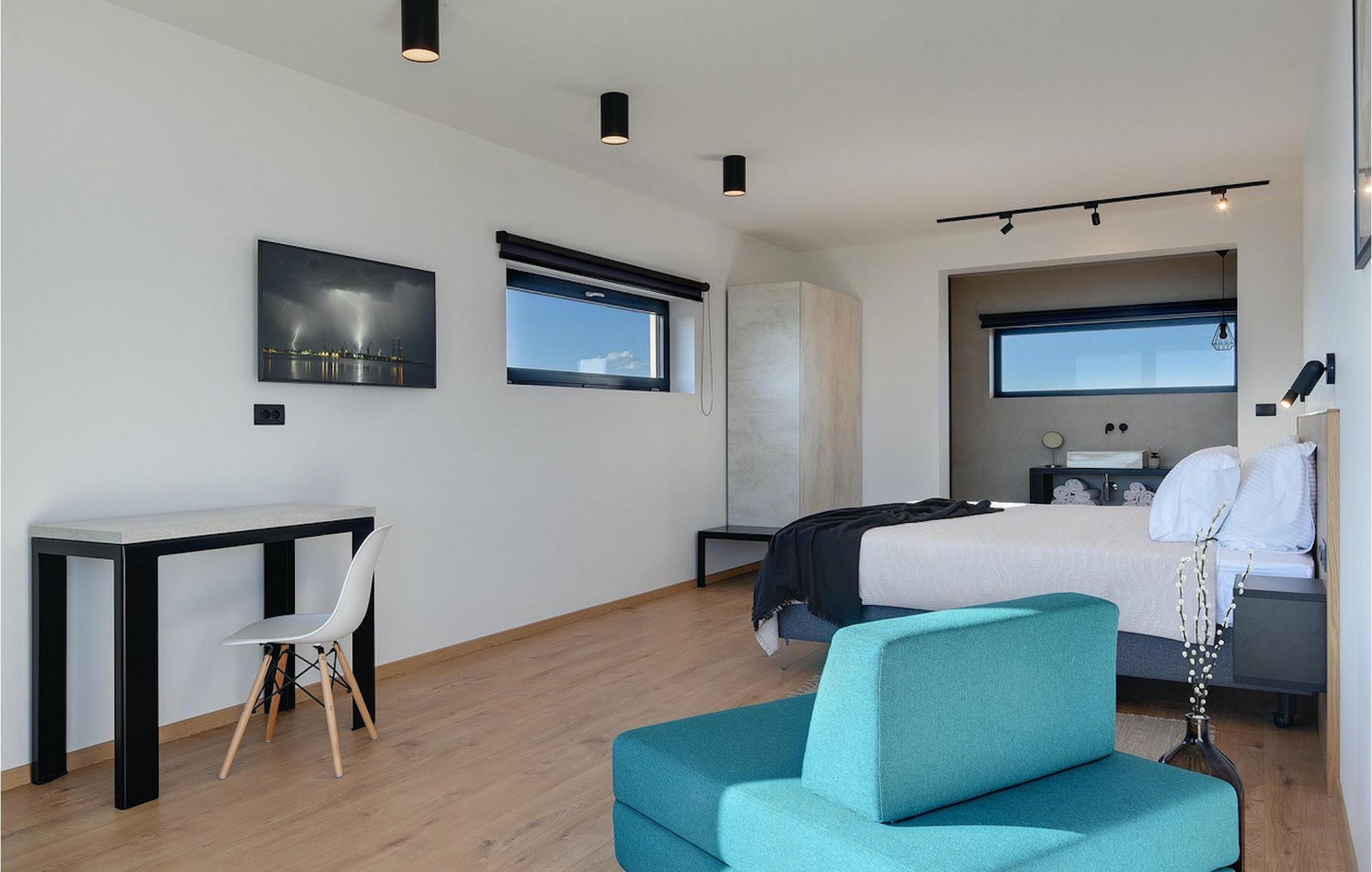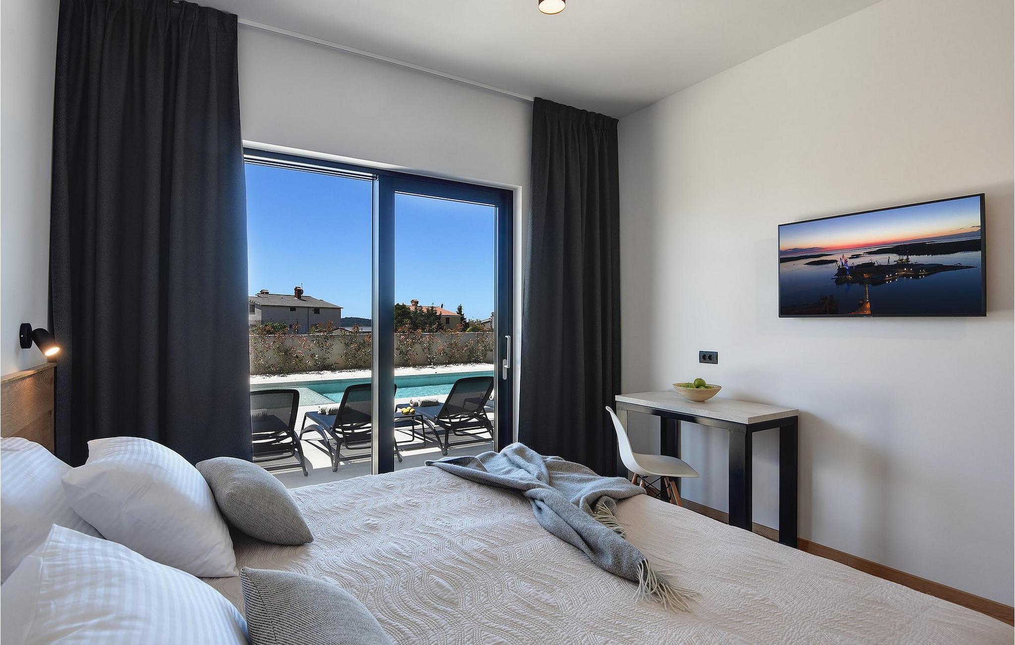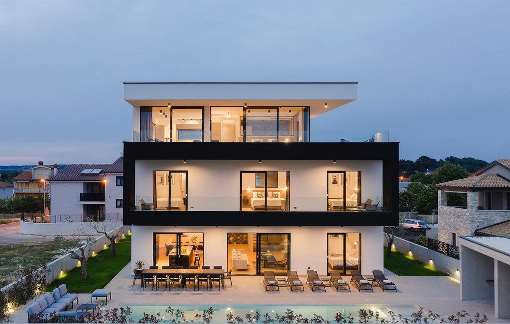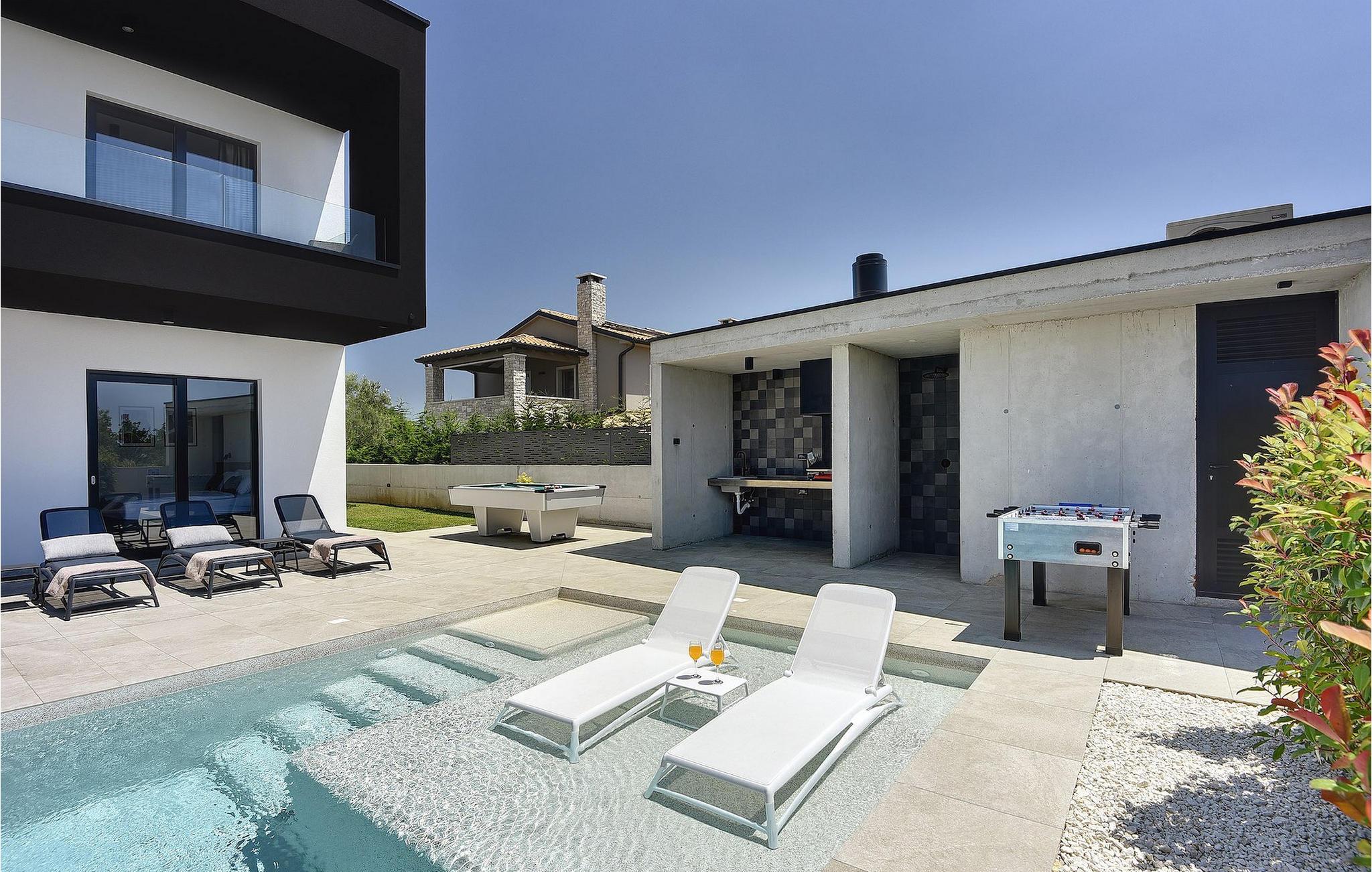 Vil du slappe af i en moderne villa nær havet? Så er Villa Aquarius det ideelle sted at opfylde dine ønsker. Villaen kan rumme fjorten personer og byder på syv soveværelser med private badeværelser, en privat pool og en smuk havudsigt. Villaens første sal har en entré, et veludstyret køkken med spiseplads, en stue og et soveværelse med separat badeværelse og separat toilet. På anden sal er der tre soveværelser med separate badeværelser, et soveværelse med to senge og et separat badeværelse samt en terrasse med en smuk havudsigt. Vågn op hver morgen og nyd din kaffe med panoramaudsigt. Nyd din ferie med familie og venner ved det kroatiske Adriaterhav og Villa Aquarius, som vil give dig en uforglemmelig ferie. Villa Aquarius er ikke et festhus, og ungdomsgrupper er ikke tilladt. Placeringen af Villa Aquarius er simpelthen perfekt: det er kun 2 km fra de første strande, det er tæt på centrum af Pula og det er kun en kort køretur fra Fazana , hvorfra du kan leje en båd og besøge Brijuni-øerne, en fabelagtig nationalpark.
