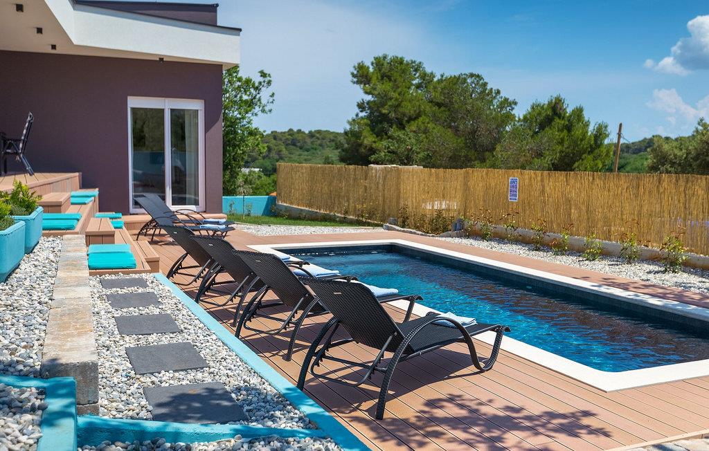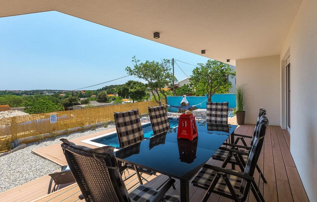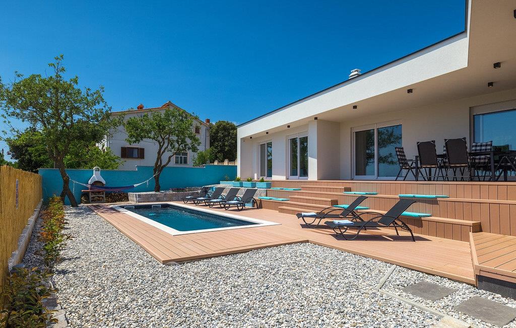 Villa Senorita ligger i Vintijan, nær byen Pula. I hyggelige og moderne omgivelser kan den rumme i alt 8 personer. Villa Senorita er et hus i stueetagen med en stue, et fuldt udstyret køkken med spiseplads og tre soveværelser, hvoraf to har eget badeværelse. Der er endnu et separat badeværelse på samme niveau. Selvom interiøret er meget moderne, er Villa Senorita fuld af varme og tilbyder sine gæster et ideelt sted at nyde. I villaens gårdhave kan du forfriske dig i den private pool, solbade på liggestole og spise middag på den overdækkede terrasse. Et velopdragent kæledyr er velkommen på Villa Senorita uden ekstra omkostninger.Villa Senorita er beliggende i byen Vintijan, som er kun 8 kilometer fra Pula. Pula er et fantastisk feriemål, men også et godt udgangspunkt for ture i det omkringliggende område. Hvis du vil udforske byen, anbefaler vi bestemt en let gåtur. Den centrale plads er et sted, hvor alle mødes, da her er mange caféer, restauranter og barer. En af byens attraktioner er det berømte amfiteater. Hvis du er mere interesseret i sol og svømning, så er Bijeca strand stedet for dig! Den kilometerlange sandstrand er særdeles velegnet til små børn, men også til alle, der vil bruge dagen på at svømme og slappe af. For adrenalinelskere er et besøg i Adrenalin Park Medulin et must! Vælg aktiviteten efter eget valg, og tilbring en uforglemmelig dag fuld af sjov med familie eller venner!