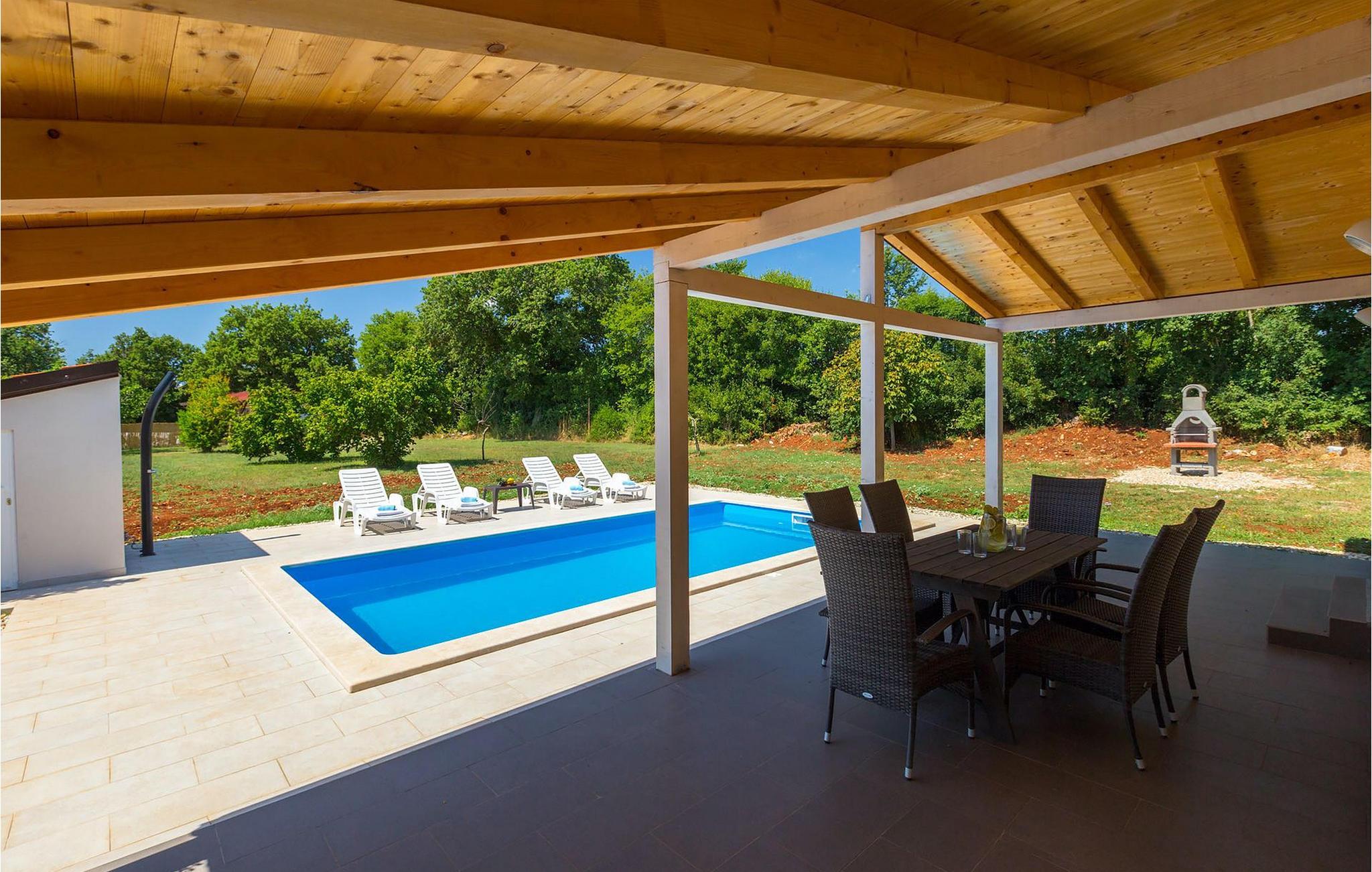 Villa Nezakcij er en sød lille villa nær Pula, der tilbyder den perfekte indkvartering for mindre grupper. Villaen har 3 velindrettede soveværelser og kan rumme op til 5+1 gæster i alt. Villaen består af en åben stue med et moderne og veludstyret køkken og en spiseplads. To ud af tre soveværelser har en dobbeltseng med eget badeværelse, mens det tredje har en enkeltseng og et separat badeværelse. Udendørsområdet er det høje lys af Villa Nezakcij. Foran villaen er der en stor privat pool, som er det perfekte sted for en forfriskende svømmetur, eller du kan bare slappe af på de komfortable liggestole, mens du læser din yndlingsbog. Villaen er helt lukket og har en stor græsplæne, hvor dine børn bare frit kan løbe og lade dampen af. Blot få skridt fra villaen er en kulgrill, hvor du kan tilberede lækre måltider og servere dem til din familie i den overdækkede alfresco spiseplads. Villaen er perfekt til familier, der leder efter en afslappende ferie omgivet af natur. Den maleriske lille landsby Valtura er berømt for sin rige kulturelle og historiske arv, som går tilbage til romertiden. Det mest værdifulde sted, Nezakcij, ligger kun 2 km fra Valtura og er arkæologernes foretrukne sted. Det er et ideelt sted for naturelskere og for dem, der ønsker at slappe af væk fra den hektiske hverdag, mens de at