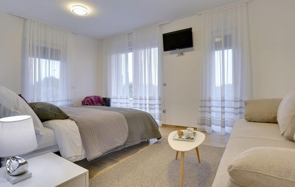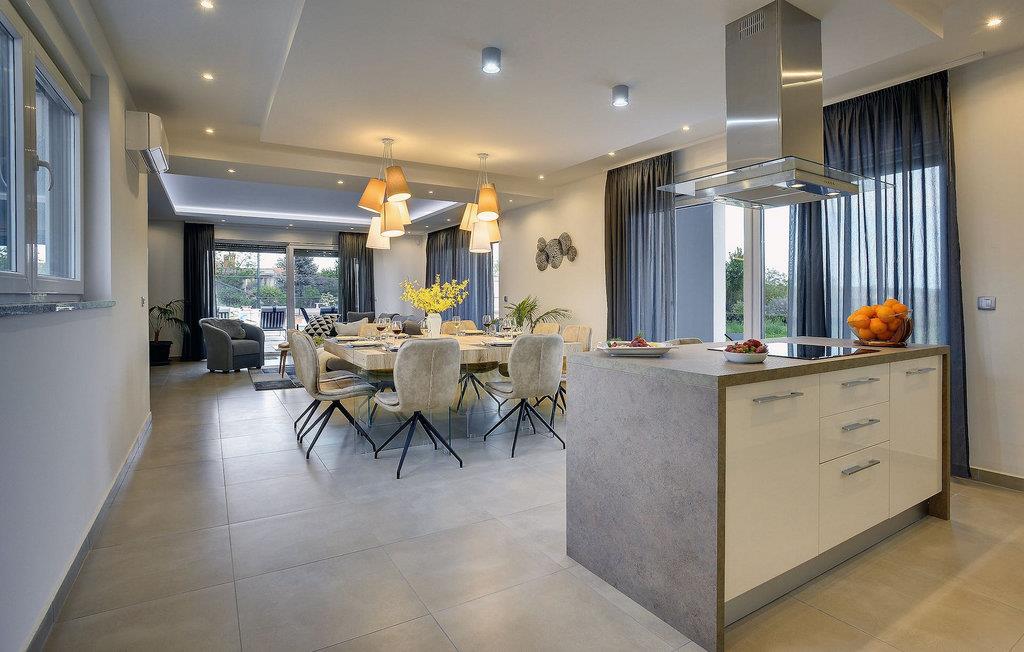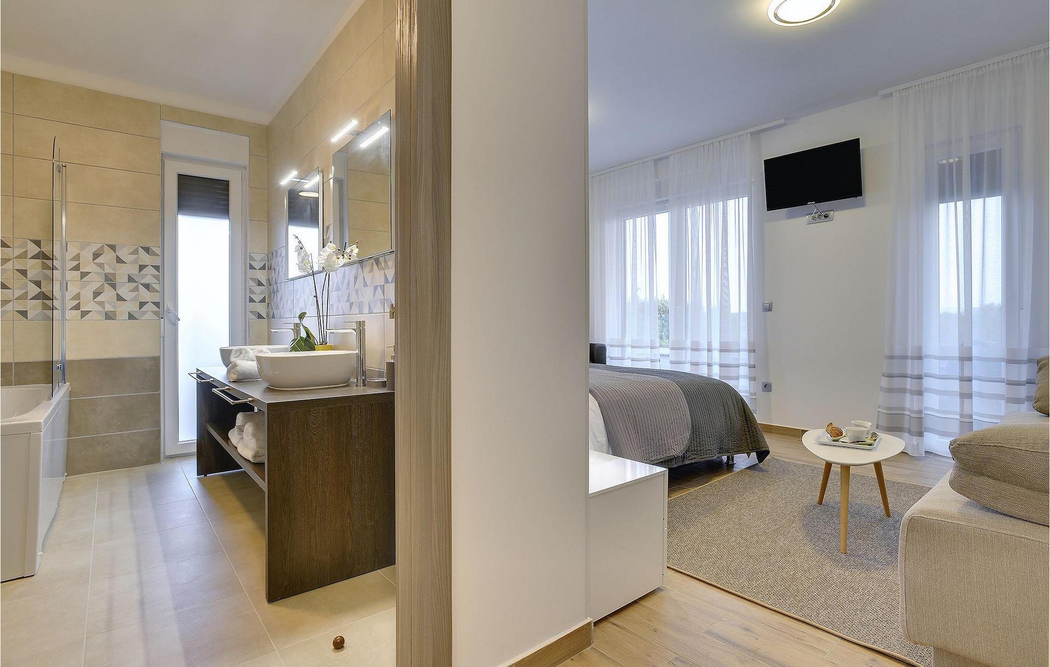 Gorgeous villa Unique er den ideelle feriebolig for dem, der søger efter begge dele, en afslappende og aktiv ferie. Denne smukke, moderne og stilfulde villa har privat pool og fælles tennisbane med kunstig belysning, der gør det muligt at spille tennis selv om natten. Basketballelskere vil også finde et sted at nyde deres yndlingsaktivitet. I modsætning til at være aktiv kan du nyde roen i området i den udendørs jacuzzi, blot nyde solen på en af liggestolene ved siden af poolen eller nyde en kop kaffe på loungeområdet på terrassen. Alfresco spisning er også aktiveret takket være den overdækkede udendørs spiseplads og en stor kulgrill. Fra terrassen er der direkte adgang til den brede stueetage, der består af opholds- og spiseafdelingen samt det fuldt udstyrede køkken, der er formet sammen til et elegant åbent rum. Et af de fire soveværelser ligger også i stueetagen, mens de resterende tre er delt på villaens øverste etage. Alle soveværelser er sofistikeret indrettede, hver med aircondition, tv og eget badeværelse, og tilbyder optimal komfort for sine gæster. Der er også en rummelig balkon, hvorfra du kan nyde den smukke udsigt over Istriens omgivelser. Book Villa Unique og oplev en helt unik ferie! Placeringen af denne villa er virkelig praktisk - kun få kilometer fra den nærmeste strand og tæt på alle dele af byen Pula og alle de faciliteter, som Pula tilbyder. Samtidig ligger villaen i et ret roligt område. Pula er den største havn og turistcentrum på halvøen Istrien. Pula er rig på kultur, tradition og smuk natur og tilbyder alle mulige former for fritidsaktiviteter, herunder sportsfaciliteter, natklubber, kasinoer, pubber og restauranter og organiserede udflugter.