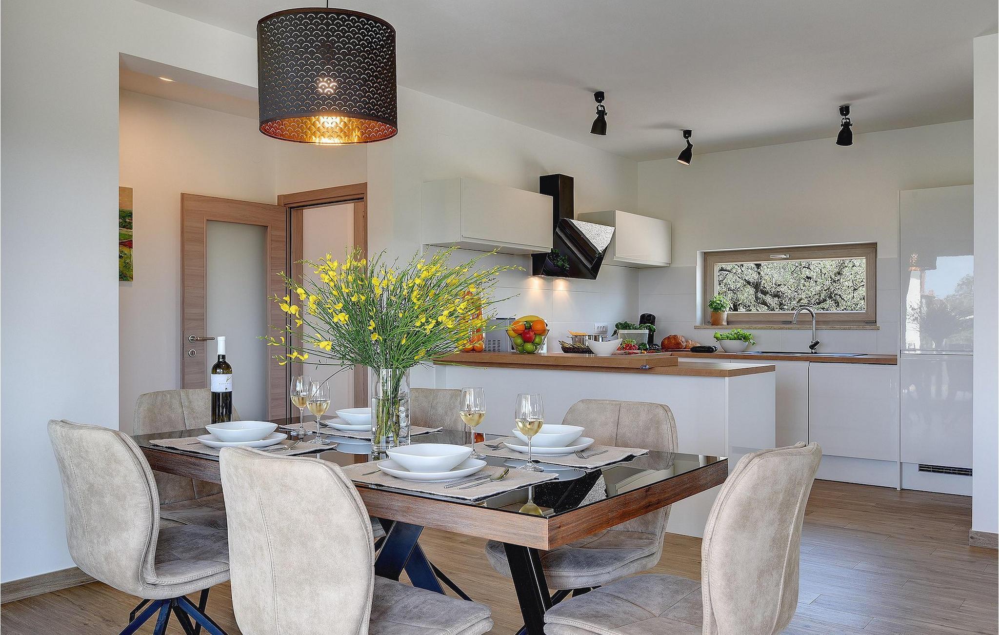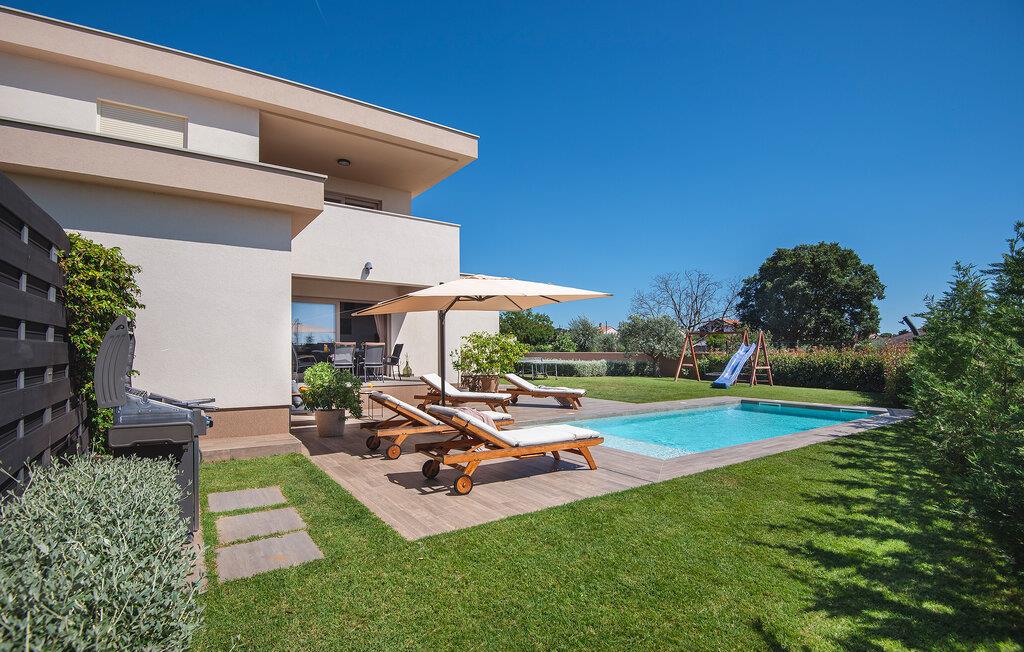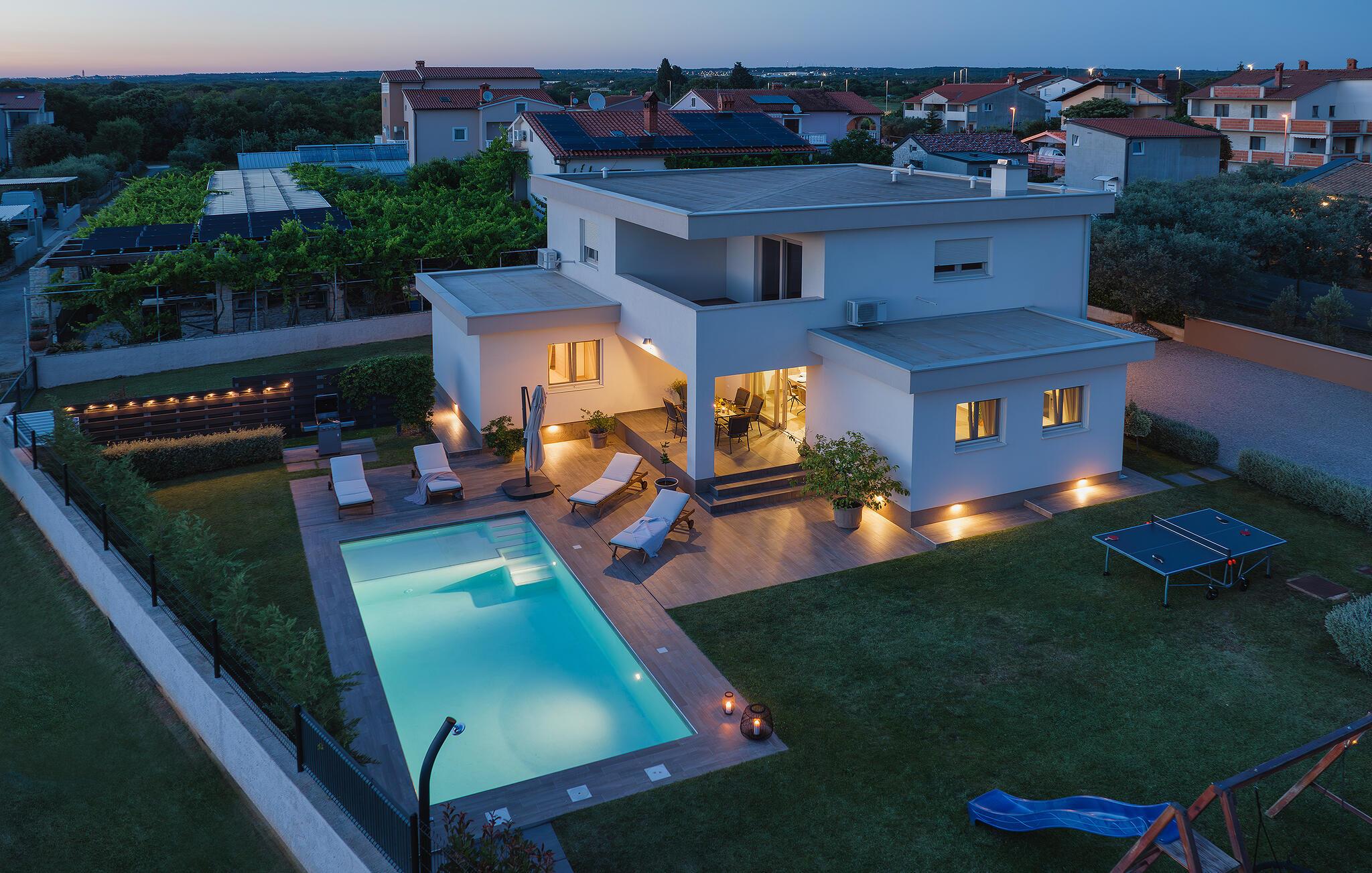 Villaen har to komfortable og moderne soveværelser, hvoraf det ene endda har eget badeværelse. Begge badeværelser i denne villa har dog gulvvarme, hvilket giver dig ultimativ komfort under dit ophold på alle årstider. Men du skal heller ikke bekymre dig om sommervarmen, for denne moderne villa har aircondition! Den åbne plantegning af stuen, spisestuen og køkkenet giver dig mulighed for at tilbringe tid sammen, mens alle kan nyde deres personlige yndlingsrum. Hvis du er mesterkokken i gruppen, så nyd det fuldt udstyrede køkken og tilbered et måltid til dine kære. I har mange muligheder for at spise sammen, enten ved indendørs spisebord eller udendørs. Hvis du foretrækker at lave mad i den friske luft, er gasgrillen altid tilgængelig. Resten af ??gruppen kan slappe af på liggestolene eller svømme i poolen og hoppe ind for at hjælpe, hvis det er nødvendigt. De yngste ved ikke, hvilken aktivitet de skal vælge først - gyngerne og rutsjebanen er placeret lige bag poolen på plænen. Med de mange fordele, som denne villa byder på, vil alle finde et sted for sig selv, så I kan nyde jeres ferie sammen, men også individuelt, så meget som muligt. Placeringen af ??denne villa er simpelthen perfekt: kun 4 km fra de første strande og tæt på Pula centrum. På den ene side er Istrien det ideelle valg for dem, der ønsker at nyde den uberørte natur og charmen ved de små, traditionelle og for det meste middelalderbyer. På den anden side er travlheden i turistbyerne kun en kort køretur fra villaen. Pula er uden tvivl Istriens centrum, når det kommer til kultur og tradition. Byen nåede sit højdepunkt i romertiden, som efterlod adskillige spor, herunder det berømte amfiteater. Pula byder på talrige fritidsaktiviteter såsom sport, barer, restauranter, natklubber, samt organiserede ture, f.eks. et besøg i Brijuni National Park. Som adskillige andre kystbyer er Pula også kendt for sine smukke strande og krystalklare hav. Takket være sine frodige skove, fantastiske strande og middelhavsklima er Pula den ideelle destination for strandferier.