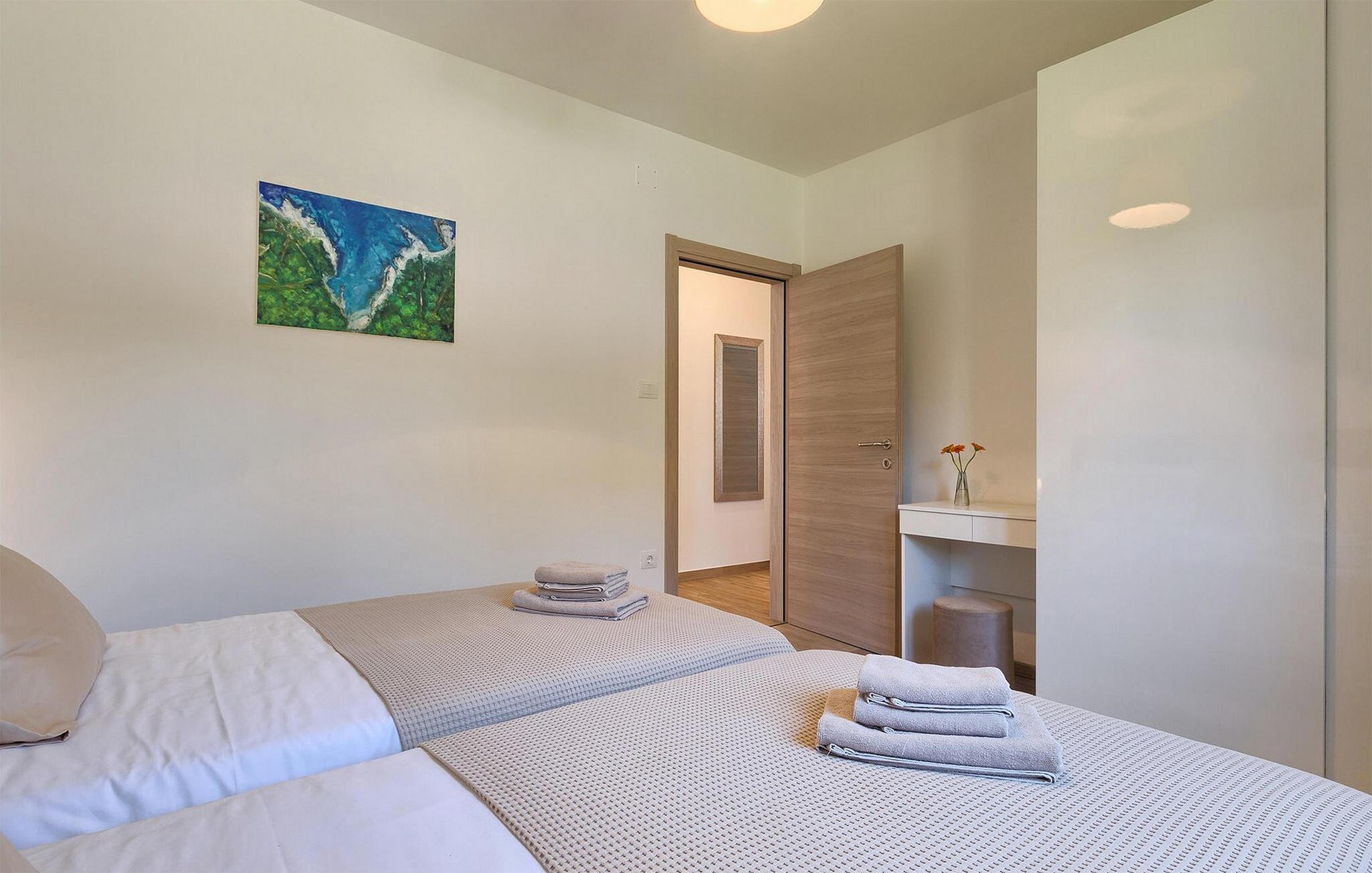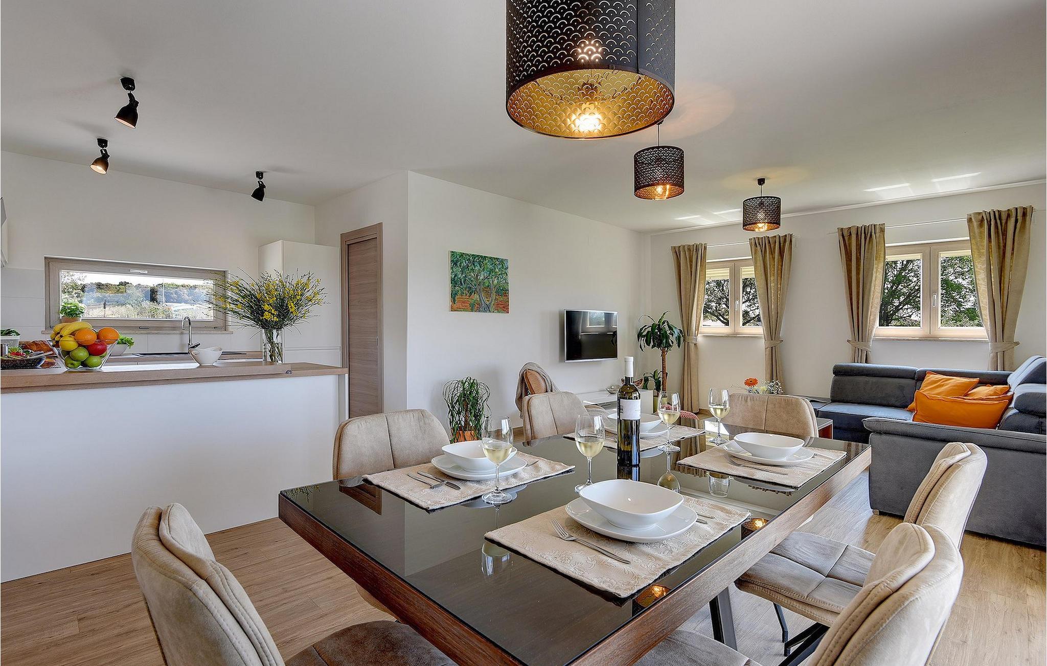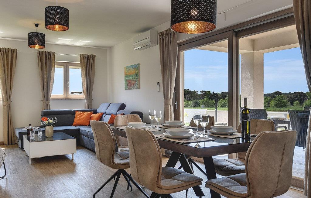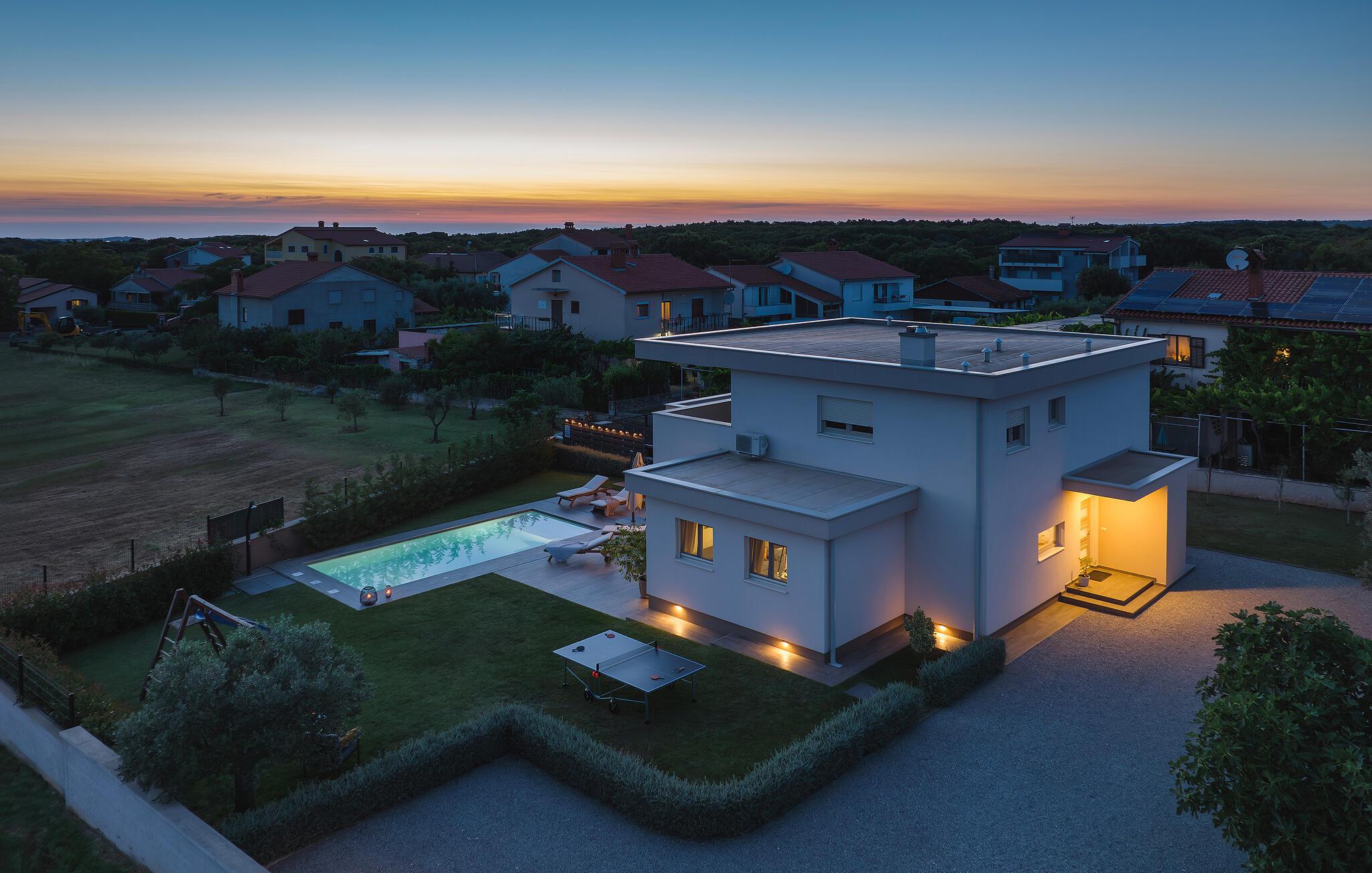 Villaen har to komfortable og moderne soveværelser, hvoraf det ene endda har eget badeværelse. Begge badeværelser i denne villa har dog gulvvarme, hvilket giver dig ultimativ komfort under dit ophold på alle årstider. Men du skal heller ikke bekymre dig om sommervarmen, for denne moderne villa har aircondition! Den åbne plantegning af stuen, spisestuen og køkkenet giver dig mulighed for at tilbringe tid sammen, mens alle kan nyde deres personlige yndlingsrum. Hvis du er mesterkokken i gruppen, så nyd det fuldt udstyrede køkken og tilbered et måltid til dine kære. I har mange muligheder for at spise sammen, enten ved indendørs spisebord eller udendørs. Hvis du foretrækker at lave mad i den friske luft, er gasgrillen altid tilgængelig. Resten af ??gruppen kan slappe af på liggestolene eller svømme i poolen og hoppe ind for at hjælpe, hvis det er nødvendigt. De yngste ved ikke, hvilken aktivitet de skal vælge først - gyngerne og rutsjebanen er placeret lige bag poolen på plænen. Med de mange fordele, som denne villa byder på, vil alle finde et sted for sig selv, så I kan nyde jeres ferie sammen, men også individuelt, så meget som muligt. Placeringen af ??denne villa er simpelthen perfekt: kun 4 km fra de første strande og tæt på Pula centrum. På den ene side er Istrien det ideelle valg for dem, der ønsker at nyde den uberørte natur og charmen ved de små, traditionelle og for det meste middelalderbyer. På den anden side er travlheden i turistbyerne kun en kort køretur fra villaen. Pula er uden tvivl Istriens centrum, når det kommer til kultur og tradition. Byen nåede sit højdepunkt i romertiden, som efterlod adskillige spor, herunder det berømte amfiteater. Pula byder på talrige fritidsaktiviteter såsom sport, barer, restauranter, natklubber, samt organiserede ture, f.eks. et besøg i Brijuni National Park. Som adskillige andre kystbyer er Pula også kendt for sine smukke strande og krystalklare hav. Takket være sine frodige skove, fantastiske strande og middelhavsklima er Pula den ideelle destination for strandferier.