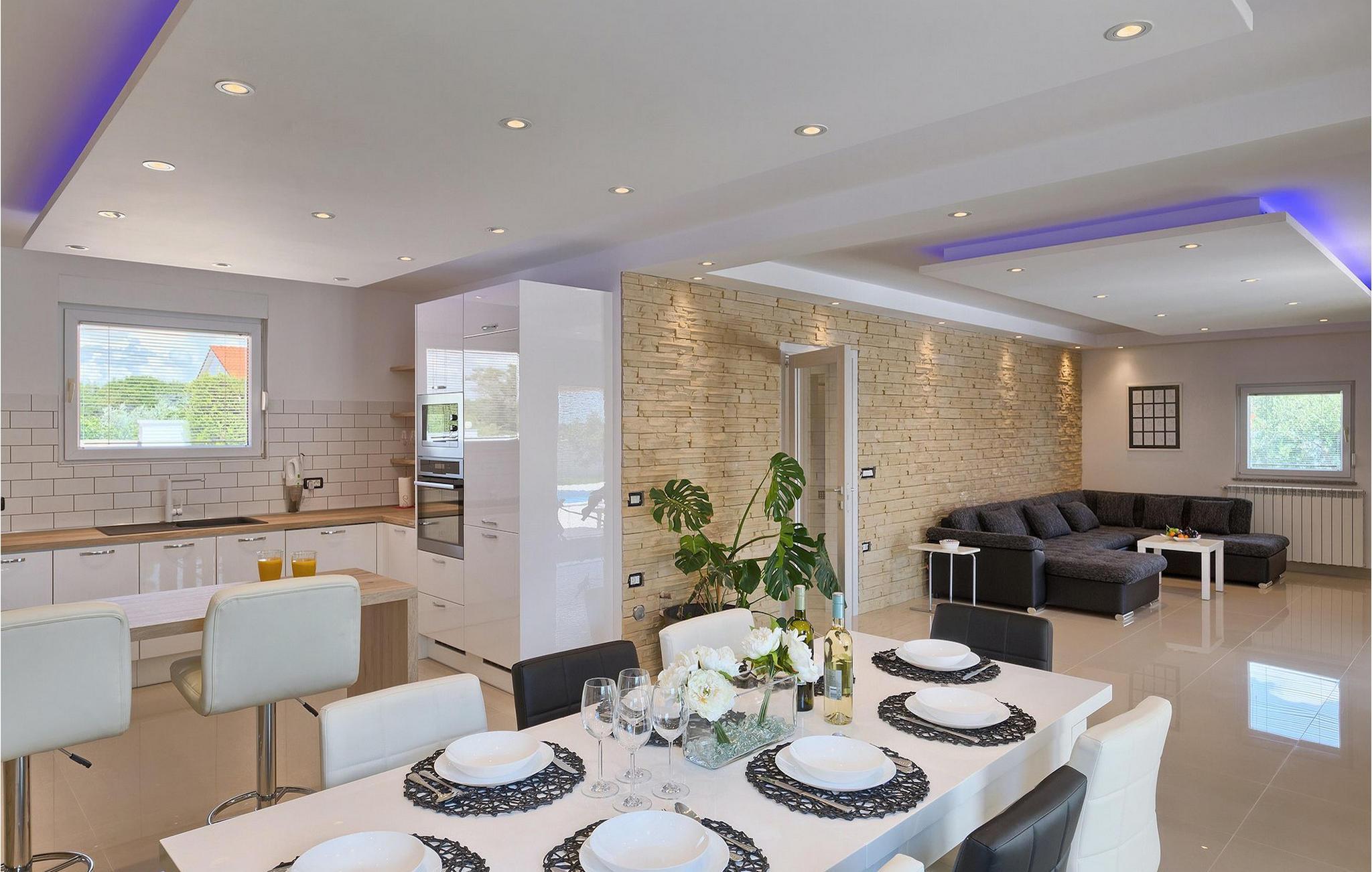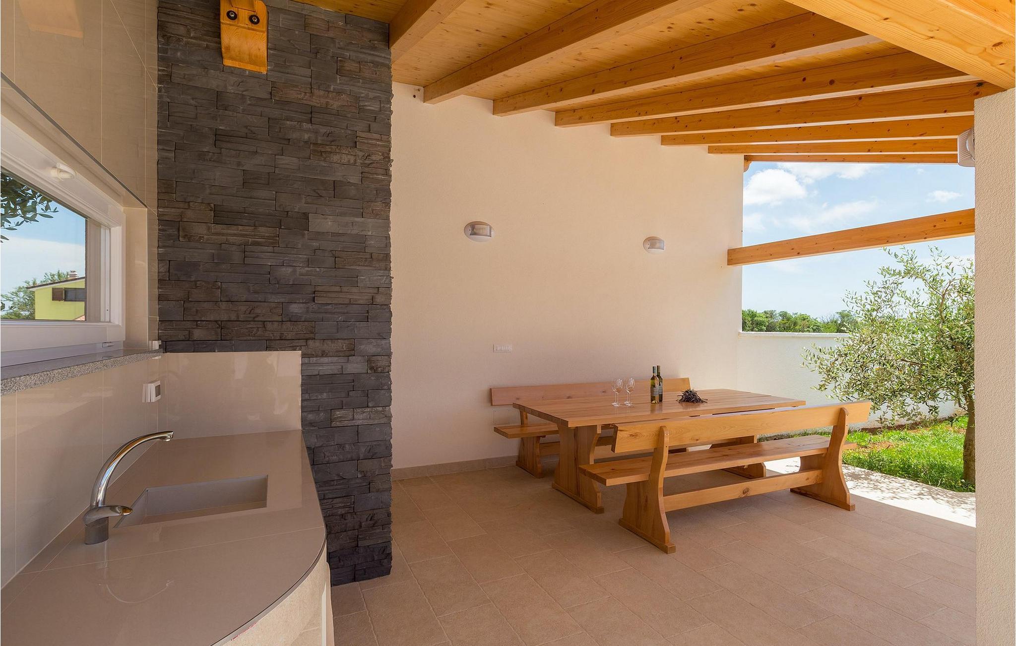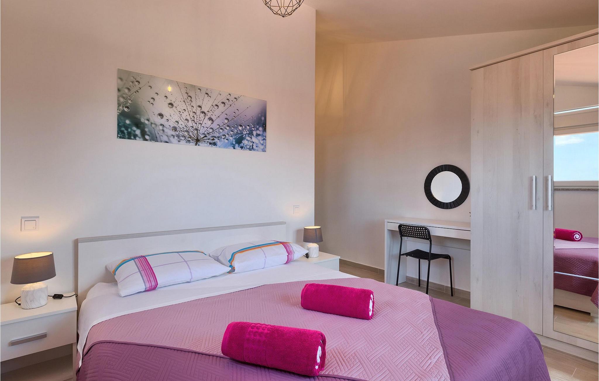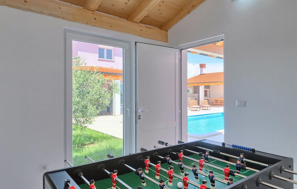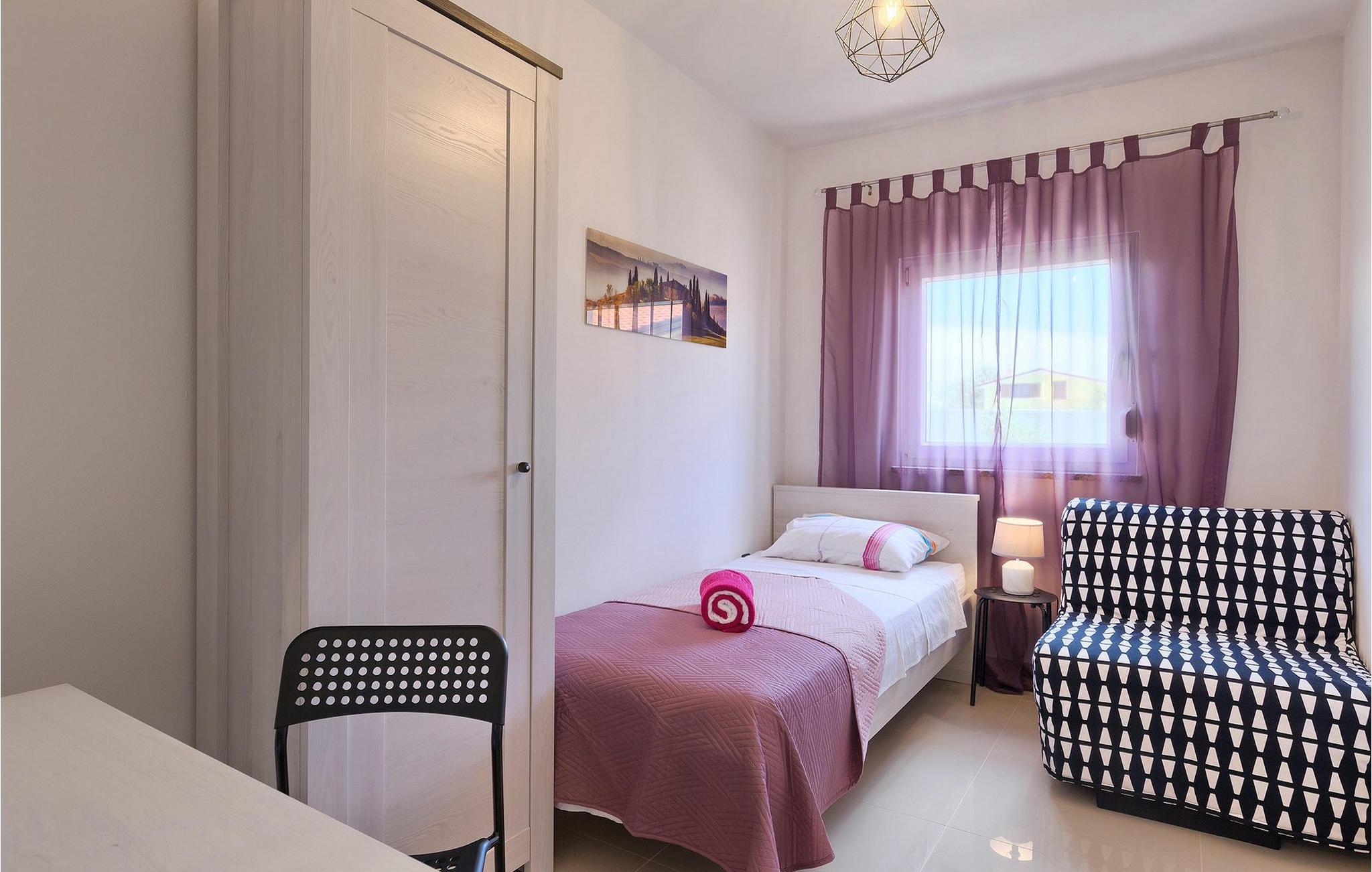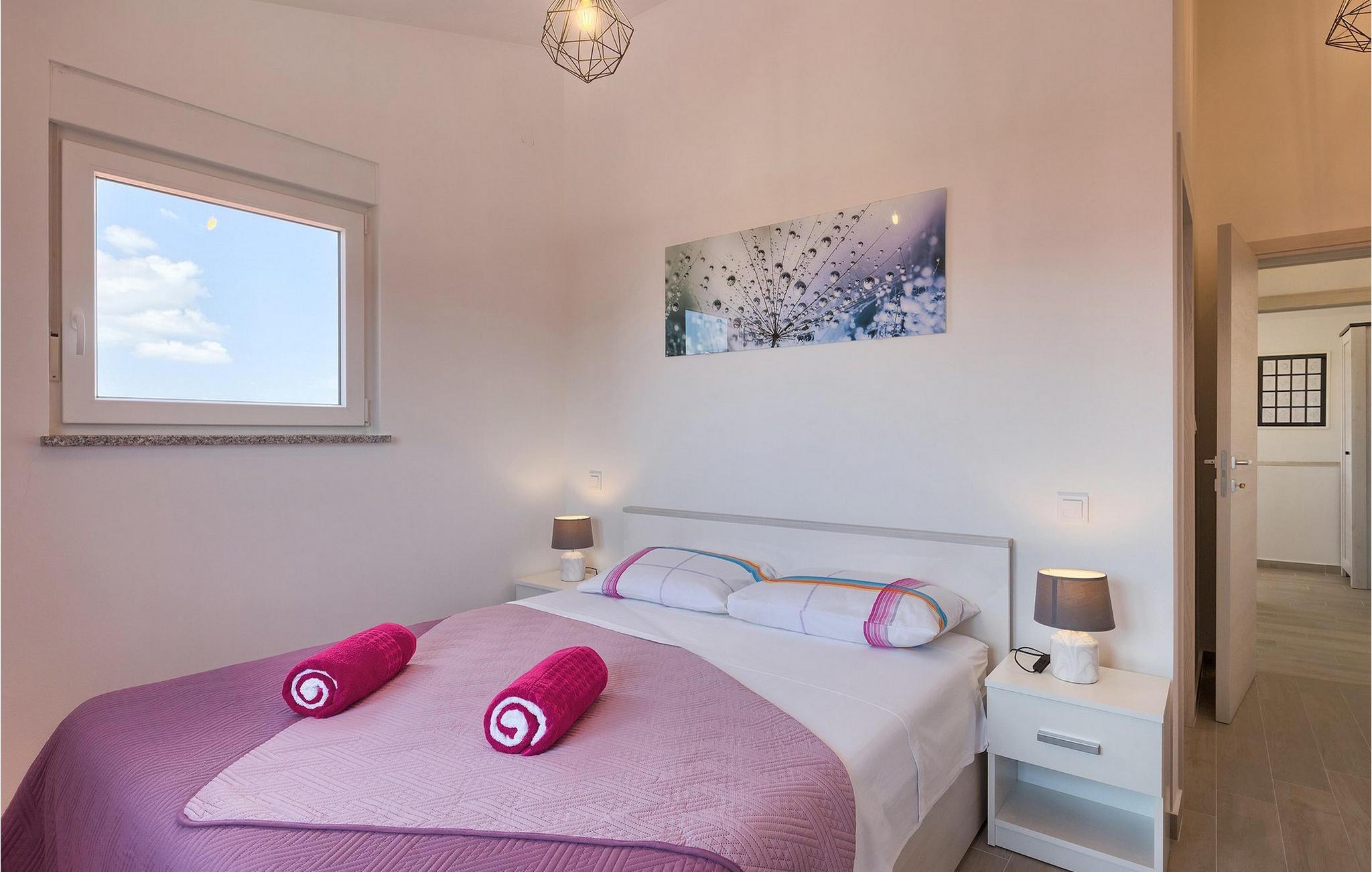 Smuk villa Zeus repræsenterer den perfekte familiebolig i Pula. Det har en dejlig have med oliventræer og er ideelt beliggende - tæt på byen og alle dens faciliteter, og tæt på havet og vidunderlige strande. Villaen består af 4 soveværelser. I stueetagen finder du stue og spisestue, et fuldt udstyret køkken, et soveværelse og et badeværelse. Den øverste etage er opdelt i tre soveværelser, hver med eget badeværelse. Tre soveværelser har en dobbeltseng, mens det ene består af en enkeltseng og en sovesofa til en person. Yderligere sovemuligheder for yderligere to gæster er på den store sovesofa i stuen og på den udtrækbare sofastol i et af værelserne. Villaen har en smuk oplyst privat pool, en overdækket terrasse med spiseplads og et udekøkken. Villaen har aircondition, har Wi-Fi, 5 private parkeringspladser og har en rigtig fordelagtig beliggenhed.