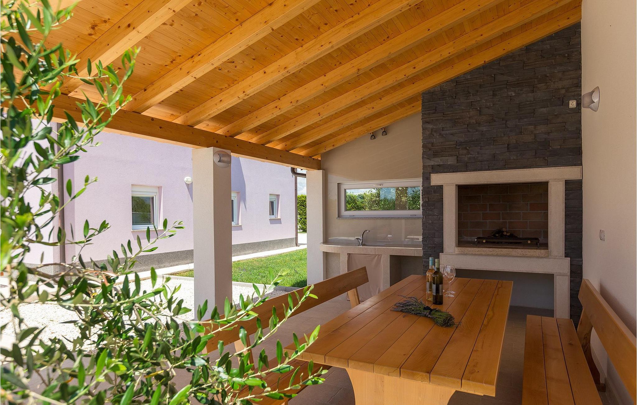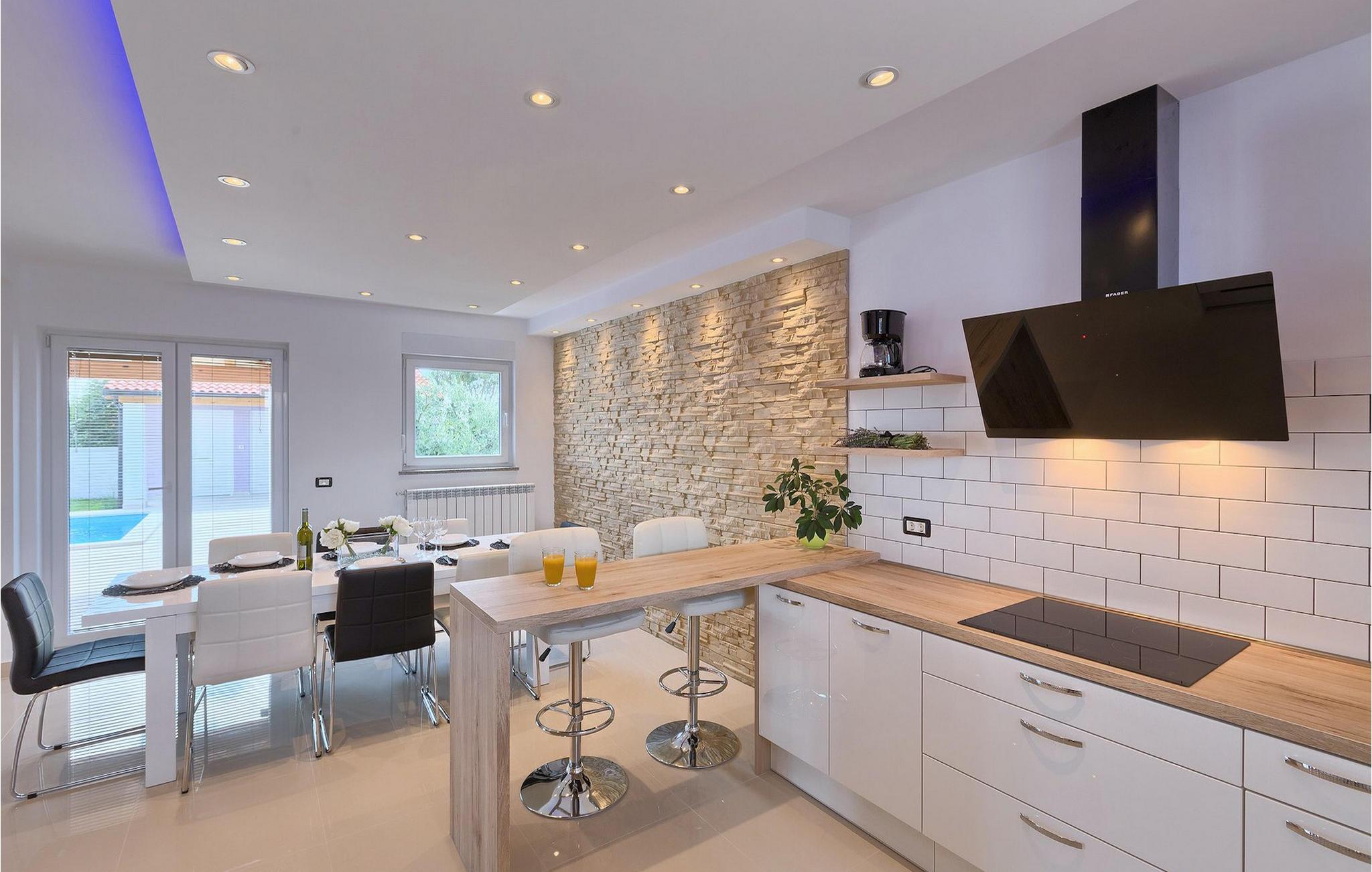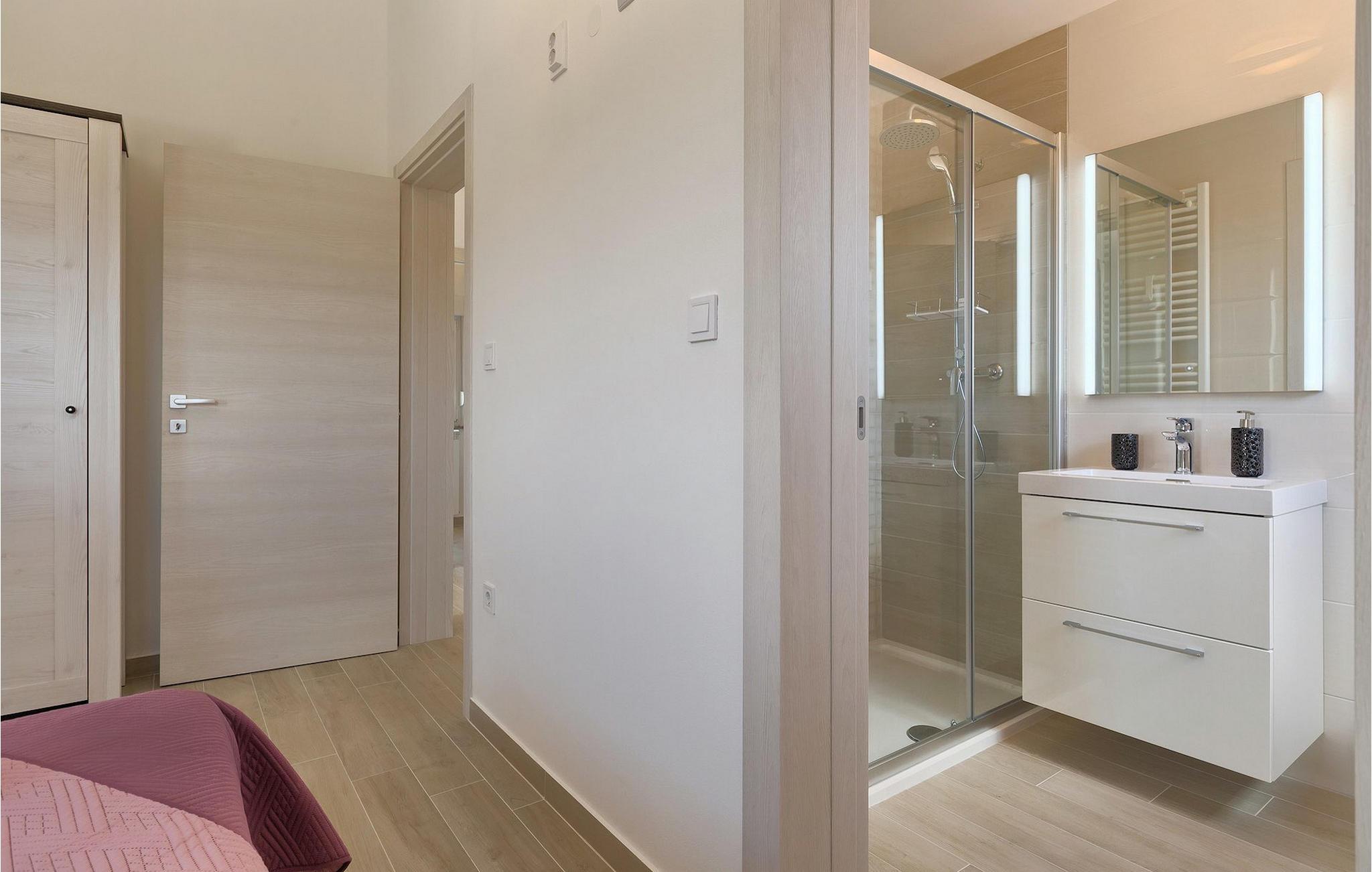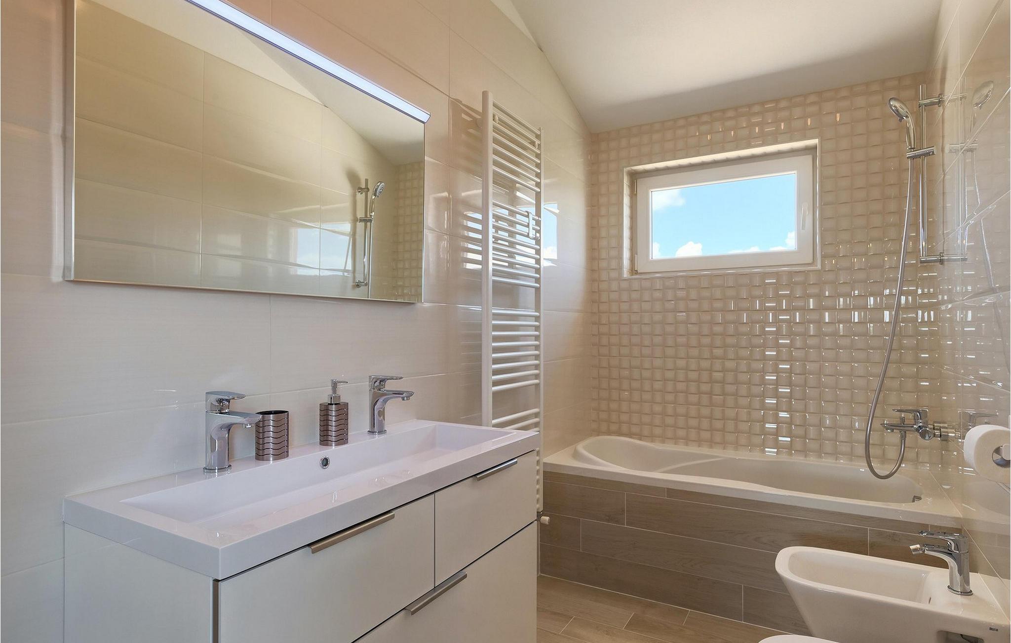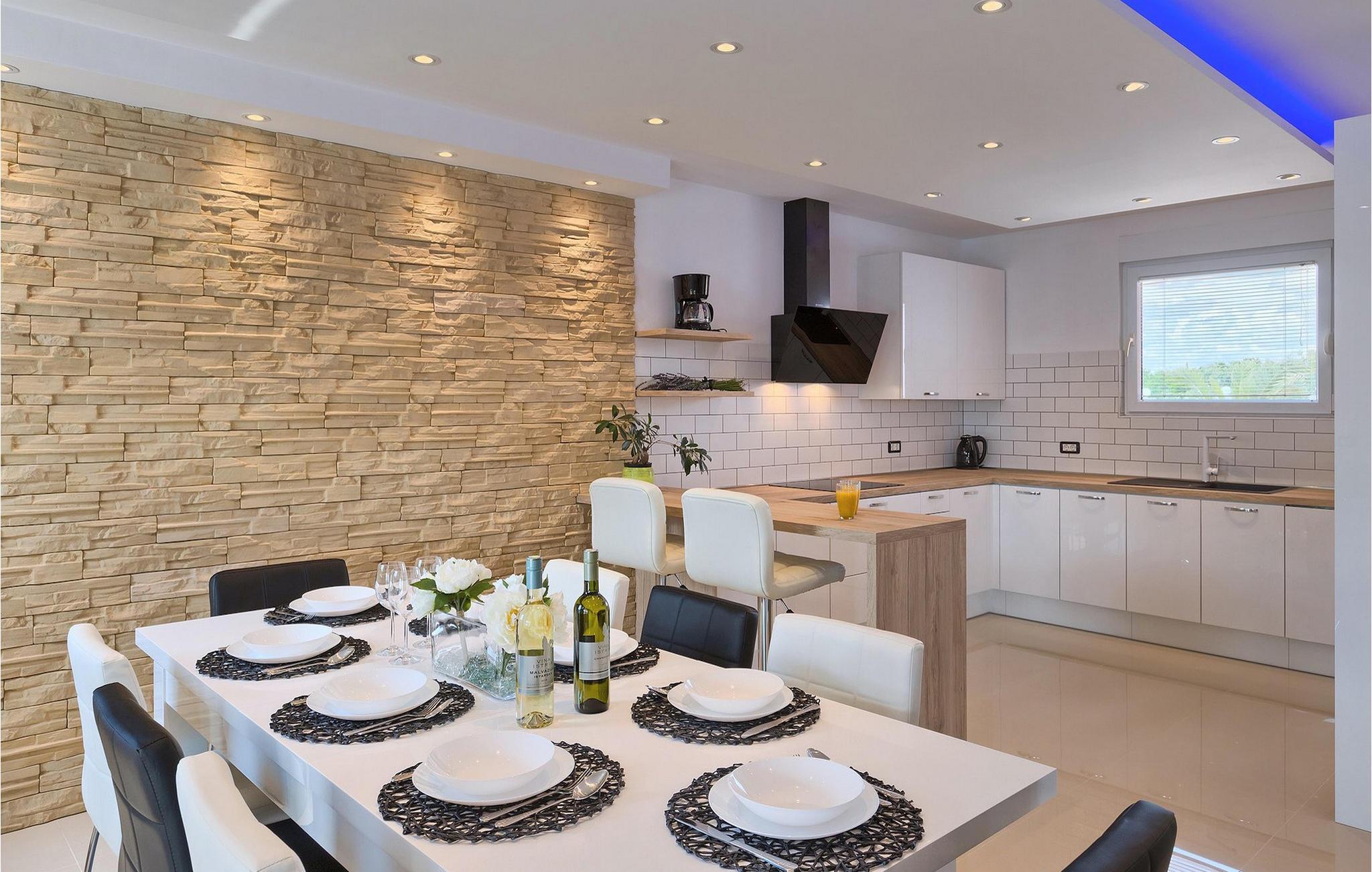 Smuk villa Zeus repræsenterer den perfekte familiebolig i Pula. Det har en dejlig have med oliventræer og er ideelt beliggende - tæt på byen og alle dens faciliteter, og tæt på havet og vidunderlige strande. Villaen består af 4 soveværelser. I stueetagen finder du stue og spisestue, et fuldt udstyret køkken, et soveværelse og et badeværelse. Den øverste etage er opdelt i tre soveværelser, hver med eget badeværelse. Tre soveværelser har en dobbeltseng, mens det ene består af en enkeltseng og en sovesofa til en person. Yderligere sovemuligheder for yderligere to gæster er på den store sovesofa i stuen og på den udtrækbare sofastol i et af værelserne. Villaen har en smuk oplyst privat pool, en overdækket terrasse med spiseplads og et udekøkken. Villaen har aircondition, har Wi-Fi, 5 private parkeringspladser og har en rigtig fordelagtig beliggenhed.