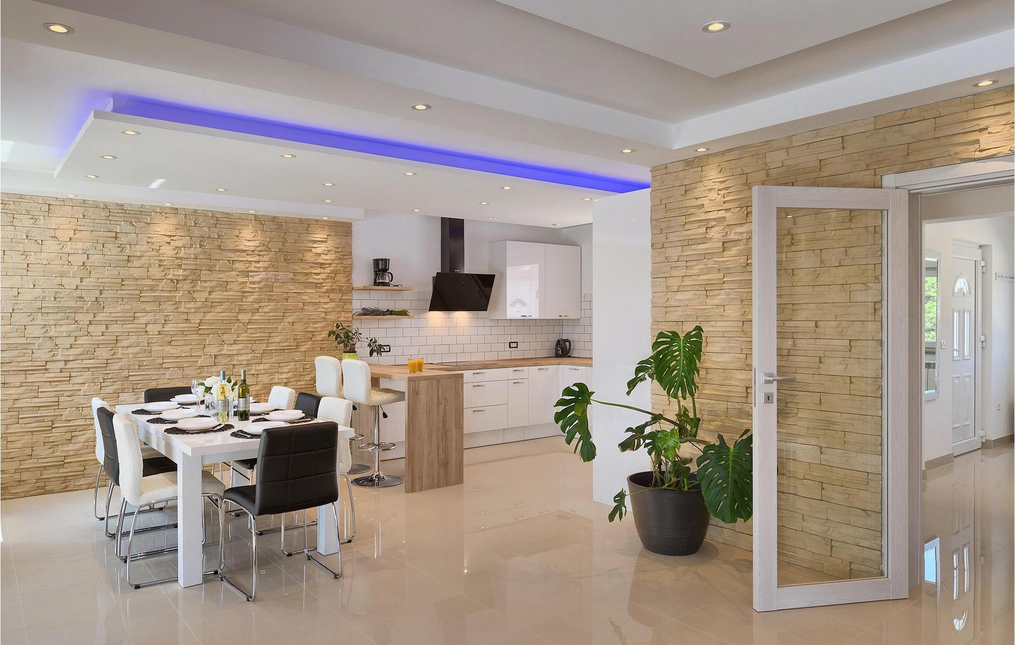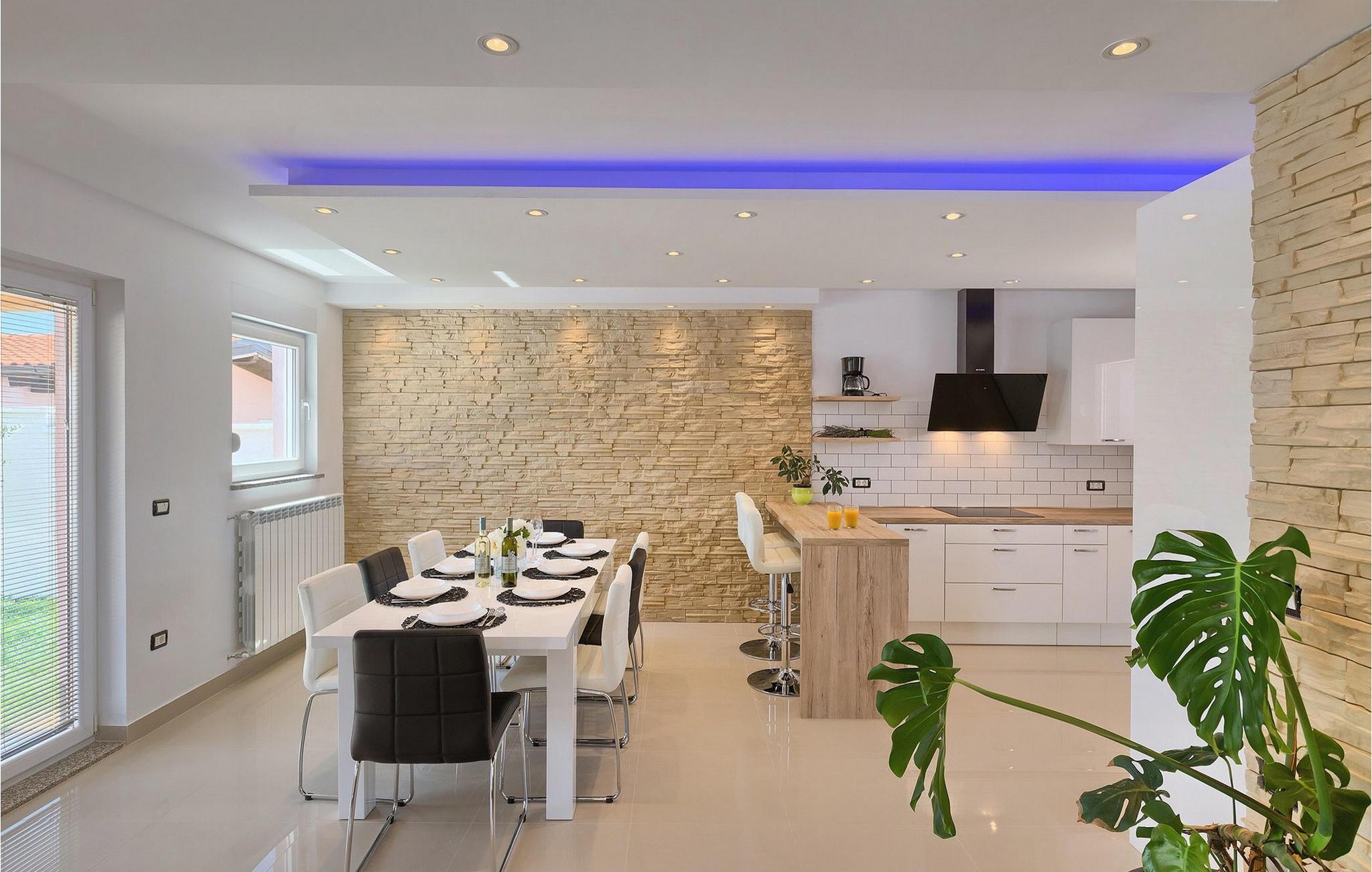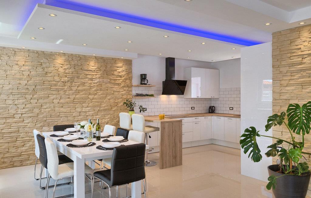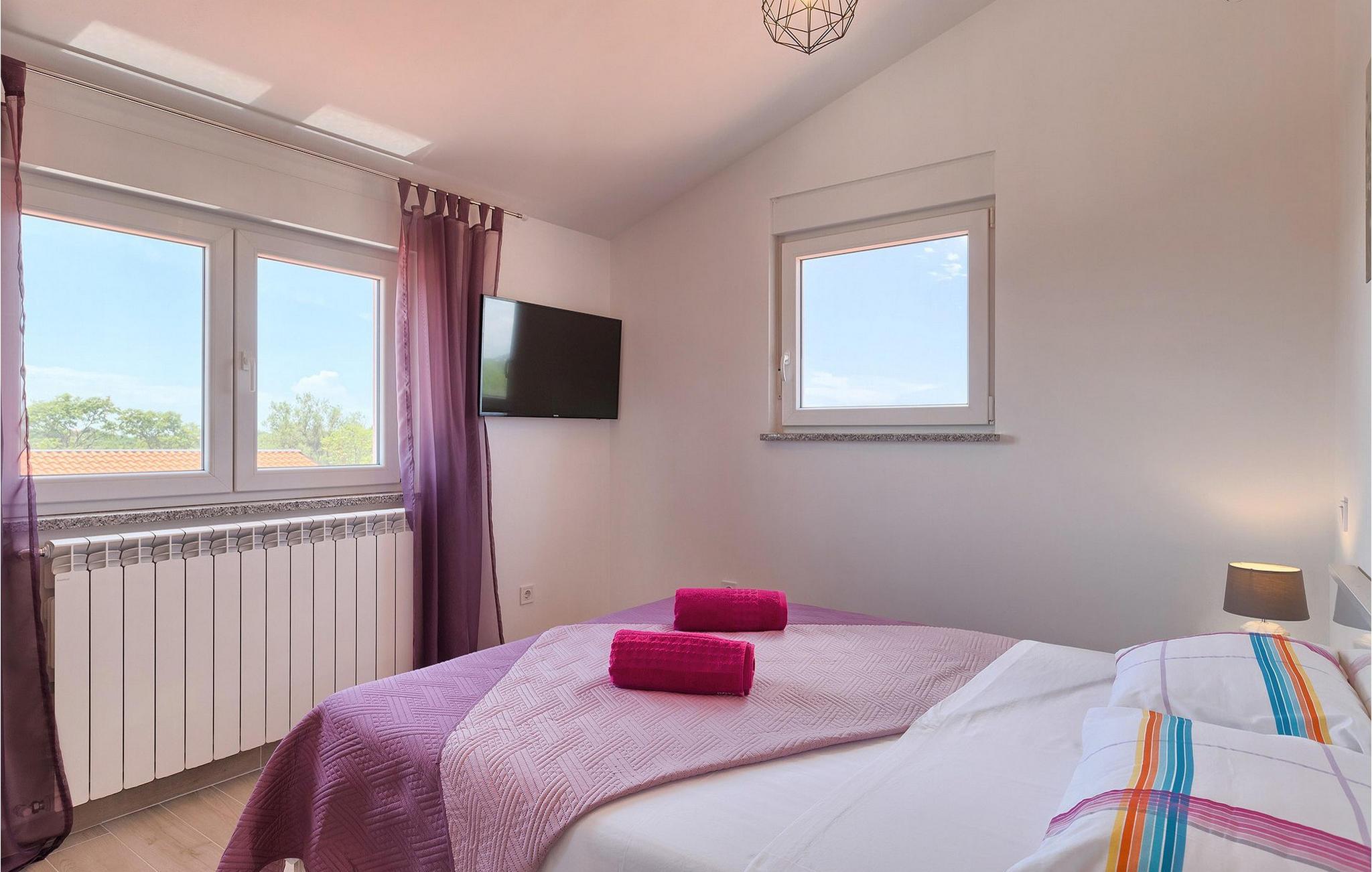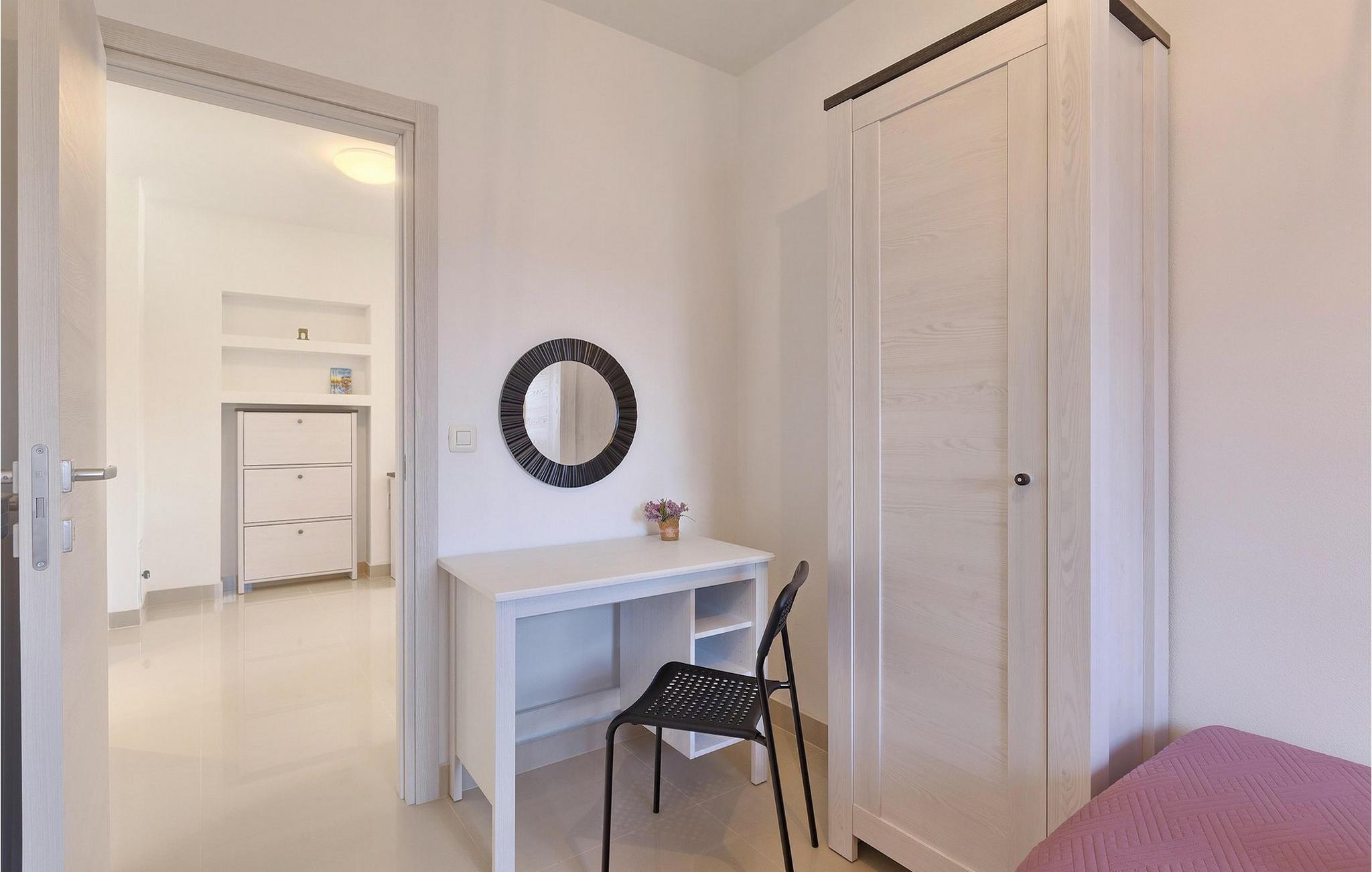 Smuk villa Zeus repræsenterer den perfekte familiebolig i Pula. Det har en dejlig have med oliventræer og er ideelt beliggende - tæt på byen og alle dens faciliteter, og tæt på havet og vidunderlige strande. Villaen består af 4 soveværelser. I stueetagen finder du stue og spisestue, et fuldt udstyret køkken, et soveværelse og et badeværelse. Den øverste etage er opdelt i tre soveværelser, hver med eget badeværelse. Tre soveværelser har en dobbeltseng, mens det ene består af en enkeltseng og en sovesofa til en person. Yderligere sovemuligheder for yderligere to gæster er på den store sovesofa i stuen og på den udtrækbare sofastol i et af værelserne. Villaen har en smuk oplyst privat pool, en overdækket terrasse med spiseplads og et udekøkken. Villaen har aircondition, har Wi-Fi, 5 private parkeringspladser og har en rigtig fordelagtig beliggenhed.