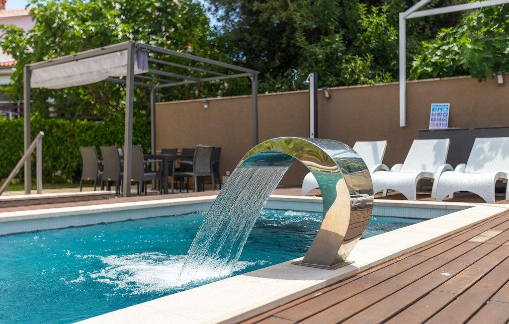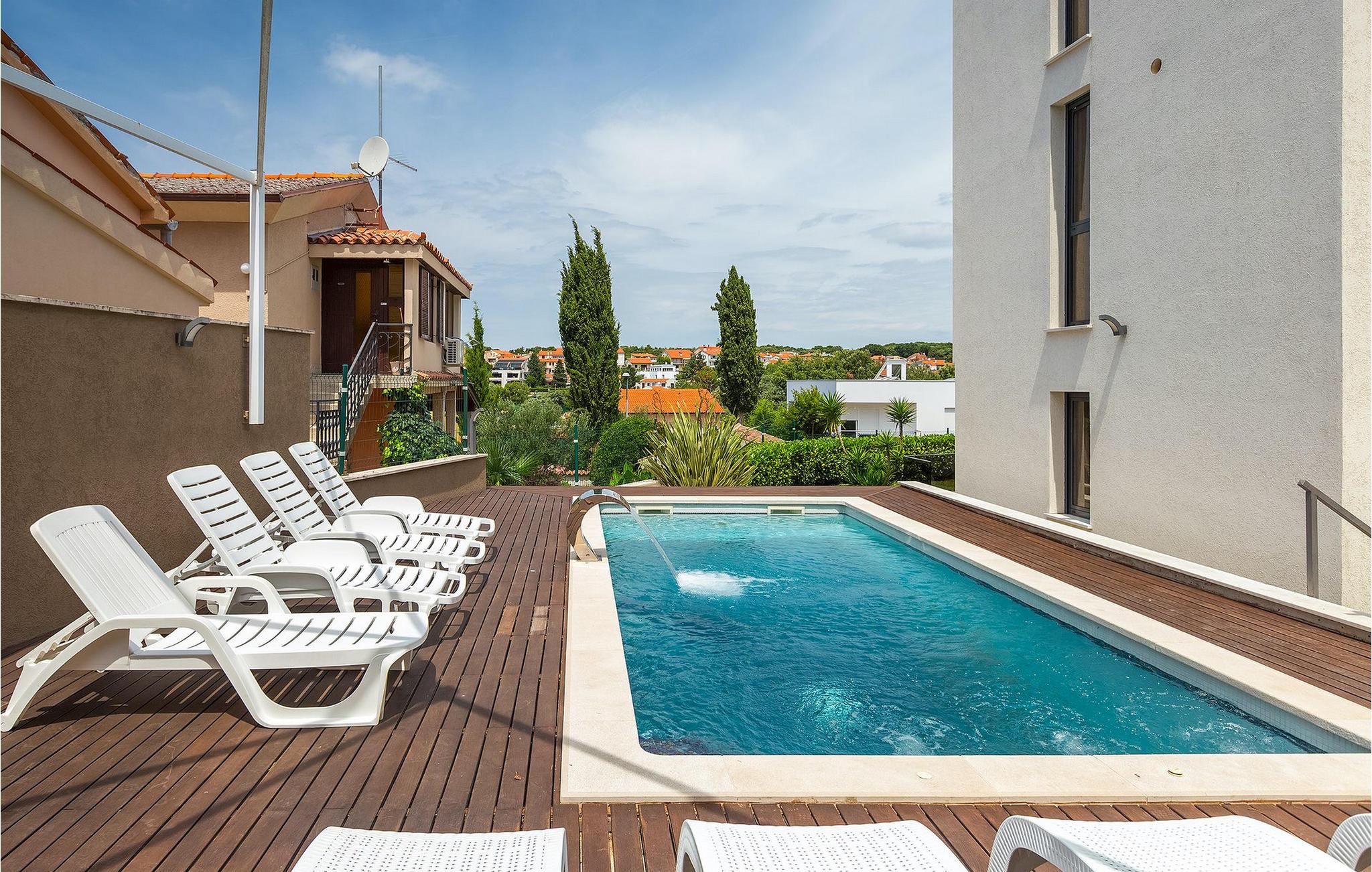 Værelserne er fordelt på 3 etager. I stueetagen finder du 2 soveværelser med hvert sit badeværelse. Et af soveværelserne har direkte adgang til poolen. På første sal, som er et stort, åbent rum, er der den hyggelige opholds- og spisestue med egen terrasse med havudsigt, samt fuldt udstyret køkken. På anden sal finder du yderligere 2 soveværelser, også med private badeværelser. Et af soveværelserne har også en terrasse med en særlig attraktion: en privat jacuzzi. Alle værelser er rummelige, lyse og oversvømmet med lys for at få gæsterne i villaen til at føle sig hjemme. Villaen har WiFi og er fuldt airconditioneret Som navnet antyder, ligger villaen i en af ??de smukkeste dele af byen Pula kaldet Valsabion. Kun en gåtur væk ligger strandene, både sandede og stenede. Strandene er omgivet af små øer, som du kan nå med svømning eller med båd. Kun 50 m fra villaen finder du restauranter, pizzeriaer, barer etc. Lystbådehavnen ligger heller ikke langt væk fra villaen. Det historiske centrum af byen ligger 2 km fra villaen. Både Pula og den charmerende by Medulin er let tilgængelige. Pula er en historisk by og et ideelt valg for dem, der nyder sightseeing. Det mest berømte romerske monument i Pula, start- og slutpunktet for hver sightseeingtur, er amfiteatret, almindeligvis kendt som Arena of Pula, hvor gladiatorkampe engang fandt sted. Det blev bygget i det 1. århundrede e.Kr. under kejser Vespasians tid, samme periode som det storslåede Colosseum i Rom. I dag er det et mødested for sommerarrangementer - filmfestival, operasæson, ridefestival, koncerter og teaterforestillinger. De underjordiske tunneler, der engang blev brugt af gladiatorer, fungerer nu som udstillingssteder.