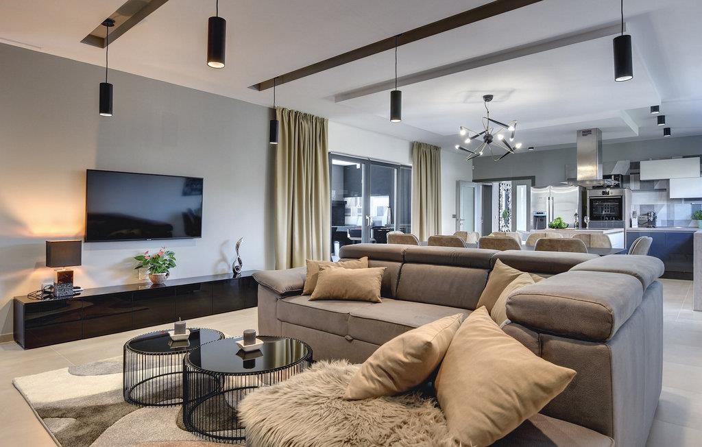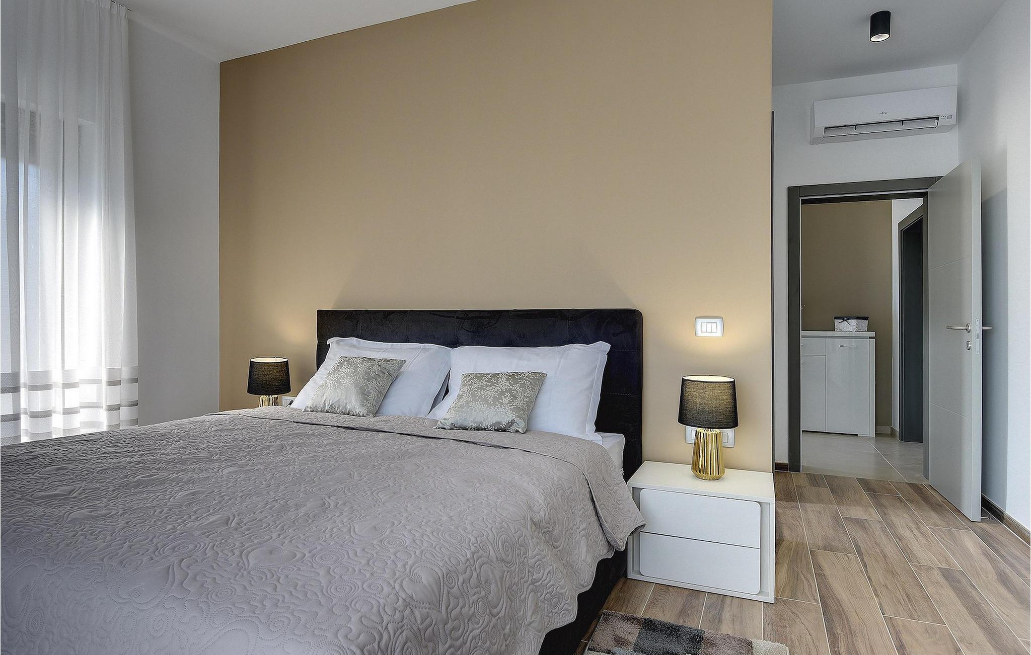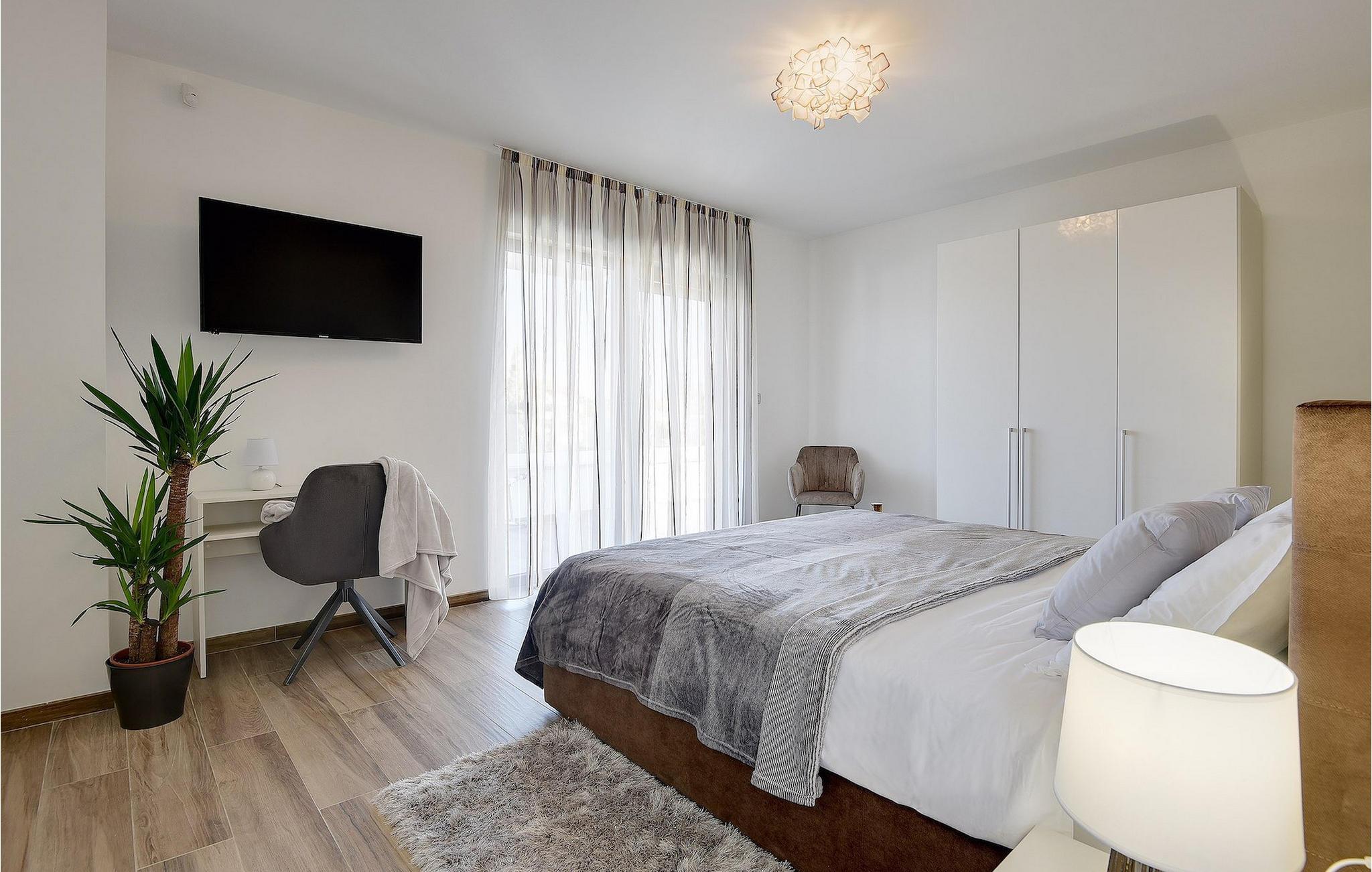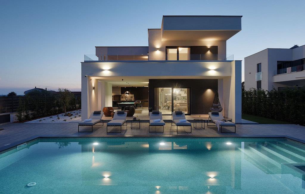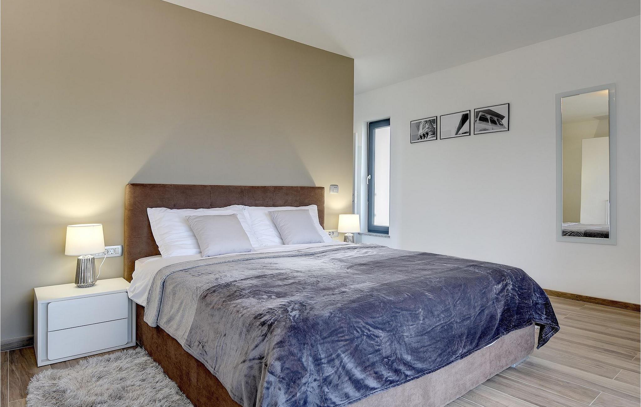 Denne luksuriøse villa vil charmere dig med sit smukke, omhyggeligt gennemtænkte design, indbydende private pool og masser af underholdningsmuligheder samt sin bekvemme beliggenhed lige uden for Pula. Denne spektakulære villa på 410 kvadratmeter giver en stilfuld og moderne ferie, der perfekt kombinerer en aktiv og afslappende ferie. Villaens smagfuldt indrettede interiør består af en elegant åben stueetage med stue/spisestue og køkken, samt et soveværelse med dobbeltseng med eget badeværelse og et gæstetoilet. Fra både opholdsstuen og soveværelset har du direkte adgang til det dejlige udendørsområde og den private pool indrammet af komfortable liggestole. Den overdækkede udendørs spiseplads giver mulighed for al fresco spisning ved siden af, hvor du finder poolbordet og bordfodbolden, komplet med et loungeområde, perfekt til at tage en pause i løbet af dagen eller aftenen.
