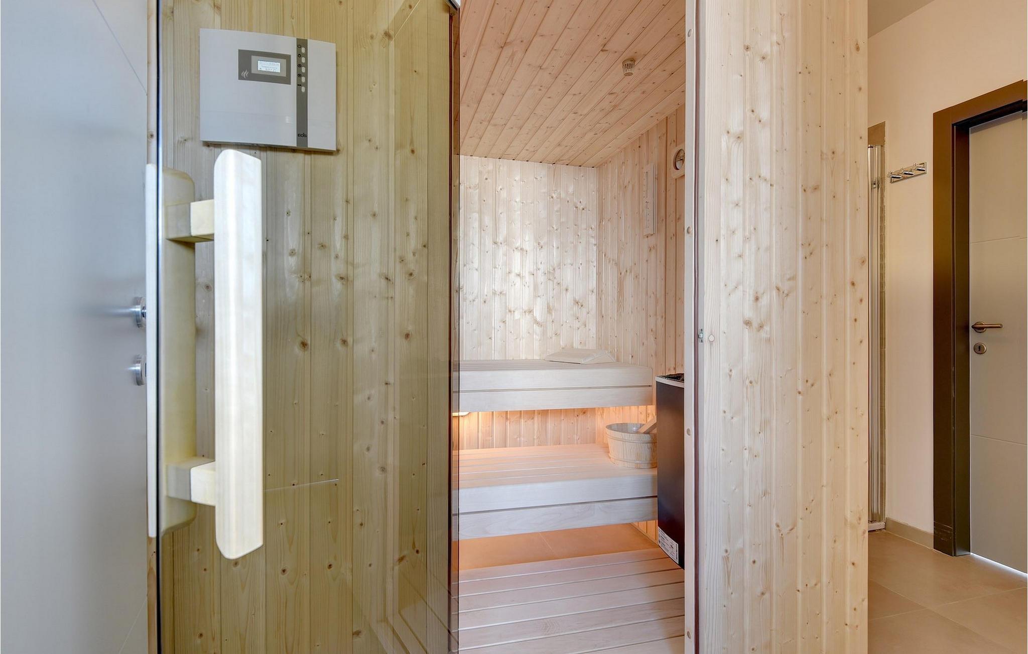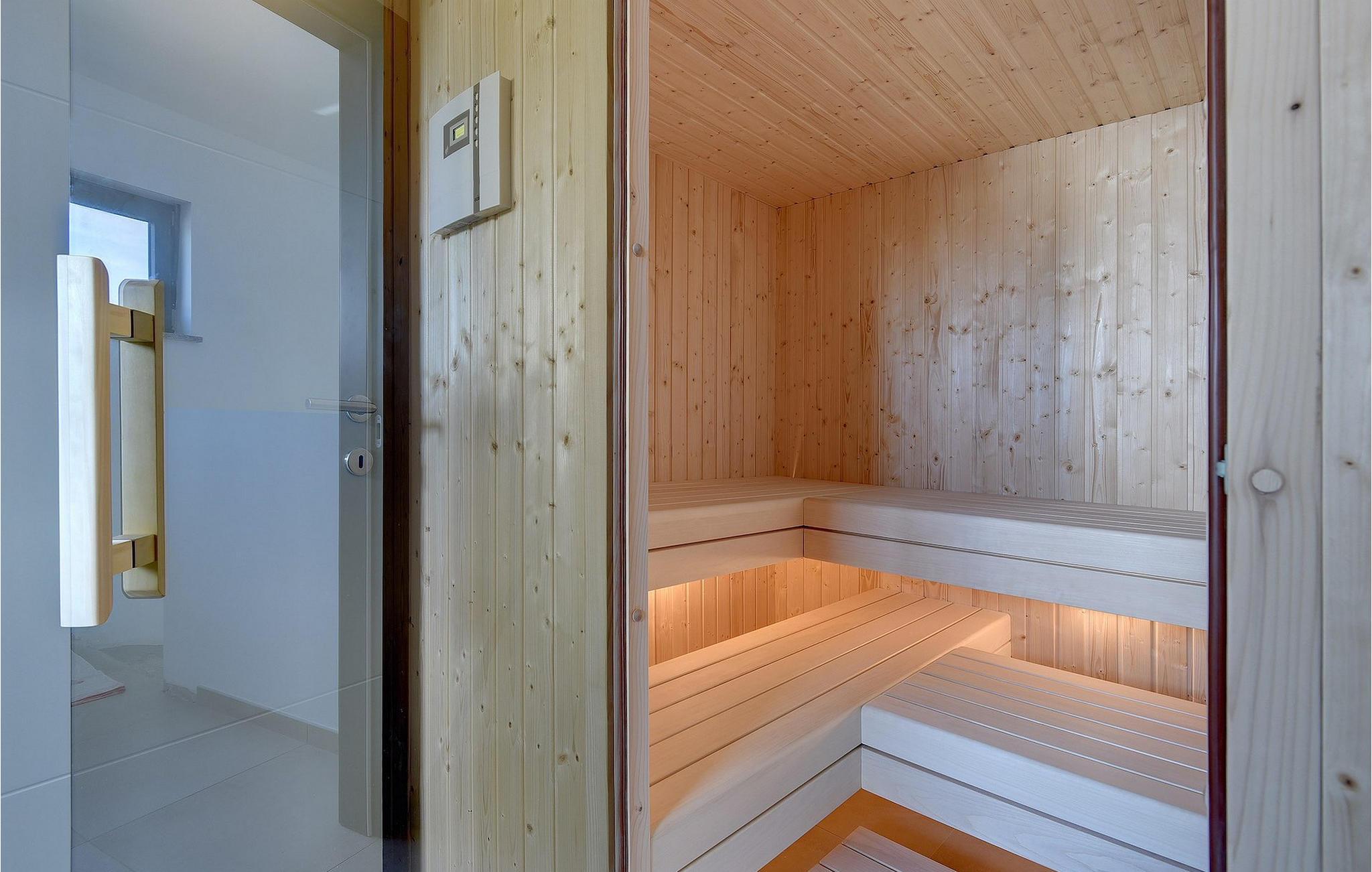Tre rummelige soveværelser, som alle også kommer med eget badeværelse, er placeret på første sal, hvor du også finder en færdig sauna. Alle værelser er udstyret med dobbeltseng og tv og har aircondition.