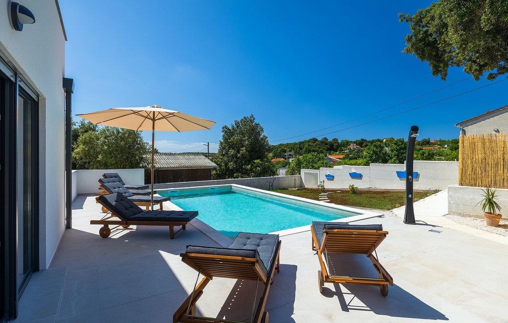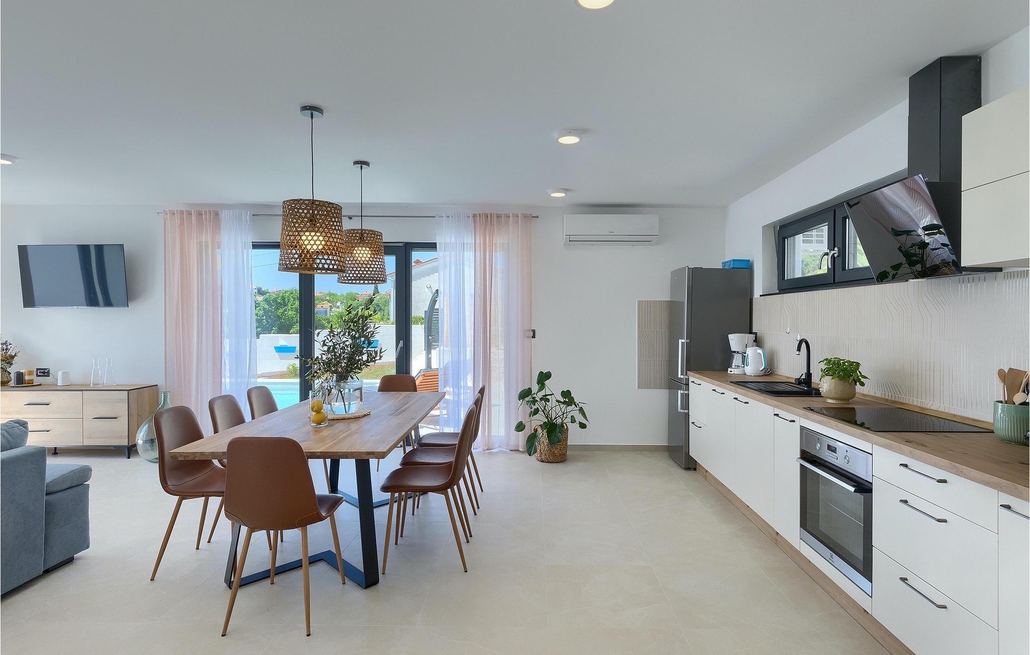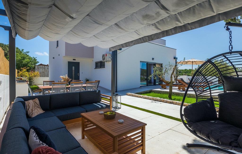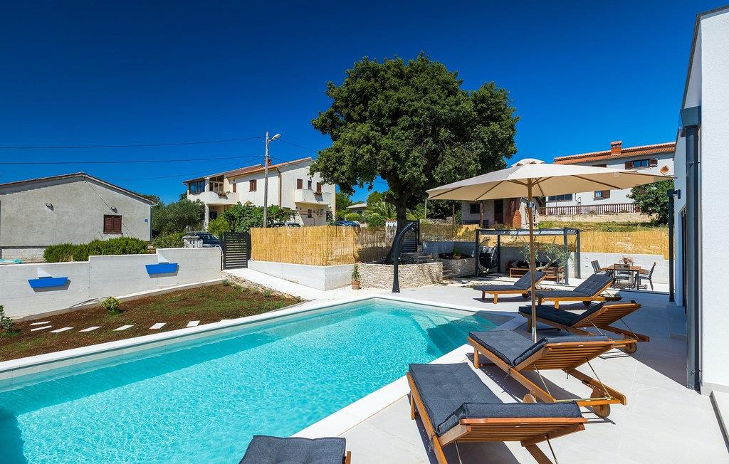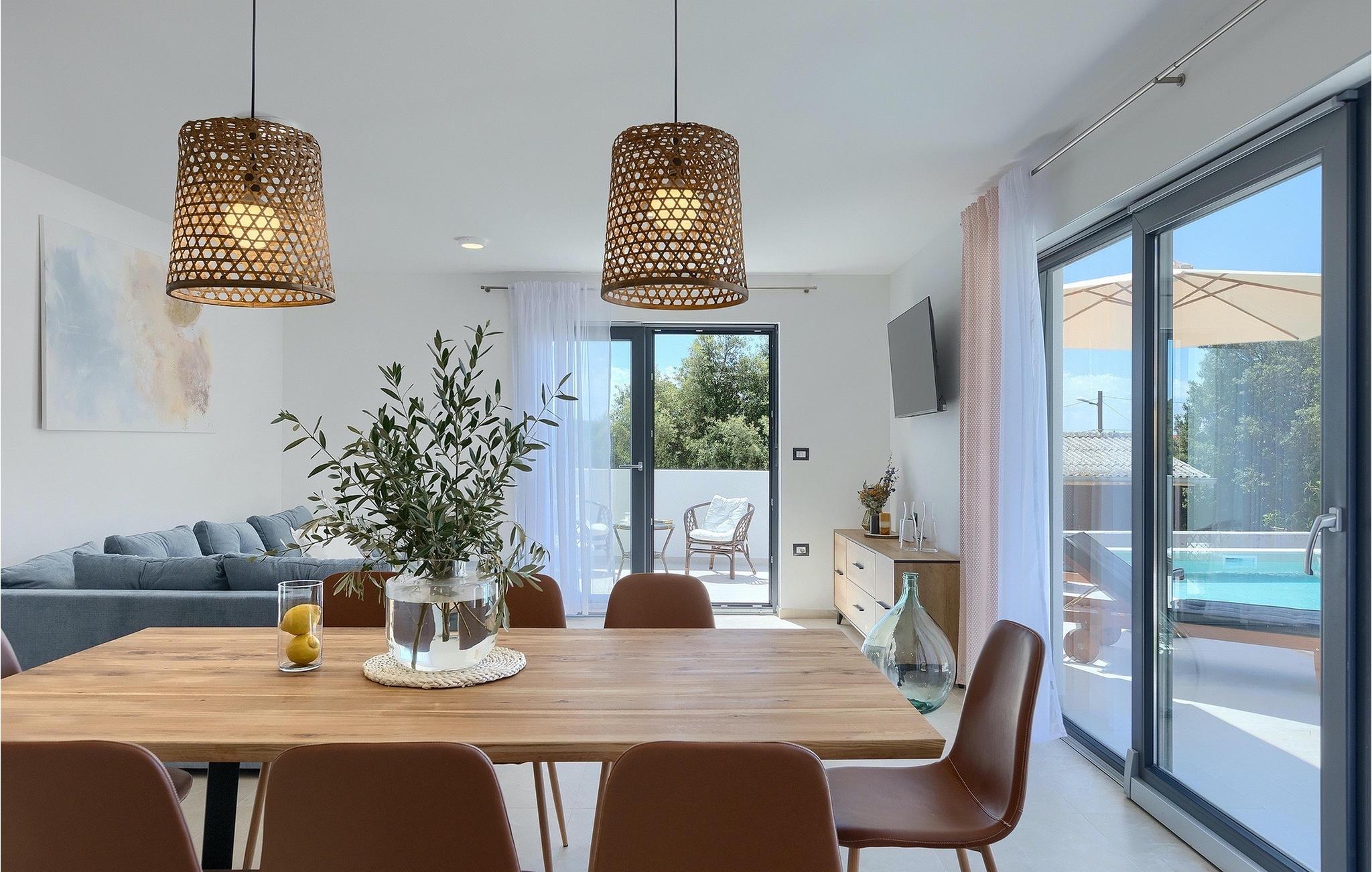 Villa My Hana ligger nær den historiske by Pula. Den kan rumme op til 8 personer og byder på alt til en afslappende ferie med dine kære. Udenfor finder I en skøn privat pool med liggestole samt en overdækket terrasse med havemøbler, en grill og en udendørs spiseplads. Ejendommen er fuldt indhegnet og har privat parkering til op til 4 biler. Villaens stueetage har en stilfuld stue med spiseplads og et fuldt udstyret køkken og to soveværelser. Der er to mere komfortable soveværelser og en stor terrasse på gulvet. Hvert soveværelse har aircondition, tv og eget badeværelse. Villa My Hana er det perfekte valg til at undslippe din hverdag og tilbringe en drømmeferie. Ungdomsgrupper er ikke tilladt.Villa My Hana ligger i nærheden af Pula. Pula er turistcentrum i Istrien, hvad angår kultur, tradition og smuk natur. Den havde sin storhedstid i romertiden. Romerne efterlod sig mange spor, især det smukke amfiteater. Udforsk byens gader og nyd din første kop kaffe i en af de mange barer og restauranter, hvor du også kan prøve de berømte specialiteter i Istrien. Kun en kort køretur væk ligger Cape Kamenjak, et vidunderligt eksempel på uberørt natur. Krystalklart hav og strande med naturlig skygge vil tage pusten fra selv de mest kræsne gæster. For sportselskere tilbydes forskellige aktiviteter, såsom fodbold, ridning, tennis, sejlads, minigolf, flyvning, bowling, volleyball på sandet, dykning gennem stilheden i undervandsverdenen og flere andre sportsgrene og vandsport.
