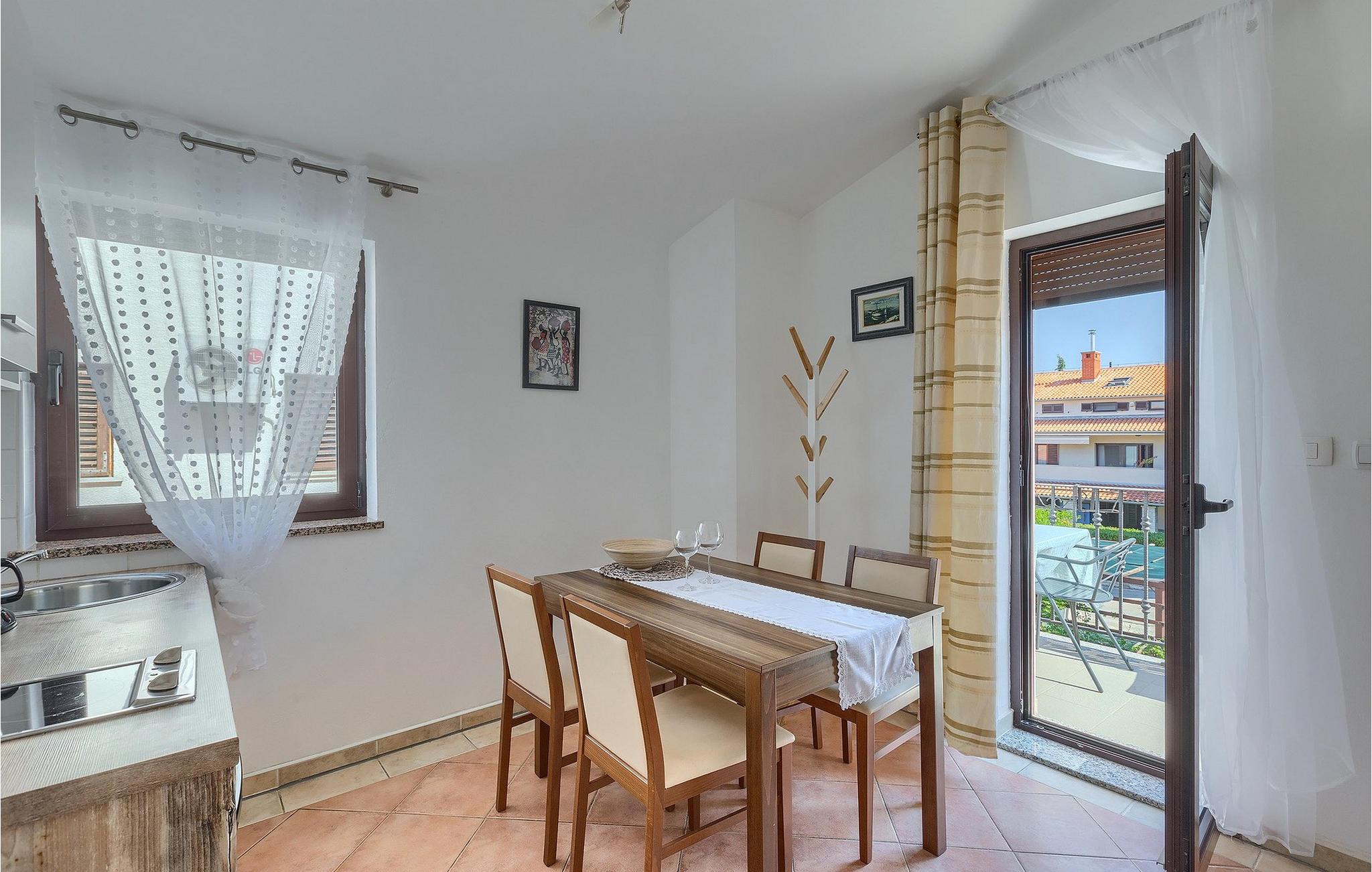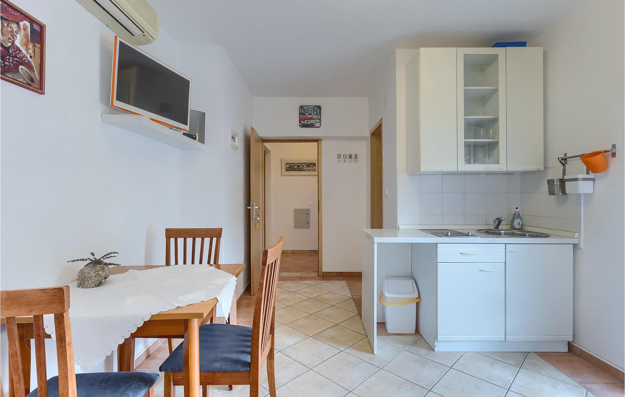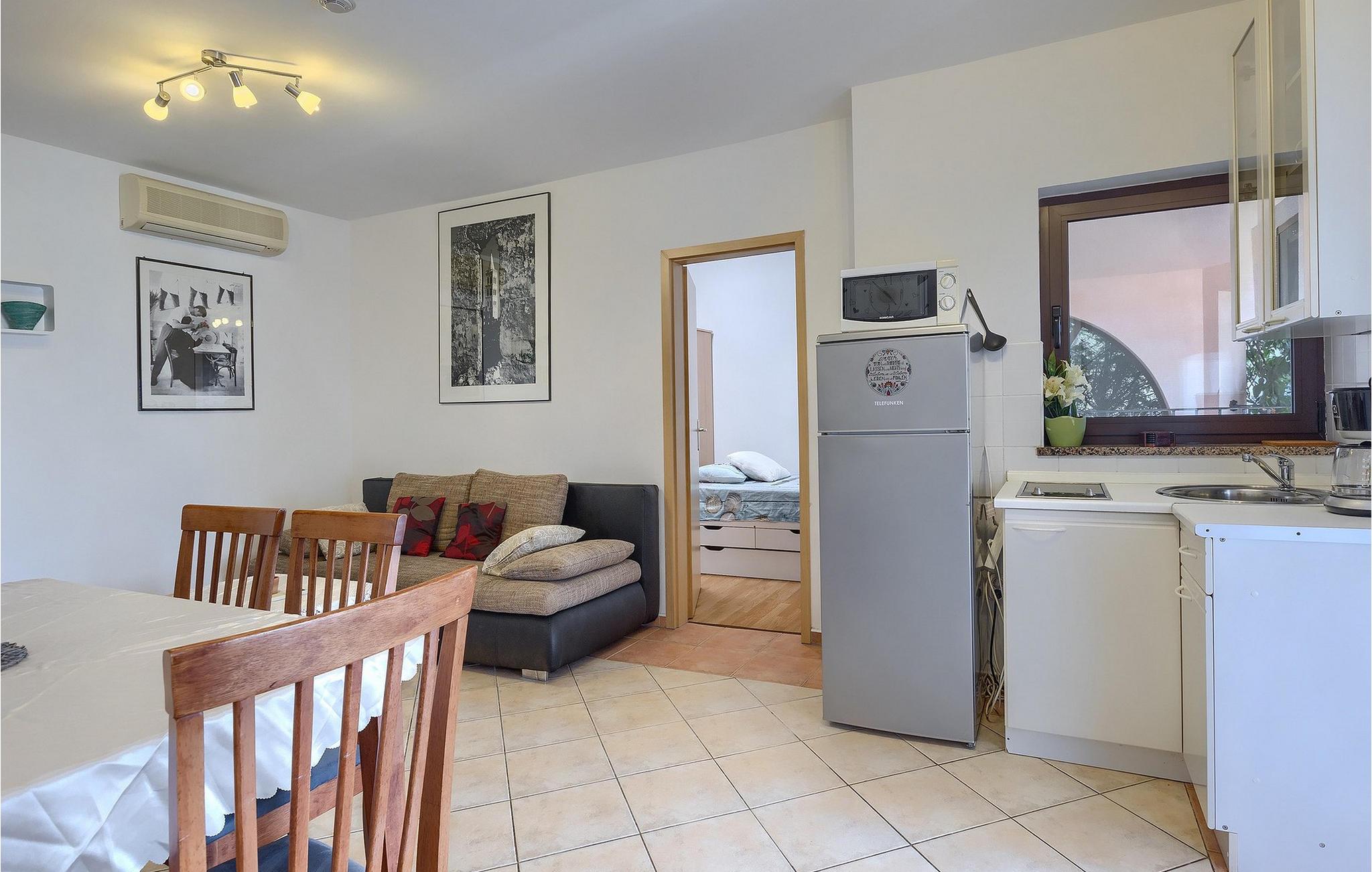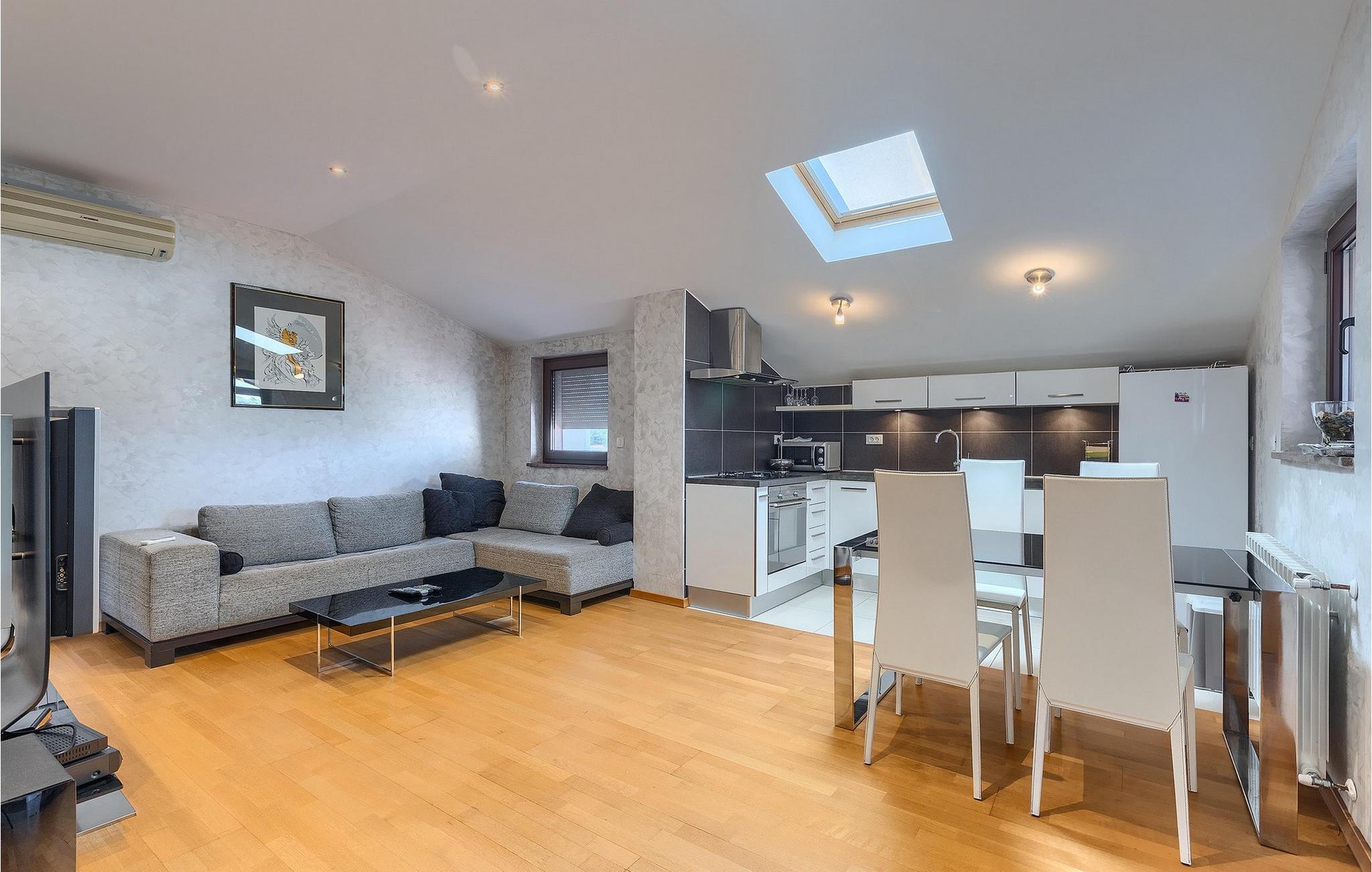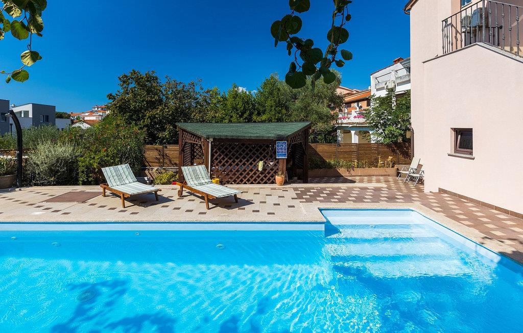Wenn betrachtet vom Pool aus, befindet sich im Erdgeschoß auf der einen Seite ein gut ausgestatteter Fitnessbereich, damit Sie im Urlaub aktiv bleiben können, allerdings stehen Ihnen hier auch eine Sauna und ein Solarium zur Verfügung. Auf der anderen Seite des Erdgeschoßes befindet sich eine Taverne mit einer Küche, zwi großen Esstischen und einem großen Steingrill, damit Sie ein Raum haben, wo alle Mitreisende Zeit zusammen verbringen können. Es steht Ihnen auch ein Billardtisch zur Verfügung, der sowohl den kleinsten als auch den etwas älteren Gästen viel Spaß machen wird. :) Der ganze Bereich hat einen direkten Zugang zur Terrasse und zum Außenbereich.