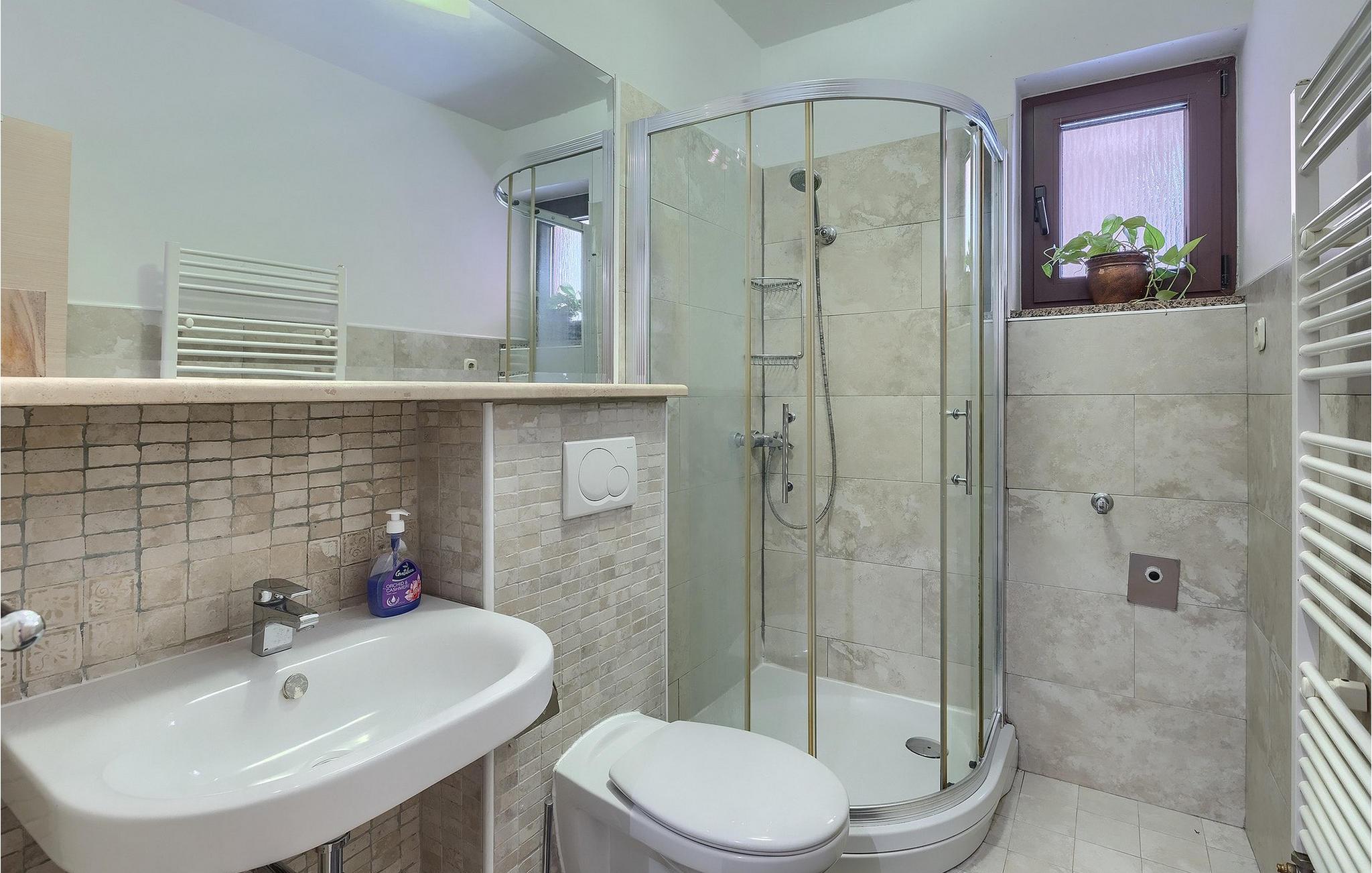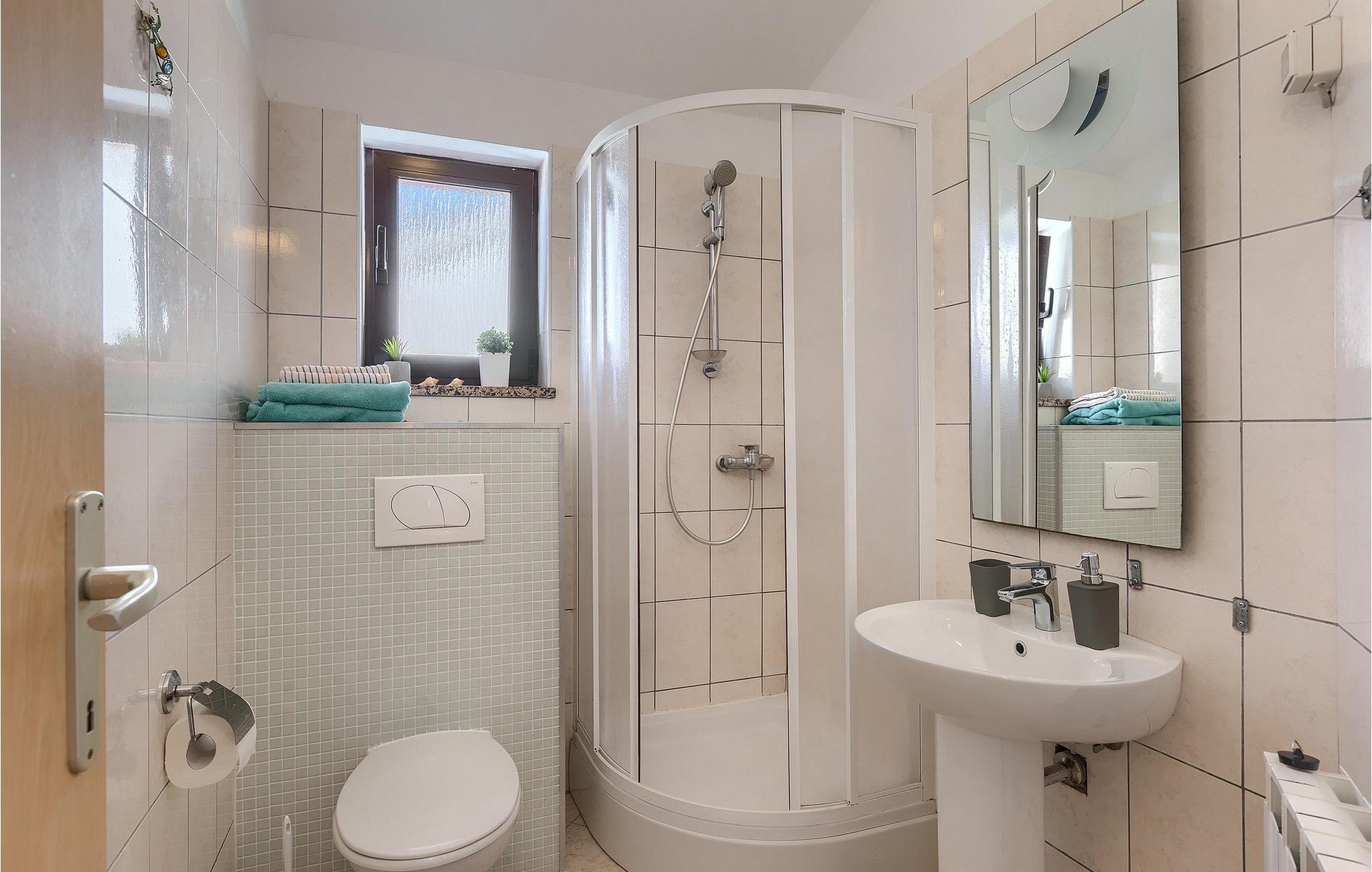 - WC mit warmem und kaltem Wasser, Dusche