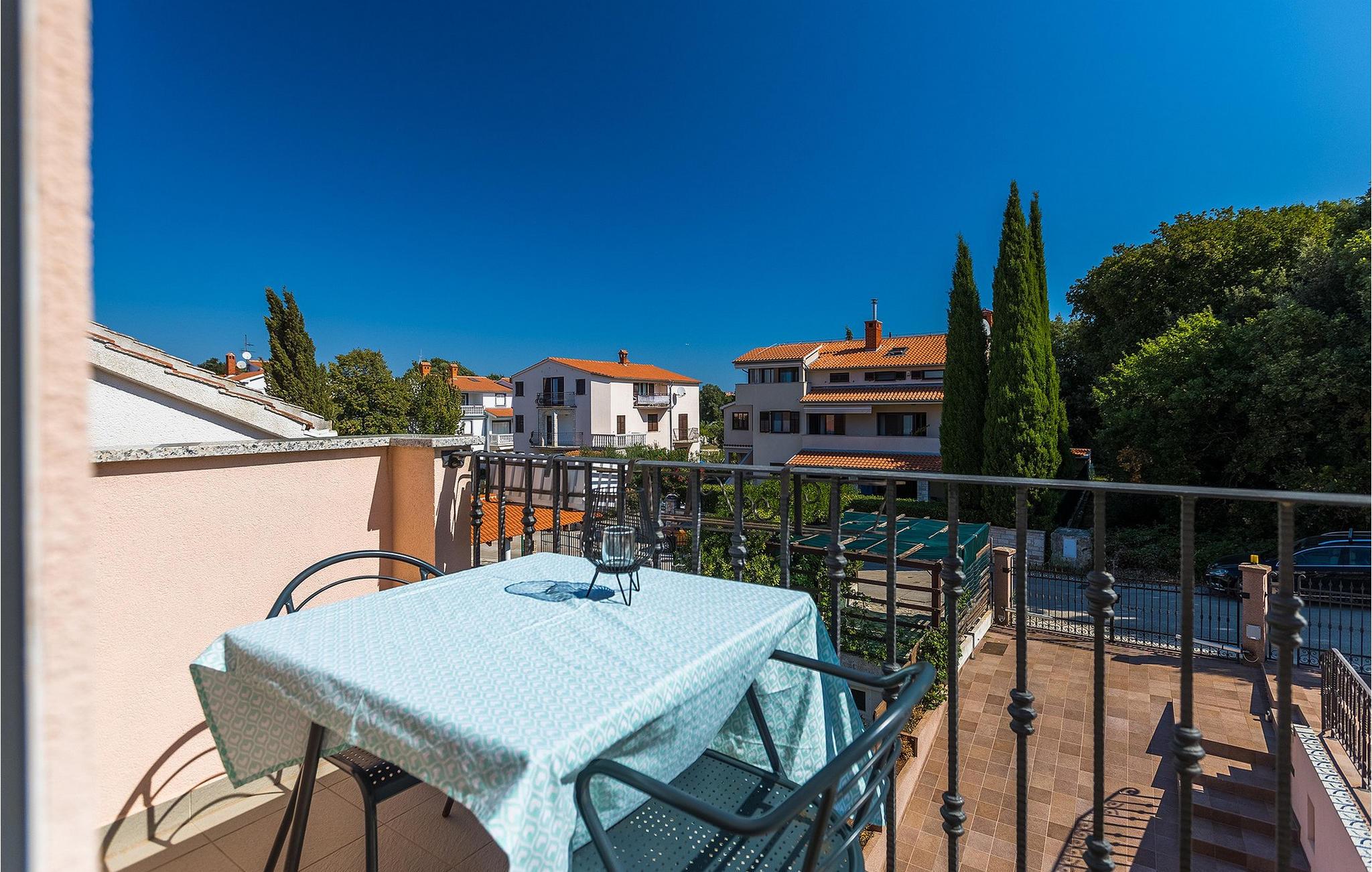Und schließlich befinden sich im Obergeschoss zwei weitere Schlafzimmer, beide mit Doppelbetten ausgestattet, die sich ein Badezimmer teilen. Zur Verfügung stehen Ihnen auch ein Wohnzimmer mit Essbereich und Küche sowie eine halbüberdachte Terrasse, auf der Sie Ihren Morgenkaffee trinken und die Aussicht genießen können.