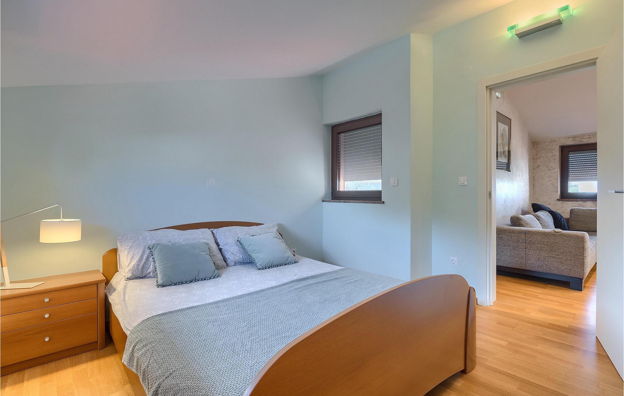 Eine Etage höher erreichen Sie die ersten drei Schlafzimmer. Eines der Schlafzimmer hat ein Doppelbett und die restlichen zwei Schlafzimmer haben jeweils ein großes Einzelbett. Außerdem befinden sich auf dieser Etage zwei Bäder, eine weitere Küche mit Essbereich sowie ein weiteres Wohnzimmer.