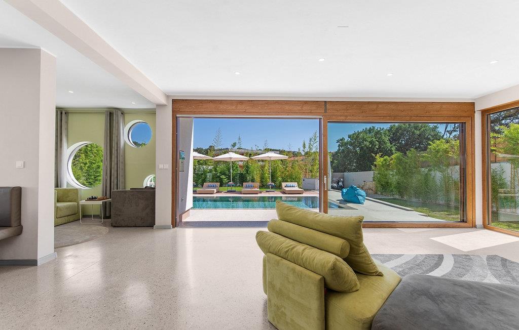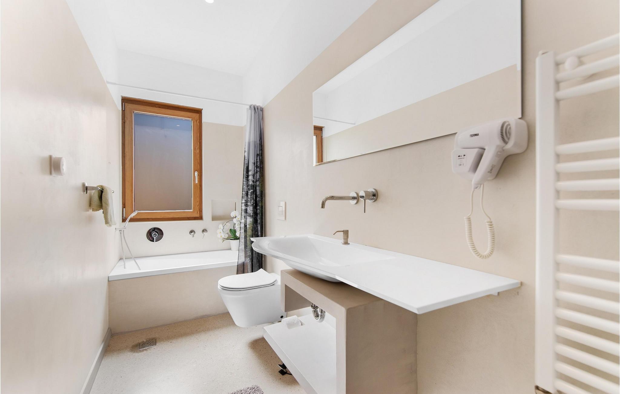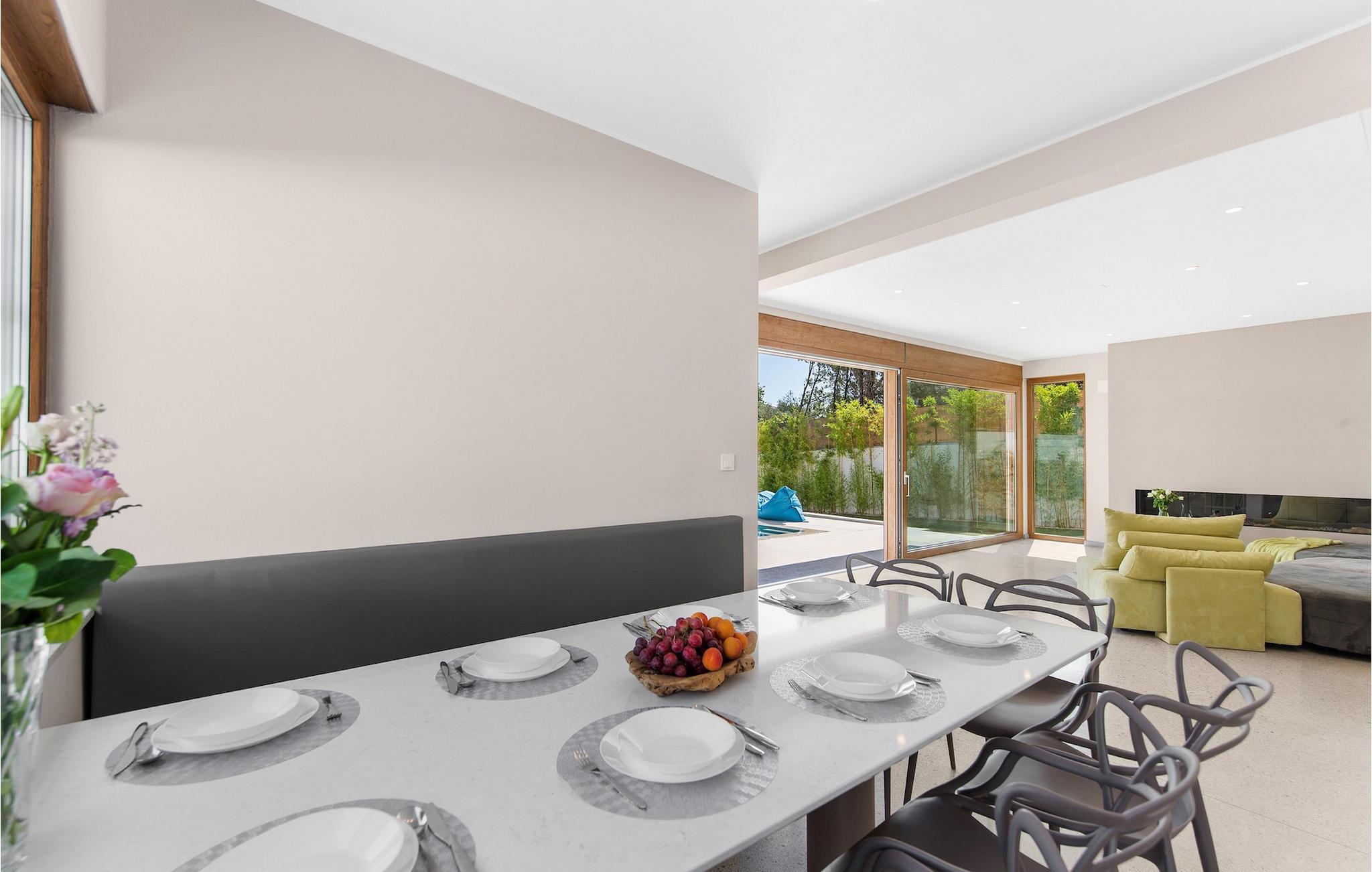 Det ydre af Villa Breeze er et blikfang. Du vil elske den 42m2 forfriskende pool på varme sommerdage! Slap af på en af liggestolene eller nyd tiden med dine kære på den skyggefulde terrasse, mens du tilbereder lækre måltider på grillen. En udendørs lounge er ideel til at tilbringe varme sommeraftener og nyde storformatfilm med beameren. Villaens indre er åbent og lyst. Fra terrassen kommer du til den moderne opholdsstue med et fuldt udstyret køkken og et stort spisebord til op til 10 personer. I stueetagen har du et komfortabelt soveværelse og et separat badeværelse med badekar. Der er yderligere 4 soveværelser på øverste etage. 2 af soveværelserne har hver deres eget badeværelse med bruser. Et andet fælles badeværelse har badekar. Der er et lille højdepunkt i et af de komfortable soveværelser: en rund seng.
