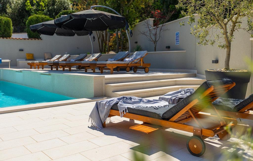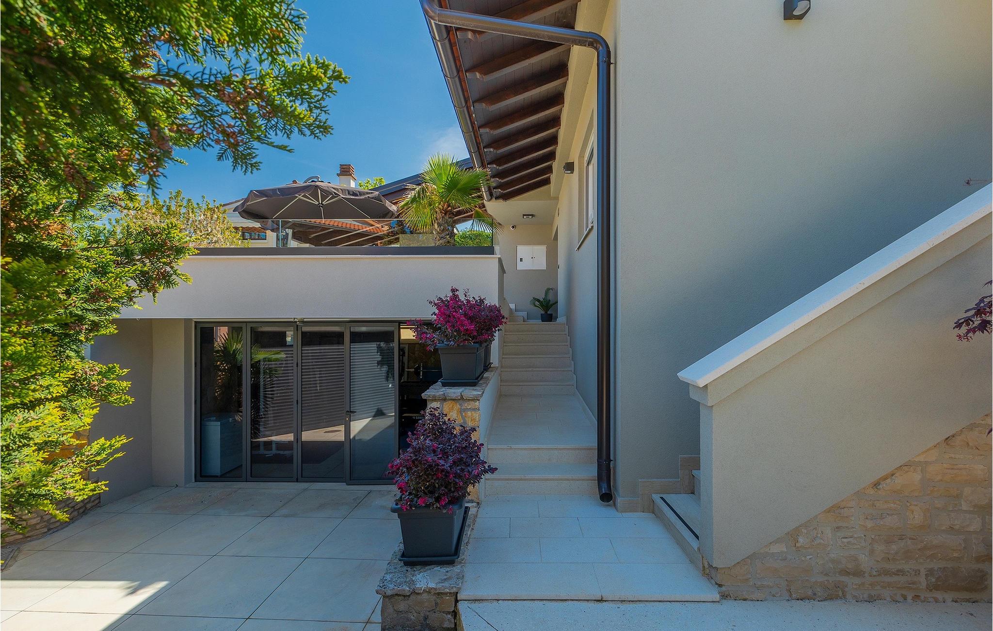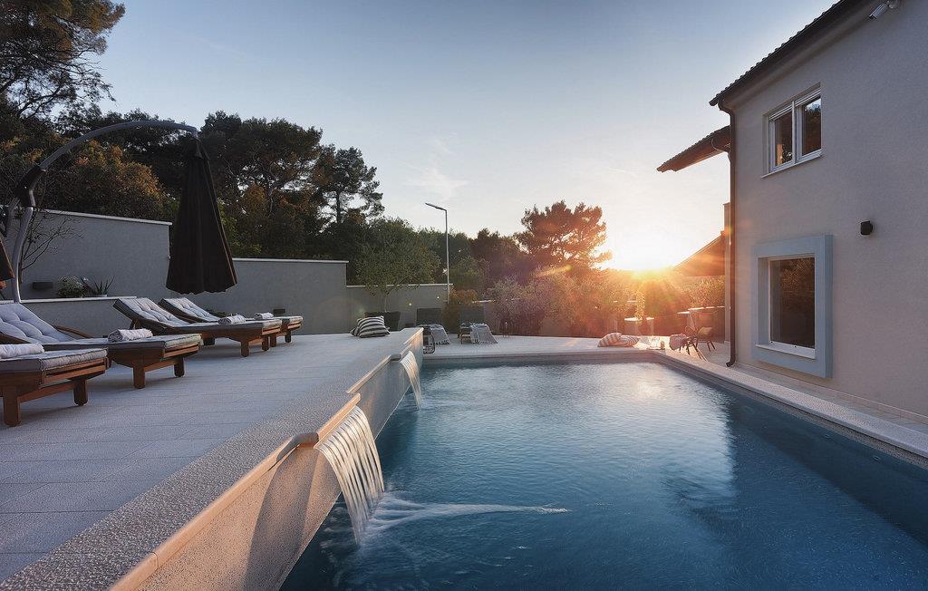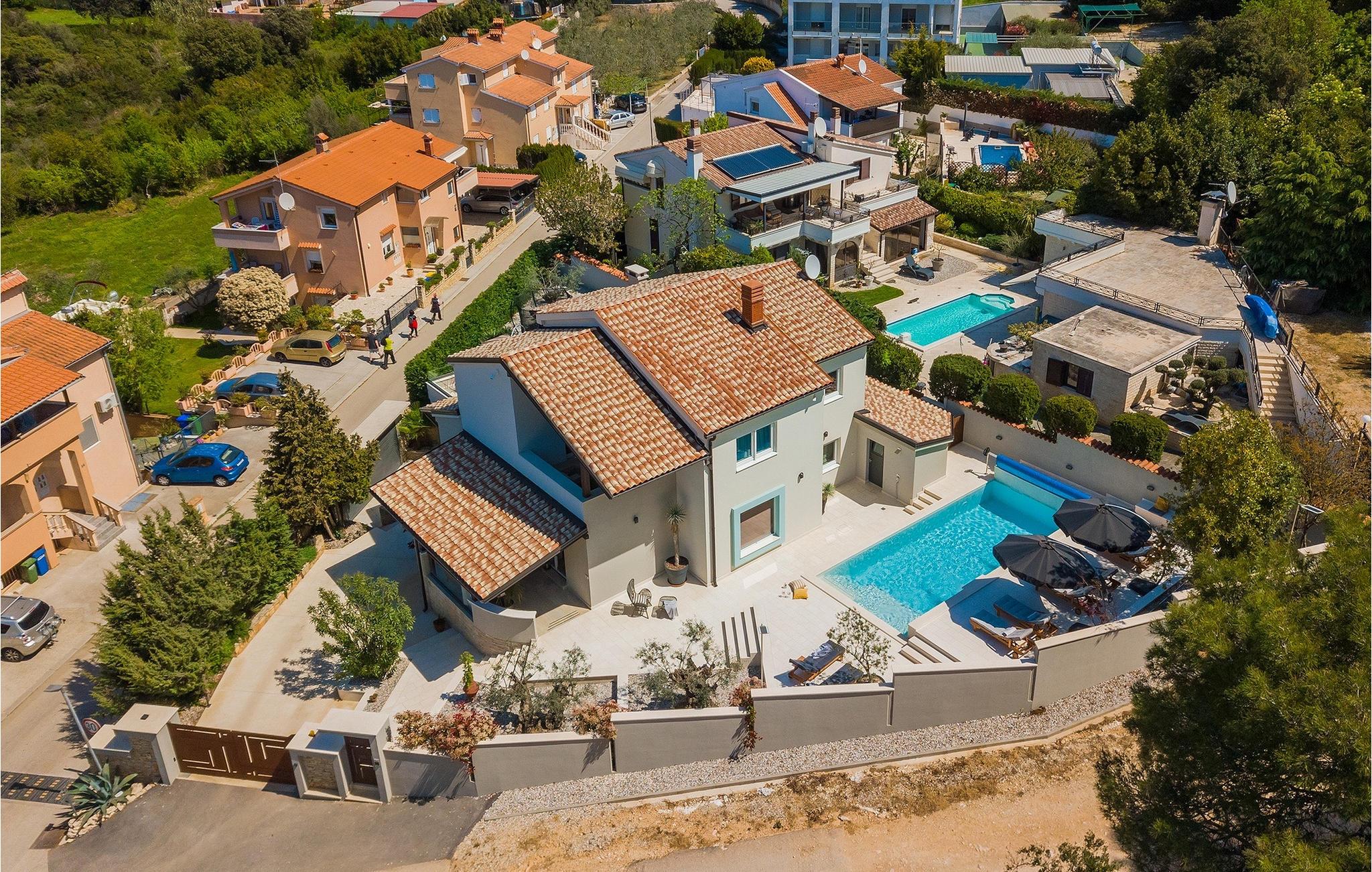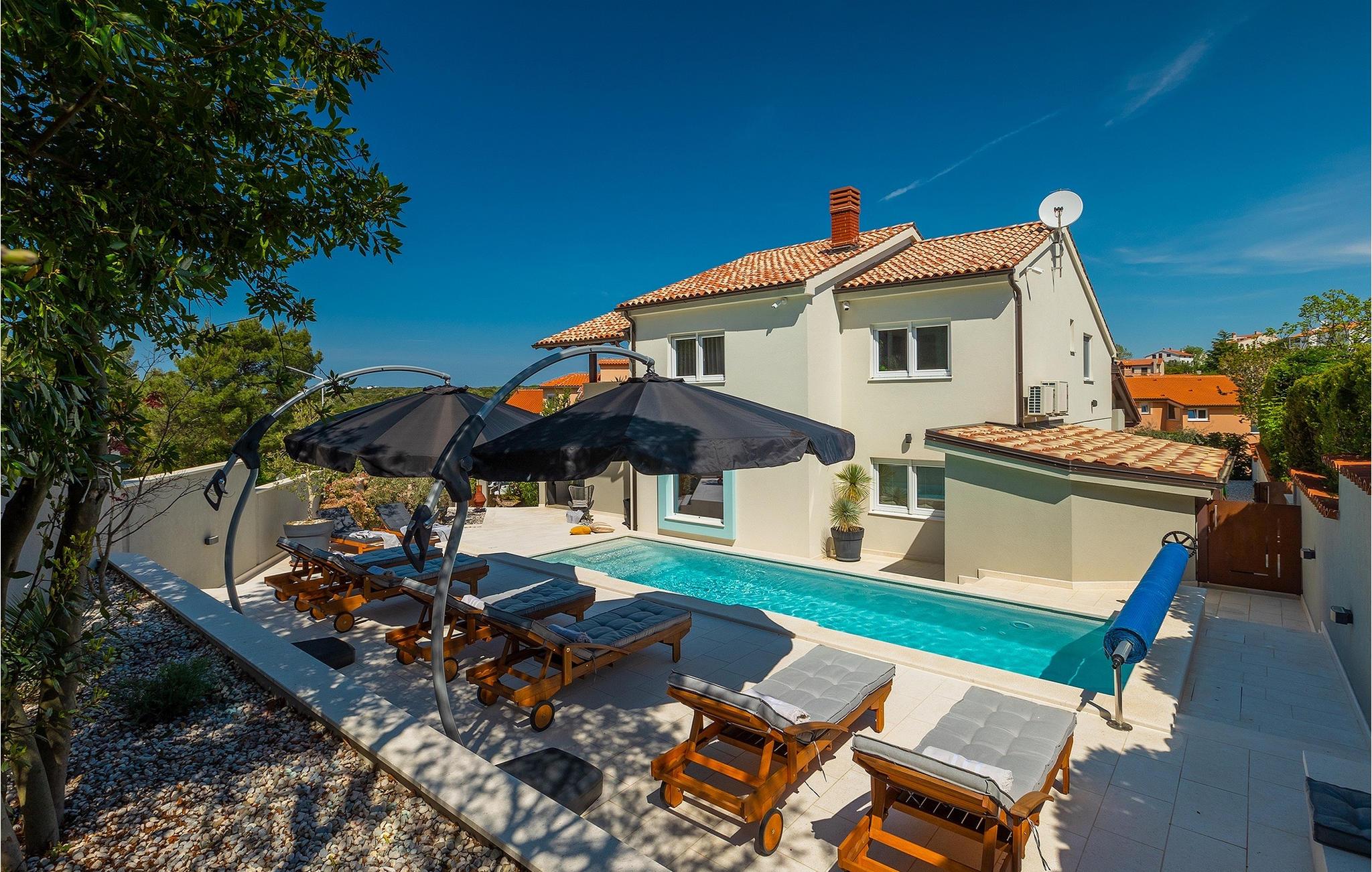 Leder du efter et sted, hvor du kan tilbringe en afslappende ferie? Så er Villa Forest Bay det ideelle valg, da det er beliggende i en smuk beliggenhed omgivet af natur og samtidig kun en kort køretur væk fra den berømte istrien by Pula. Med i alt 4 soveværelser kan den rumme op til 8 personer. Udenfor inviterer en privat pool omgivet af liggestole dig til en forfriskning på varme sommerdage. Til din rådighed er en overdækket terrasse med udekøkken, grill og spiseplads. Dette er det perfekte sted at tilbringe sommernætterne med dine kære. De små kan se frem til en legeplads. Villaen har også et fitnessrum og bordfodbold. Opholdsstuen er fordelt på 2 etager og er stilfuldt indrettet med stor opmærksomhed på detaljerne. I stueetagen er soveværelse, stue med spiseplads og direkte adgang til udearealet. I forbindelse med opholdsstuen er det fuldt udstyret køkken. Første sal består af 3 soveværelser, 2 badeværelser og 2 terrasser. Book Villa Forest Bay og tilbring en uforglemmelig ferie i Istrien!