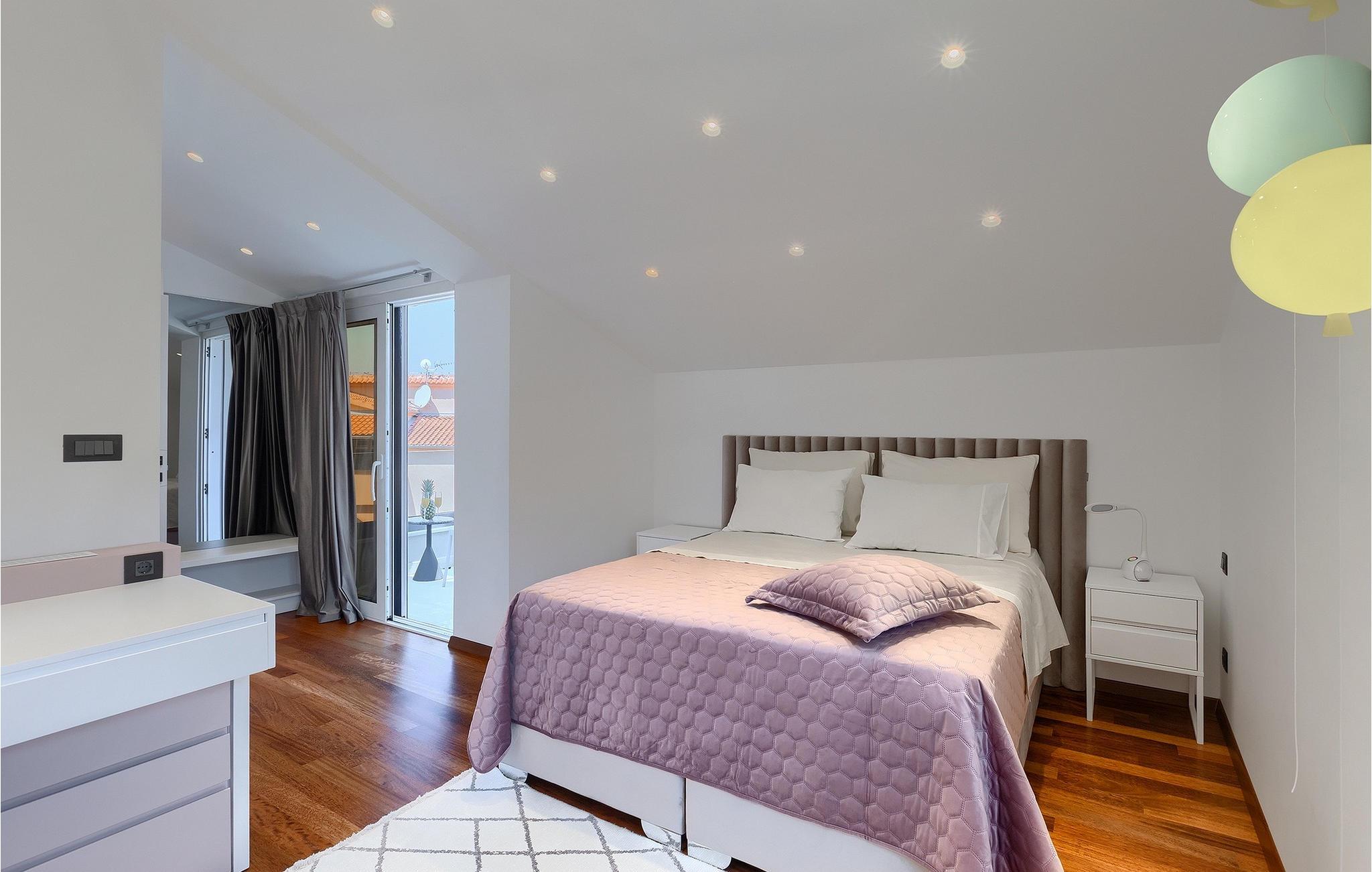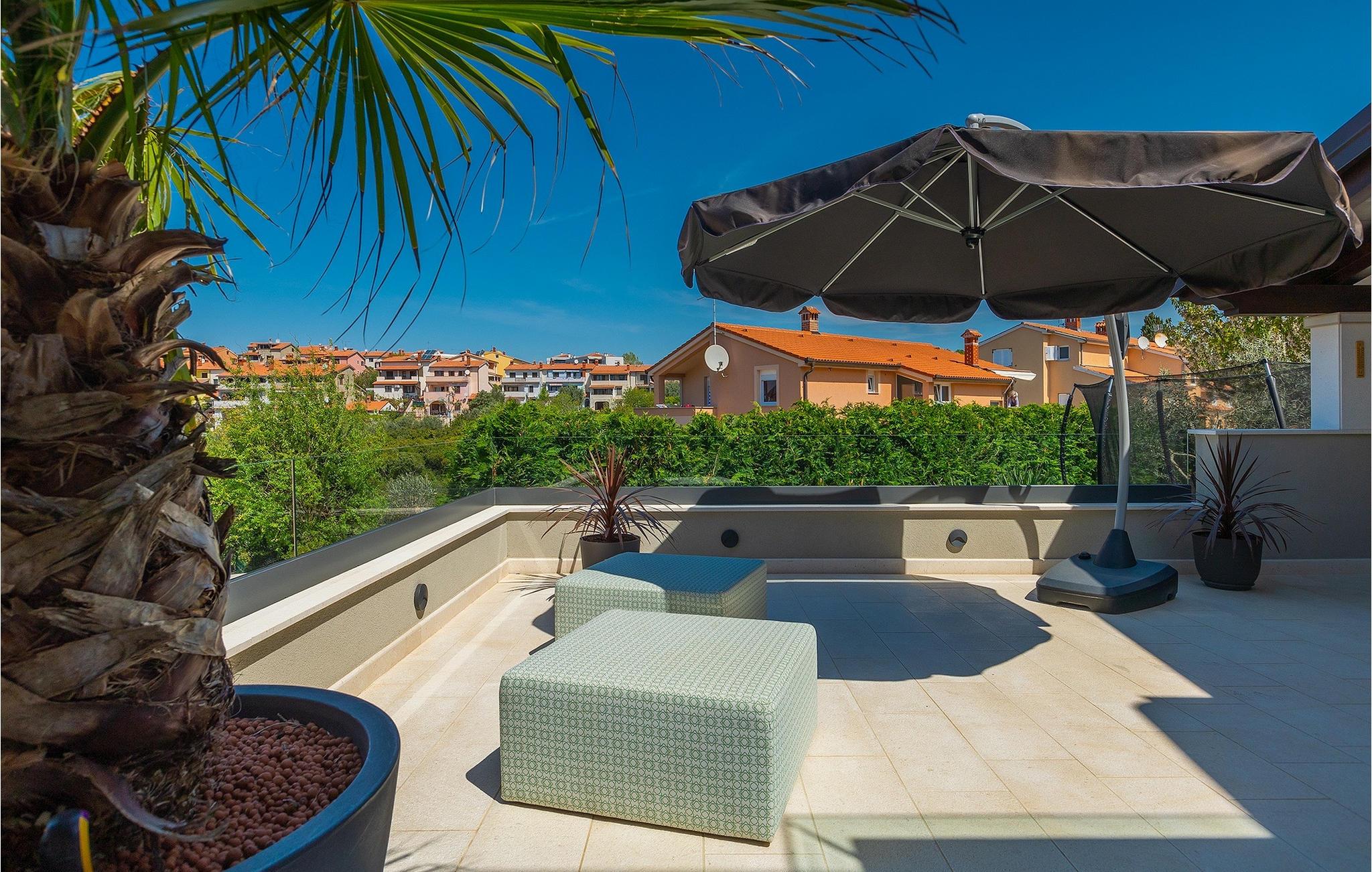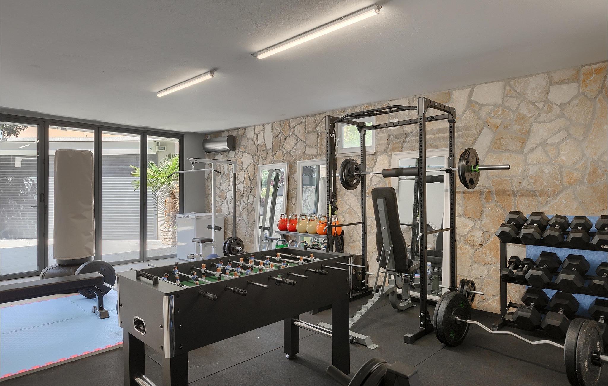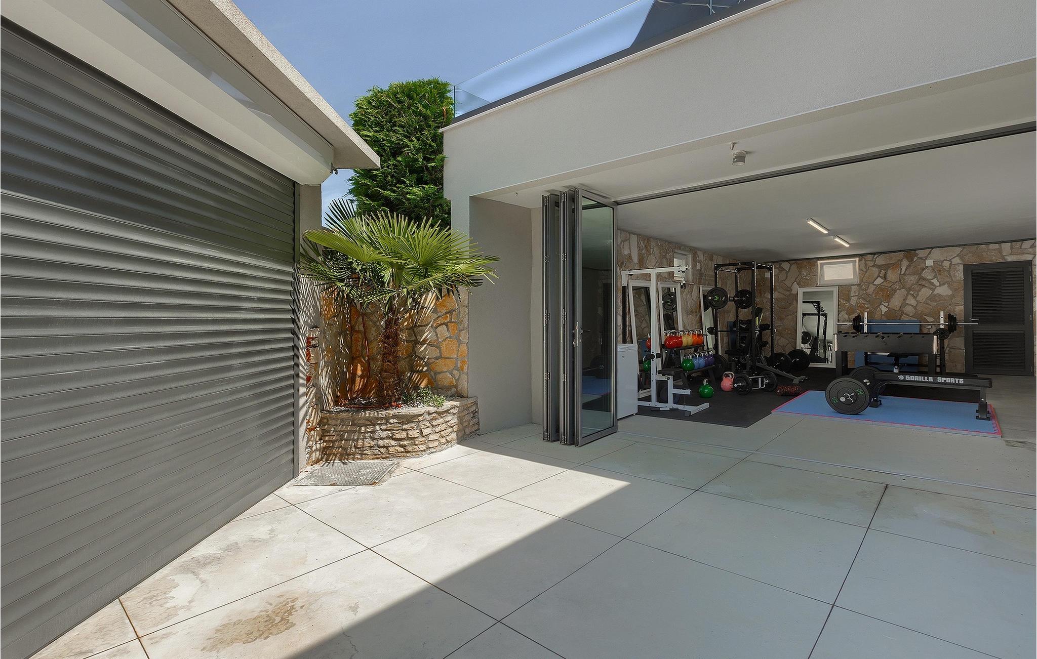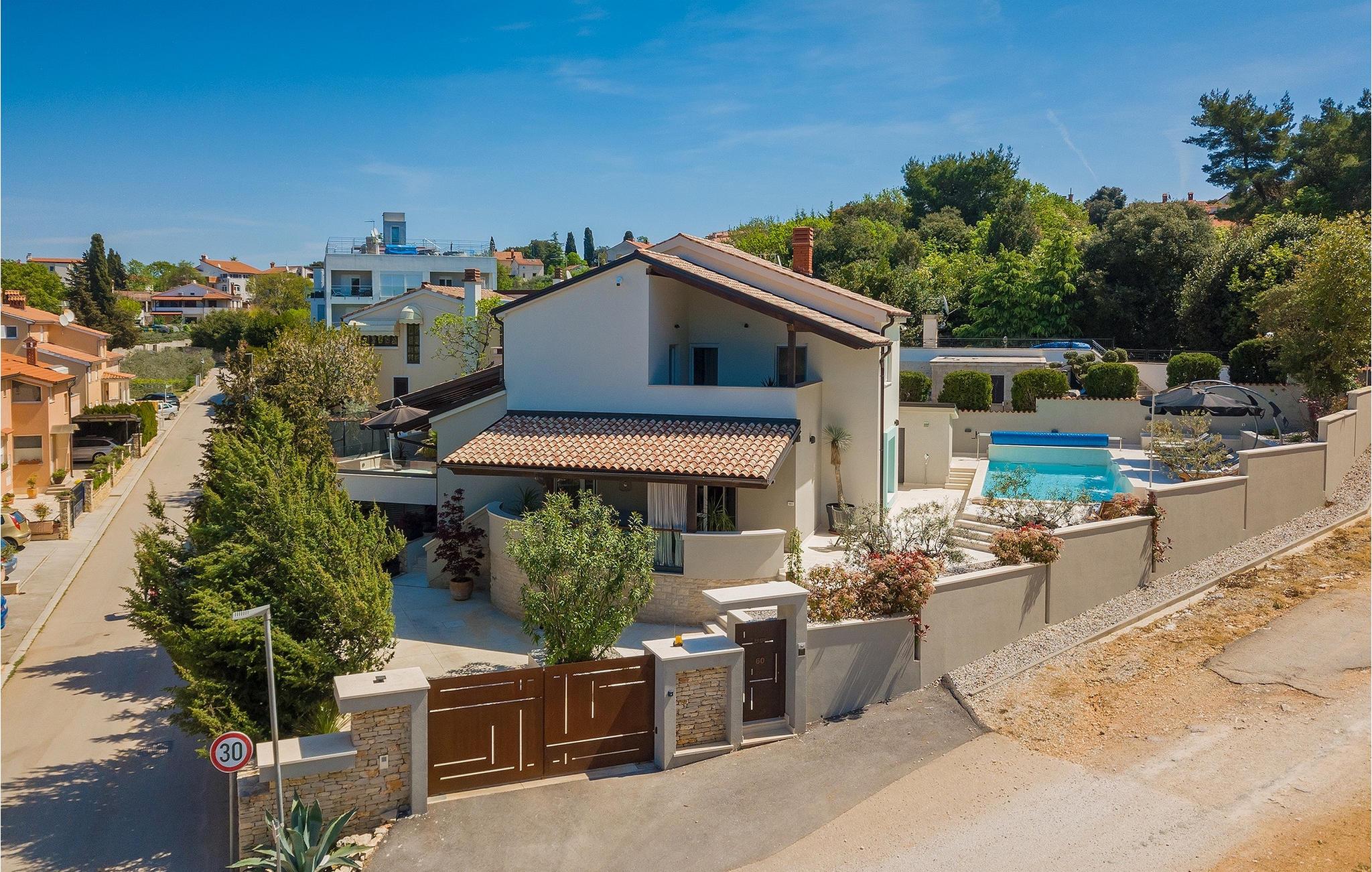 Leder du efter et sted, hvor du kan tilbringe en afslappende ferie? Så er Villa Forest Bay det ideelle valg, da det er beliggende i en smuk beliggenhed omgivet af natur og samtidig kun en kort køretur væk fra den berømte istrien by Pula. Med i alt 4 soveværelser kan den rumme op til 8 personer. Udenfor inviterer en privat pool omgivet af liggestole dig til en forfriskning på varme sommerdage. Til din rådighed er en overdækket terrasse med udekøkken, grill og spiseplads. Dette er det perfekte sted at tilbringe sommernætterne med dine kære. De små kan se frem til en legeplads. Villaen har også et fitnessrum og bordfodbold. Opholdsstuen er fordelt på 2 etager og er stilfuldt indrettet med stor opmærksomhed på detaljerne. I stueetagen er soveværelse, stue med spiseplads og direkte adgang til udearealet. I forbindelse med opholdsstuen er det fuldt udstyret køkken. Første sal består af 3 soveværelser, 2 badeværelser og 2 terrasser. Book Villa Forest Bay og tilbring en uforglemmelig ferie i Istrien!