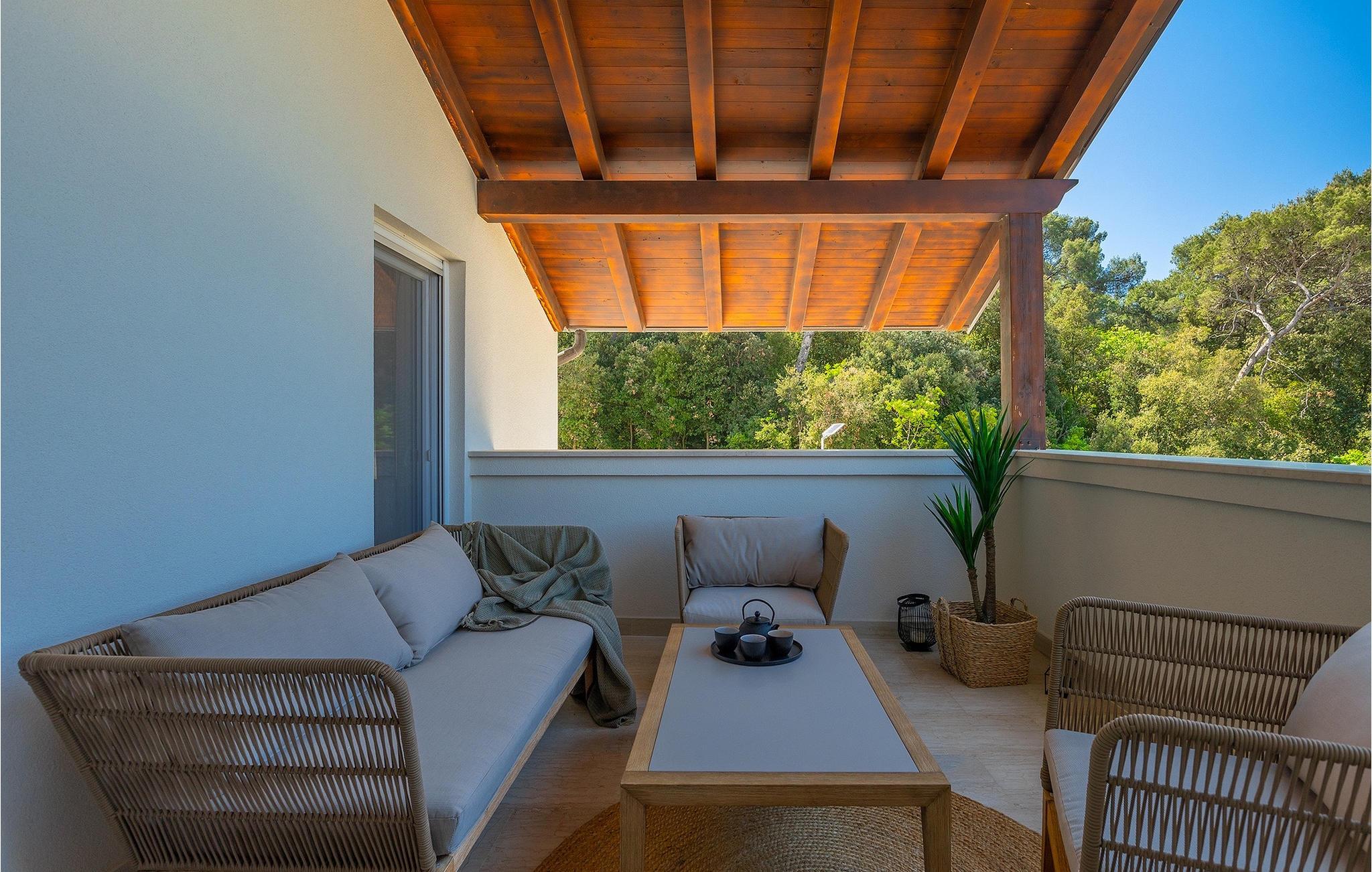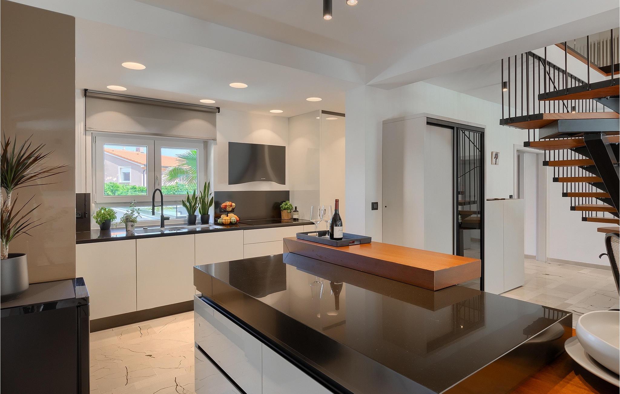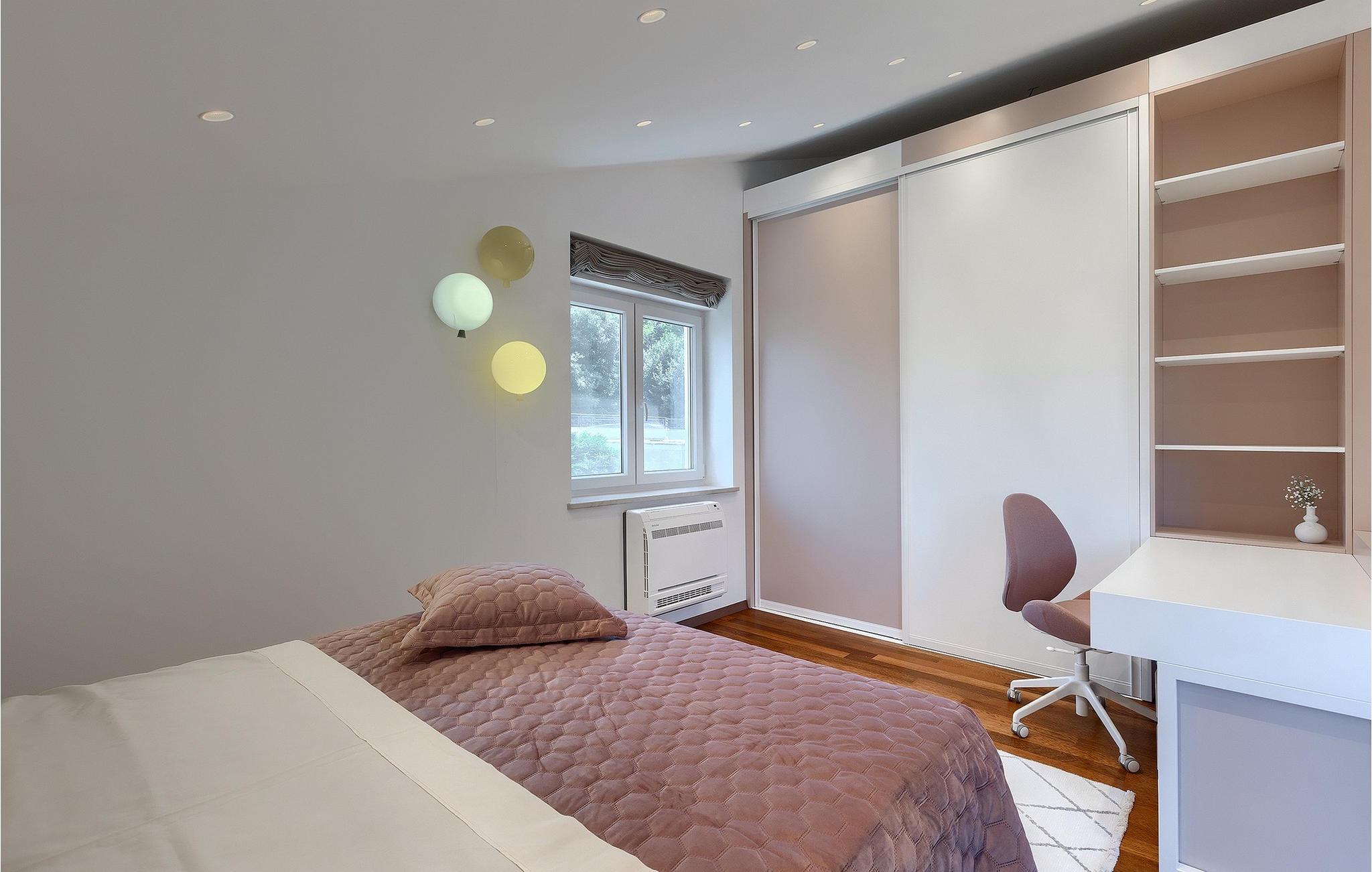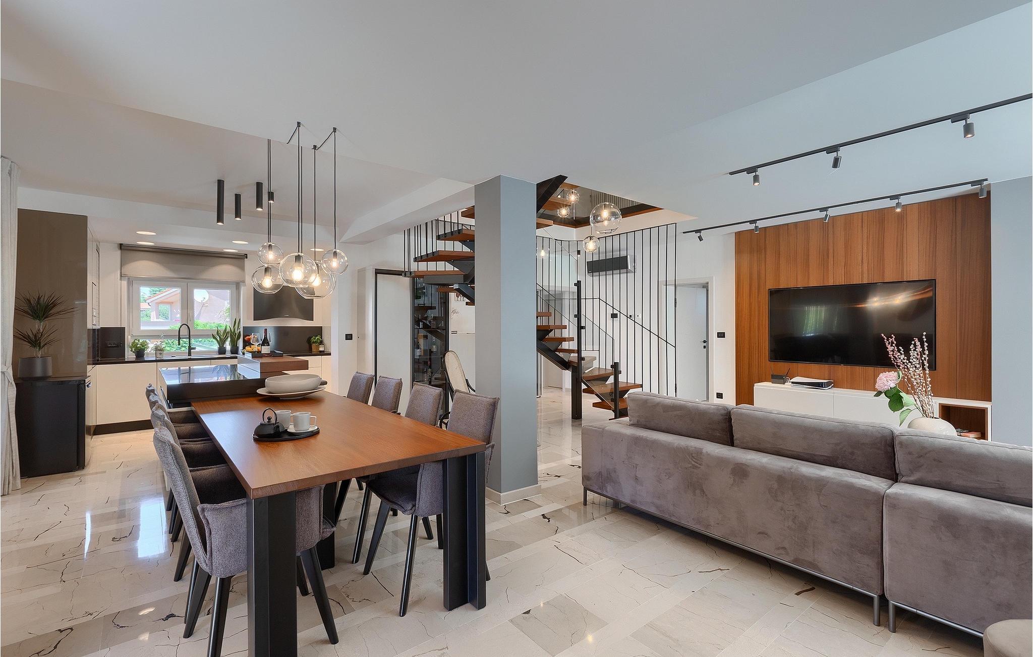 Leder du efter et sted, hvor du kan tilbringe en afslappende ferie? Så er Villa Forest Bay det ideelle valg, da det er beliggende i en smuk beliggenhed omgivet af natur og samtidig kun en kort køretur væk fra den berømte istrien by Pula. Med i alt 4 soveværelser kan den rumme op til 8 personer. Udenfor inviterer en privat pool omgivet af liggestole dig til en forfriskning på varme sommerdage. Til din rådighed er en overdækket terrasse med udekøkken, grill og spiseplads. Dette er det perfekte sted at tilbringe sommernætterne med dine kære. De små kan se frem til en legeplads. Villaen har også et fitnessrum og bordfodbold. Opholdsstuen er fordelt på 2 etager og er stilfuldt indrettet med stor opmærksomhed på detaljerne. I stueetagen er soveværelse, stue med spiseplads og direkte adgang til udearealet. I forbindelse med opholdsstuen er det fuldt udstyret køkken. Første sal består af 3 soveværelser, 2 badeværelser og 2 terrasser. Book Villa Forest Bay og tilbring en uforglemmelig ferie i Istrien!